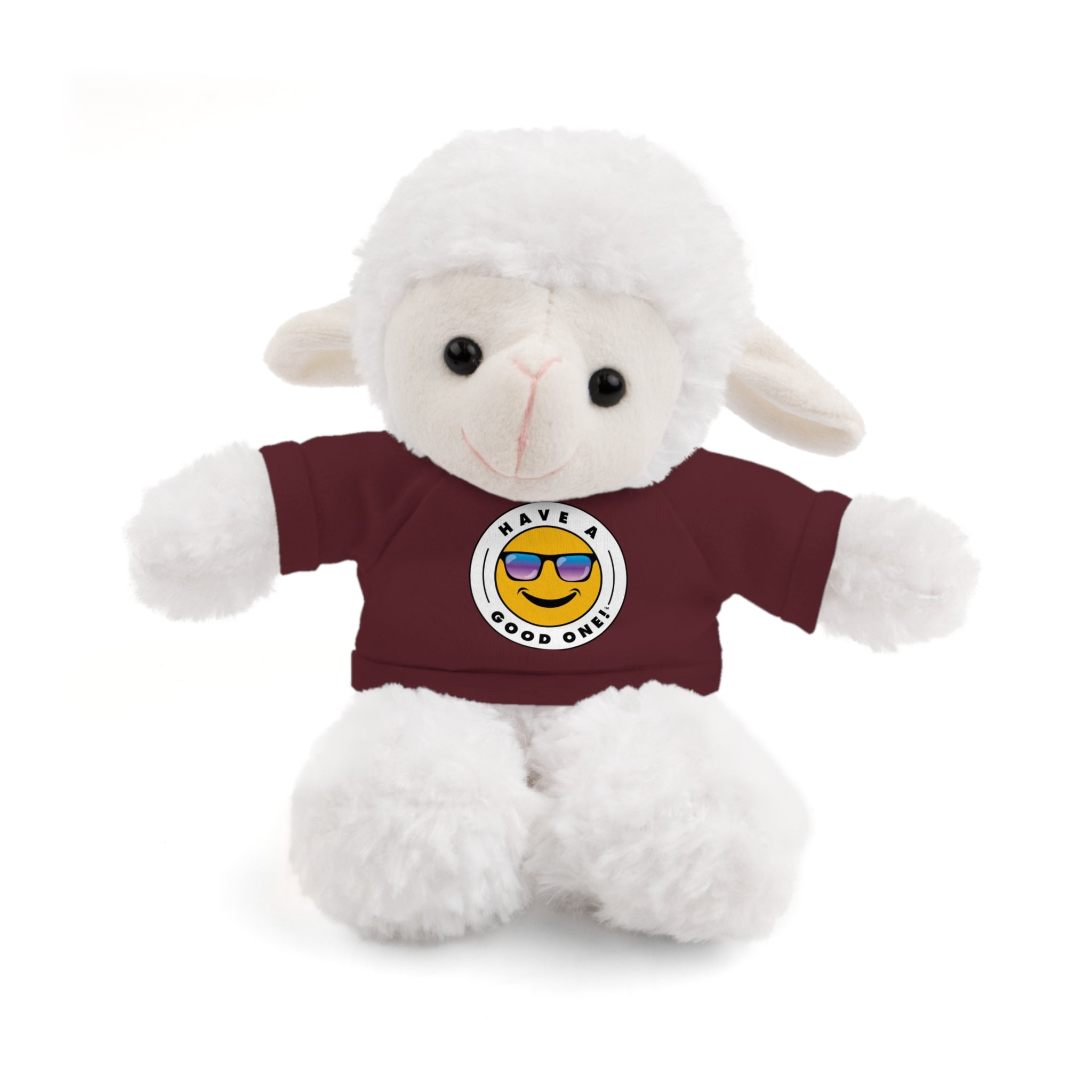 Sweet Sheep Have A Good One! Stuffed Animal - Maroon Color Shirt With Blue Purple Have A Good One! Logo