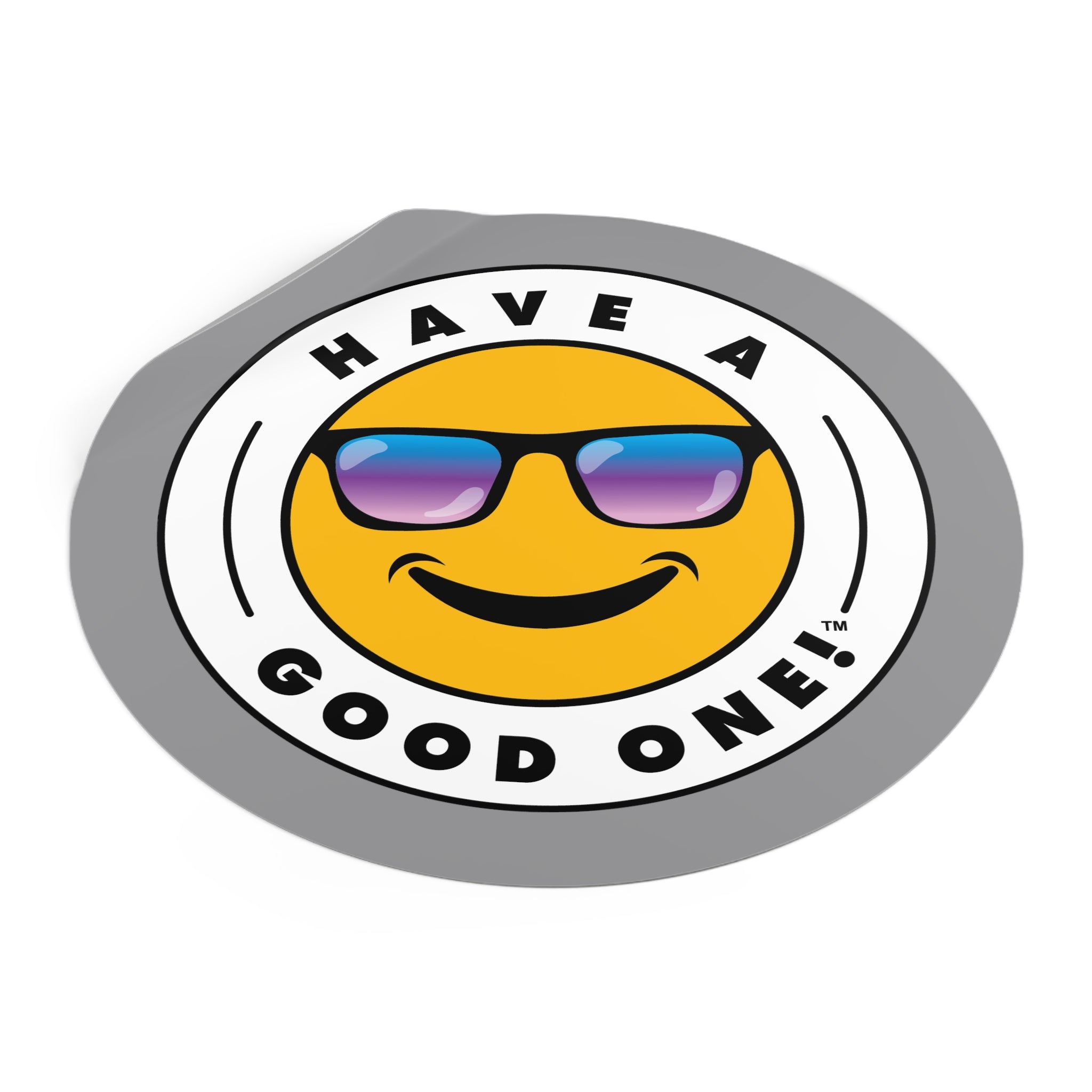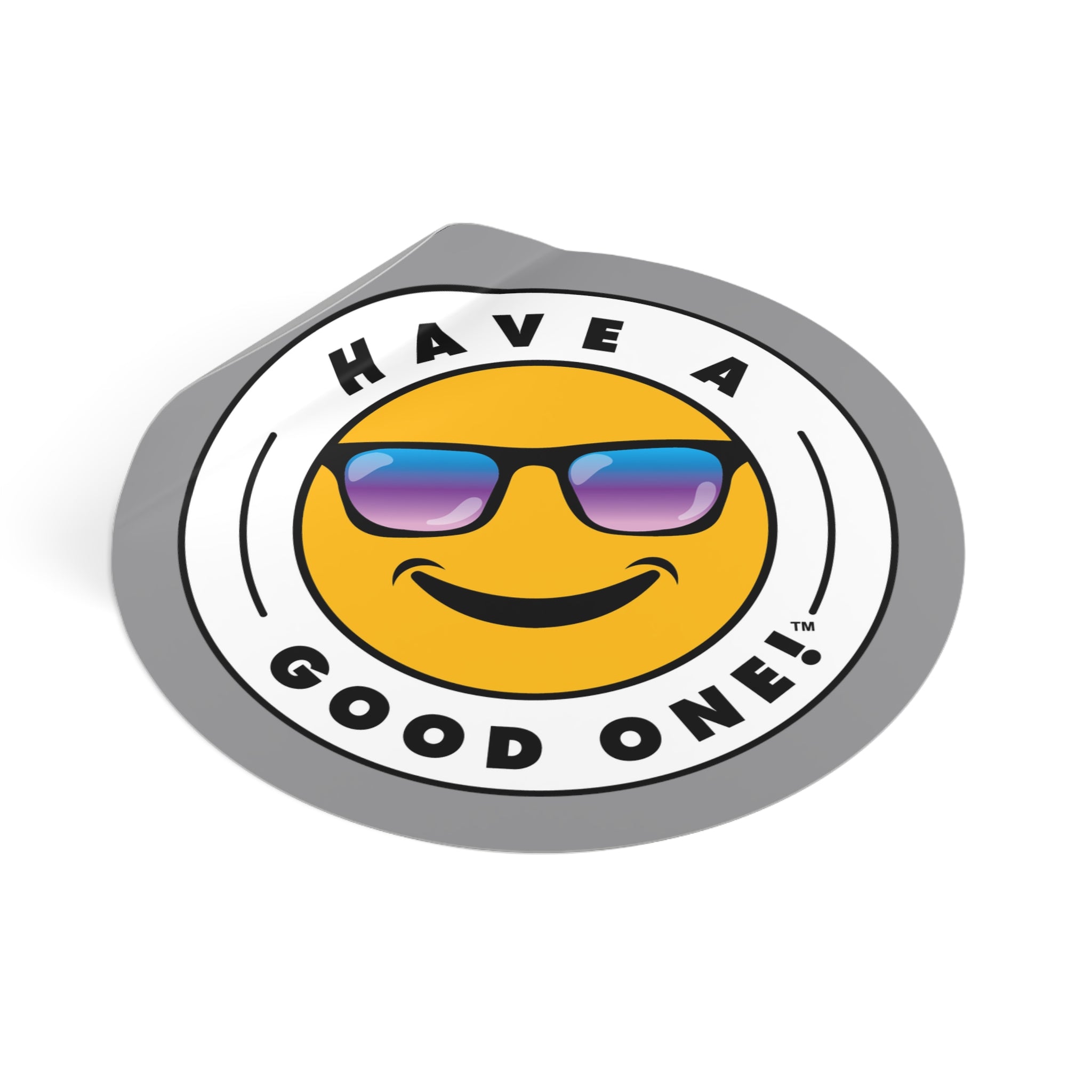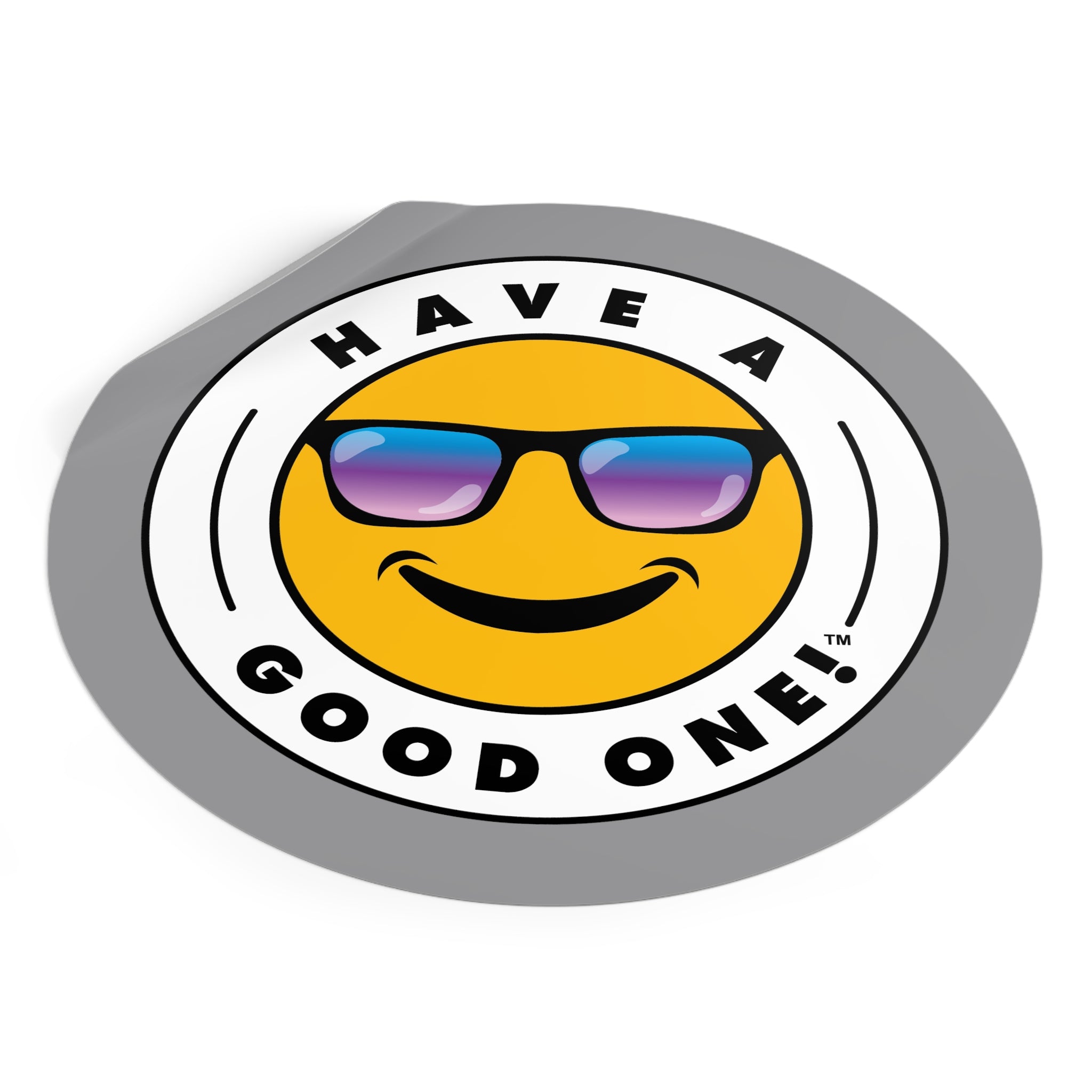 These fun circle stickers are great for adding a touch of personality and good cheer to any surface! These are rated to last over six years due to their high-quality production. The base materials are premium vinyl and vibrant inks. The design layer is covered by a UV resistant laminate. If removal is necessary, the adhesive backing won't leave residue behind. Just use a soft, clean and dry cloth to gently brush off any dust or dirt from center of sticker outward. You can put these cheerful stickers on notebooks, bikes, skateboards, car bumpers, musical instruments, computers, windows, gifts or just about anywhere! They are sure to brighten your day and make you smile however you use them! Share the good vibes with these fun stickers and Have A Good One!