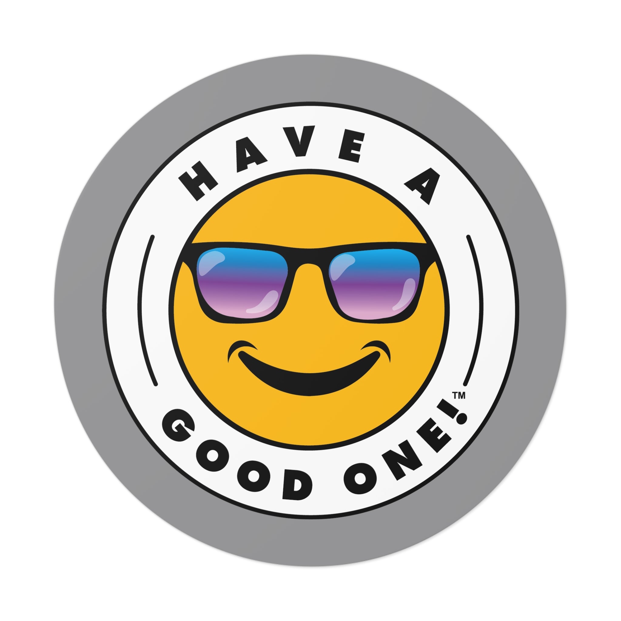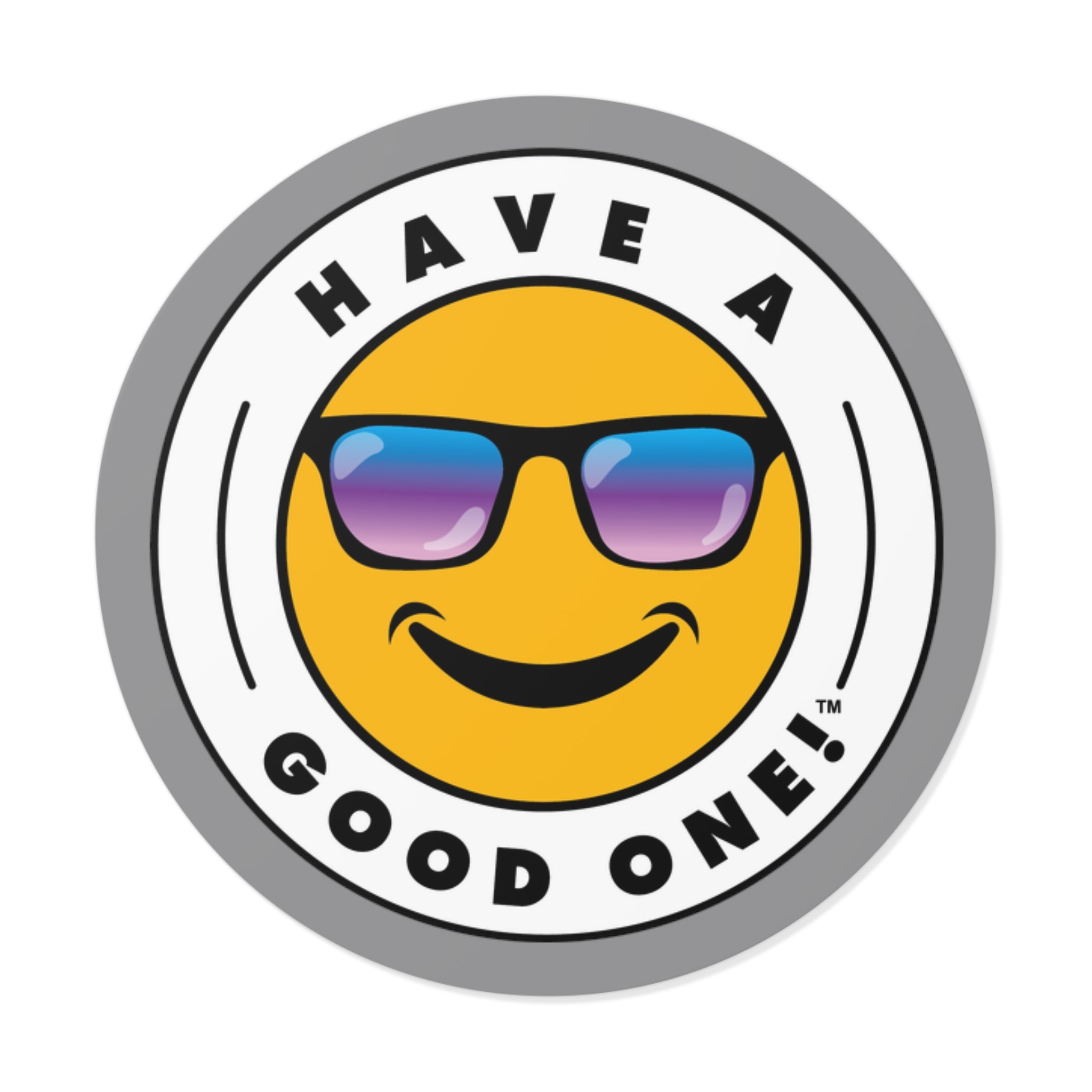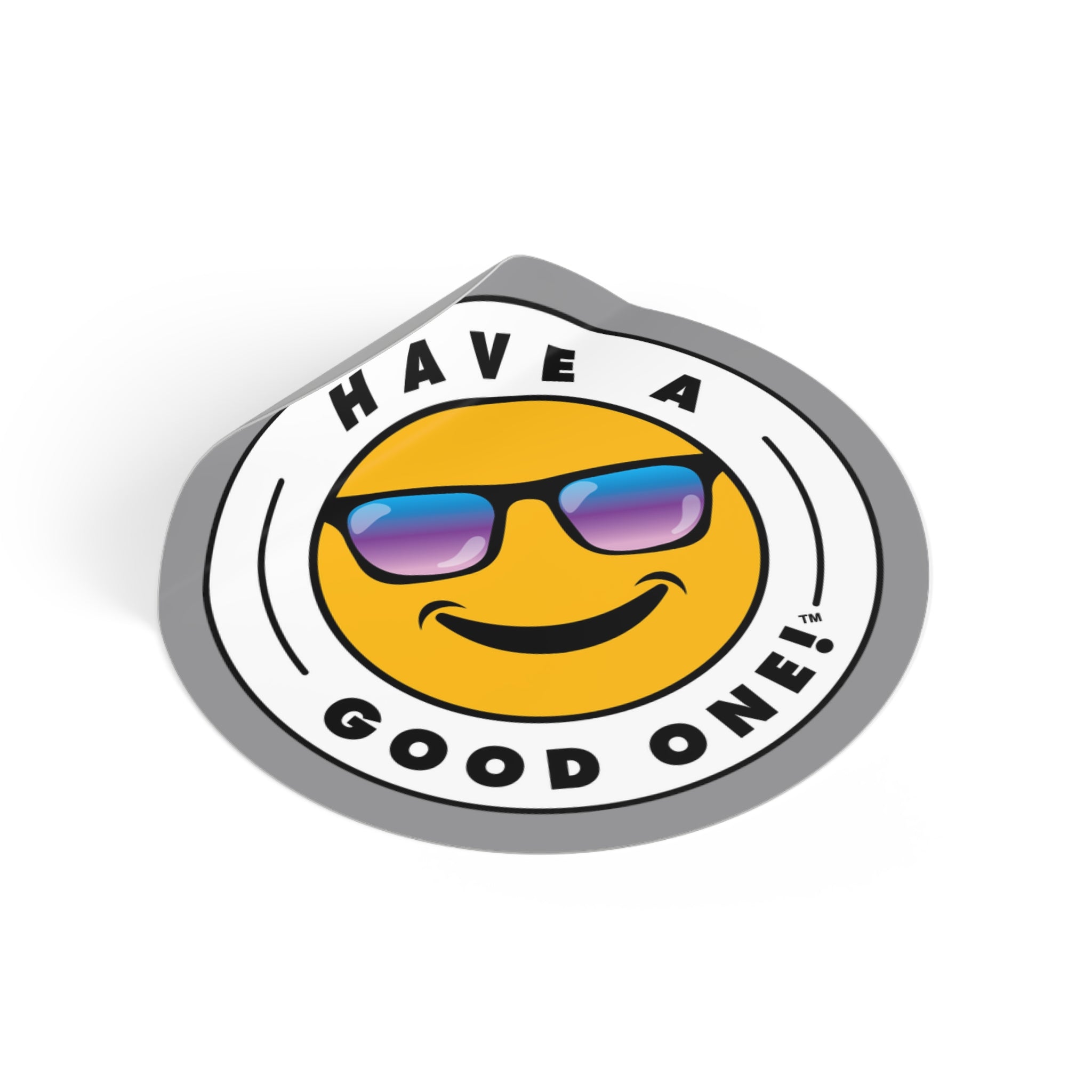 These fun circle stickers are great for adding a touch of personality and good cheer to any surface! These are rated to last over six years due to their high-quality production. The base materials are premium vinyl and vibrant inks. The design layer is covered by a UV resistant laminate. If removal is necessary, the adhesive backing won't leave residue behind. Just use a soft, clean and dry cloth to gently brush off any dust or dirt from center of sticker outward. You can put these cheerful stickers on notebooks, bikes, skateboards, car bumpers, musical instruments, computers, windows, gifts or just about anywhere! They are sure to brighten your day and make you smile however you use them! Share the good vibes with these fun stickers and Have A Good One!