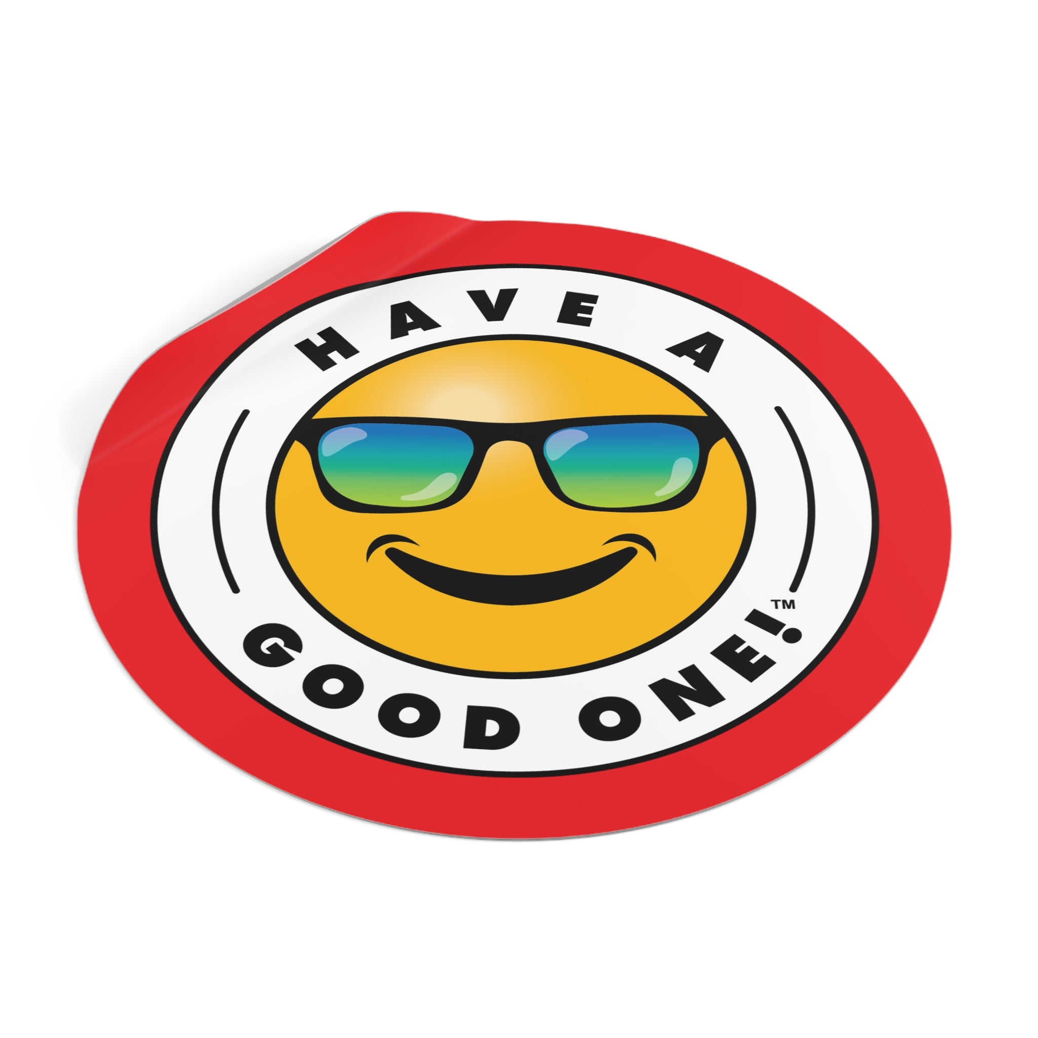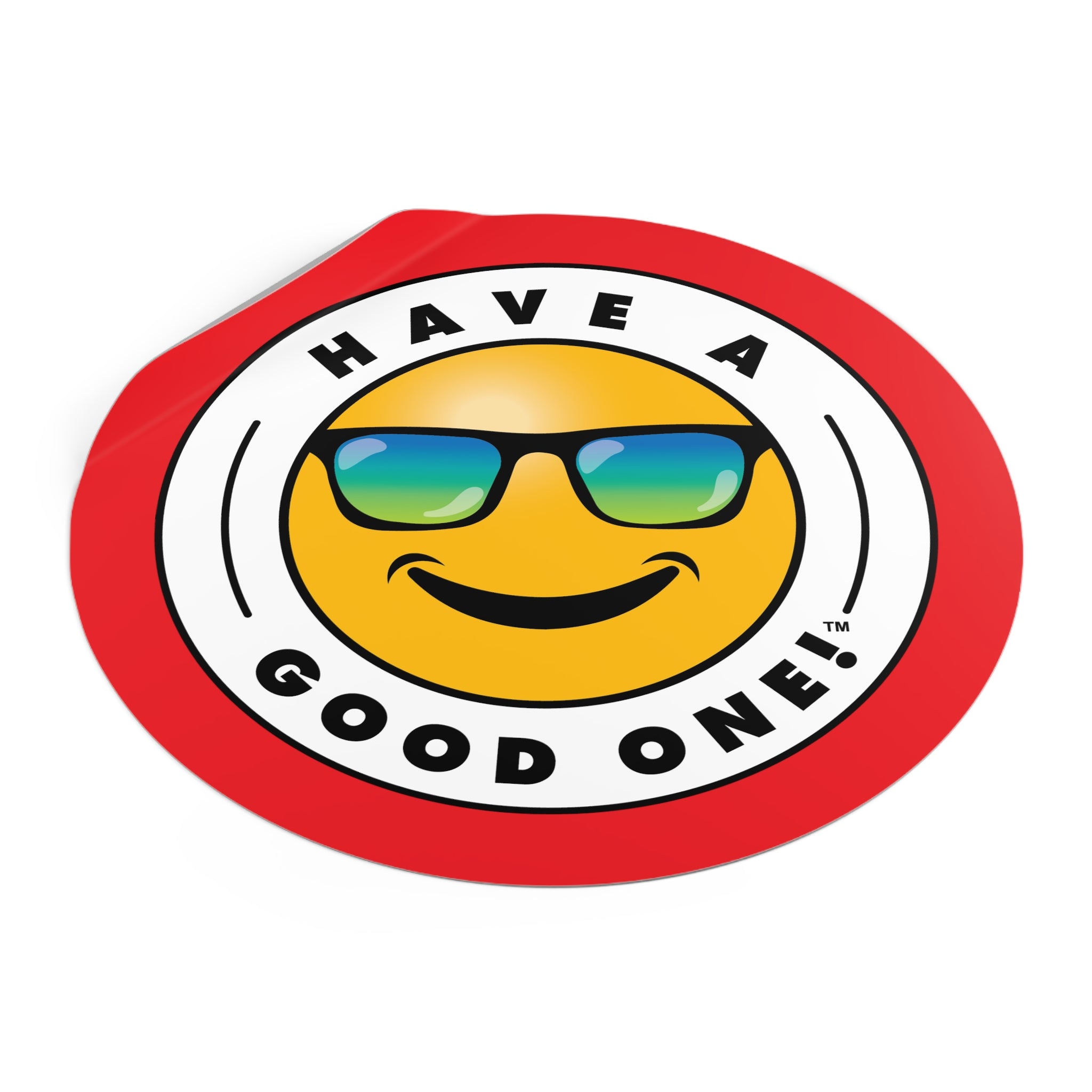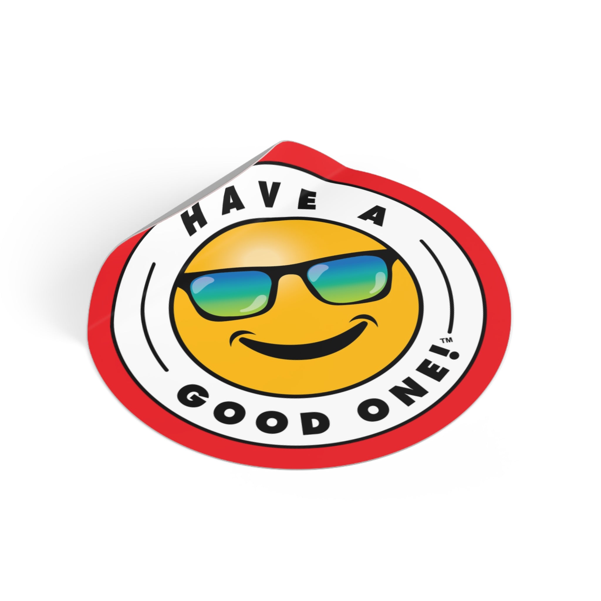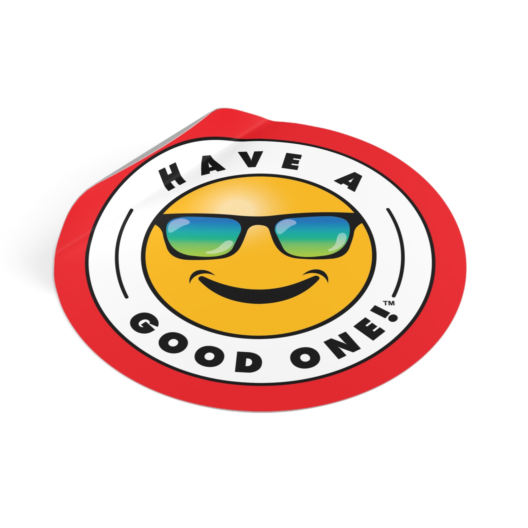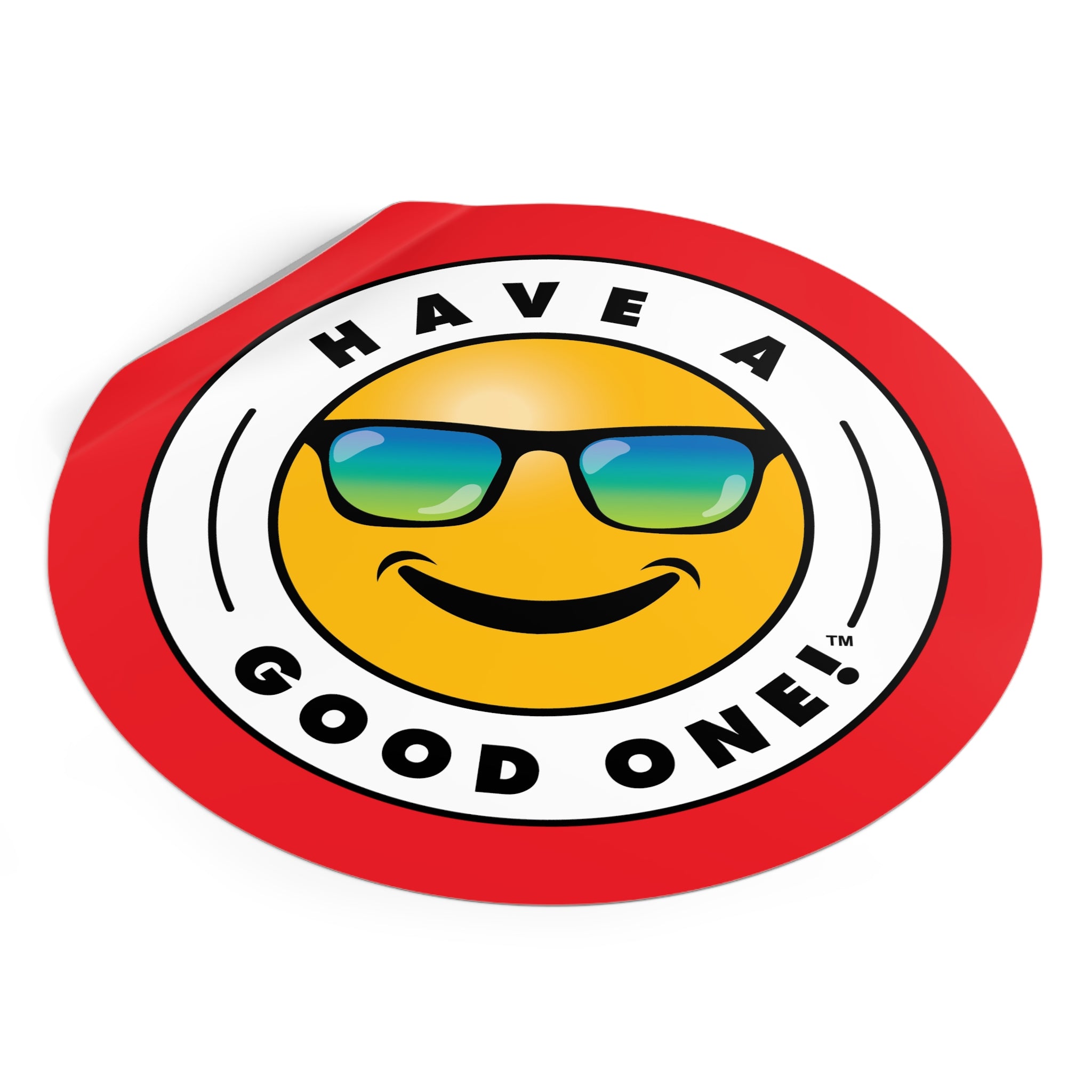 These fun circle stickers are great for adding a touch of personality and good cheer to any surface! These are rated to last over six years due to their high-quality production. The base materials are premium vinyl and vibrant inks. The design layer is covered by a UV resistant laminate. If removal is necessary, the adhesive backing won't leave residue behind. Just use a soft, clean and dry cloth to gently brush off any dust or dirt from center of sticker outward. You can put these cheerful stickers on notebooks, bikes, skateboards, car bumpers, musical instruments, computers, windows, gifts or just about anywhere! They are sure to brighten your day and make you smile however you use them! Share the good vibes with these fun stickers and Have A Good One!