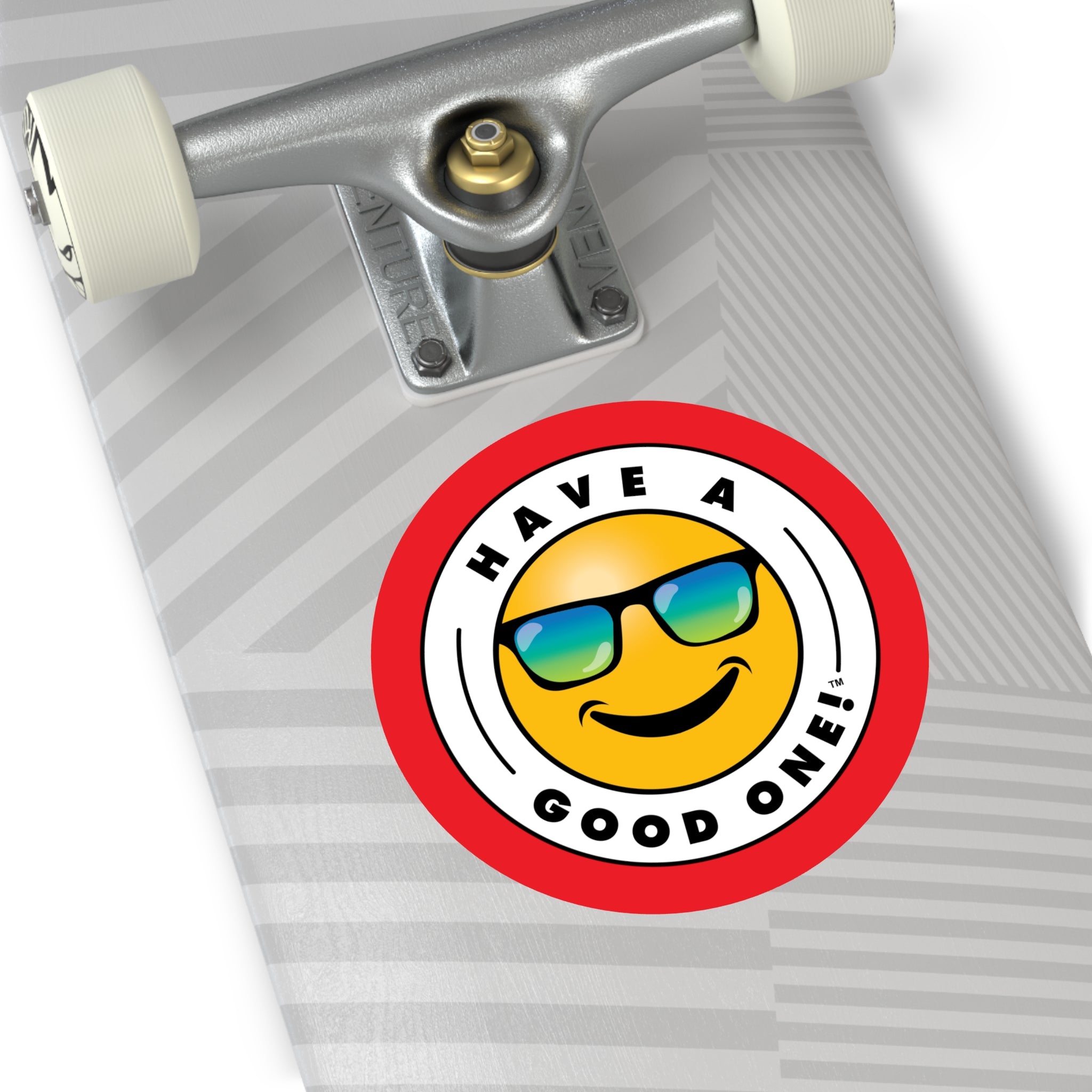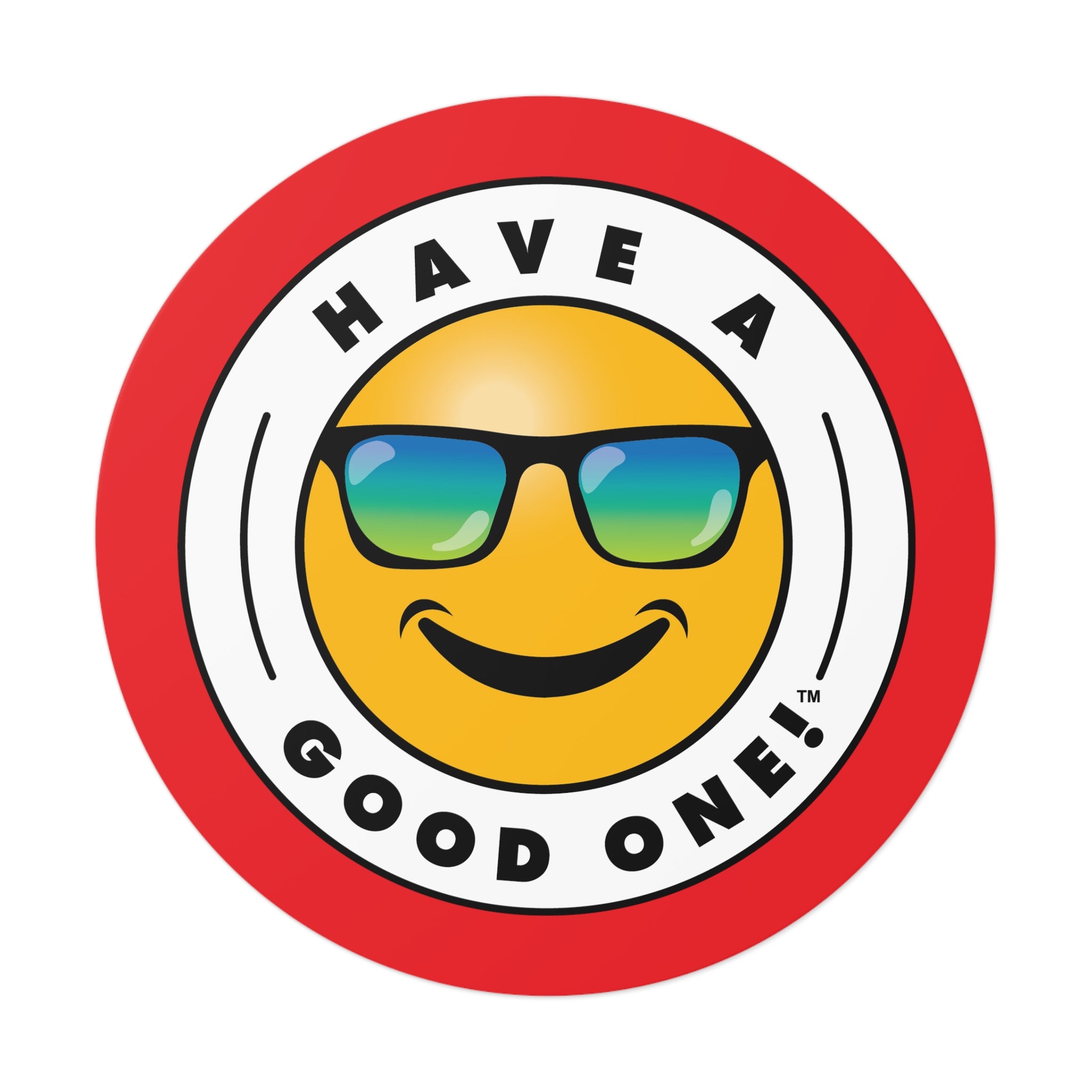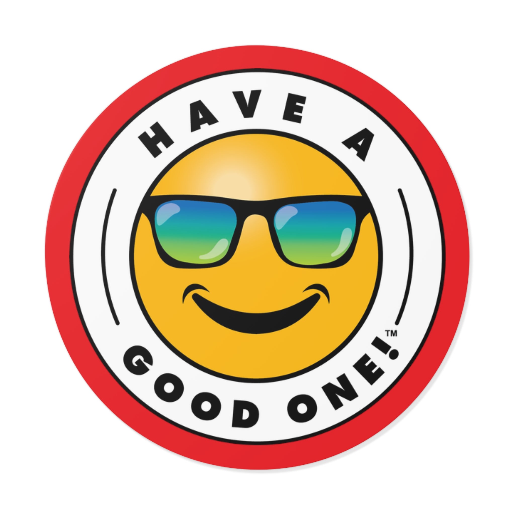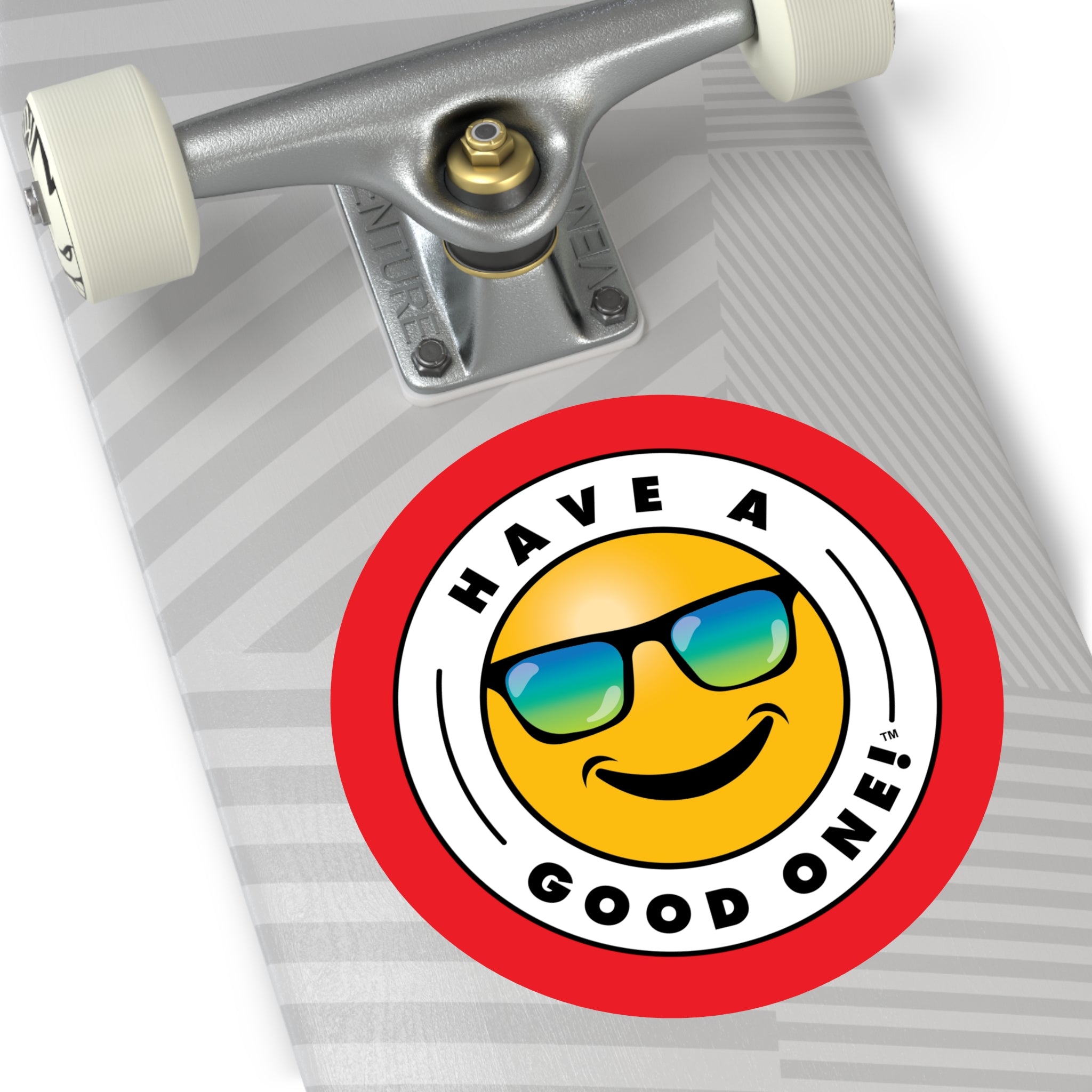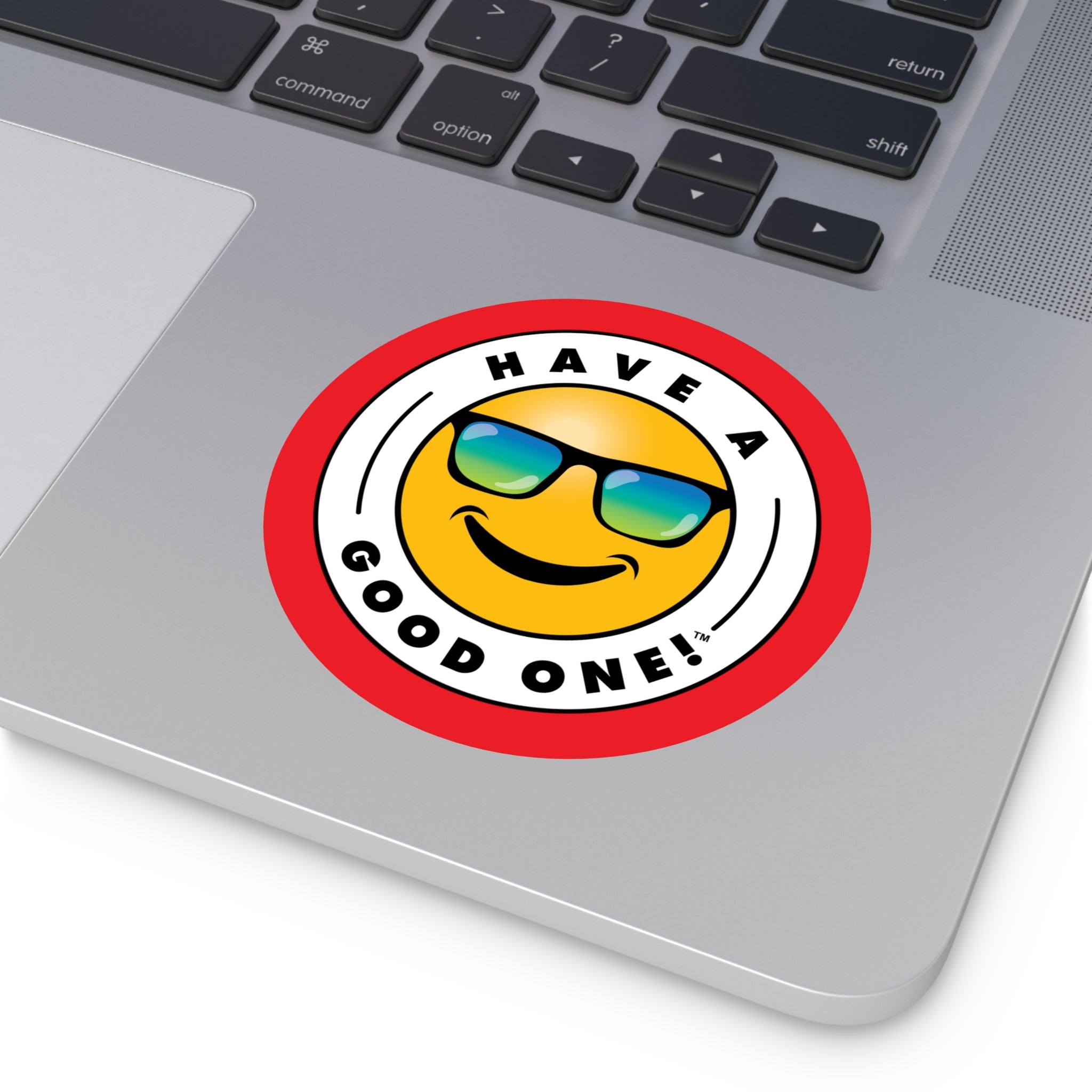 These fun circle stickers are great for adding a touch of personality and good cheer to any surface! These are rated to last over six years due to their high-quality production. The base materials are premium vinyl and vibrant inks. The design layer is covered by a UV resistant laminate. If removal is necessary, the adhesive backing won't leave residue behind. Just use a soft, clean and dry cloth to gently brush off any dust or dirt from center of sticker outward. You can put these cheerful stickers on notebooks, bikes, skateboards, car bumpers, musical instruments, computers, windows, gifts or just about anywhere! They are sure to brighten your day and make you smile however you use them! Share the good vibes with these fun stickers and Have A Good One!