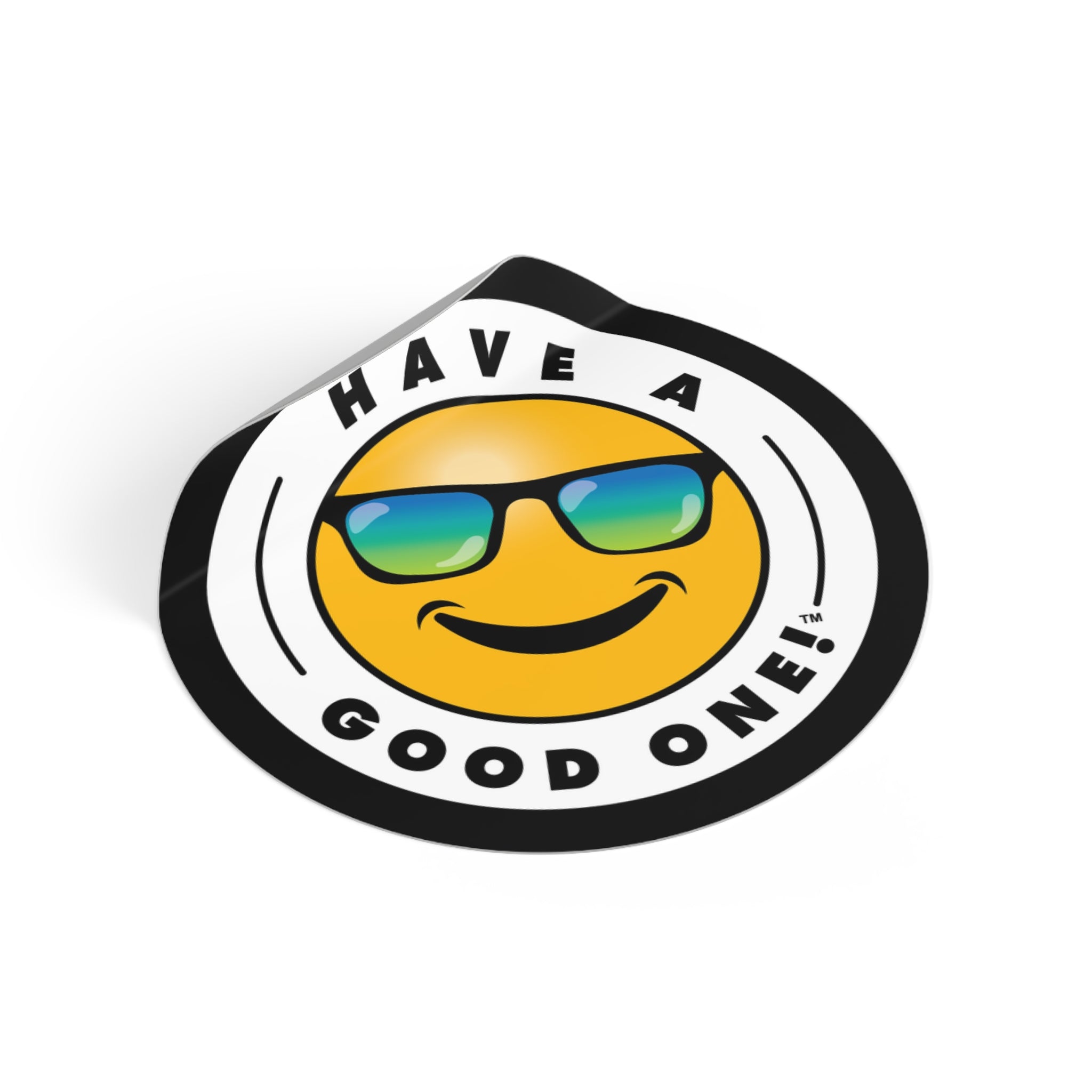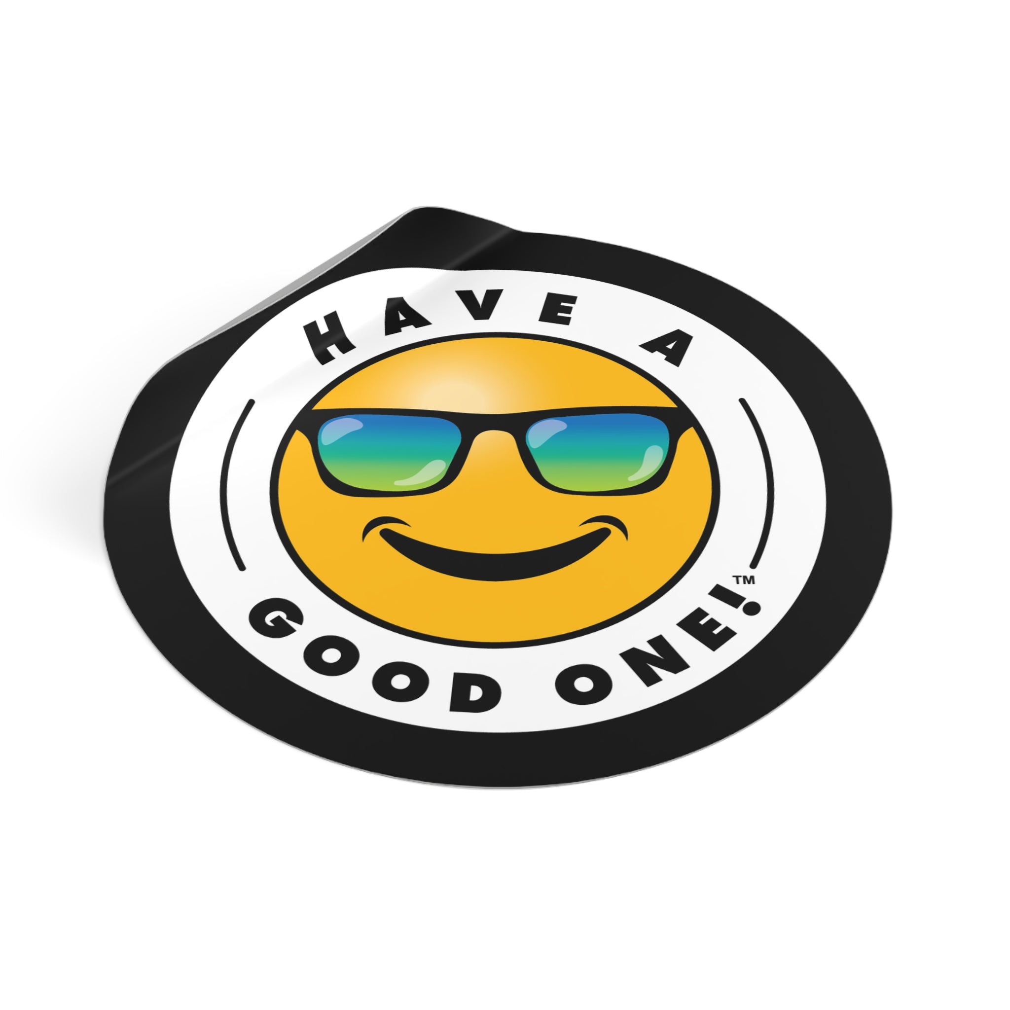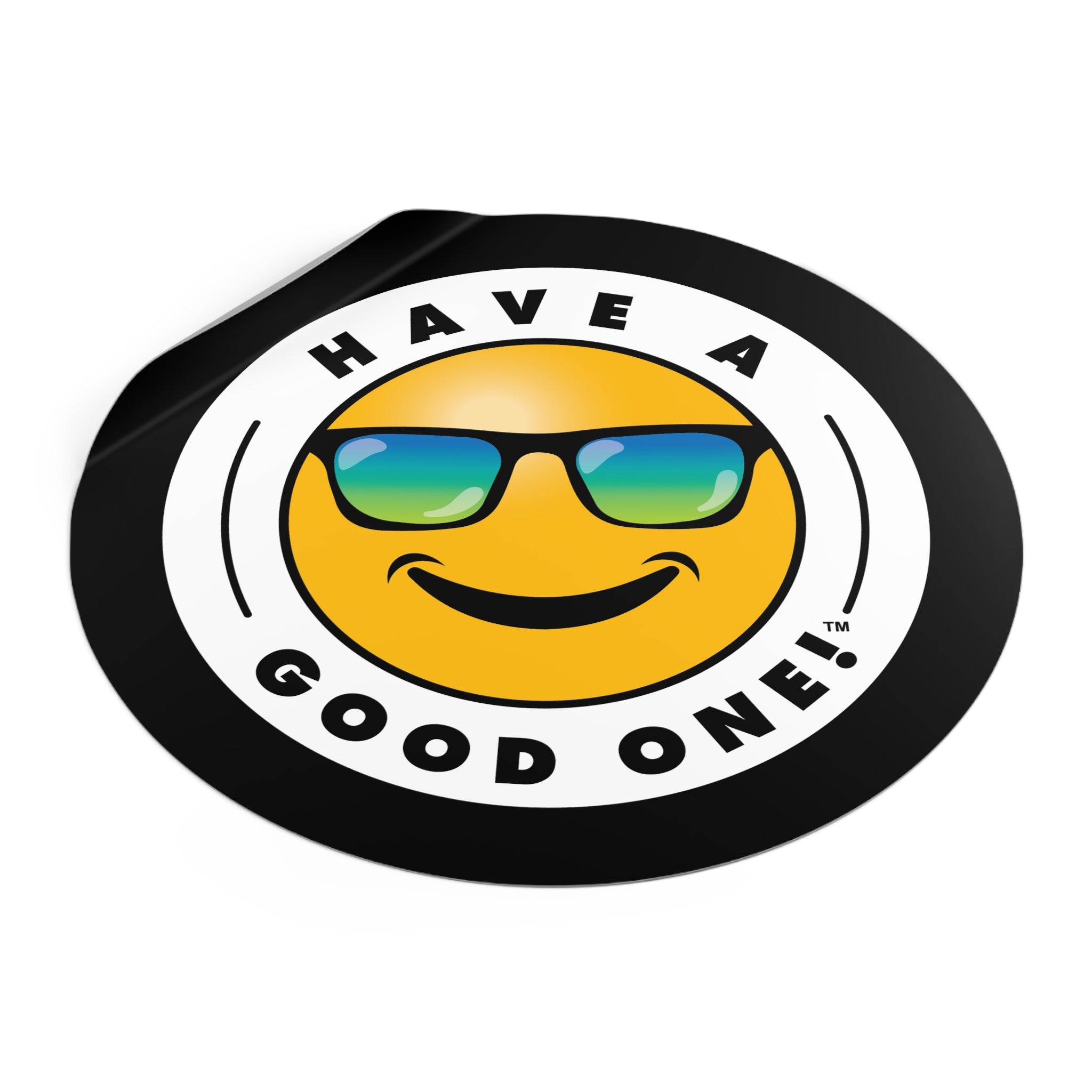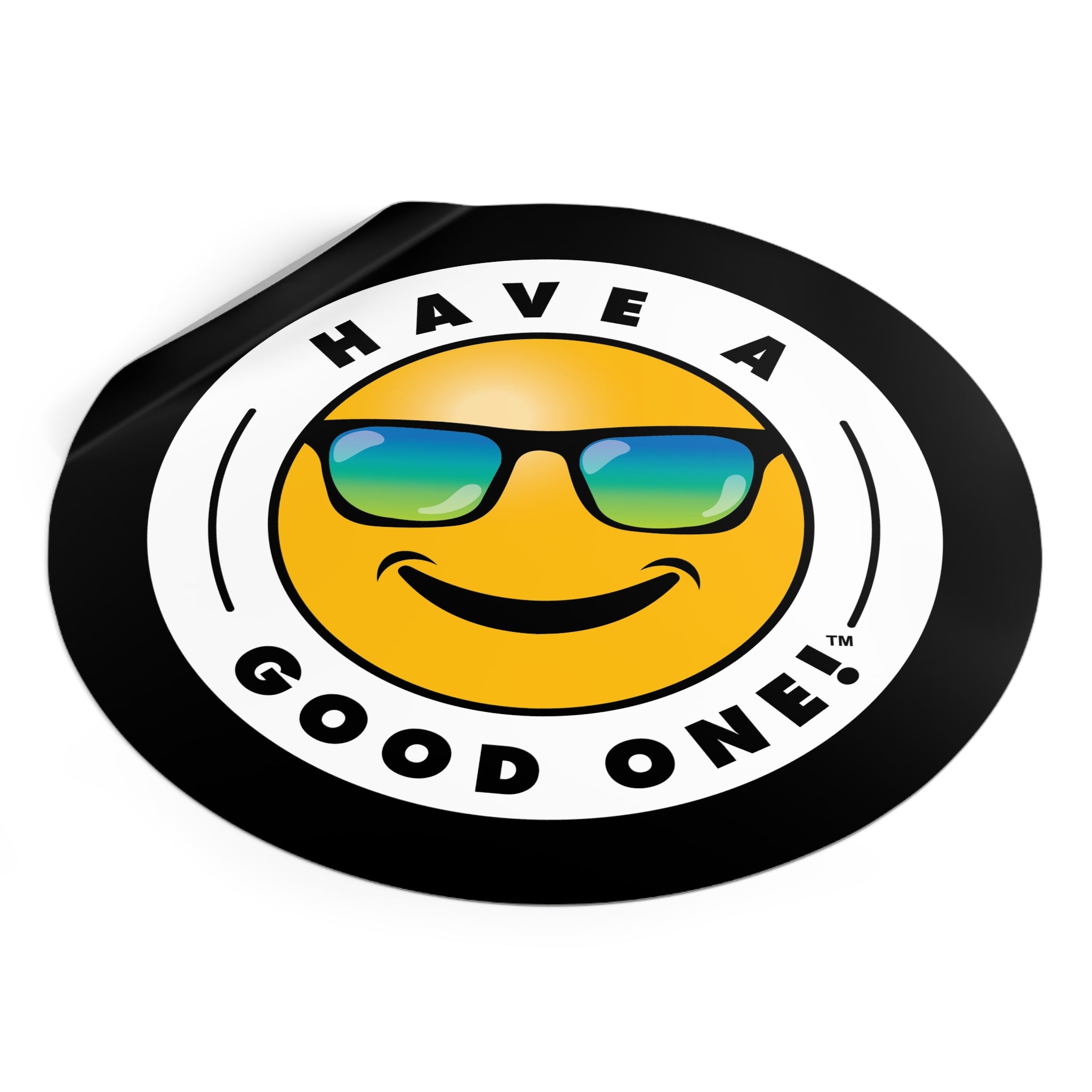 These fun circle stickers are great for adding a touch of personality and good cheer to any surface! These are rated to last over six years due to their high-quality production. The base materials are premium vinyl and vibrant inks. The design layer is covered by a UV resistant laminate. If removal is necessary, the adhesive backing won't leave residue behind. Just use a soft, clean and dry cloth to gently brush off any dust or dirt from center of sticker outward. You can put these cheerful stickers on notebooks, bikes, skateboards, car bumpers, musical instruments, computers, windows, gifts or just about anywhere! They are sure to brighten your day and make you smile however you use them! Share the good vibes with these fun stickers and Have A Good One!