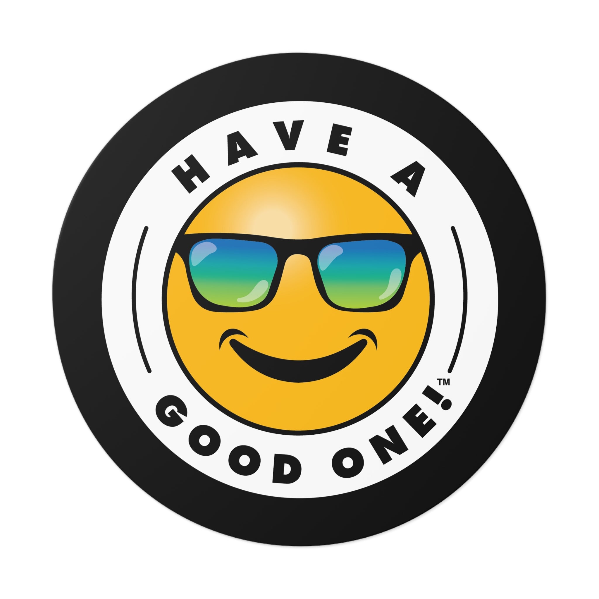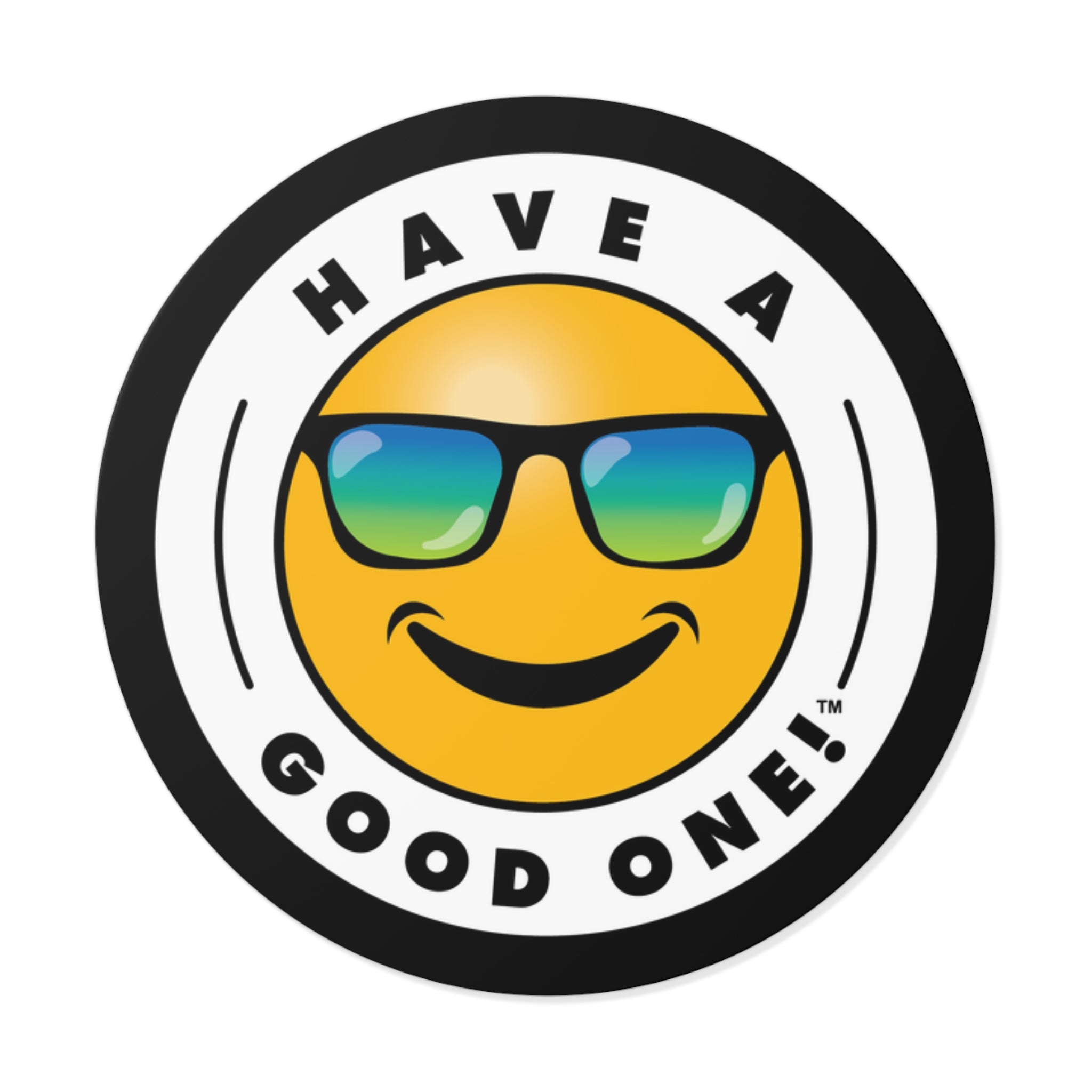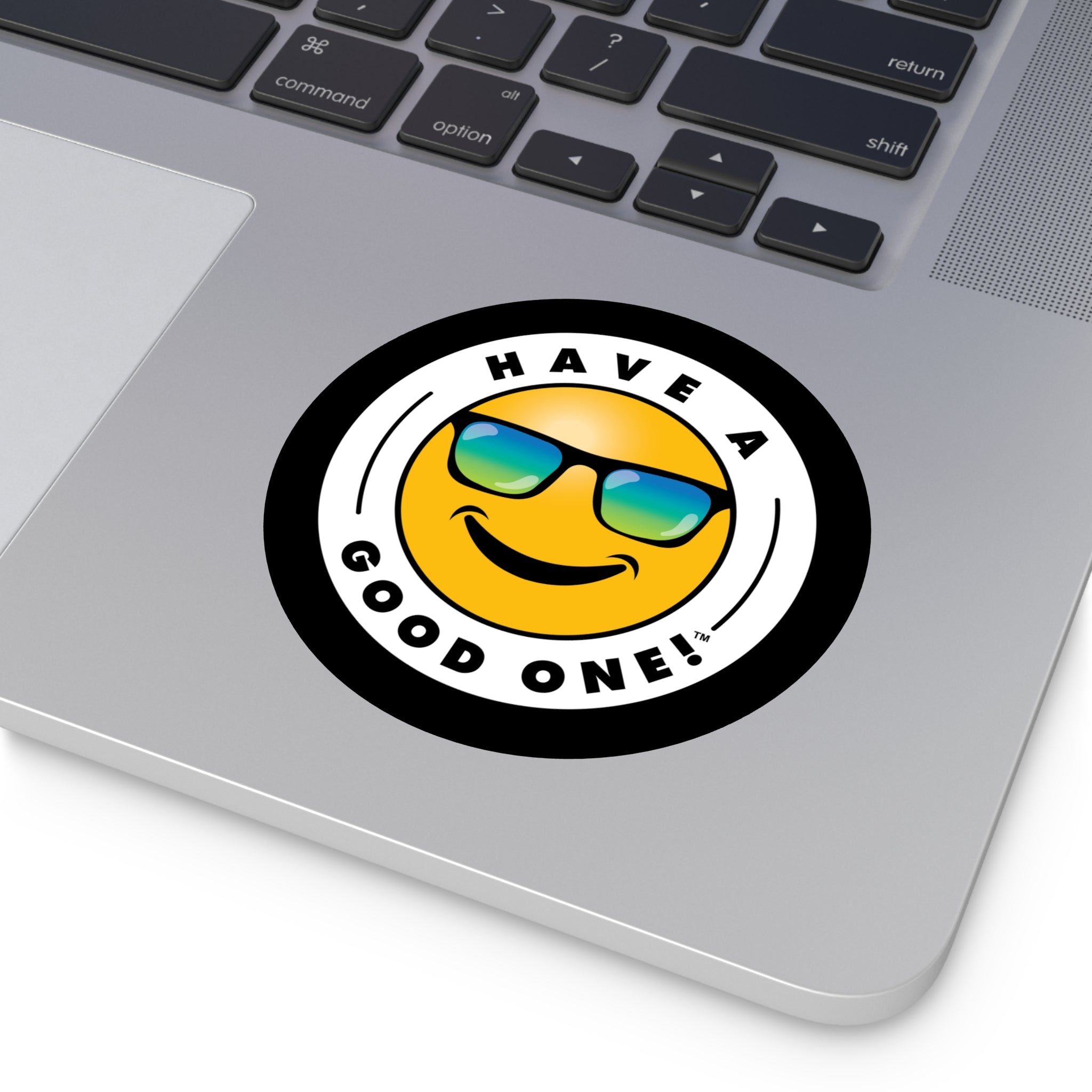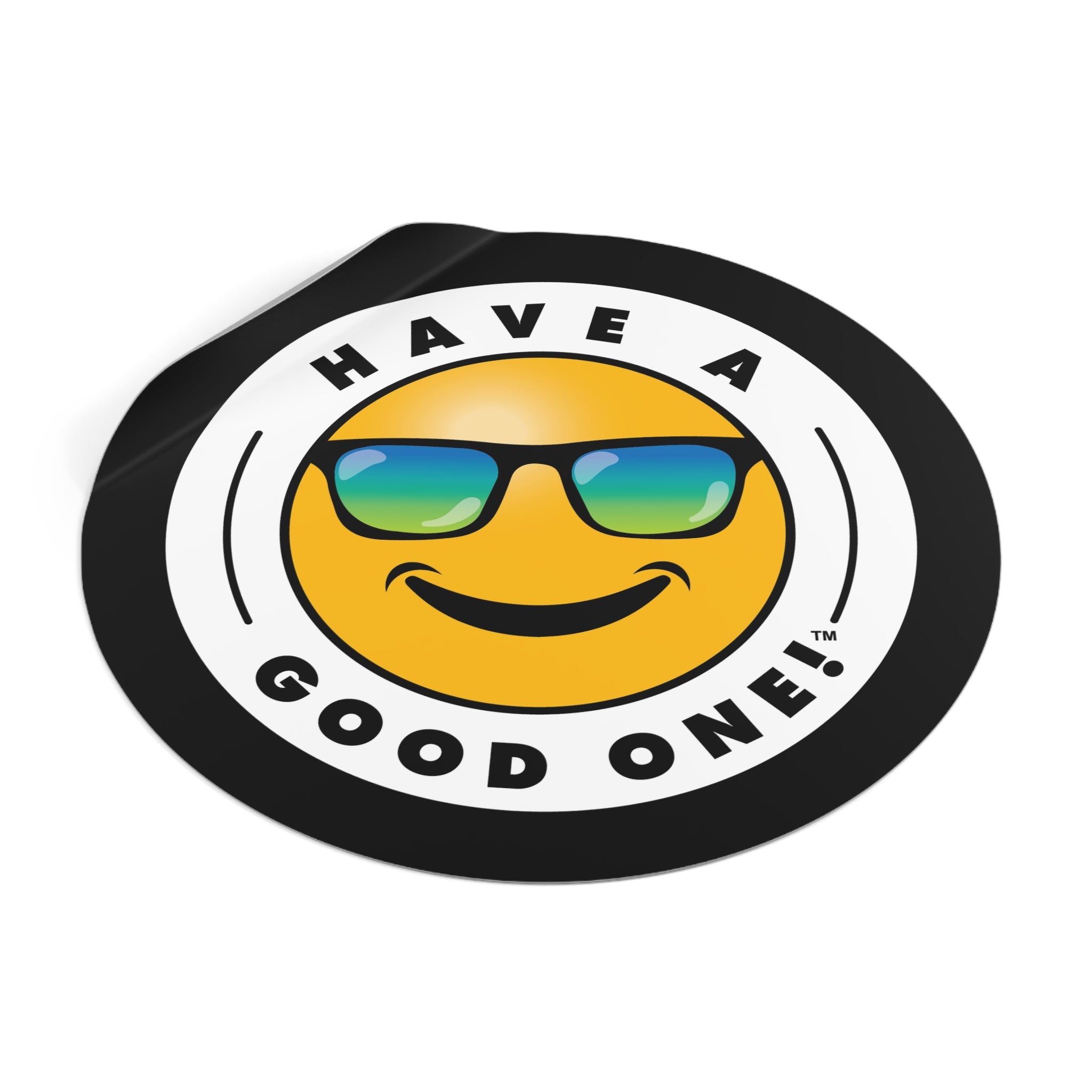 These fun circle stickers are great for adding a touch of personality and good cheer to any surface! These are rated to last over six years due to their high-quality production. The base materials are premium vinyl and vibrant inks. The design layer is covered by a UV resistant laminate. If removal is necessary, the adhesive backing won't leave residue behind. Just use a soft, clean and dry cloth to gently brush off any dust or dirt from center of sticker outward. You can put these cheerful stickers on notebooks, bikes, skateboards, car bumpers, musical instruments, computers, windows, gifts or just about anywhere! They are sure to brighten your day and make you smile however you use them! Share the good vibes with these fun stickers and Have A Good One!