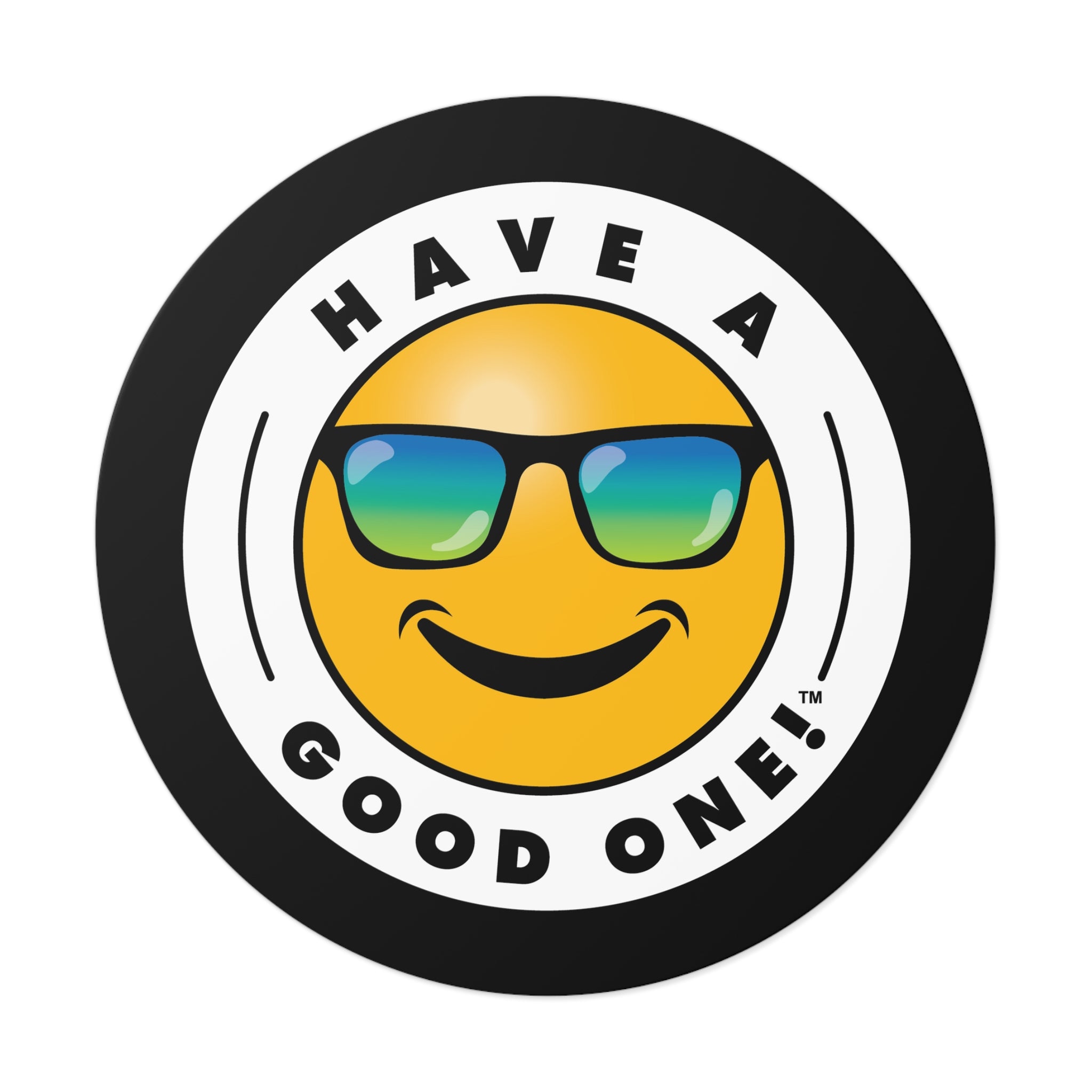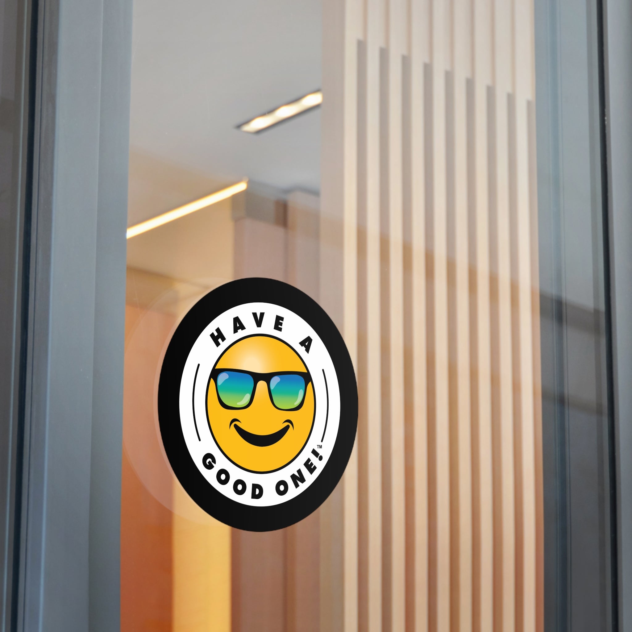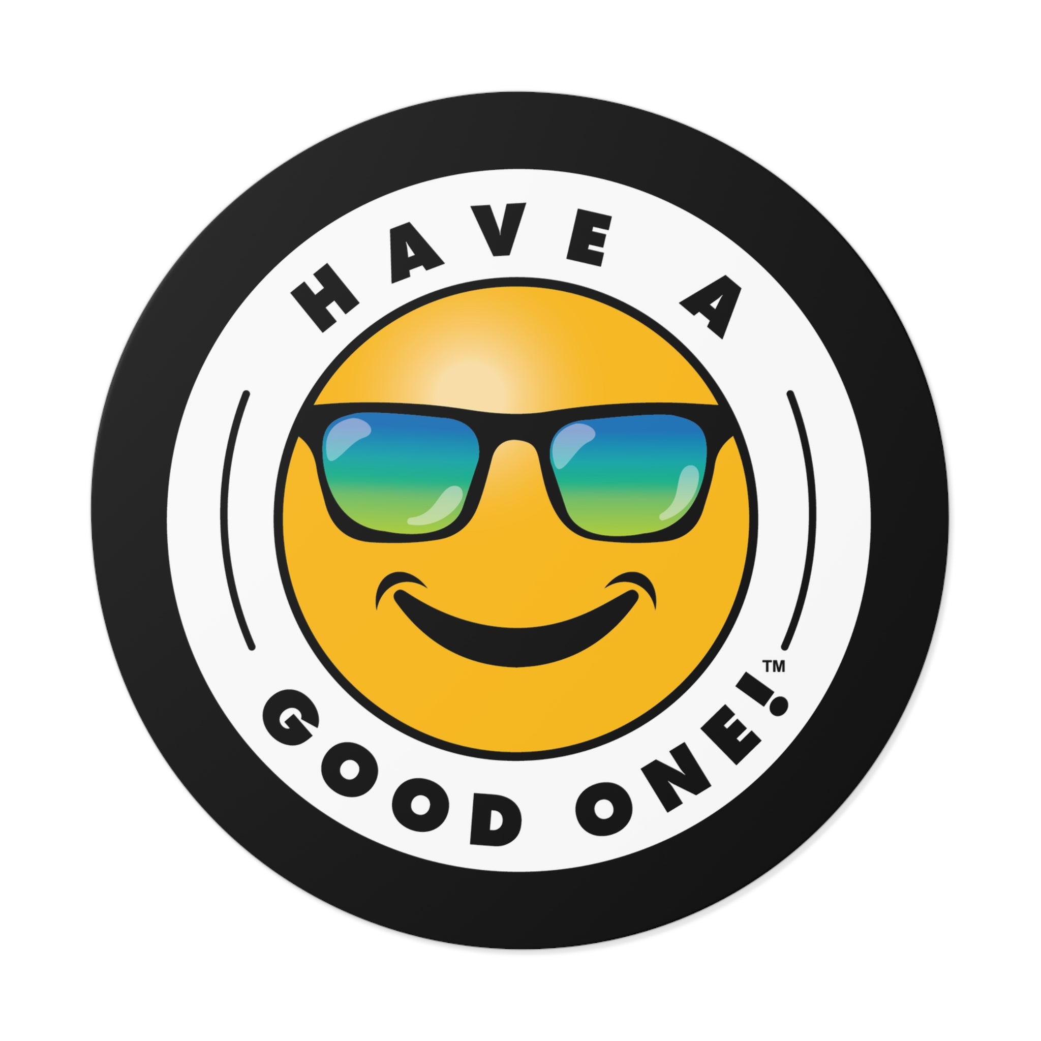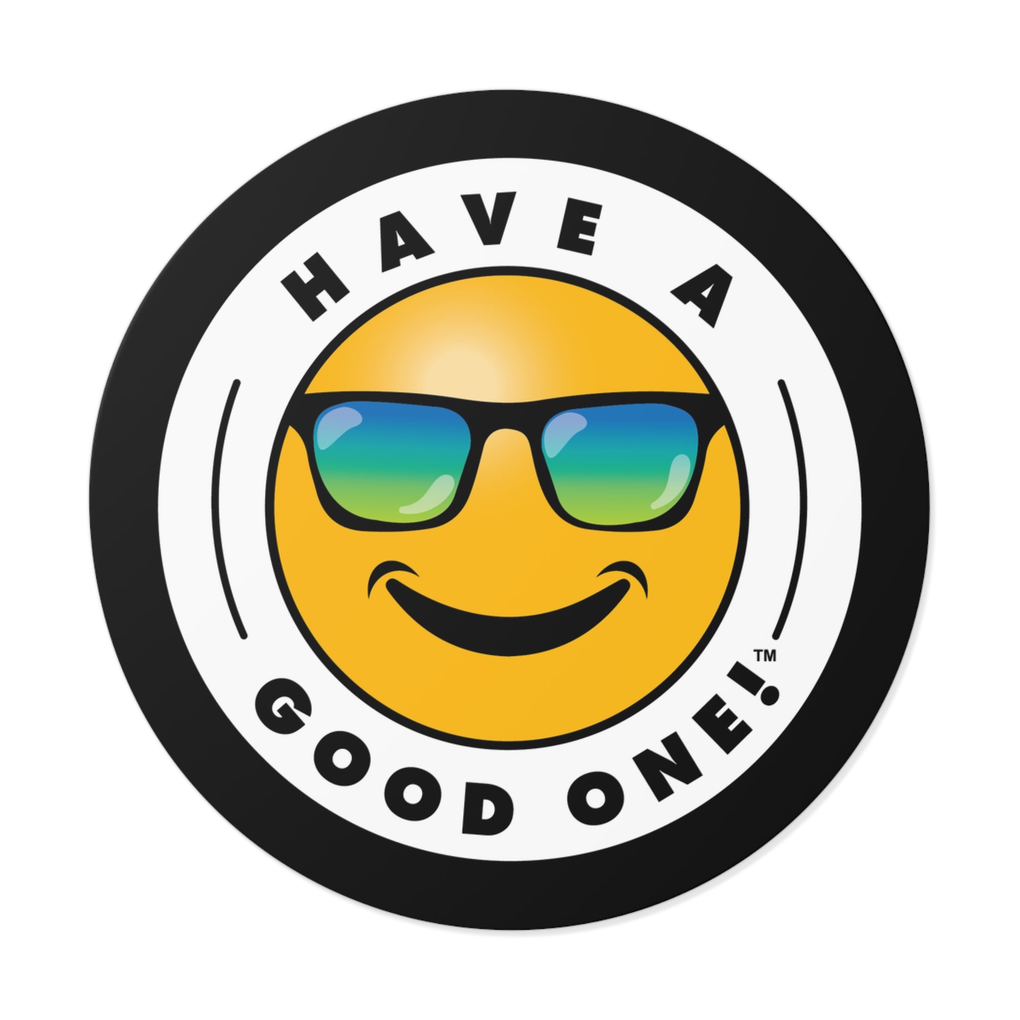 These fun circle stickers are great for adding a touch of personality and good cheer to any surface! These are rated to last over six years due to their high-quality production. The base materials are premium vinyl and vibrant inks. The design layer is covered by a UV resistant laminate. If removal is necessary, the adhesive backing won't leave residue behind. Just use a soft, clean and dry cloth to gently brush off any dust or dirt from center of sticker outward. You can put these cheerful stickers on notebooks, bikes, skateboards, car bumpers, musical instruments, computers, windows, gifts or just about anywhere! They are sure to brighten your day and make you smile however you use them! Share the good vibes with these fun stickers and Have A Good One!
