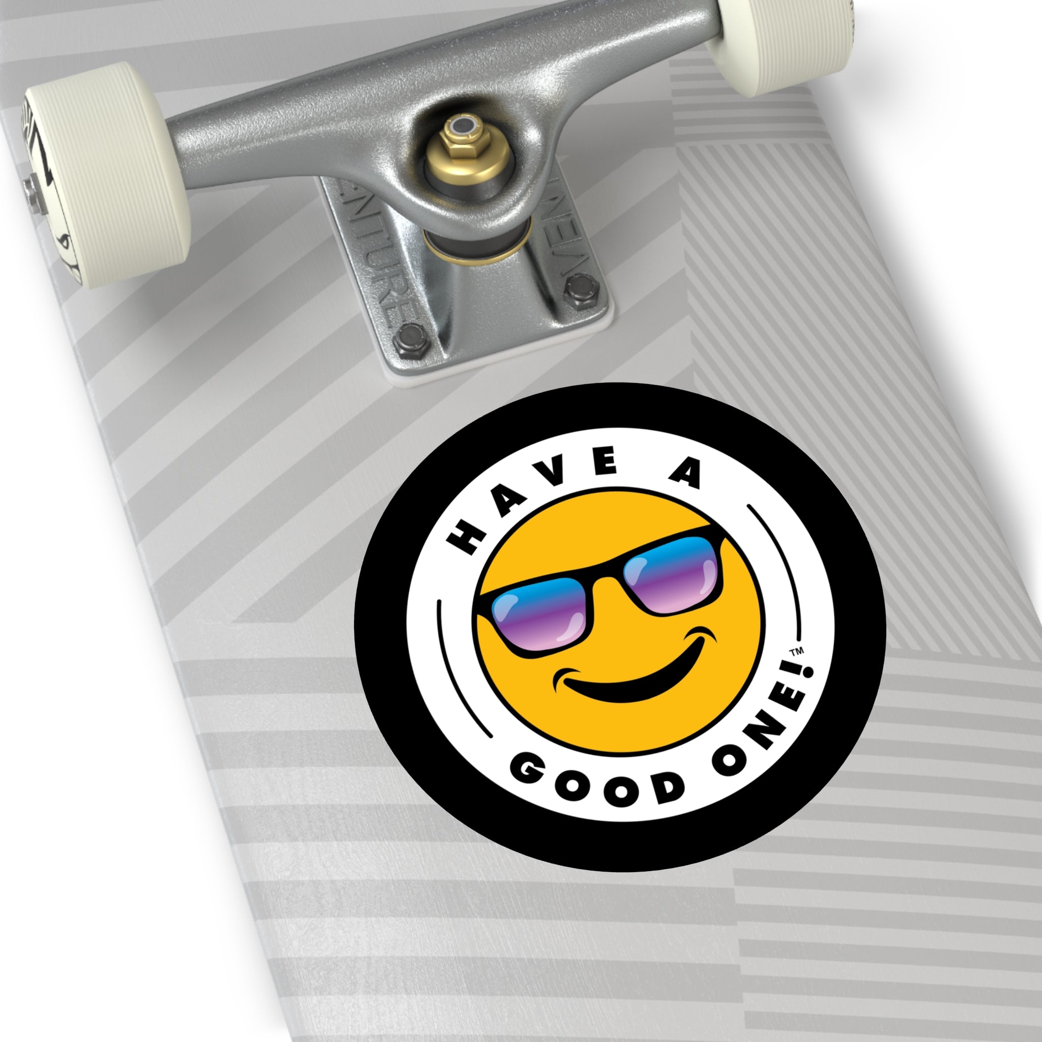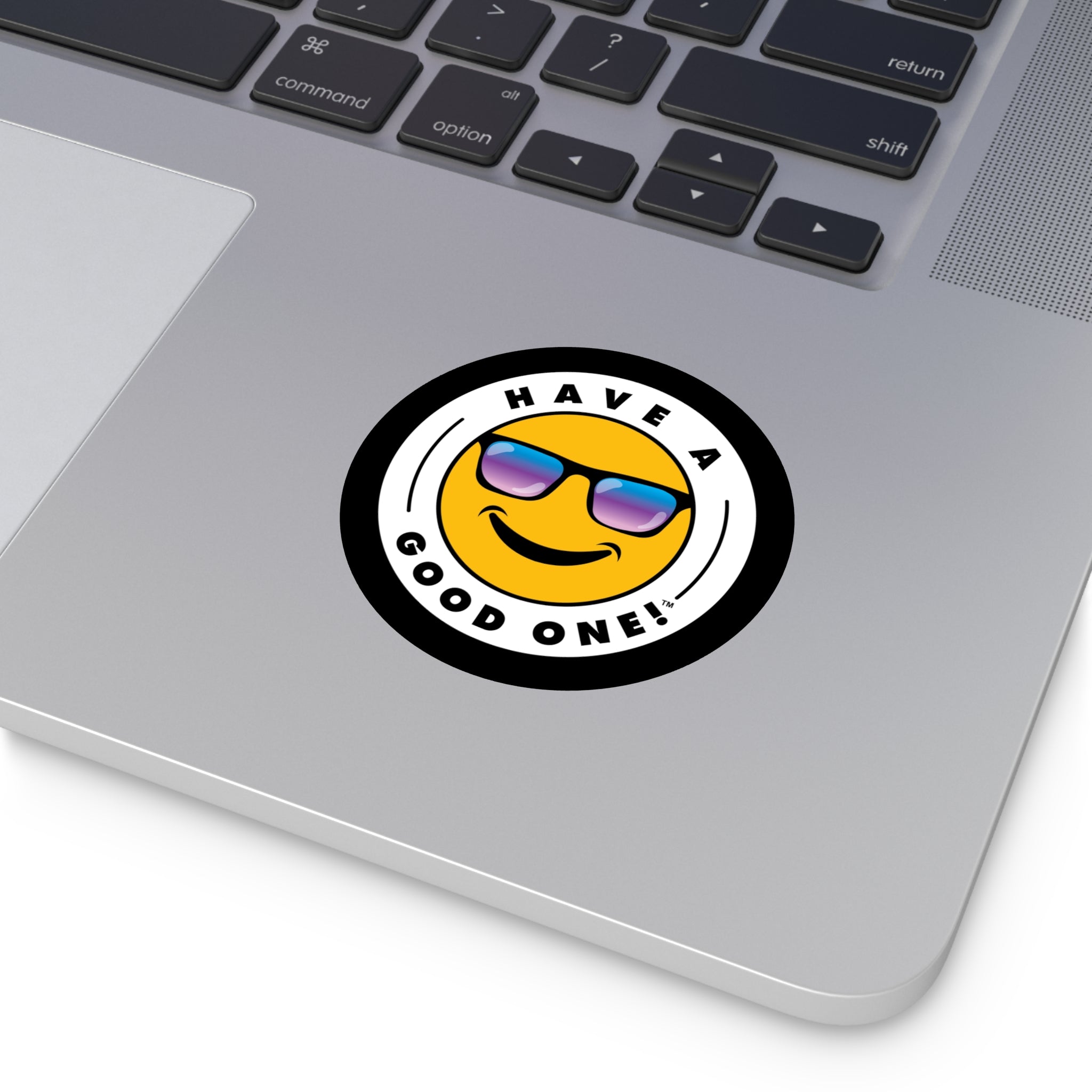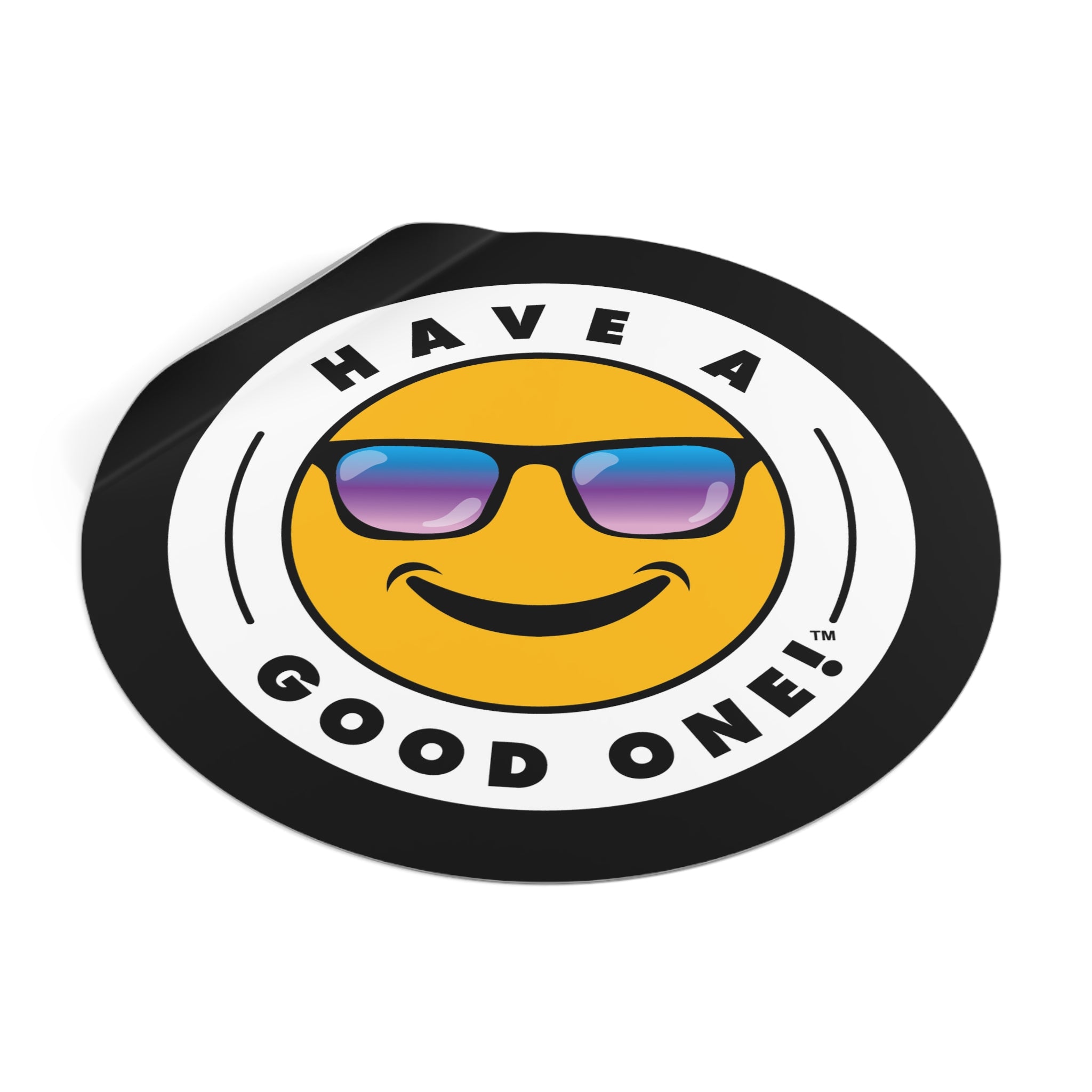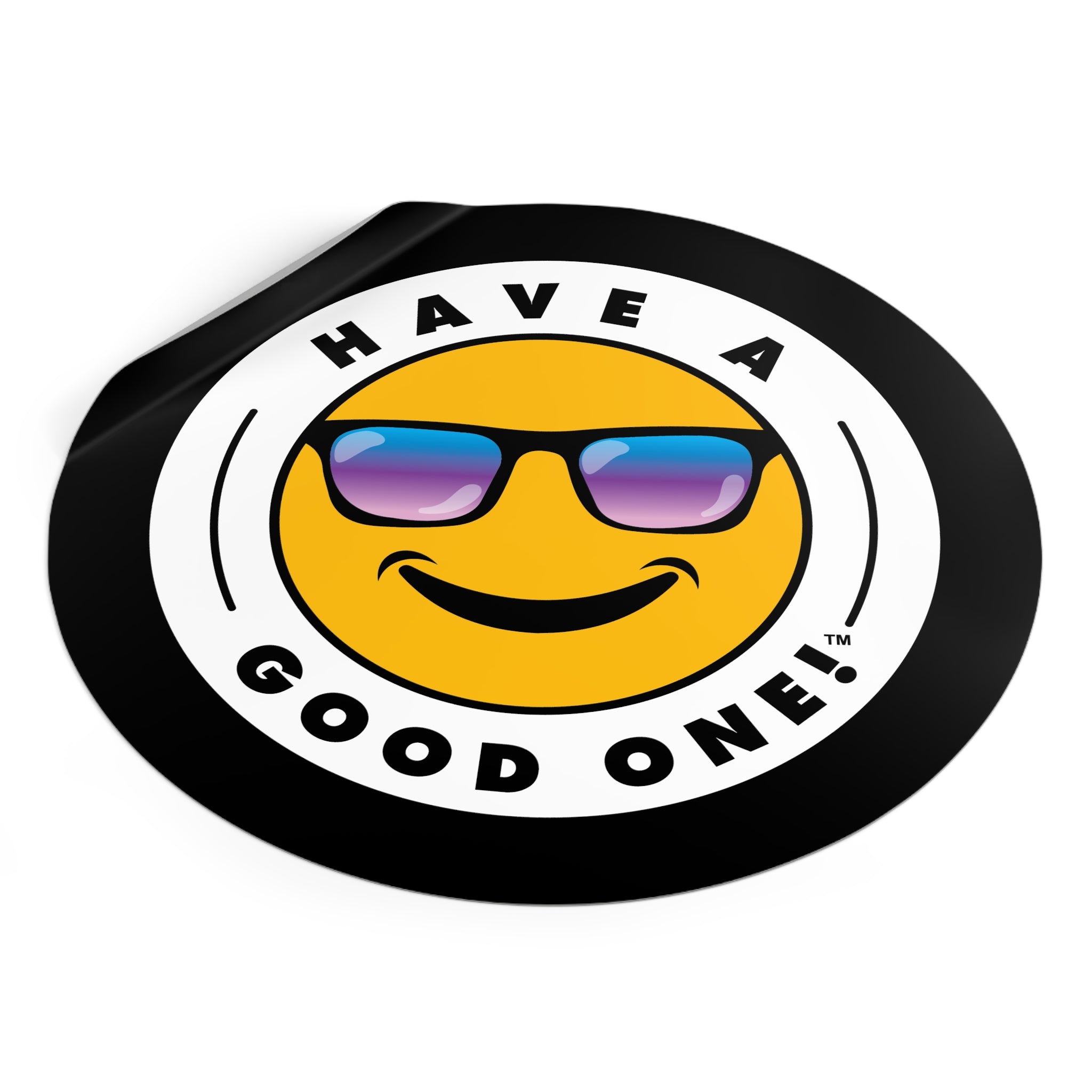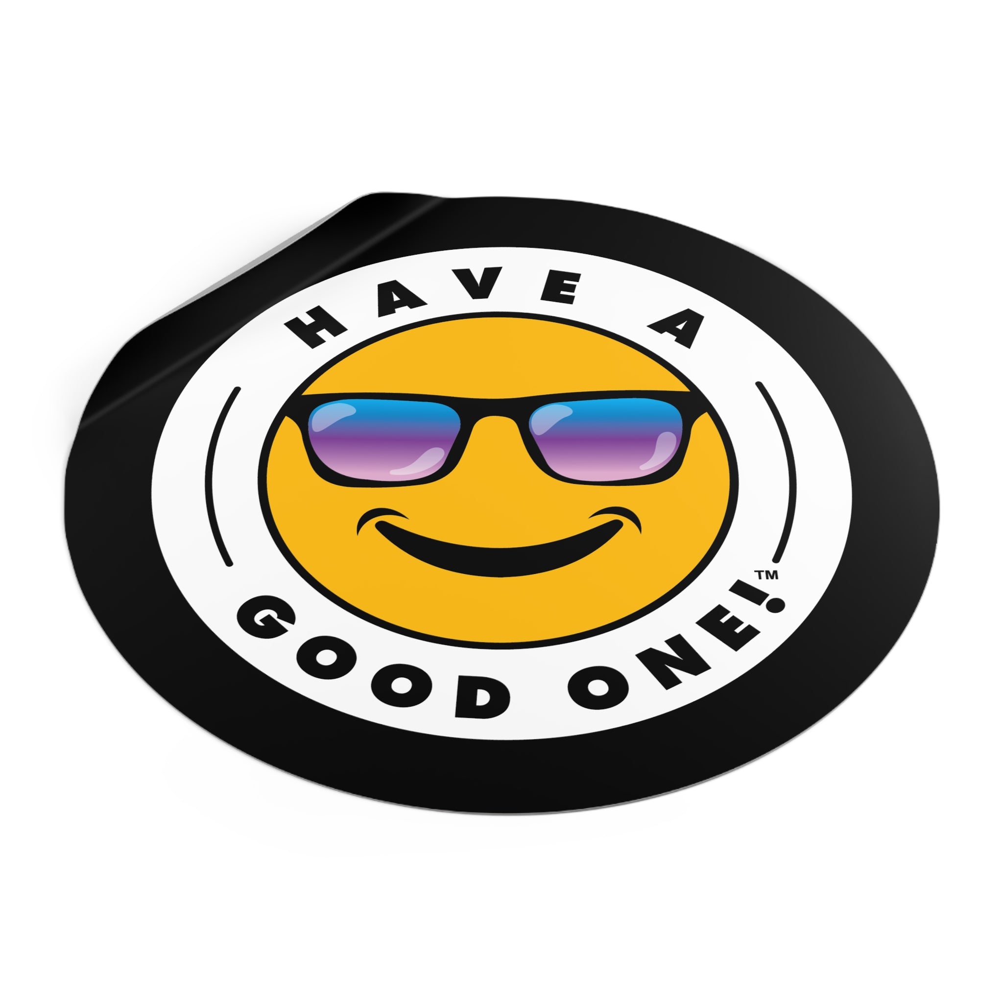 These fun circle stickers are great for adding a touch of personality and good cheer to any surface! These are rated to last over six years due to their high-quality production. The base materials are premium vinyl and vibrant inks. The design layer is covered by a UV resistant laminate. If removal is necessary, the adhesive backing won't leave residue behind. Just use a soft, clean and dry cloth to gently brush off any dust or dirt from center of sticker outward. You can put these cheerful stickers on notebooks, bikes, skateboards, car bumpers, musical instruments, computers, windows, gifts or just about anywhere! They are sure to brighten your day and make you smile however you use them! Share the good vibes with these fun stickers and Have A Good One!