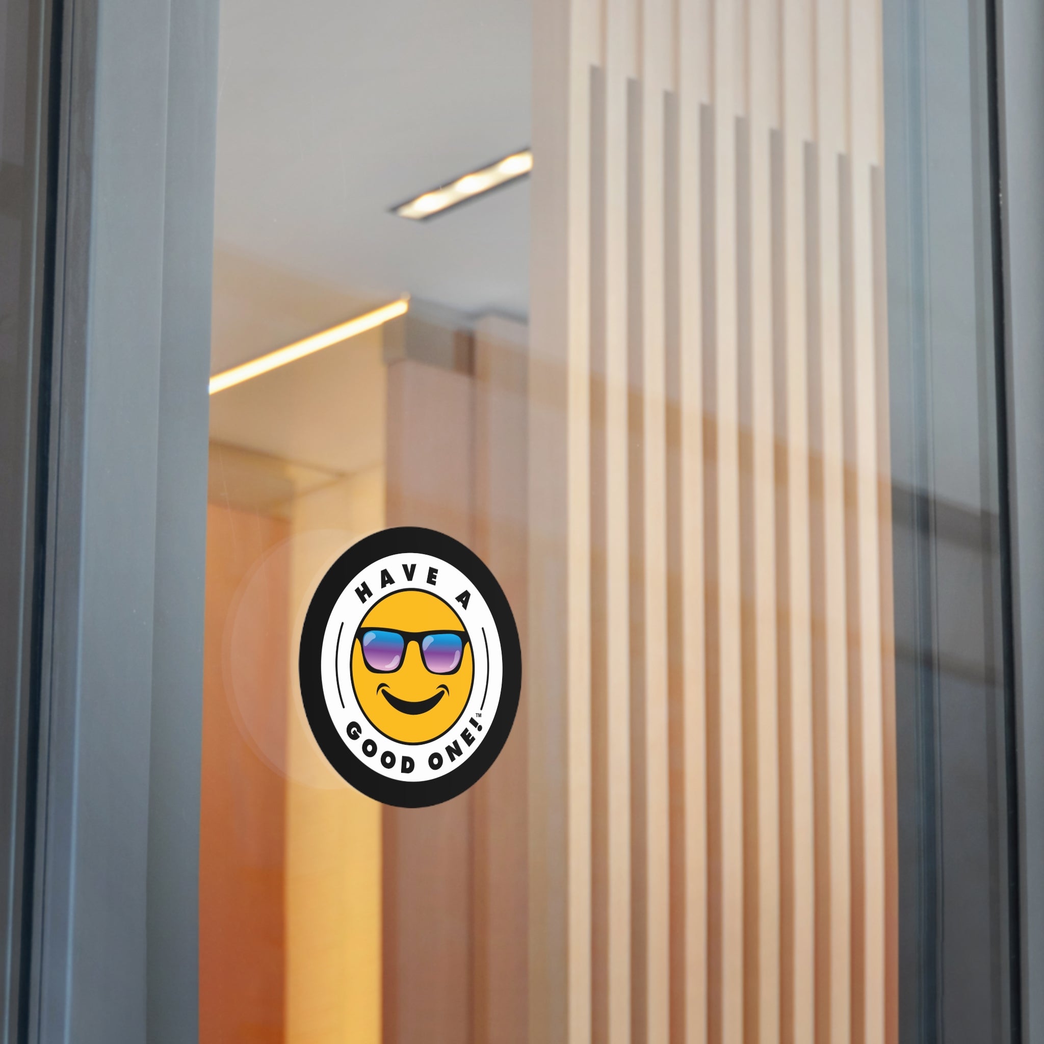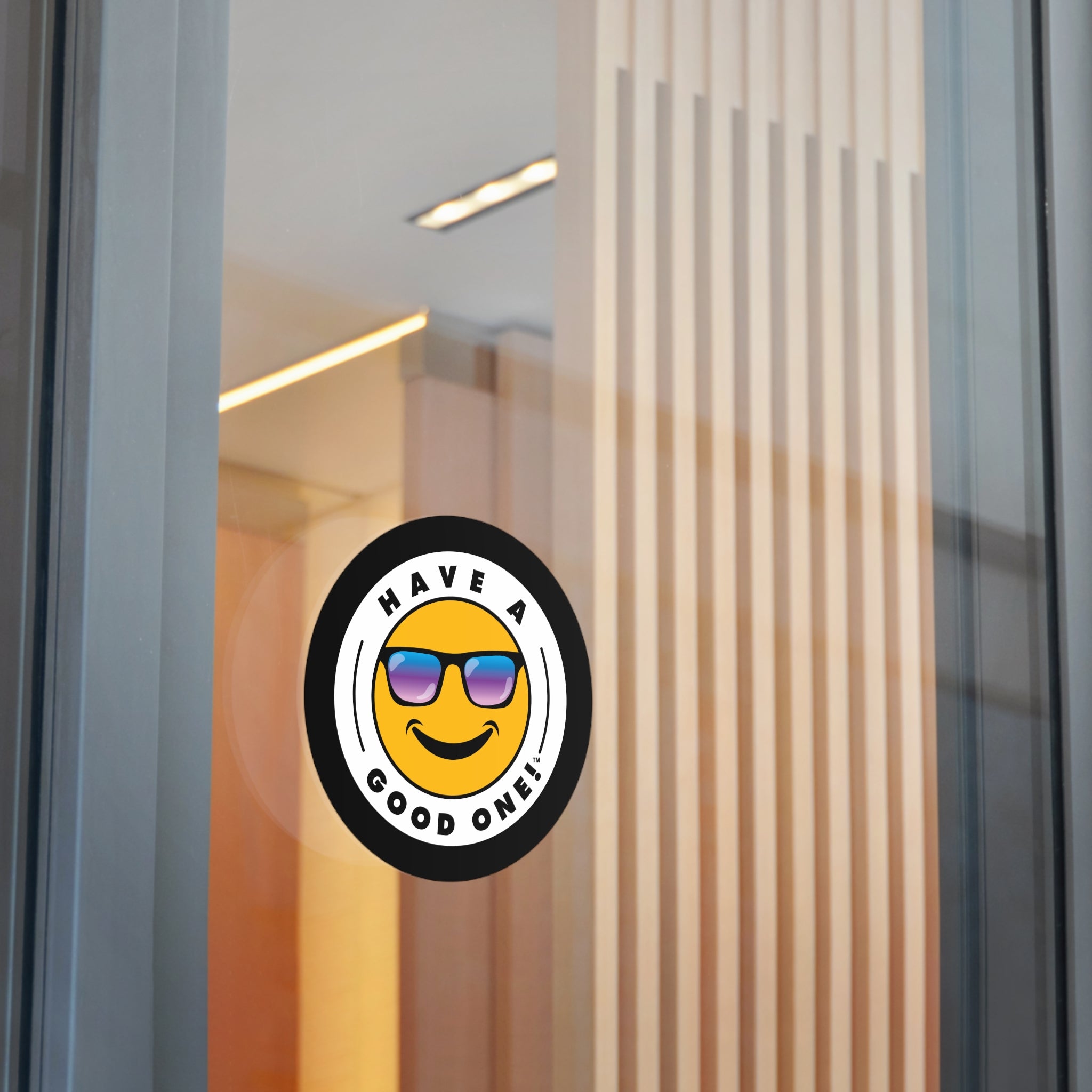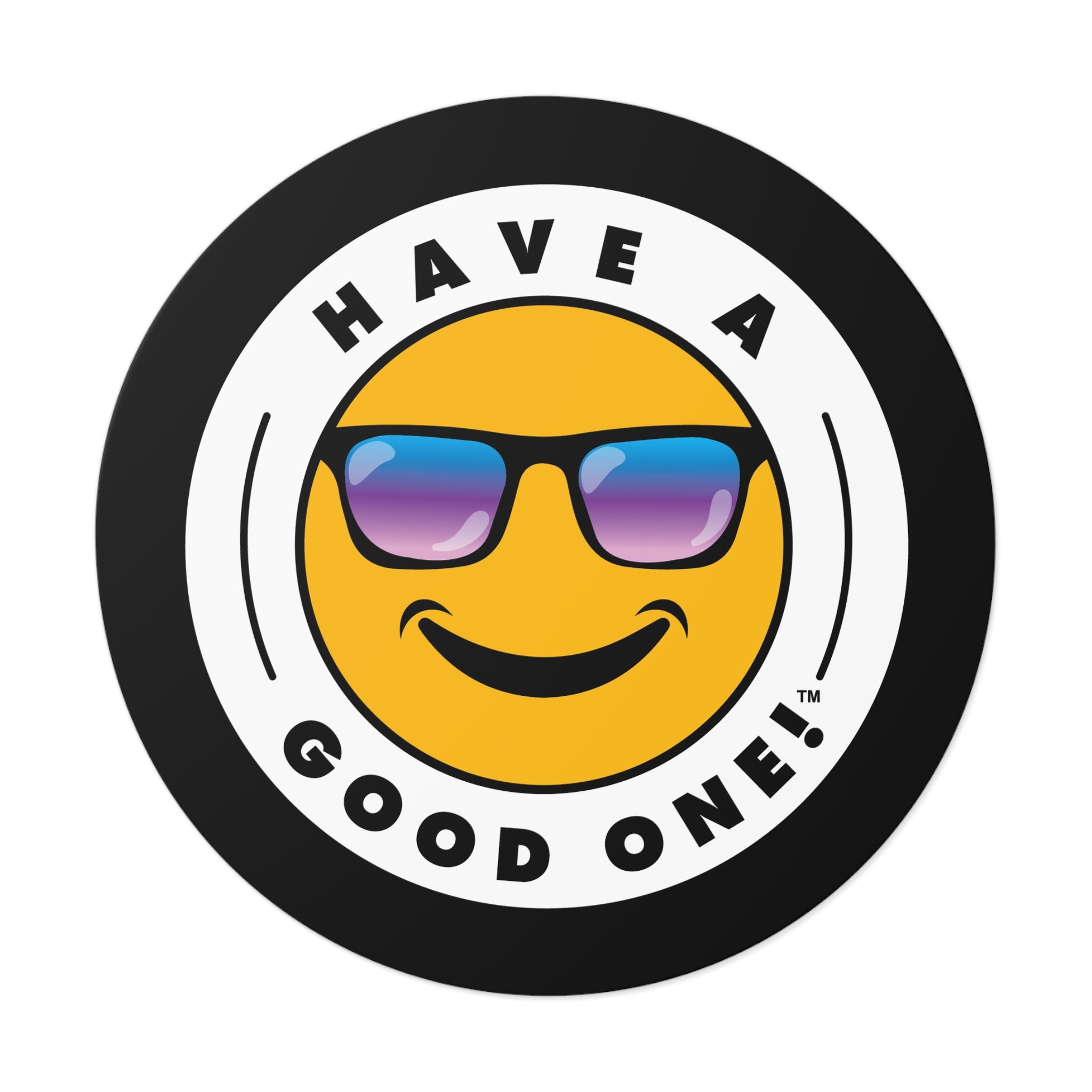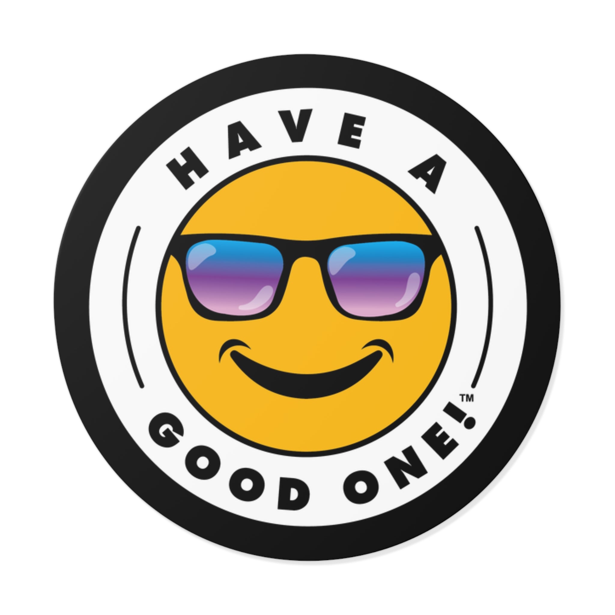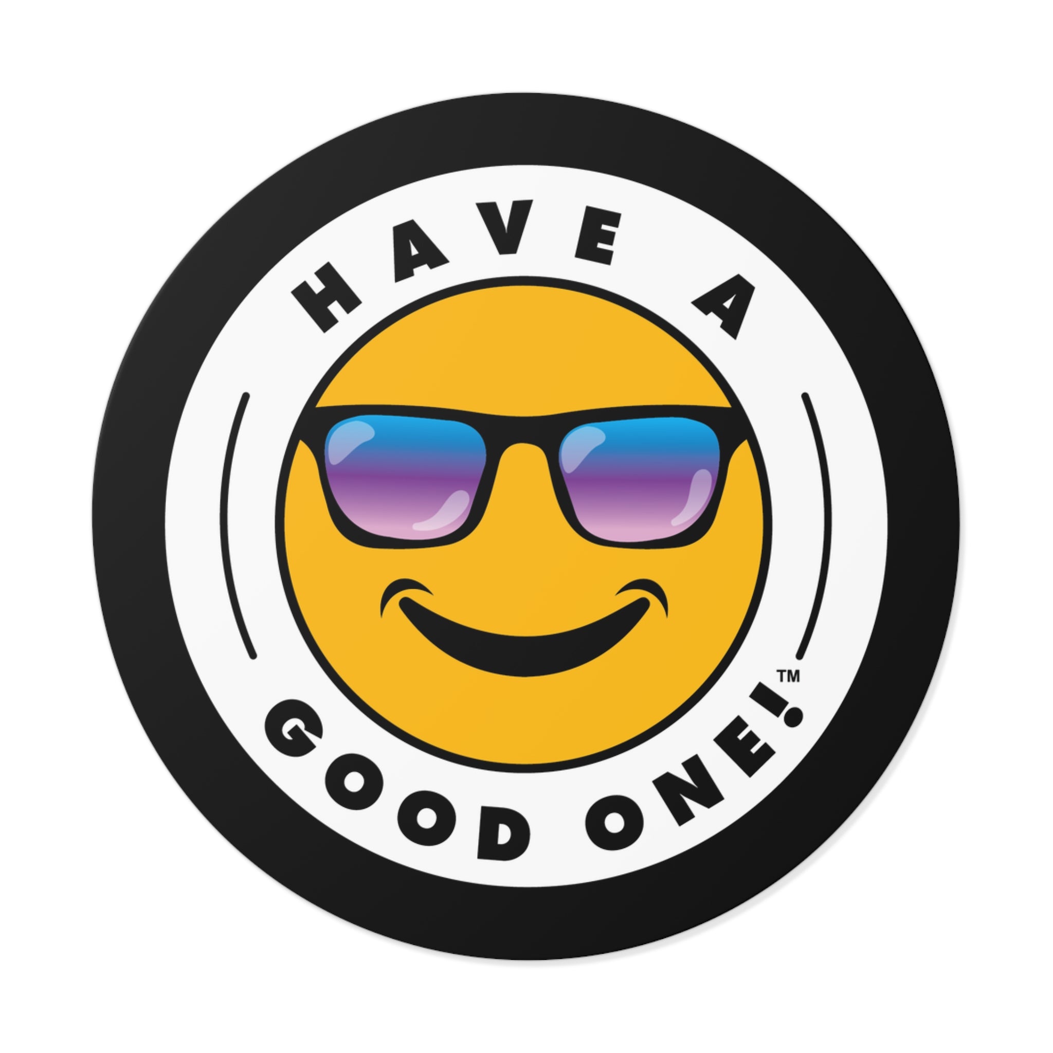 These fun circle stickers are great for adding a touch of personality and good cheer to any surface! These are rated to last over six years due to their high-quality production. The base materials are premium vinyl and vibrant inks. The design layer is covered by a UV resistant laminate. If removal is necessary, the adhesive backing won't leave residue behind. Just use a soft, clean and dry cloth to gently brush off any dust or dirt from center of sticker outward. You can put these cheerful stickers on notebooks, bikes, skateboards, car bumpers, musical instruments, computers, windows, gifts or just about anywhere! They are sure to brighten your day and make you smile however you use them! Share the good vibes with these fun stickers and Have A Good One!