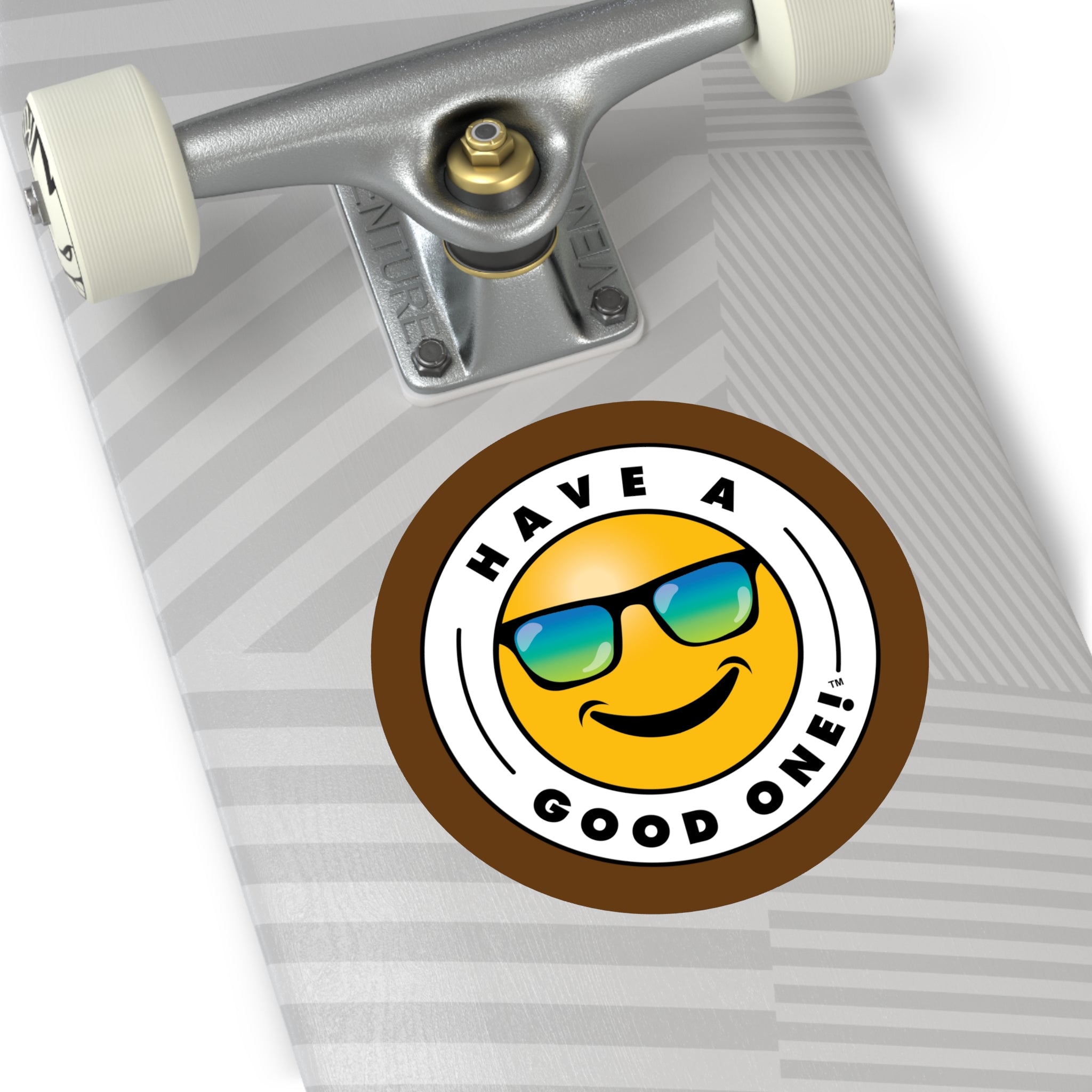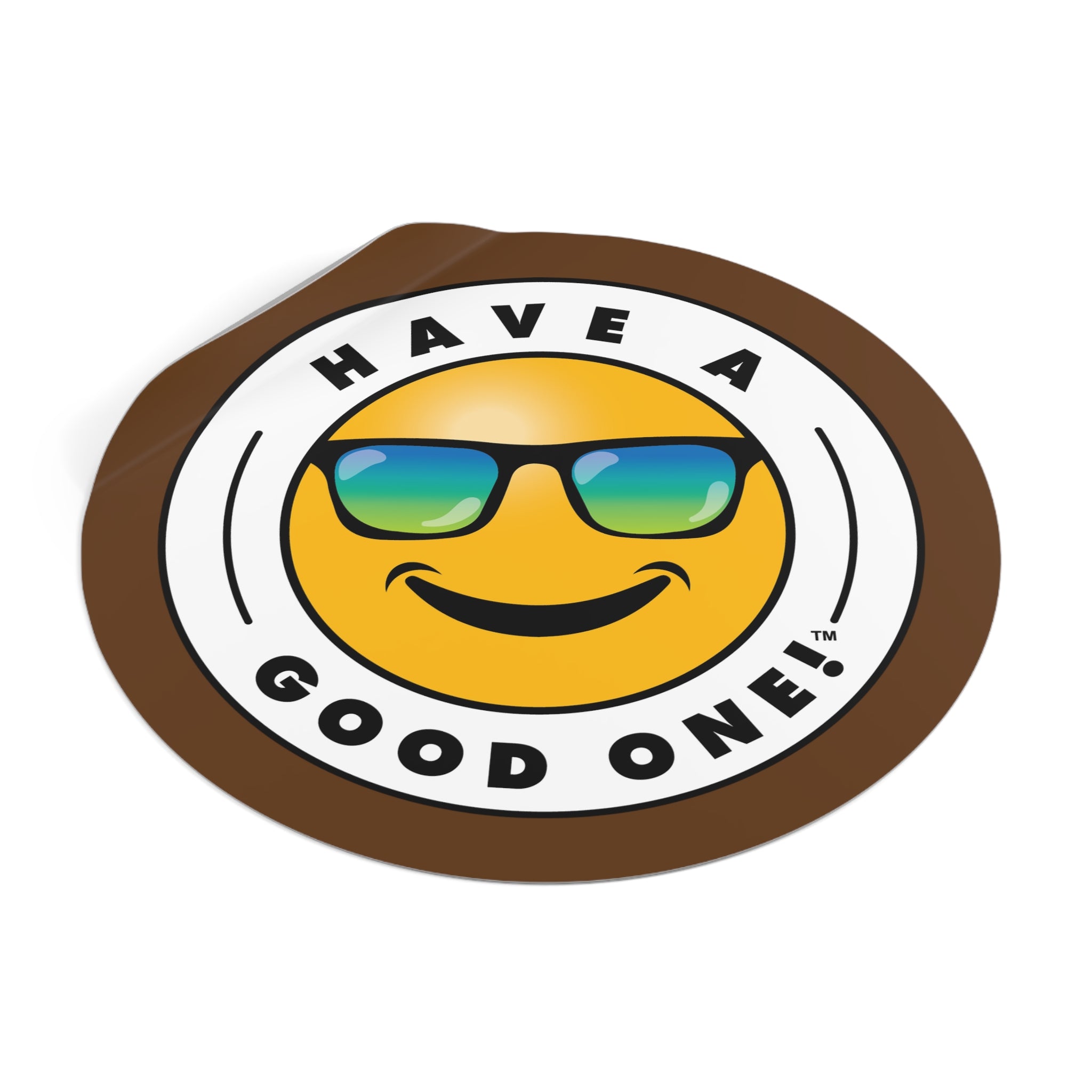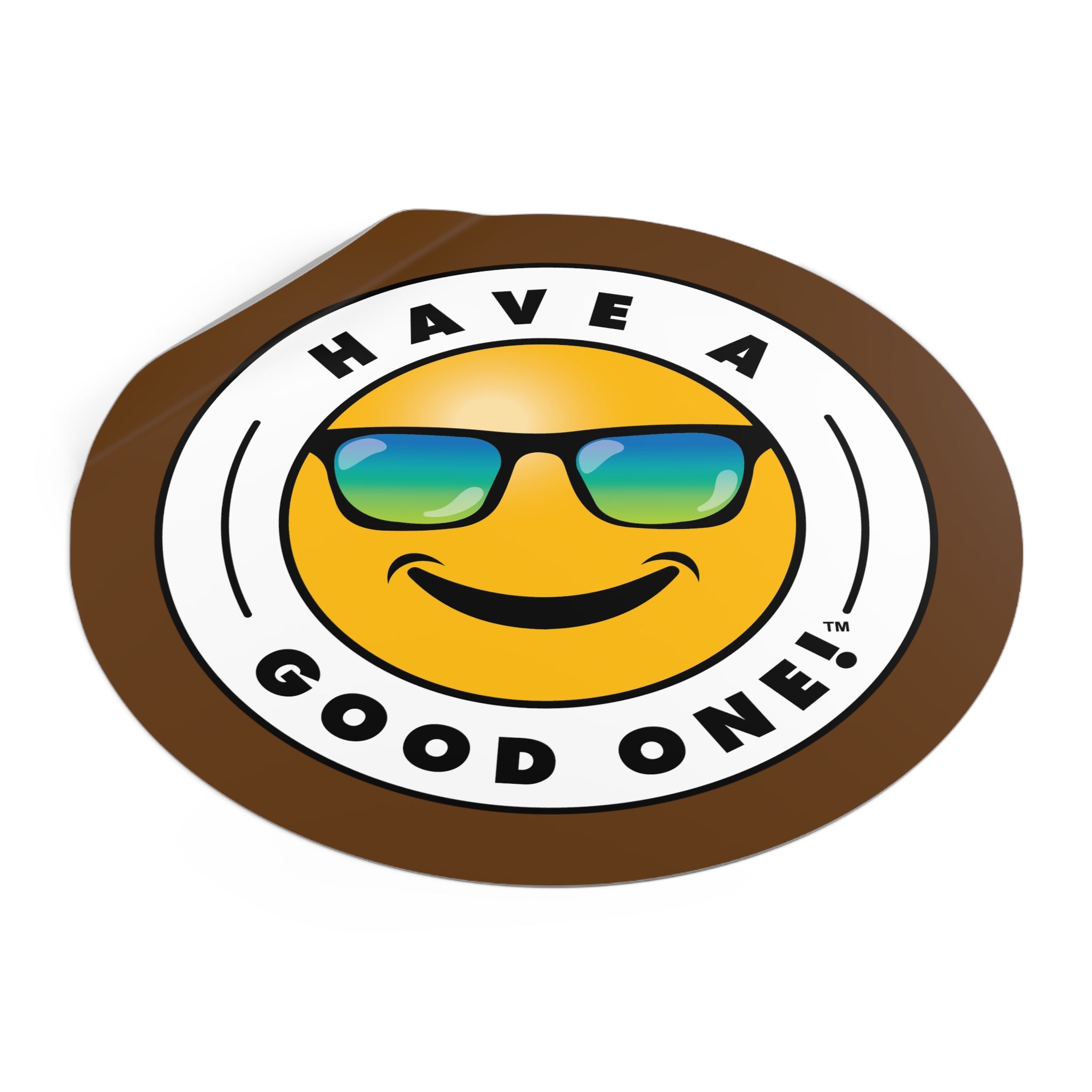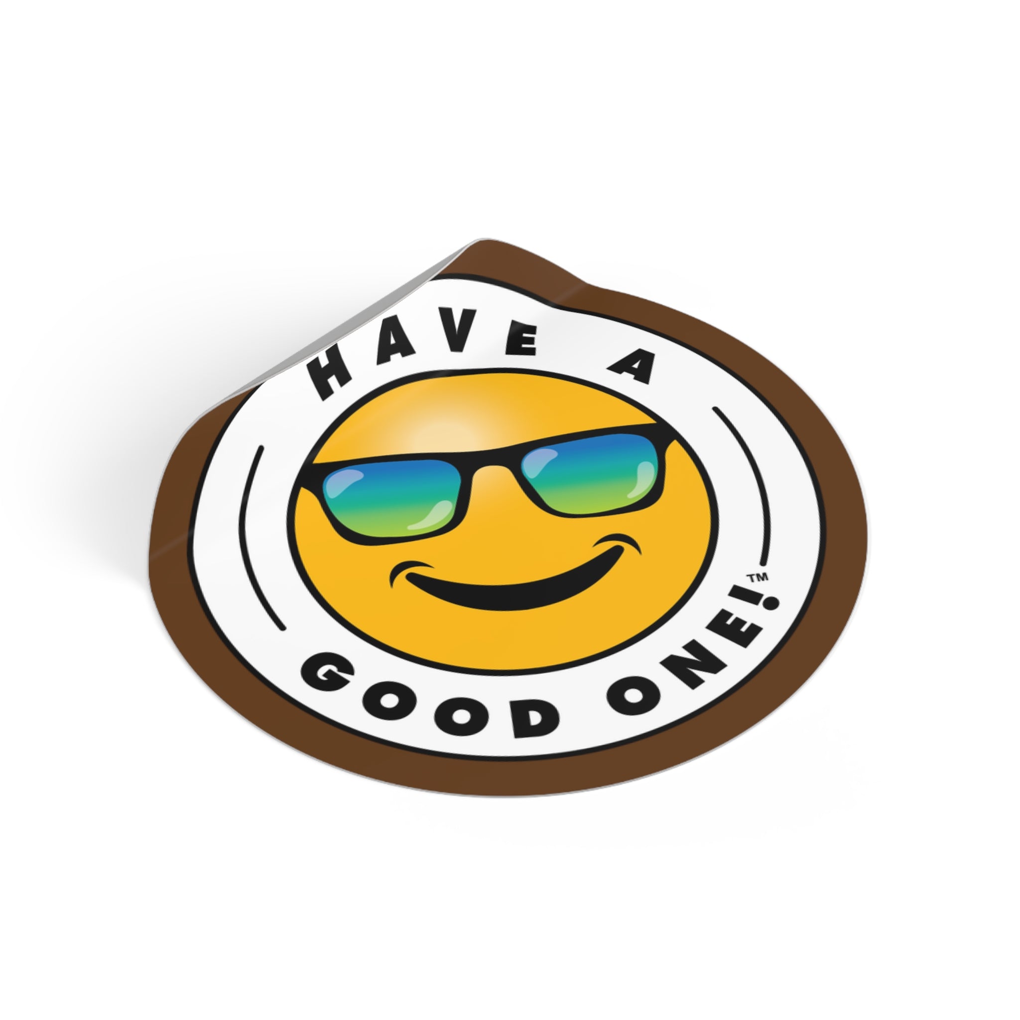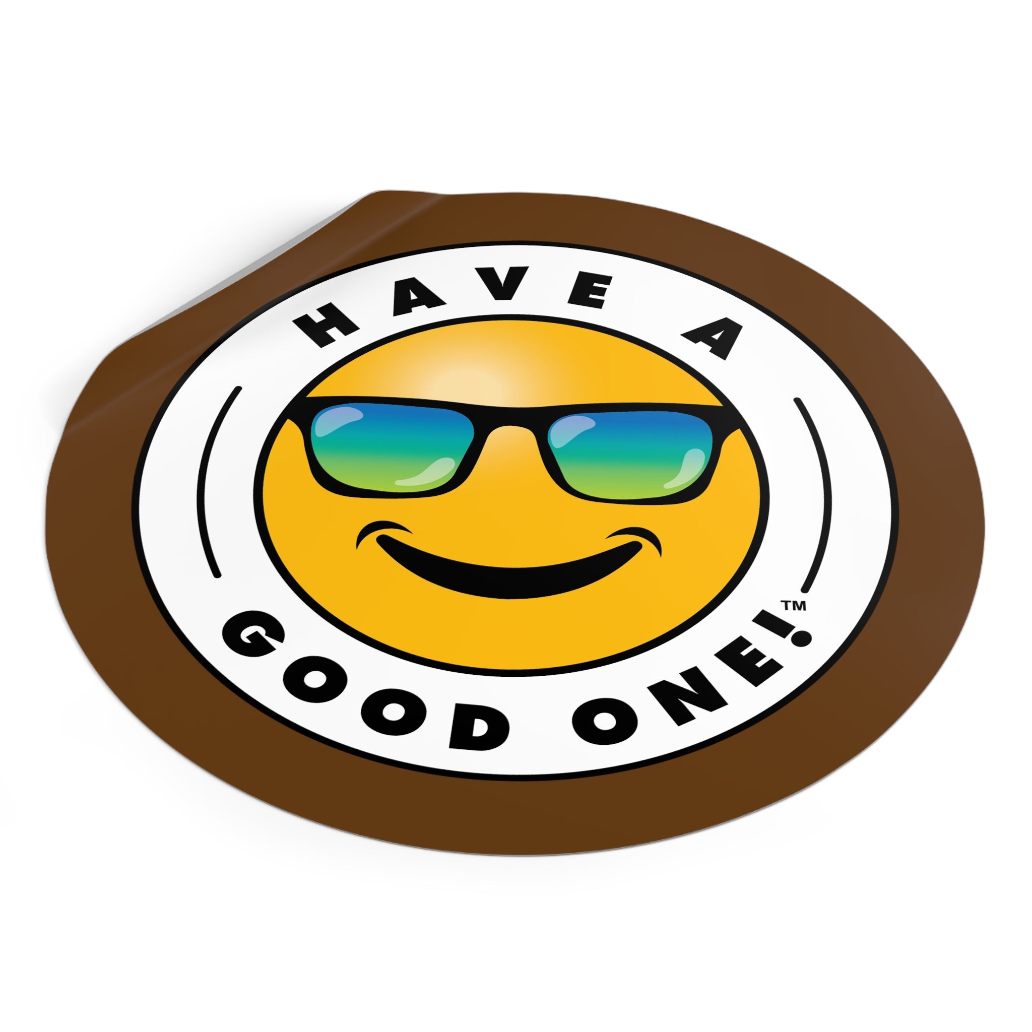 These fun circle stickers are great for adding a touch of personality and good cheer to any surface! These are rated to last over six years due to their high-quality production. The base materials are premium vinyl and vibrant inks. The design layer is covered by a UV resistant laminate. If removal is necessary, the adhesive backing won't leave residue behind. Just use a soft, clean and dry cloth to gently brush off any dust or dirt from center of sticker outward. You can put these cheerful stickers on notebooks, bikes, skateboards, car bumpers, musical instruments, computers, windows, gifts or just about anywhere! They are sure to brighten your day and make you smile however you use them! Share the good vibes with these fun stickers and Have A Good One!