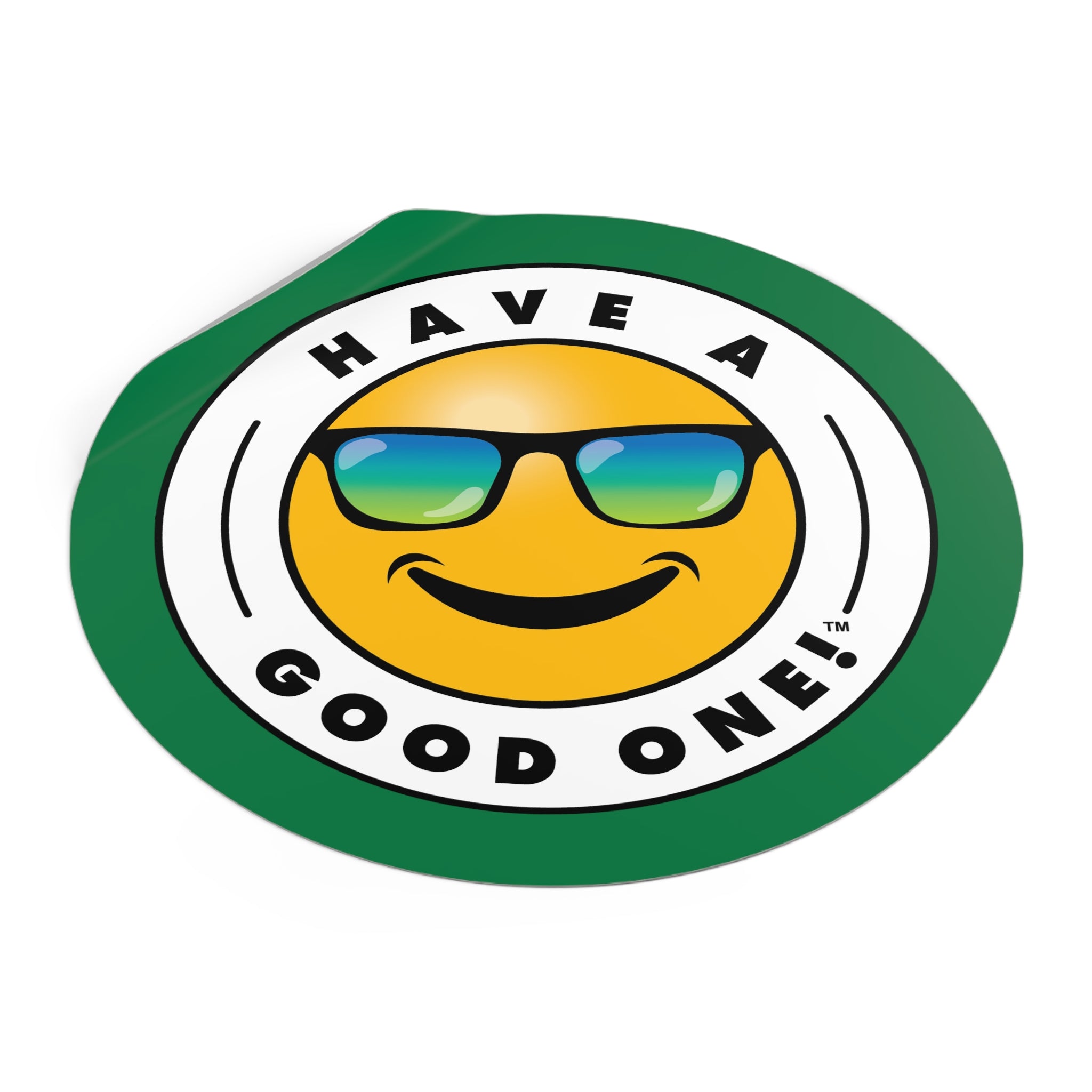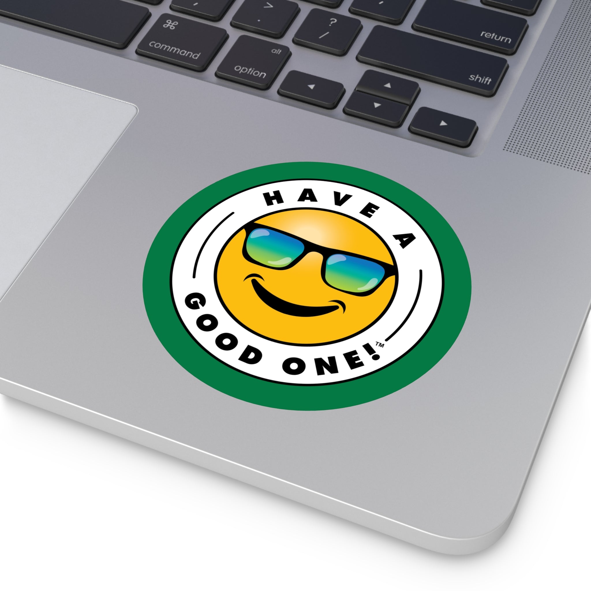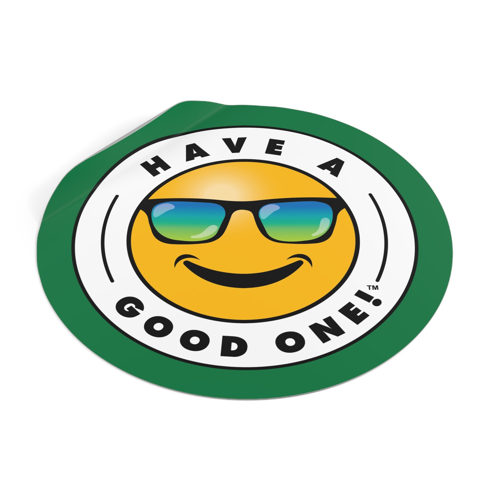 These fun circle stickers are great for adding a touch of personality and good cheer to any surface! These are rated to last over six years due to their high-quality production. The base materials are premium vinyl and vibrant inks. The design layer is covered by a UV resistant laminate. If removal is necessary, the adhesive backing won't leave residue behind. Just use a soft, clean and dry cloth to gently brush off any dust or dirt from center of sticker outward. You can put these cheerful stickers on notebooks, bikes, skateboards, car bumpers, musical instruments, computers, windows, gifts or just about anywhere! They are sure to brighten your day and make you smile however you use them! Share the good vibes with these fun stickers and Have A Good One!