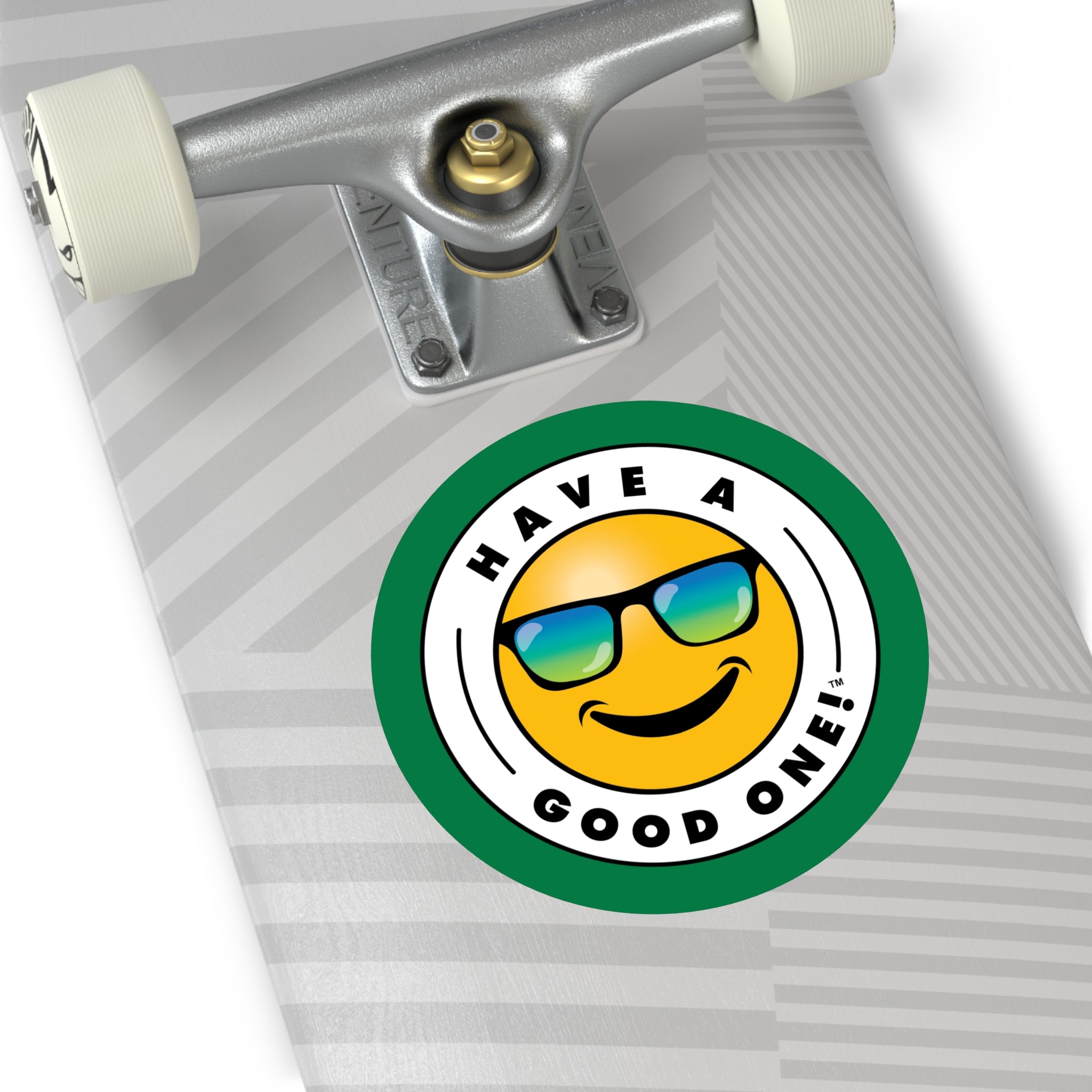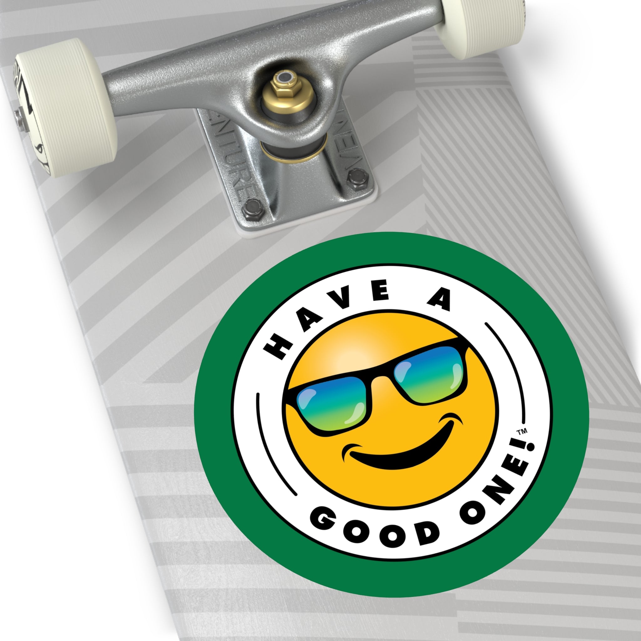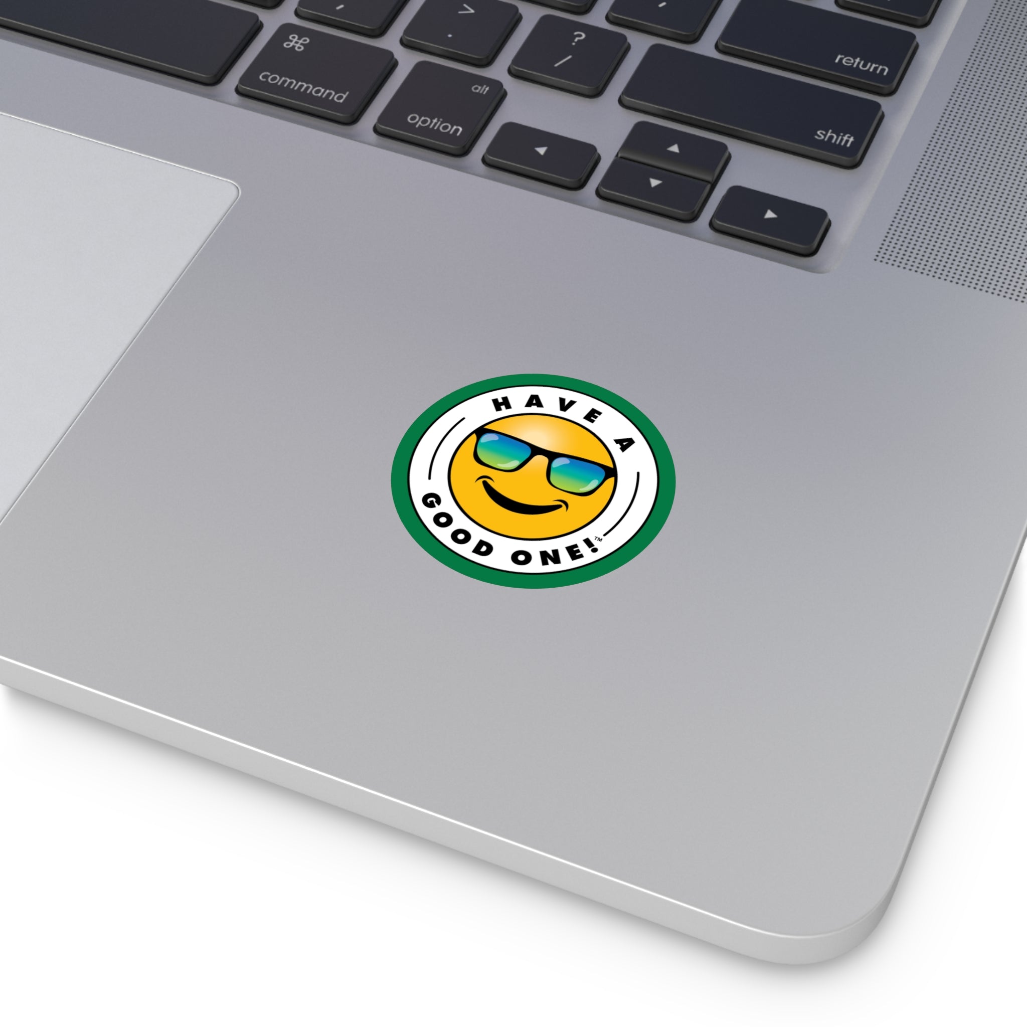 These fun circle stickers are great for adding a touch of personality and good cheer to any surface! These are rated to last over six years due to their high-quality production. The base materials are premium vinyl and vibrant inks. The design layer is covered by a UV resistant laminate. If removal is necessary, the adhesive backing won't leave residue behind. Just use a soft, clean and dry cloth to gently brush off any dust or dirt from center of sticker outward. You can put these cheerful stickers on notebooks, bikes, skateboards, car bumpers, musical instruments, computers, windows, gifts or just about anywhere! They are sure to brighten your day and make you smile however you use them! Share the good vibes with these fun stickers and Have A Good One!