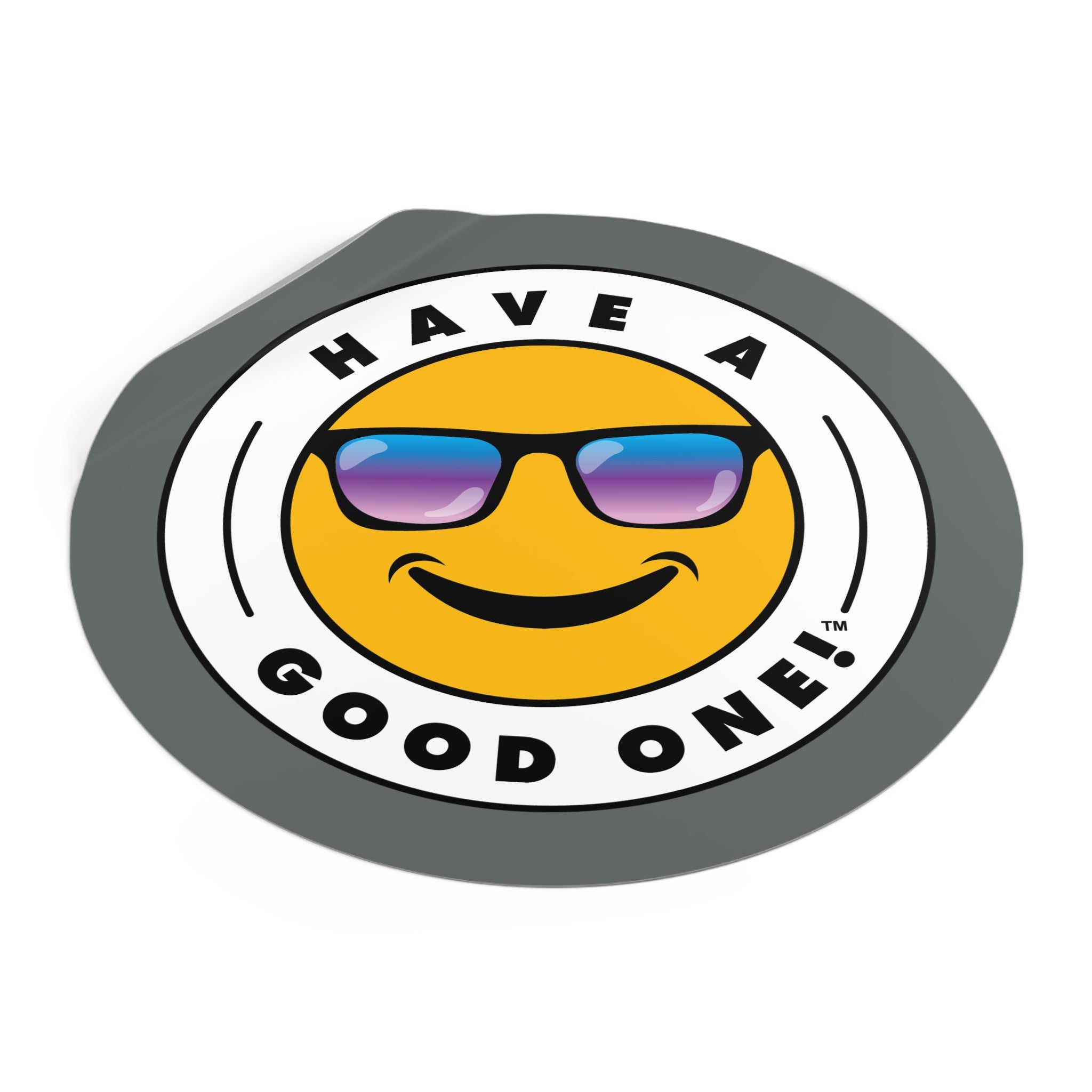 These fun circle stickers are great for adding a touch of personality and good cheer to any surface! These are rated to last over six years due to their high-quality production. The base materials are premium vinyl and vibrant inks. The design layer is covered by a UV resistant laminate. If removal is necessary, the adhesive backing won't leave residue behind. Just use a soft, clean and dry cloth to gently brush off any dust or dirt from center of sticker outward. You can put these cheerful stickers on notebooks, bikes, skateboards, car bumpers, musical instruments, computers, windows, gifts or just about anywhere! They are sure to brighten your day and make you smile however you use them! Share the good vibes with these fun stickers and Have A Good One!