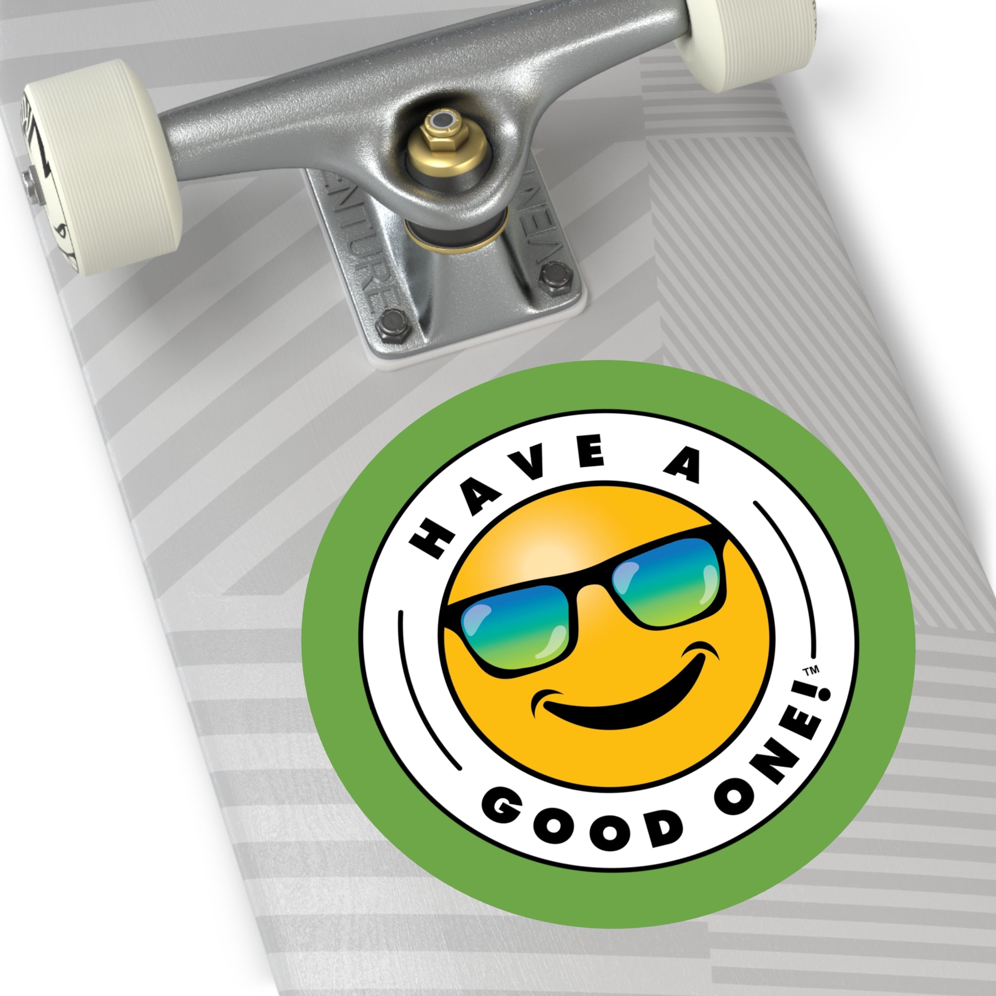 These fun circle stickers are great for adding a touch of personality and good cheer to any surface! These are rated to last over six years due to their high-quality production. The base materials are premium vinyl and vibrant inks. The design layer is covered by a UV resistant laminate. If removal is necessary, the adhesive backing won't leave residue behind. Just use a soft, clean and dry cloth to gently brush off any dust or dirt from center of sticker outward. You can put these cheerful stickers on notebooks, bikes, skateboards, car bumpers, musical instruments, computers, windows, gifts or just about anywhere! They are sure to brighten your day and make you smile however you use them! Share the good vibes with these fun stickers and Have A Good One!