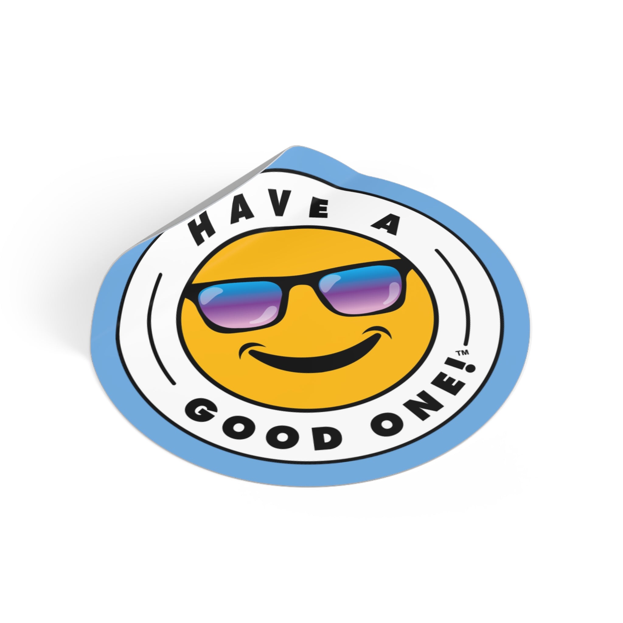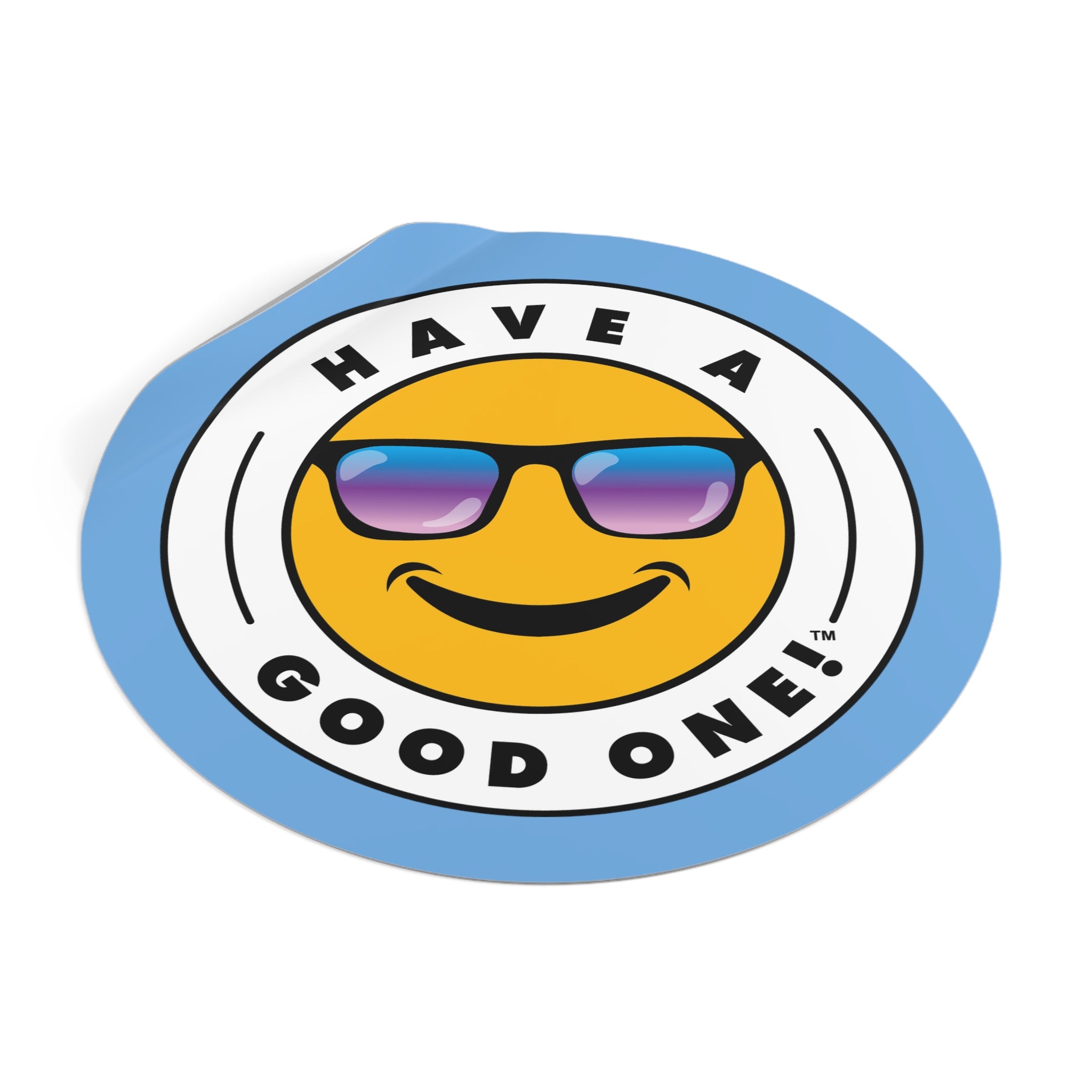 These fun circle stickers are great for adding a touch of personality and good cheer to any surface! These are rated to last over six years due to their high-quality production. The base materials are premium vinyl and vibrant inks. The design layer is covered by a UV resistant laminate. If removal is necessary, the adhesive backing won't leave residue behind. Just use a soft, clean and dry cloth to gently brush off any dust or dirt from center of sticker outward. You can put these cheerful stickers on notebooks, bikes, skateboards, car bumpers, musical instruments, computers, windows, gifts or just about anywhere! They are sure to brighten your day and make you smile however you use them! Share the good vibes with these fun stickers and Have A Good One!