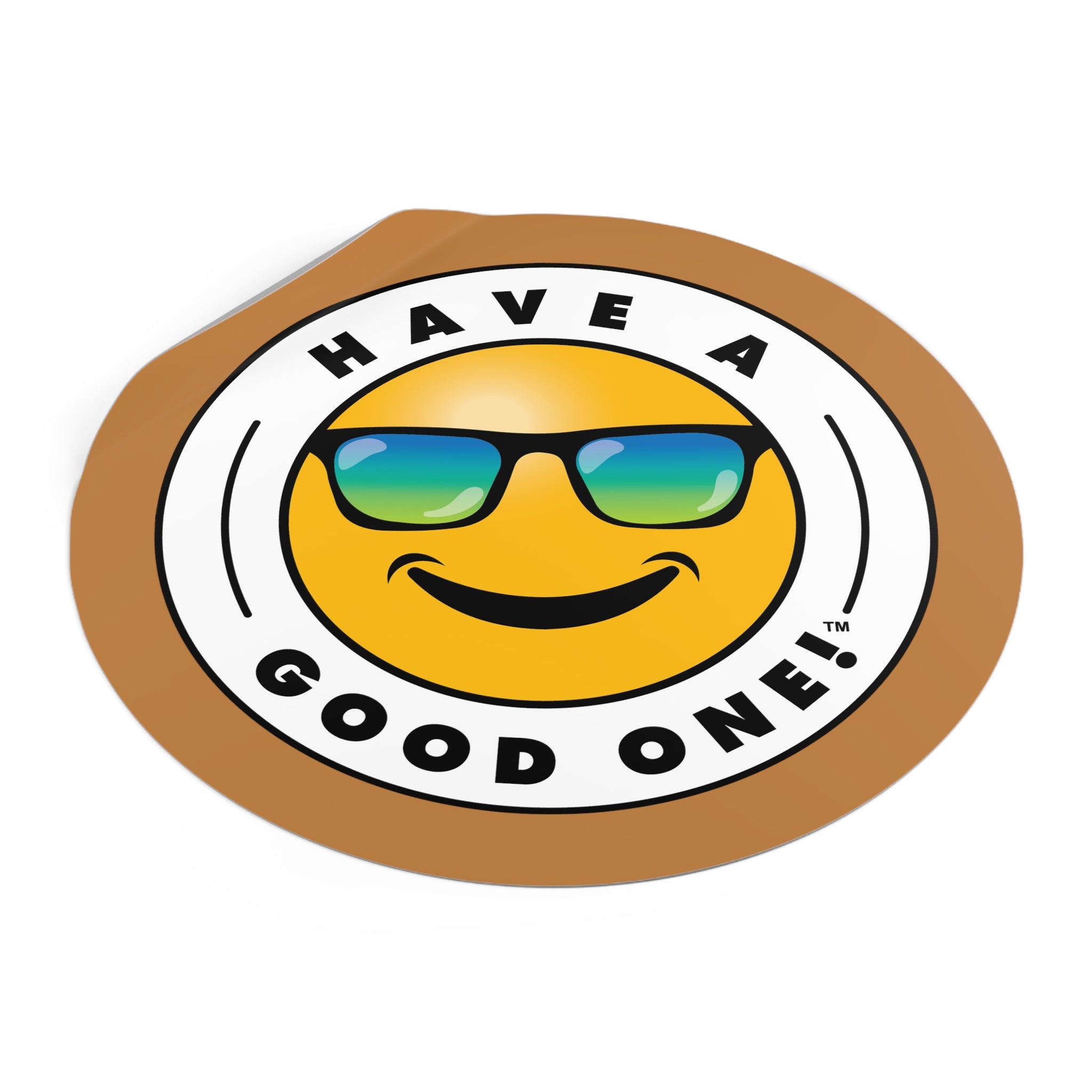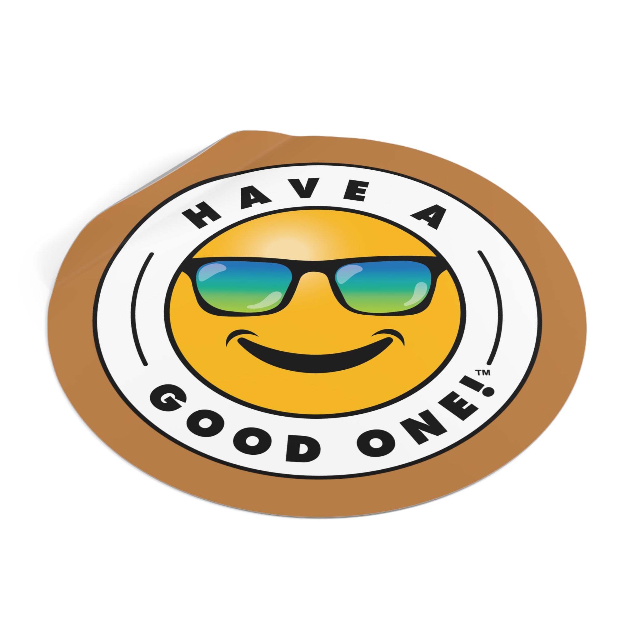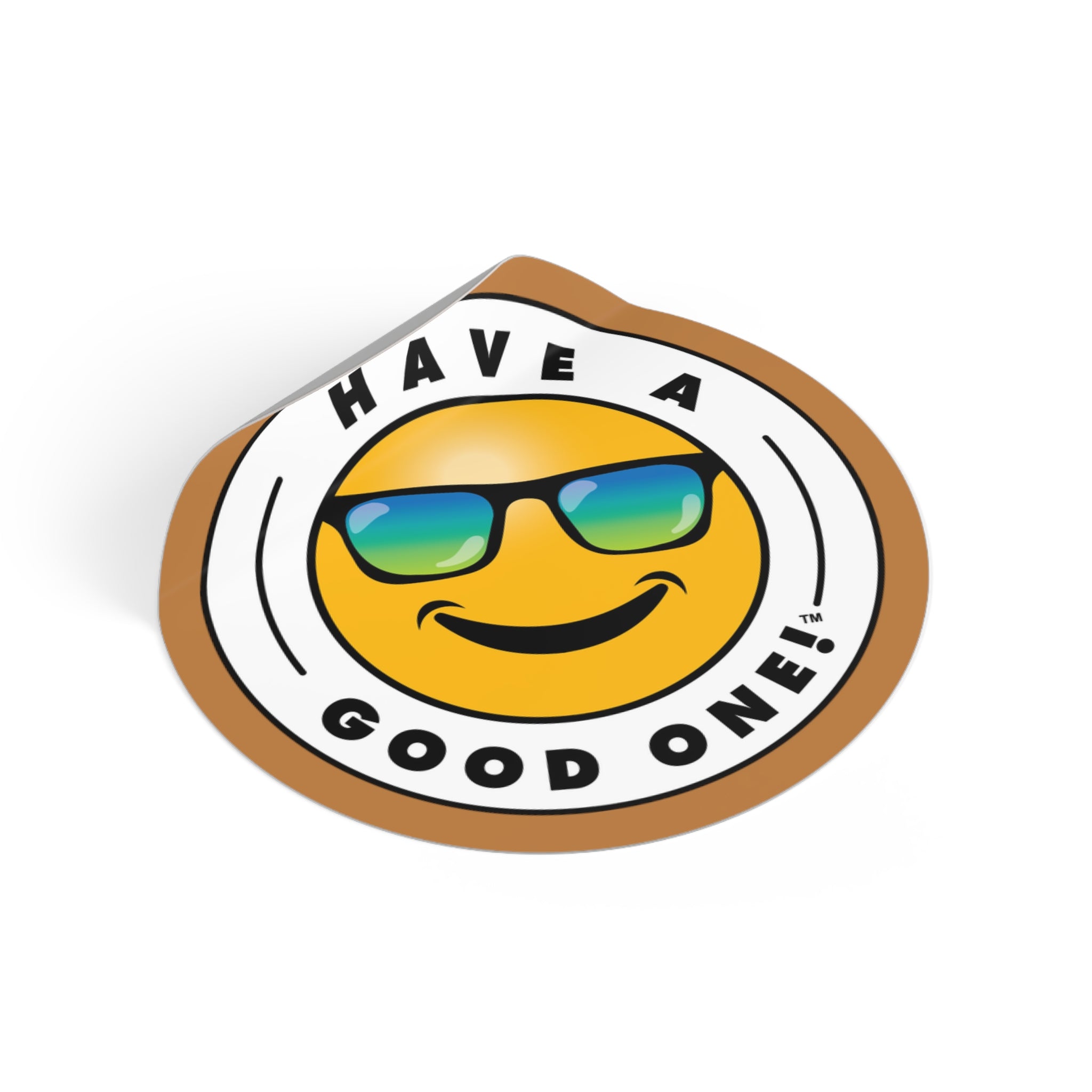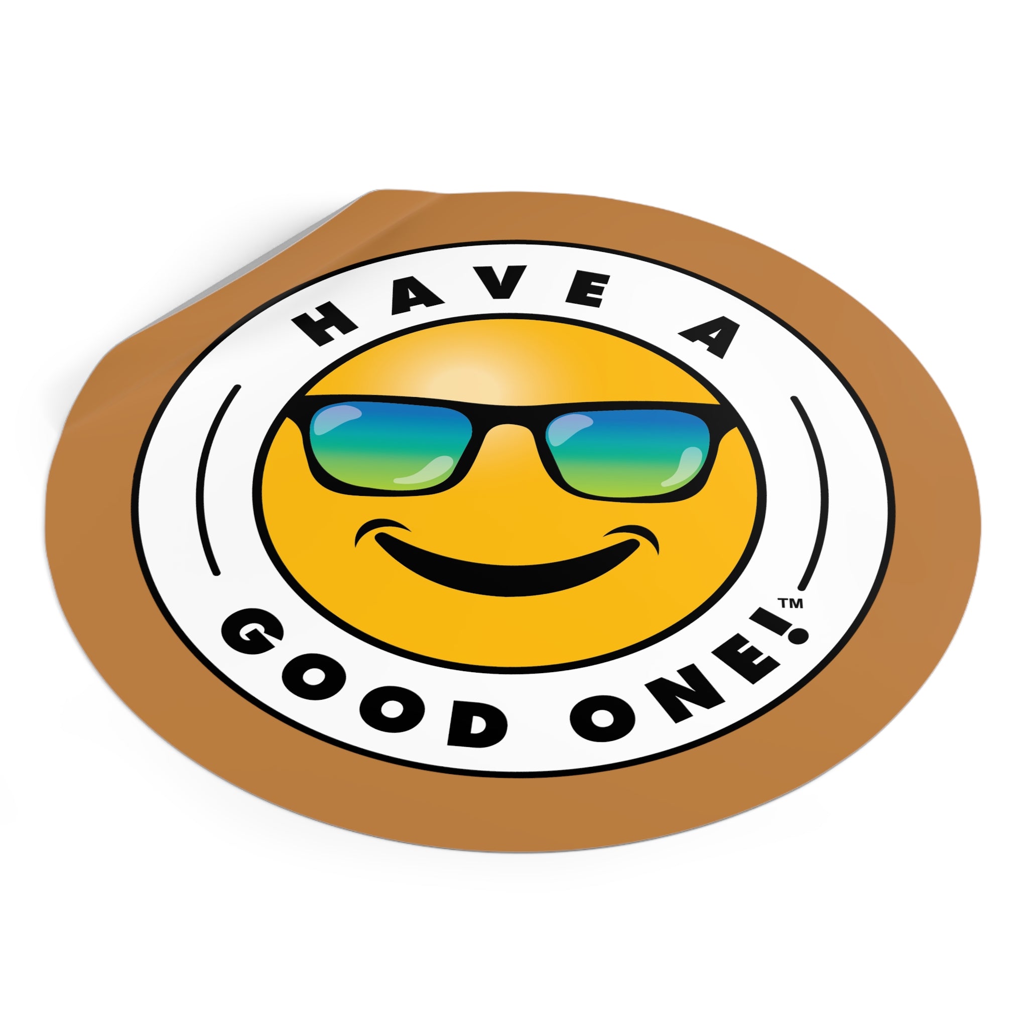 These fun circle stickers are great for adding a touch of personality and good cheer to any surface! These are rated to last over six years due to their high-quality production. The base materials are premium vinyl and vibrant inks. The design layer is covered by a UV resistant laminate. If removal is necessary, the adhesive backing won't leave residue behind. Just use a soft, clean and dry cloth to gently brush off any dust or dirt from center of sticker outward. You can put these cheerful stickers on notebooks, bikes, skateboards, car bumpers, musical instruments, computers, windows, gifts or just about anywhere! They are sure to brighten your day and make you smile however you use them! Share the good vibes with these fun stickers and Have A Good One!
