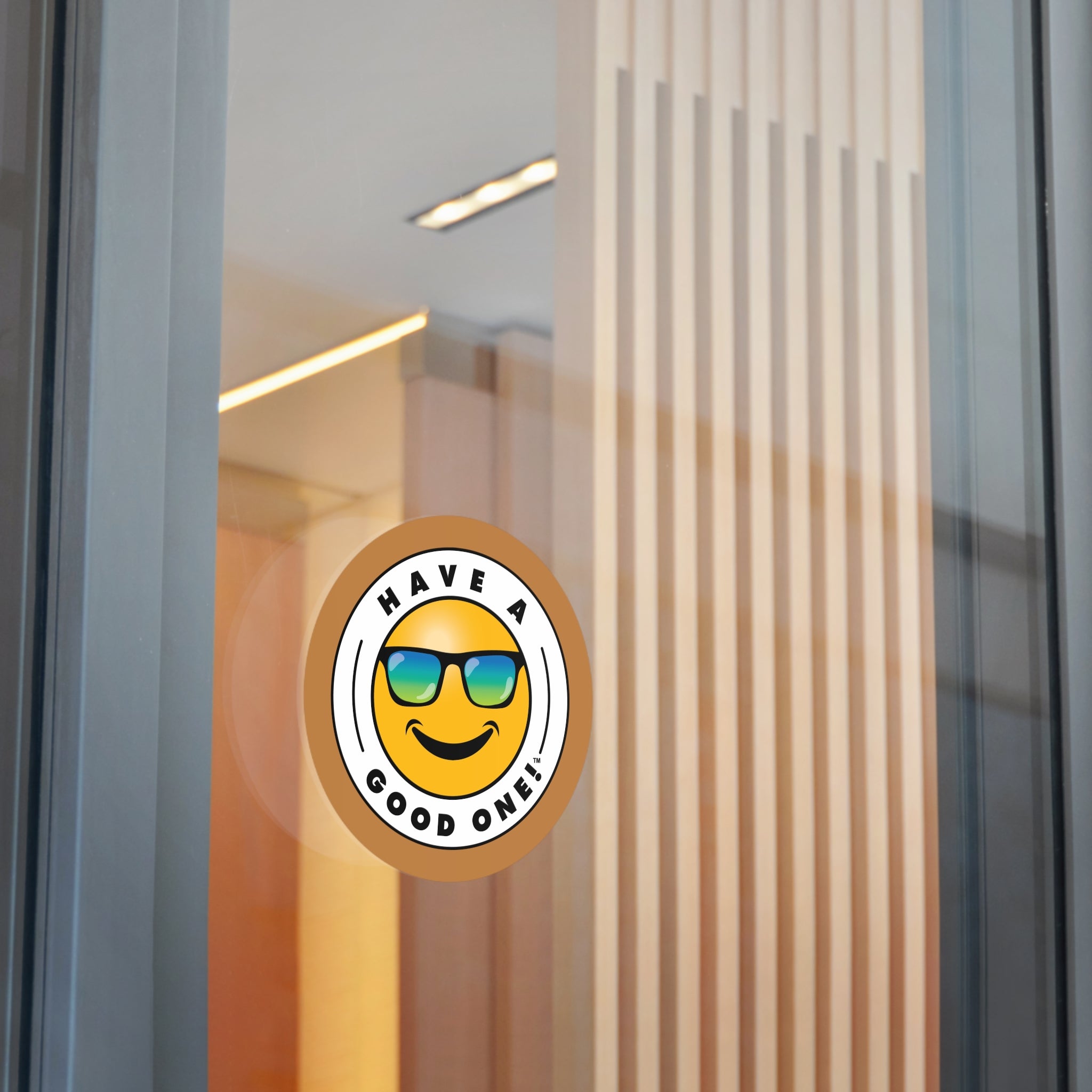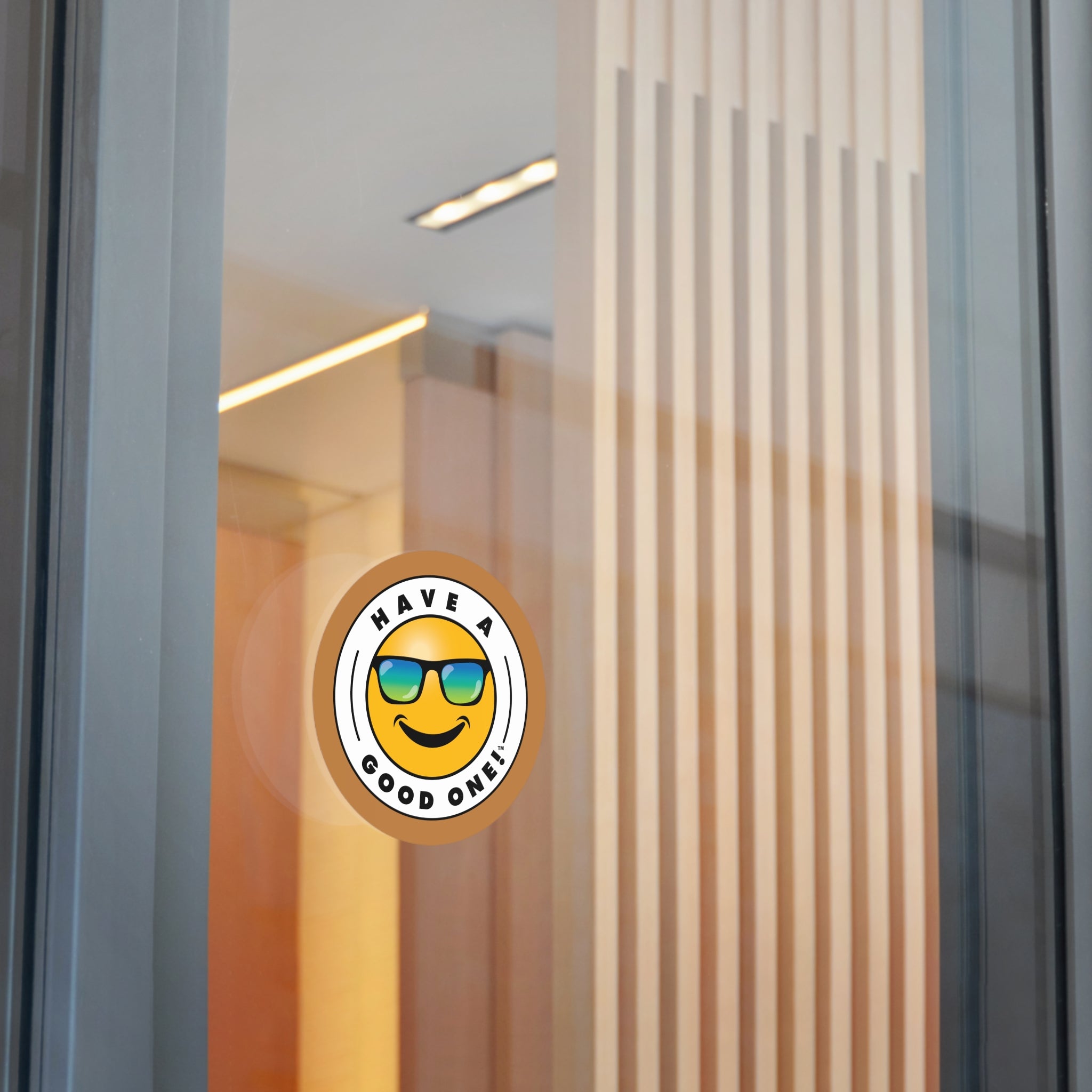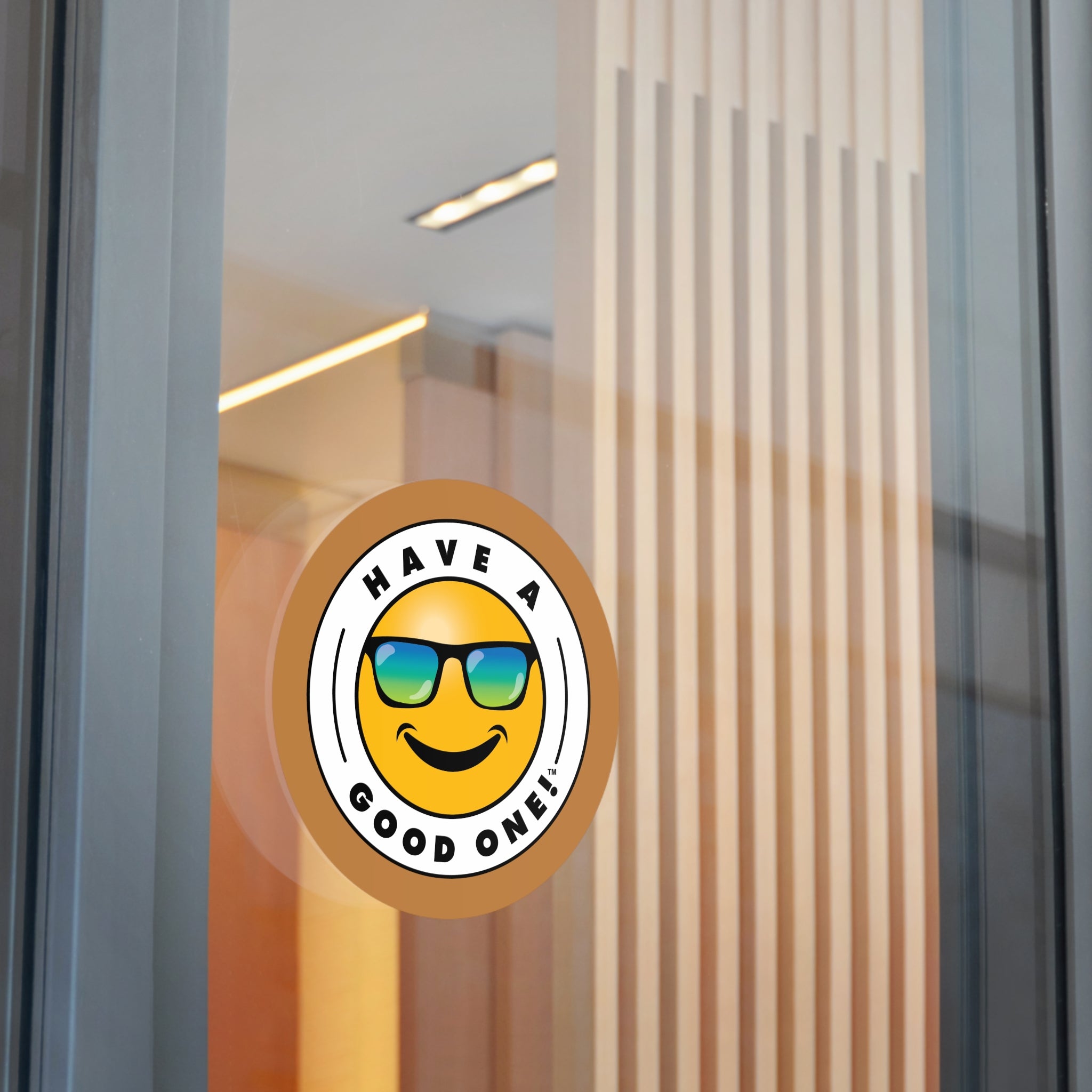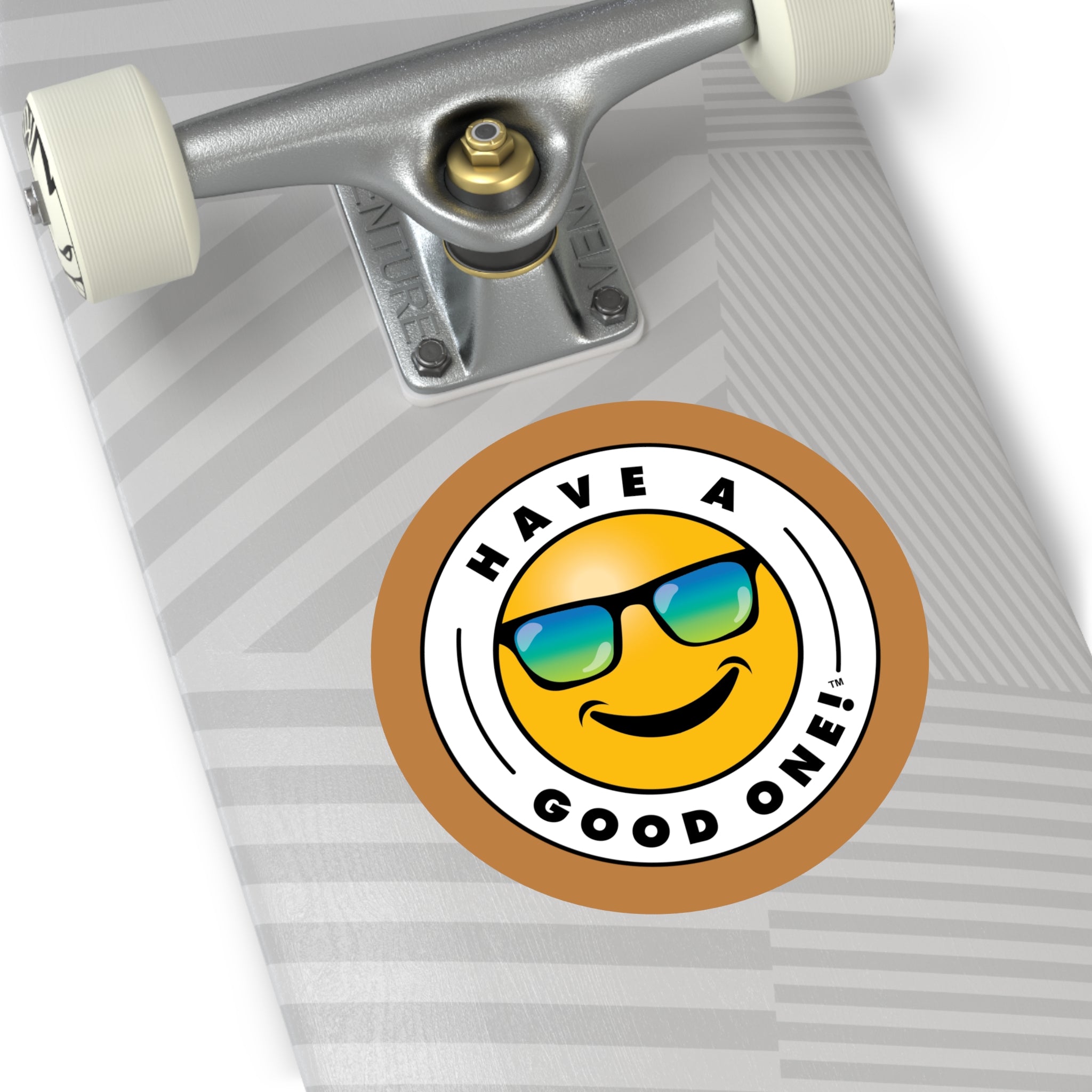 These fun circle stickers are great for adding a touch of personality and good cheer to any surface! These are rated to last over six years due to their high-quality production. The base materials are premium vinyl and vibrant inks. The design layer is covered by a UV resistant laminate. If removal is necessary, the adhesive backing won't leave residue behind. Just use a soft, clean and dry cloth to gently brush off any dust or dirt from center of sticker outward. You can put these cheerful stickers on notebooks, bikes, skateboards, car bumpers, musical instruments, computers, windows, gifts or just about anywhere! They are sure to brighten your day and make you smile however you use them! Share the good vibes with these fun stickers and Have A Good One!