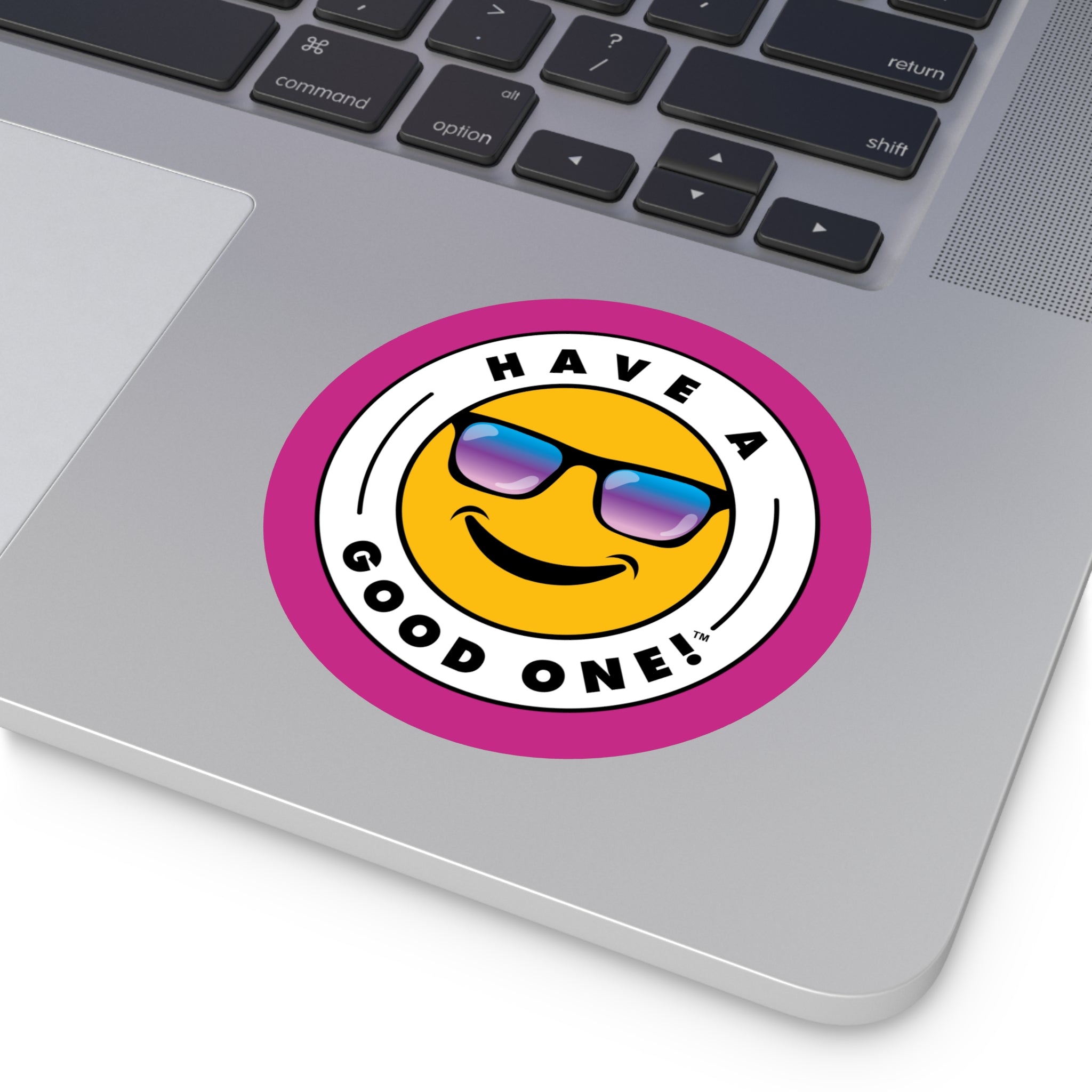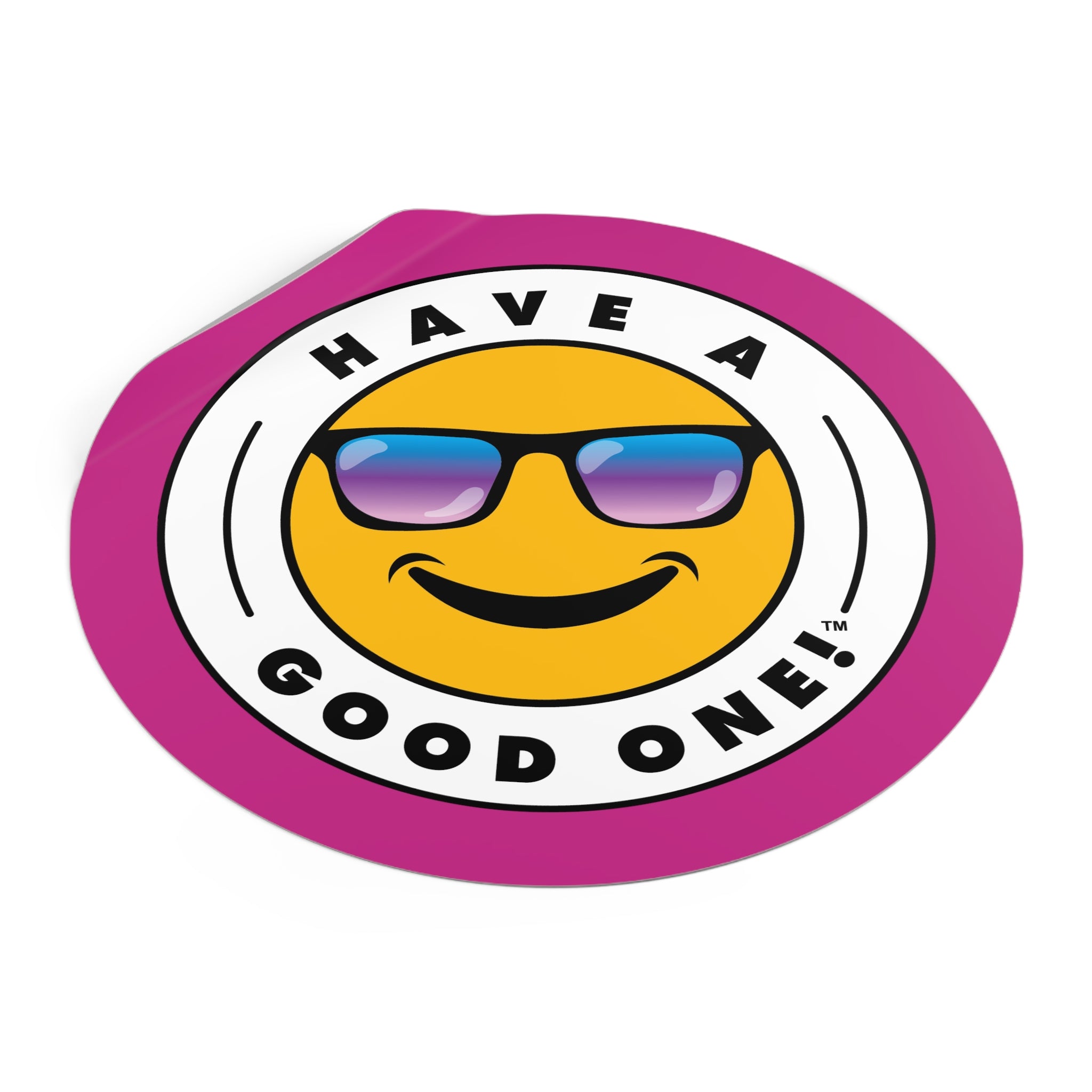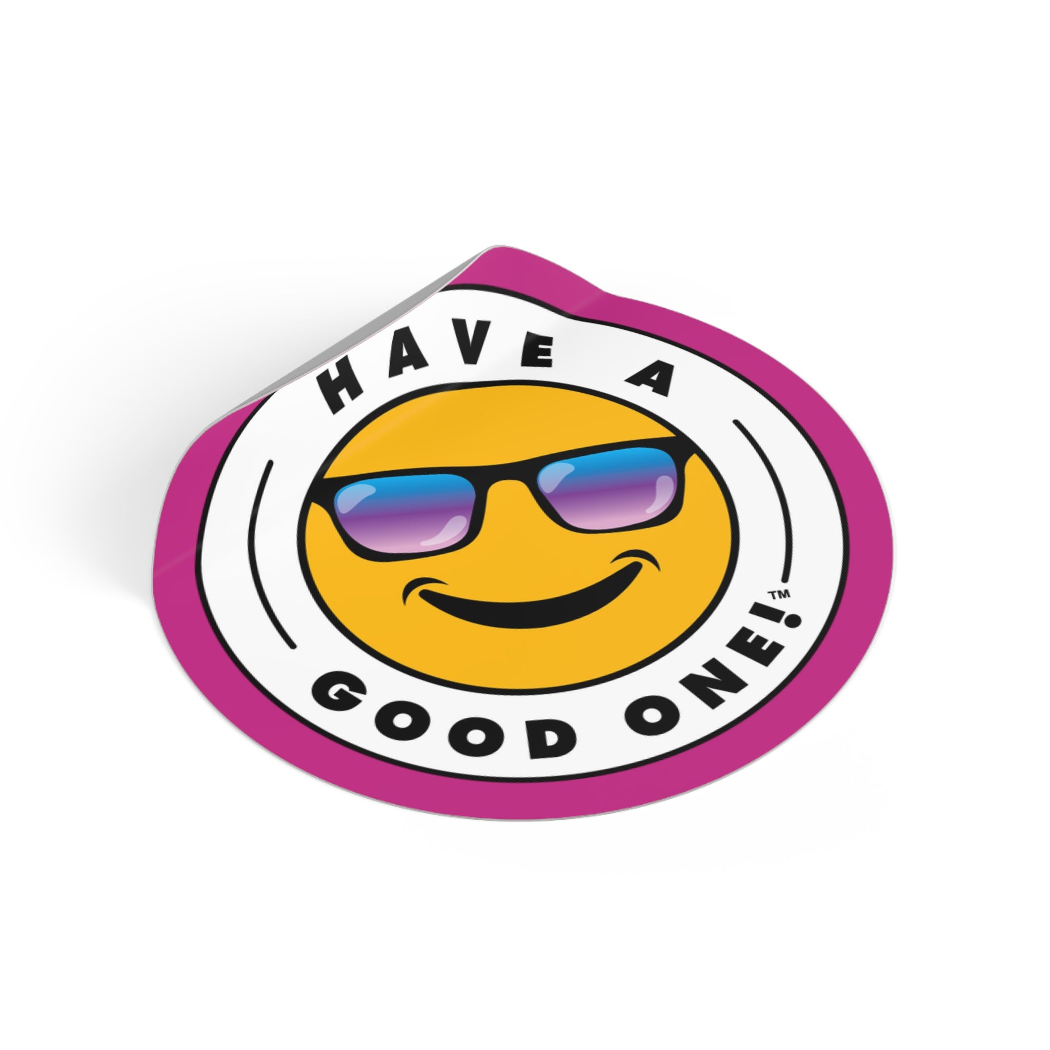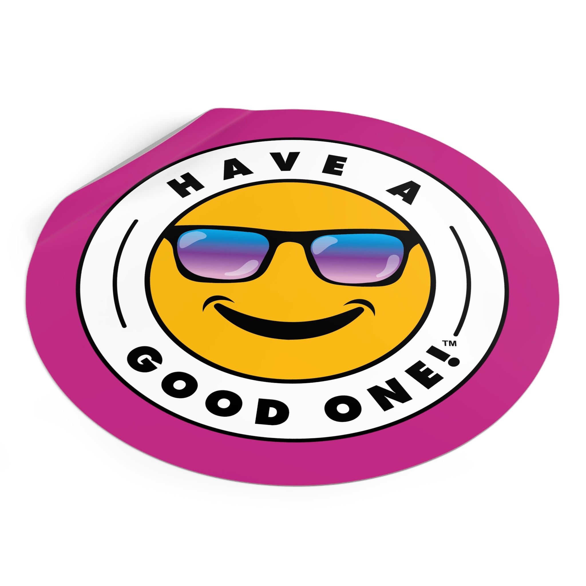 These fun circle stickers are great for adding a touch of personality and good cheer to any surface! These are rated to last over six years due to their high-quality production. The base materials are premium vinyl and vibrant inks. The design layer is covered by a UV resistant laminate. If removal is necessary, the adhesive backing won't leave residue behind. Just use a soft, clean and dry cloth to gently brush off any dust or dirt from center of sticker outward. You can put these cheerful stickers on notebooks, bikes, skateboards, car bumpers, musical instruments, computers, windows, gifts or just about anywhere! They are sure to brighten your day and make you smile however you use them! Share the good vibes with these fun stickers and Have A Good One!