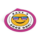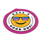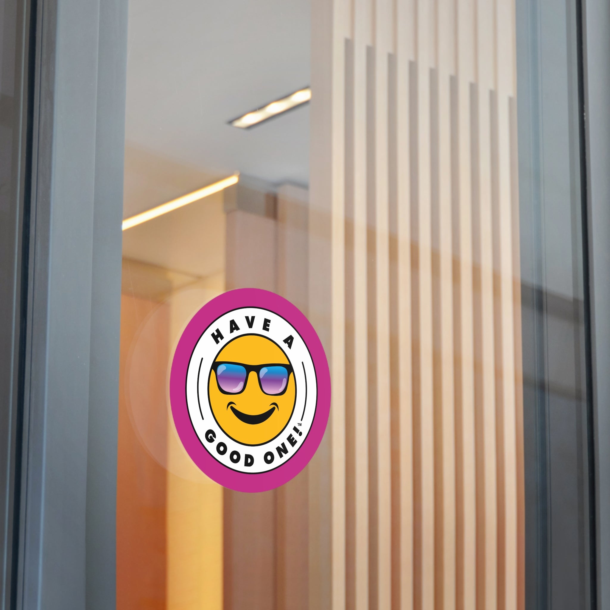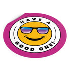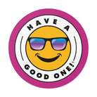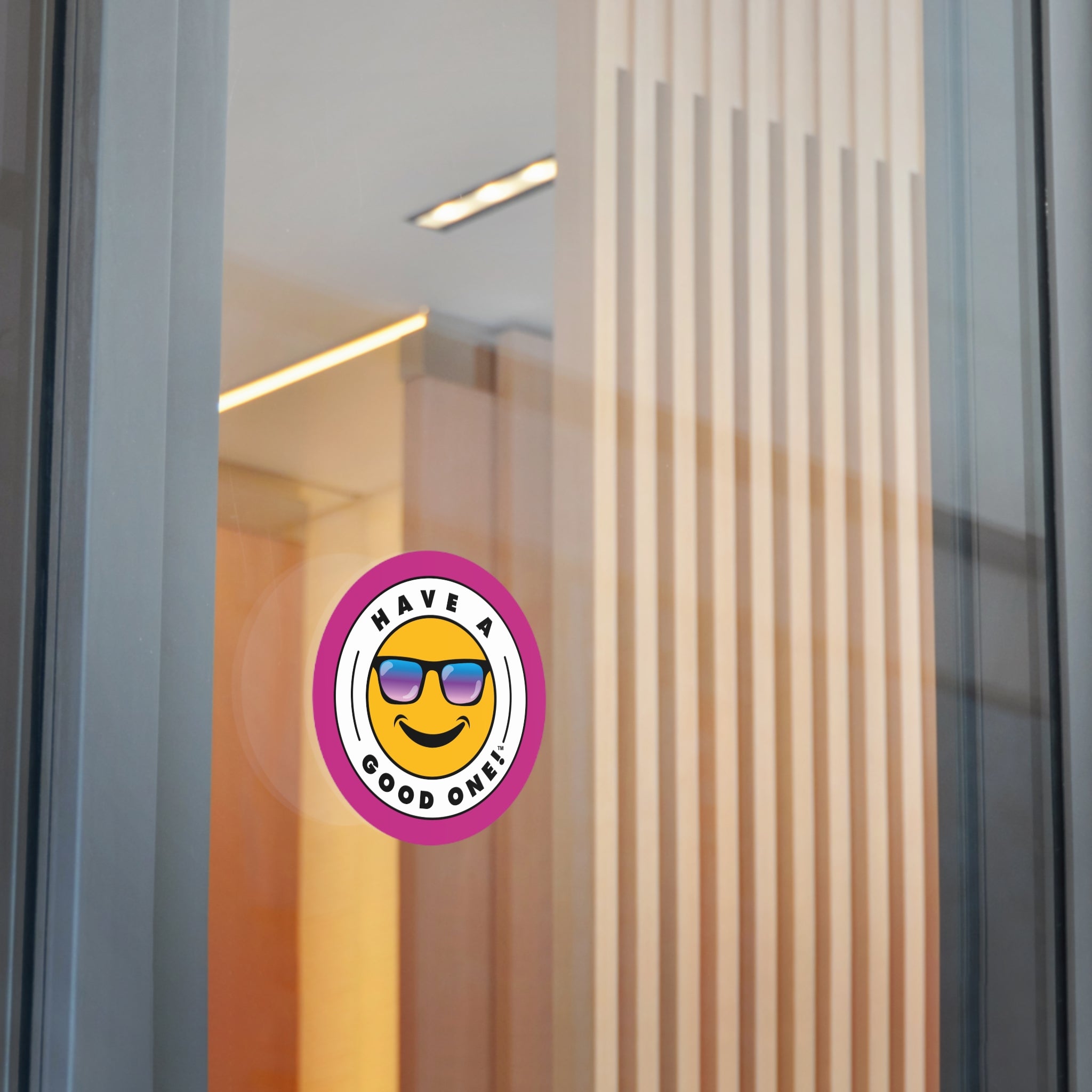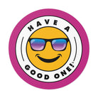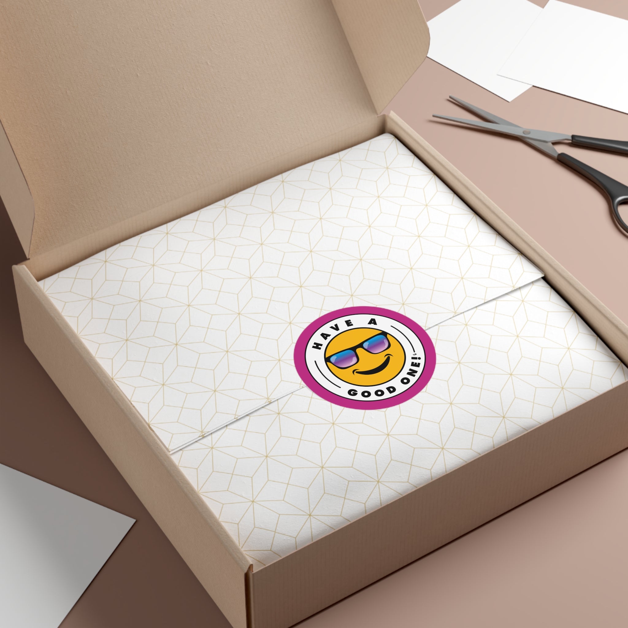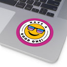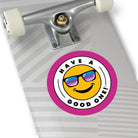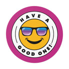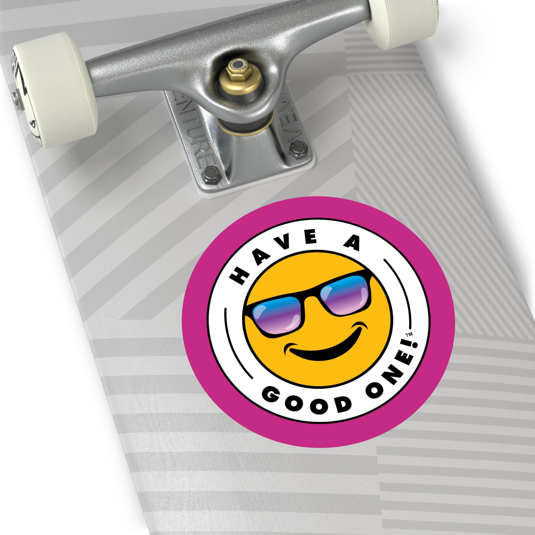 These fun circle stickers are great for adding a touch of personality and good cheer to any surface! These are rated to last over six years due to their high-quality production. The base materials are premium vinyl and vibrant inks. The design layer is covered by a UV resistant laminate. If removal is necessary, the adhesive backing won't leave residue behind. Just use a soft, clean and dry cloth to gently brush off any dust or dirt from center of sticker outward. You can put these cheerful stickers on notebooks, bikes, skateboards, car bumpers, musical instruments, computers, windows, gifts or just about anywhere! They are sure to brighten your day and make you smile however you use them! Share the good vibes with these fun stickers and Have A Good One!