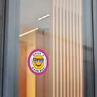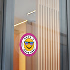 Round Vinyl Stickers - Pink Color With Blue and Purple Logo