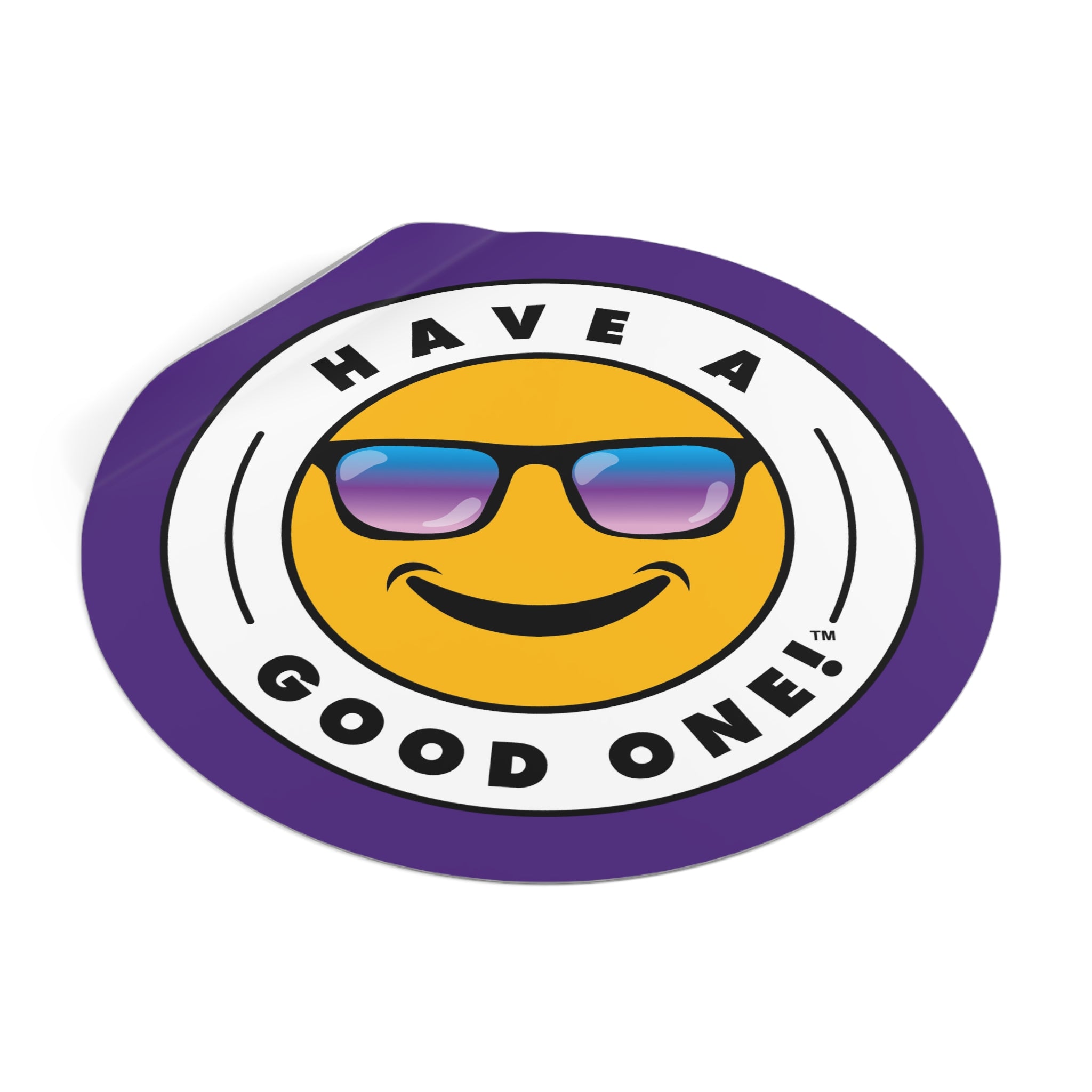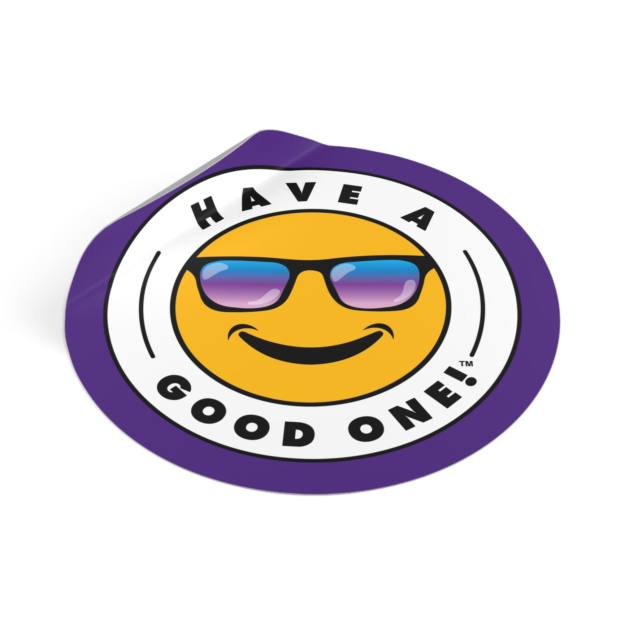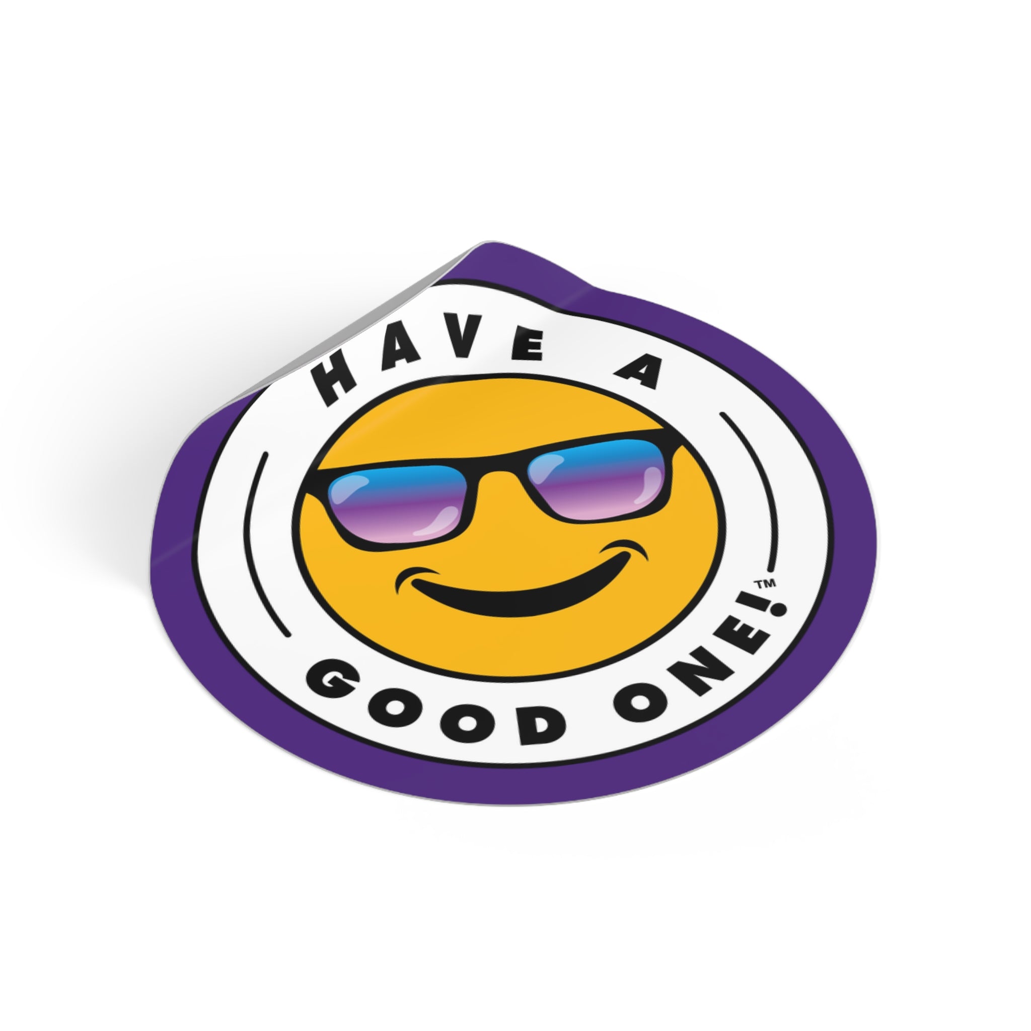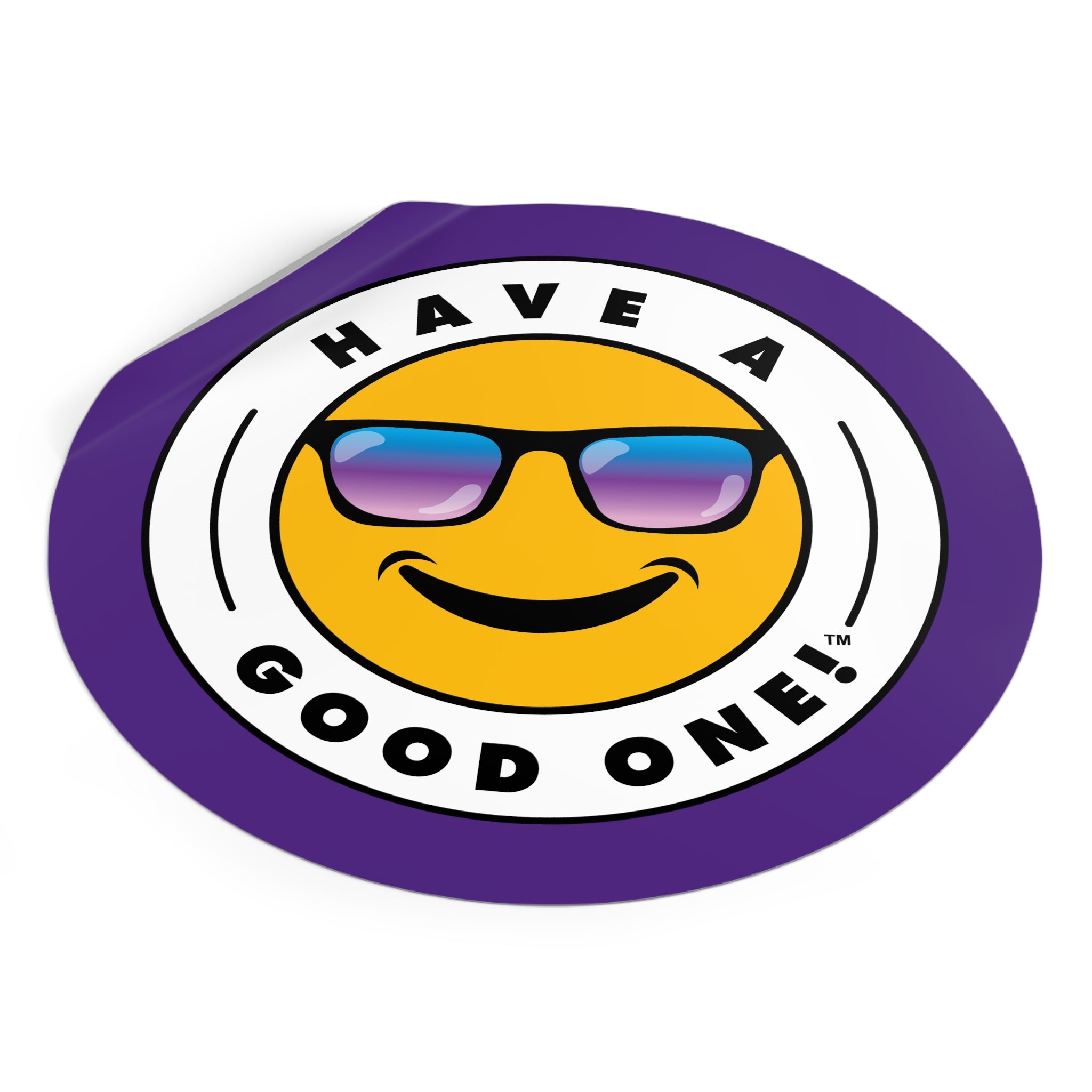These fun circle stickers are great for adding a touch of personality and good cheer to any surface! These are rated to last over six years due to their high-quality production. The base materials are premium vinyl and vibrant inks. The design layer is covered by a UV resistant laminate. If removal is necessary, the adhesive backing won't leave residue behind. Just use a soft, clean and dry cloth to gently brush off any dust or dirt from center of sticker outward. You can put these cheerful stickers on notebooks, bikes, skateboards, car bumpers, musical instruments, computers, windows, gifts or just about anywhere! They are sure to brighten your day and make you smile however you use them! Share the good vibes with these fun stickers and Have A Good One!