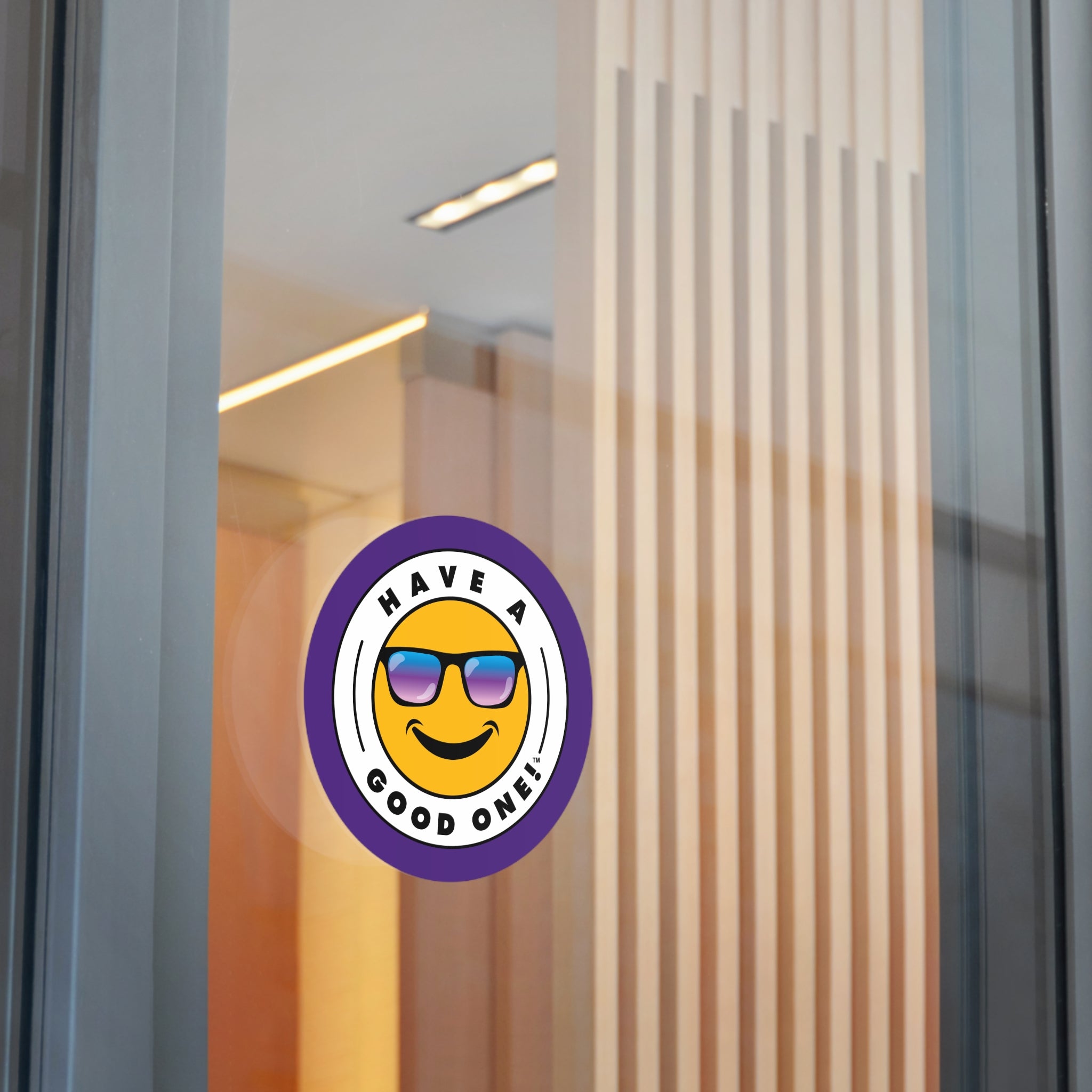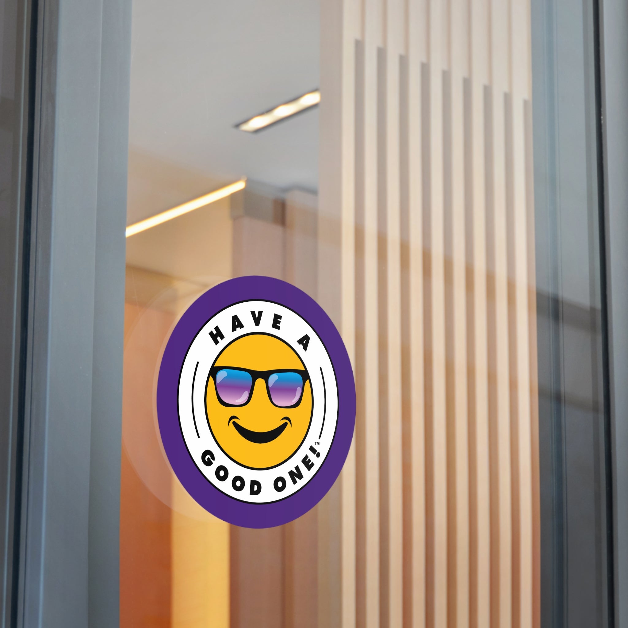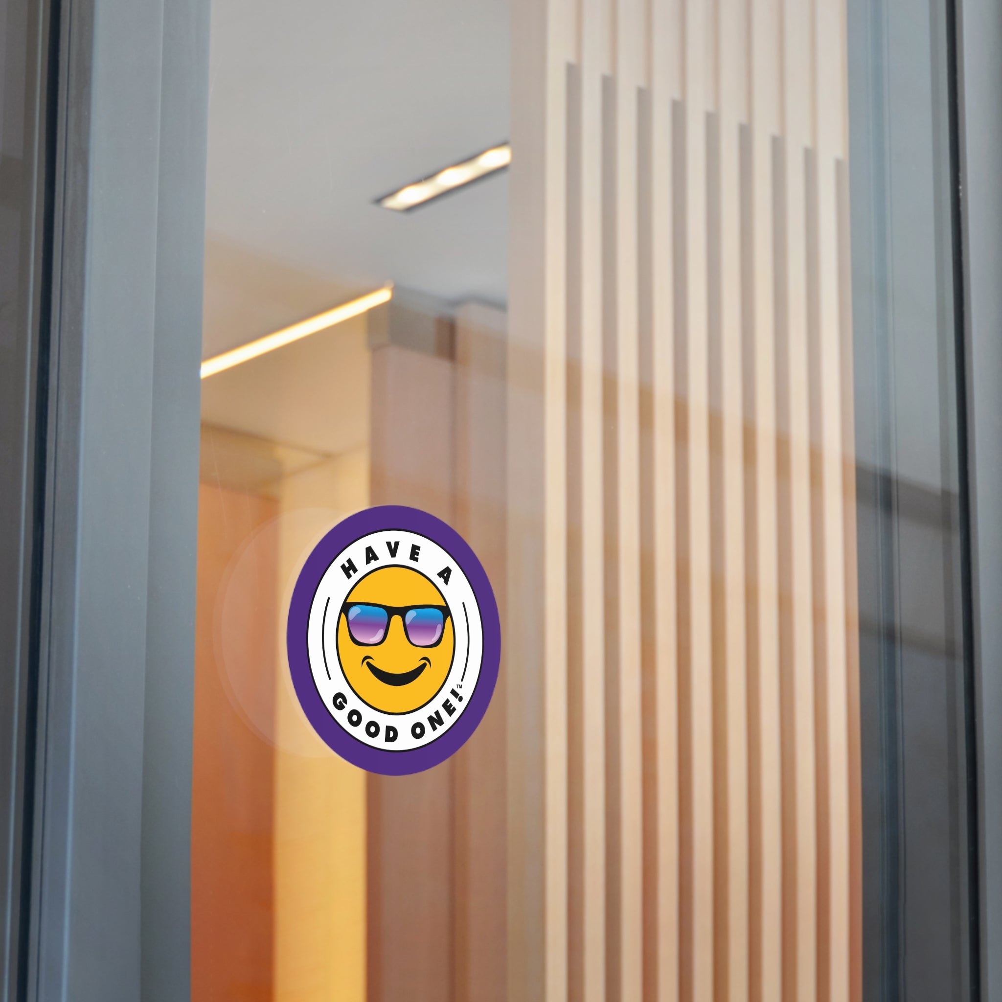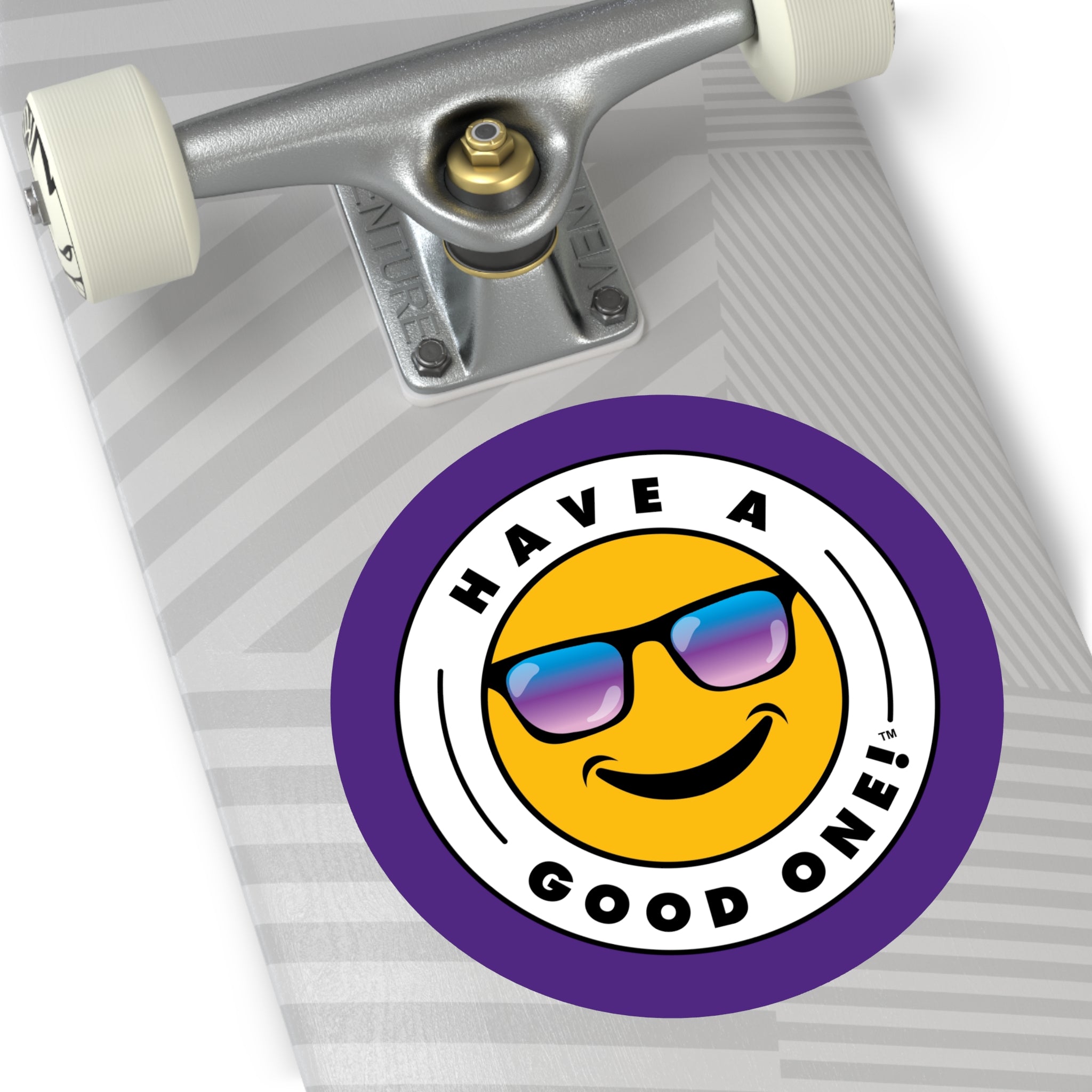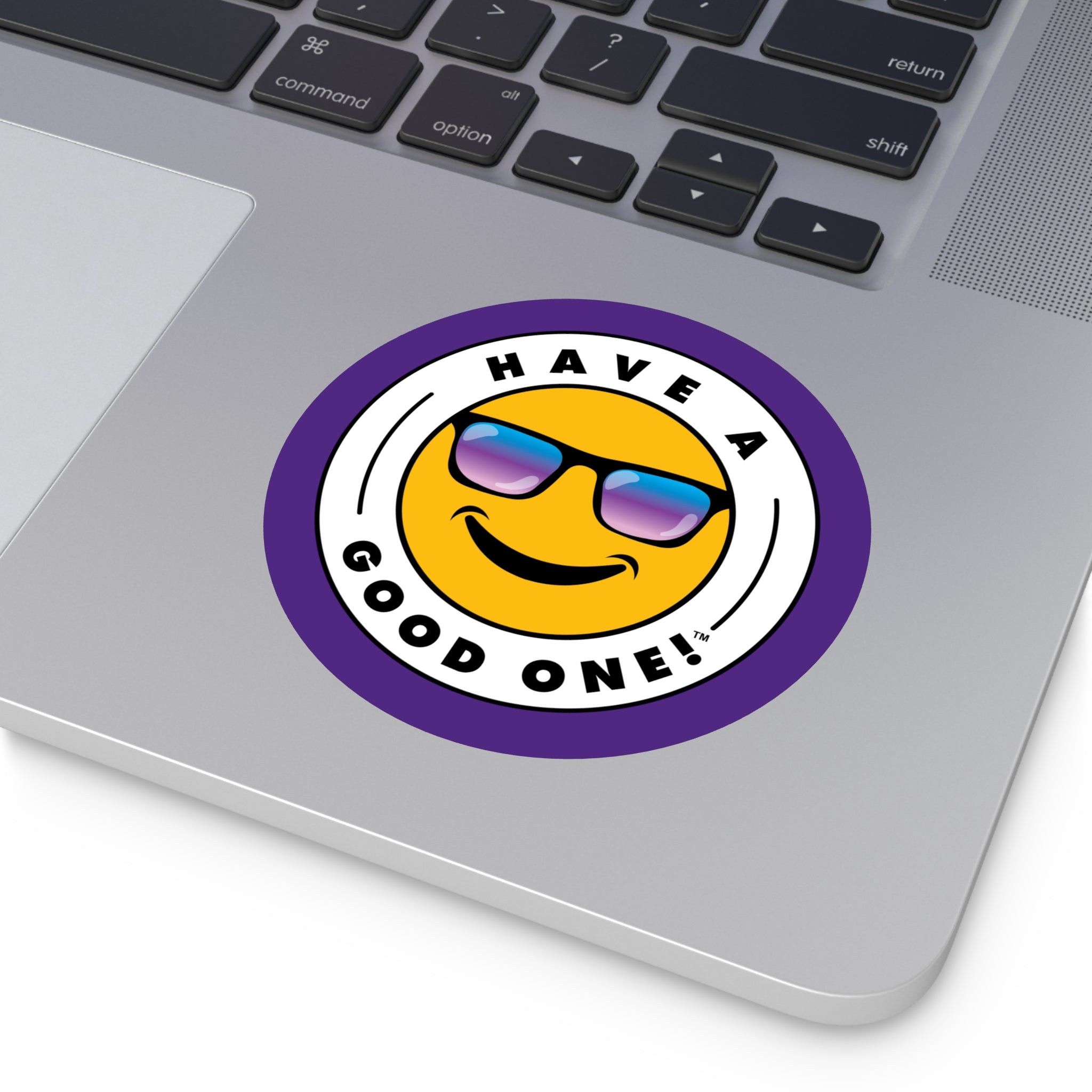 These fun circle stickers are great for adding a touch of personality and good cheer to any surface! These are rated to last over six years due to their high-quality production. The base materials are premium vinyl and vibrant inks. The design layer is covered by a UV resistant laminate. If removal is necessary, the adhesive backing won't leave residue behind. Just use a soft, clean and dry cloth to gently brush off any dust or dirt from center of sticker outward. You can put these cheerful stickers on notebooks, bikes, skateboards, car bumpers, musical instruments, computers, windows, gifts or just about anywhere! They are sure to brighten your day and make you smile however you use them! Share the good vibes with these fun stickers and Have A Good One!