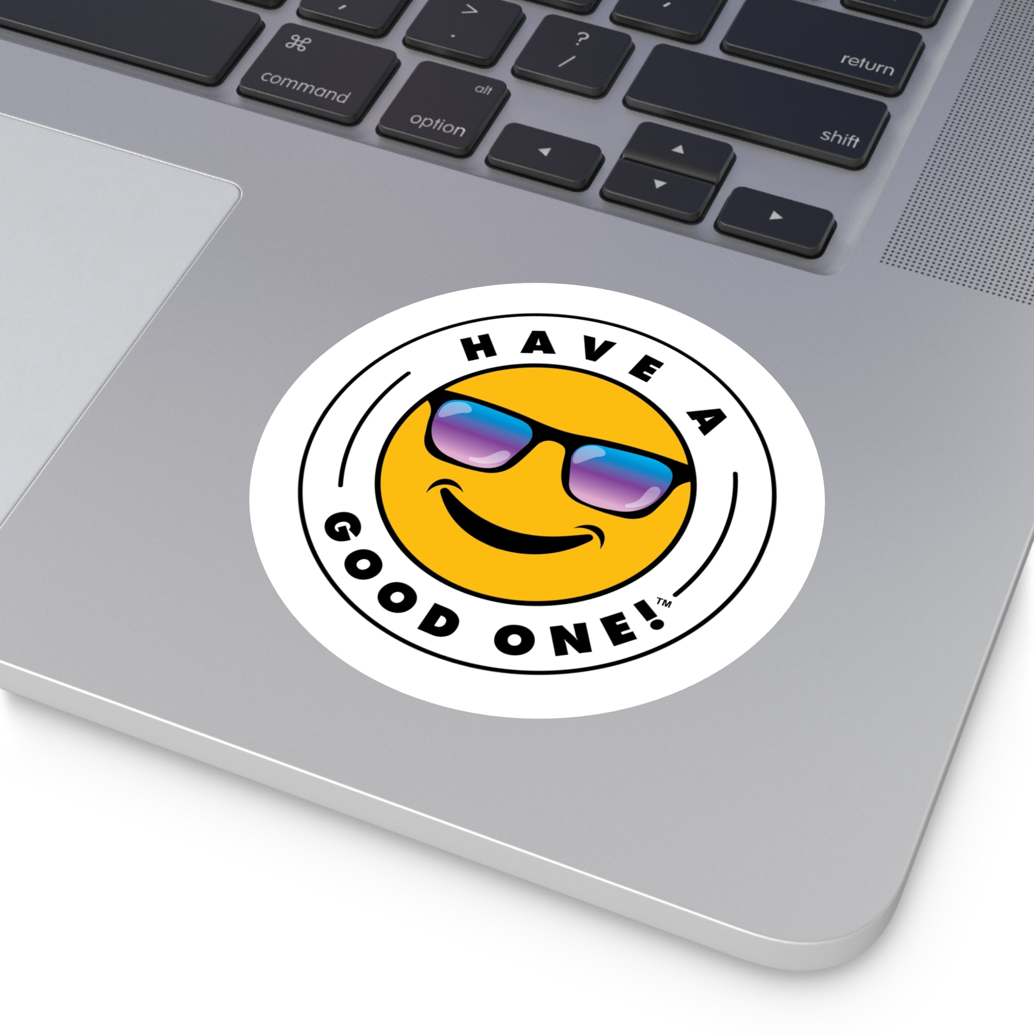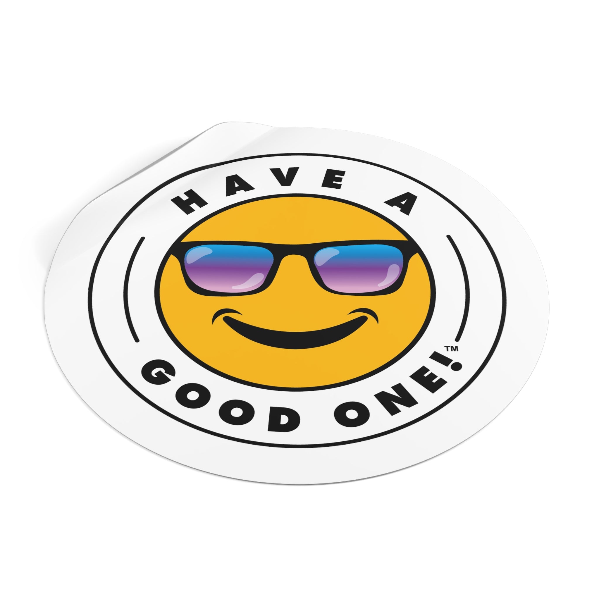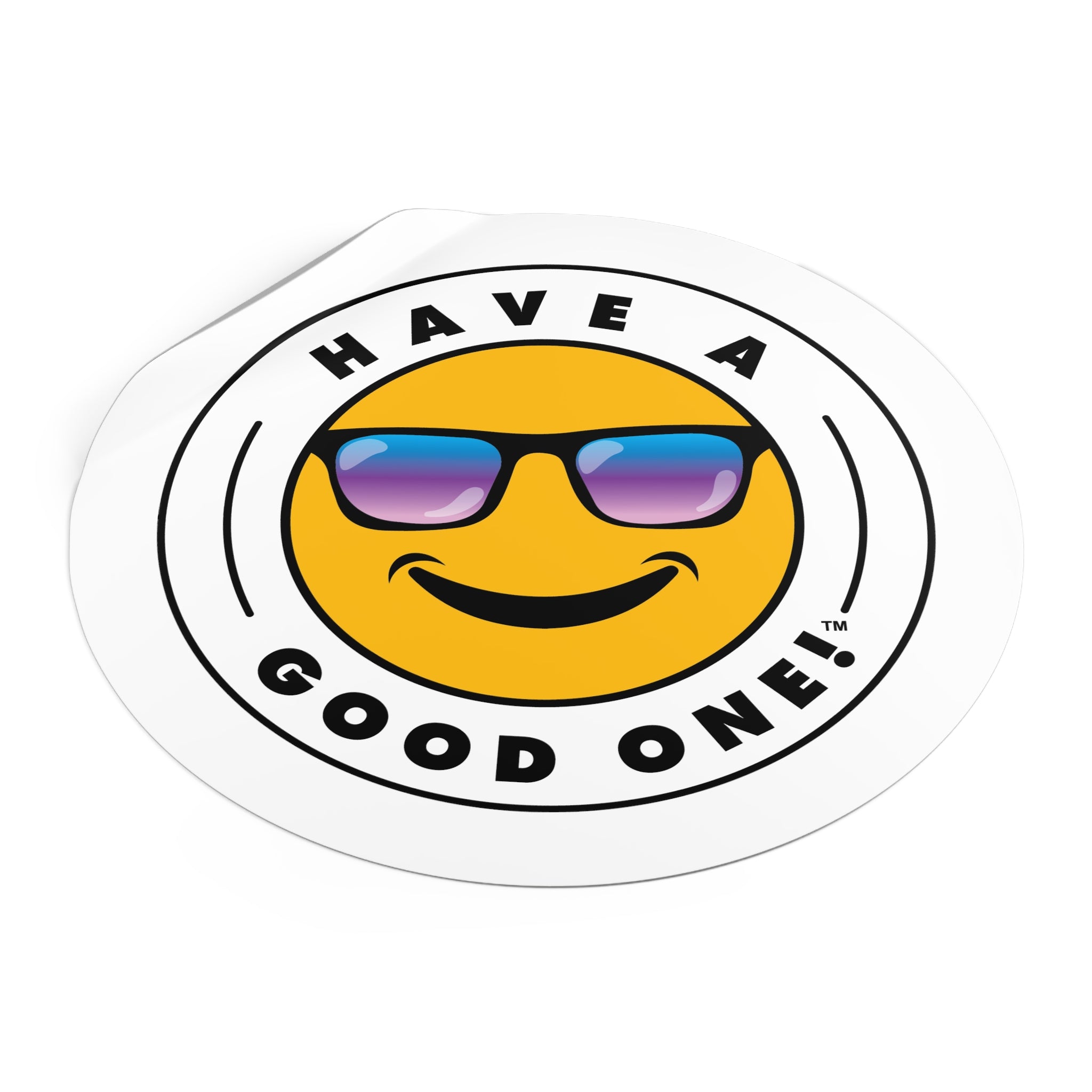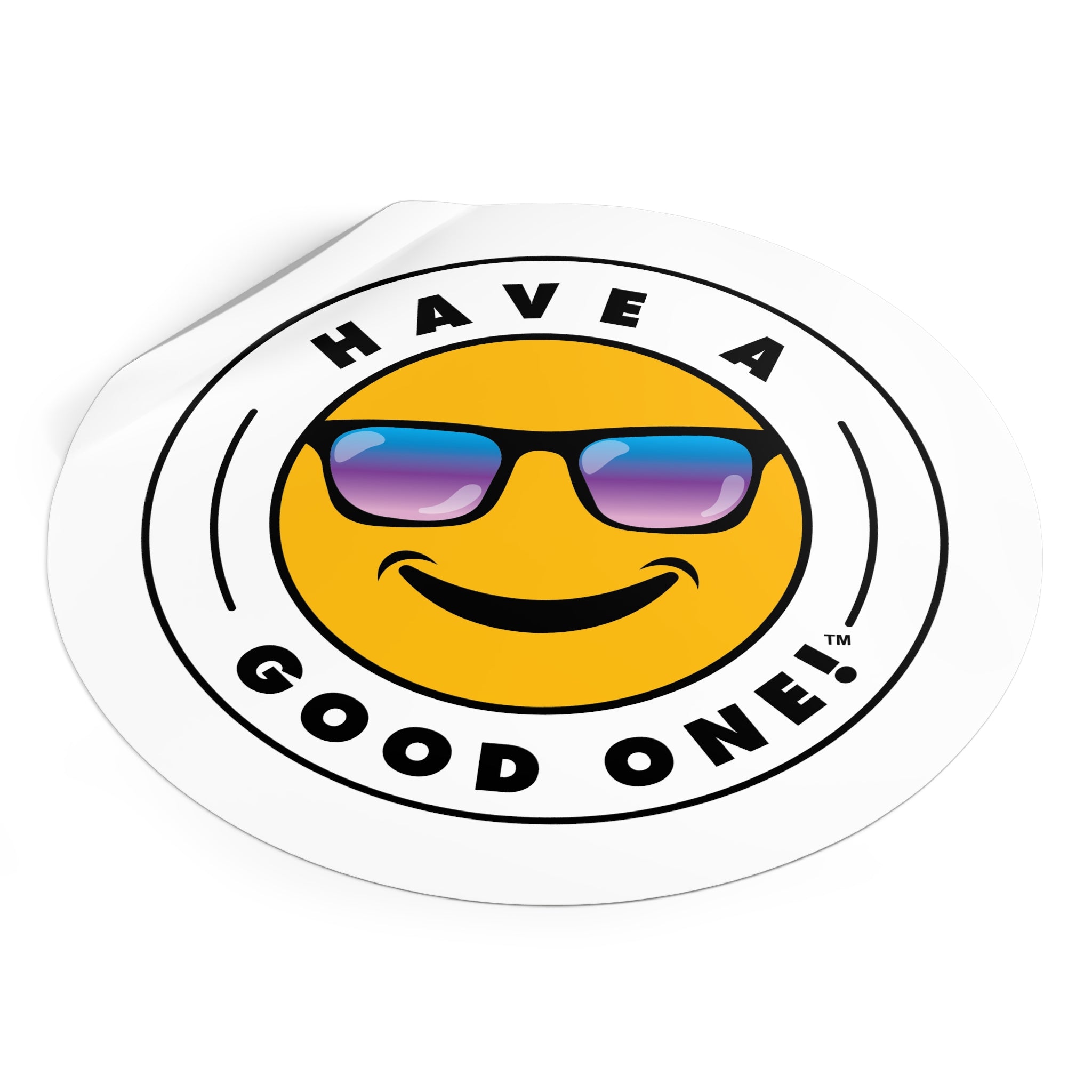 These fun circle stickers are great for adding a touch of personality and good cheer to any surface! These are rated to last over six years due to their high-quality production. The base materials are premium vinyl and vibrant inks. The design layer is covered by a UV resistant laminate. If removal is necessary, the adhesive backing won't leave residue behind. Just use a soft, clean and dry cloth to gently brush off any dust or dirt from center of sticker outward. You can put these cheerful stickers on notebooks, bikes, skateboards, car bumpers, musical instruments, computers, windows, gifts or just about anywhere! They are sure to brighten your day and make you smile however you use them! Share the good vibes with these fun stickers and Have A Good One!