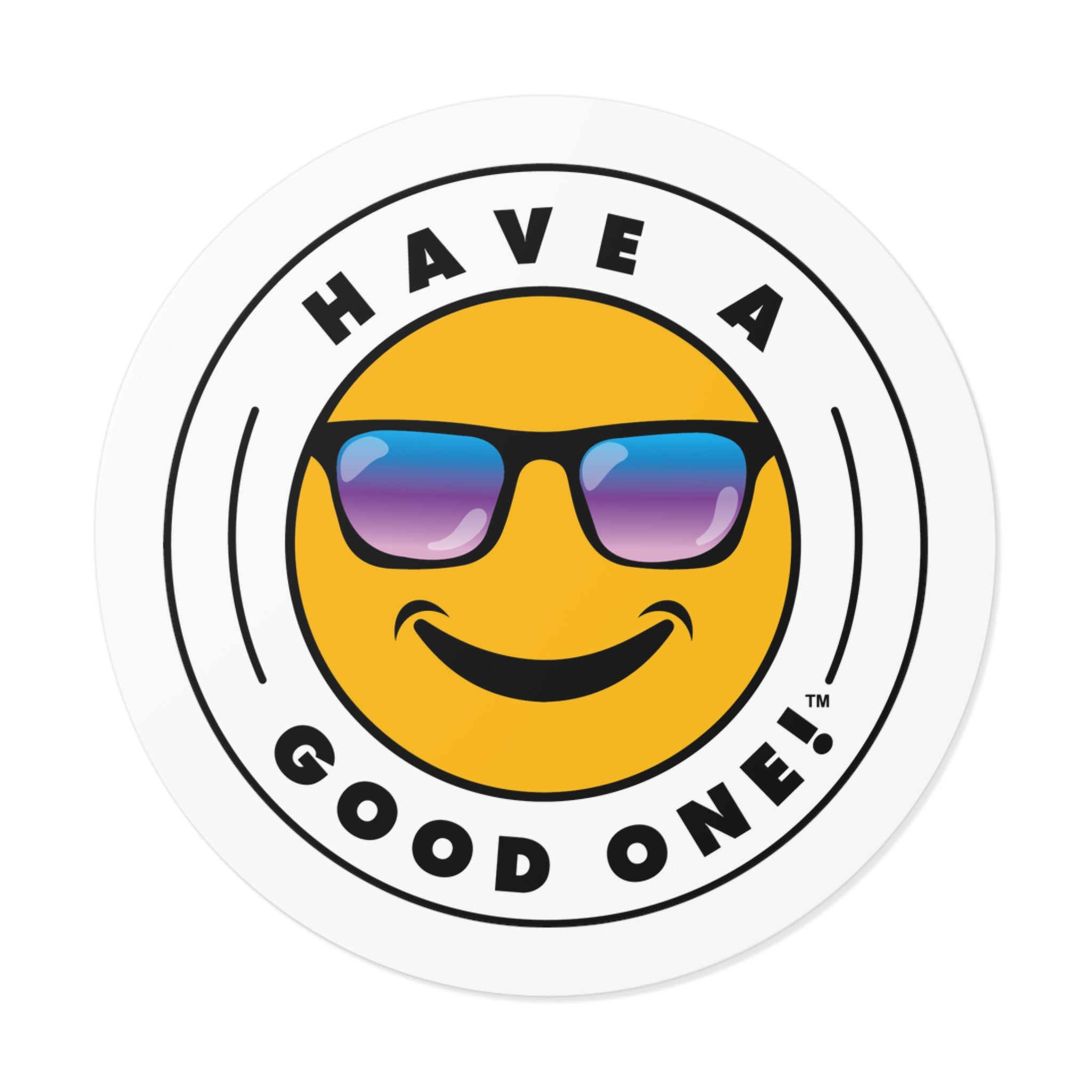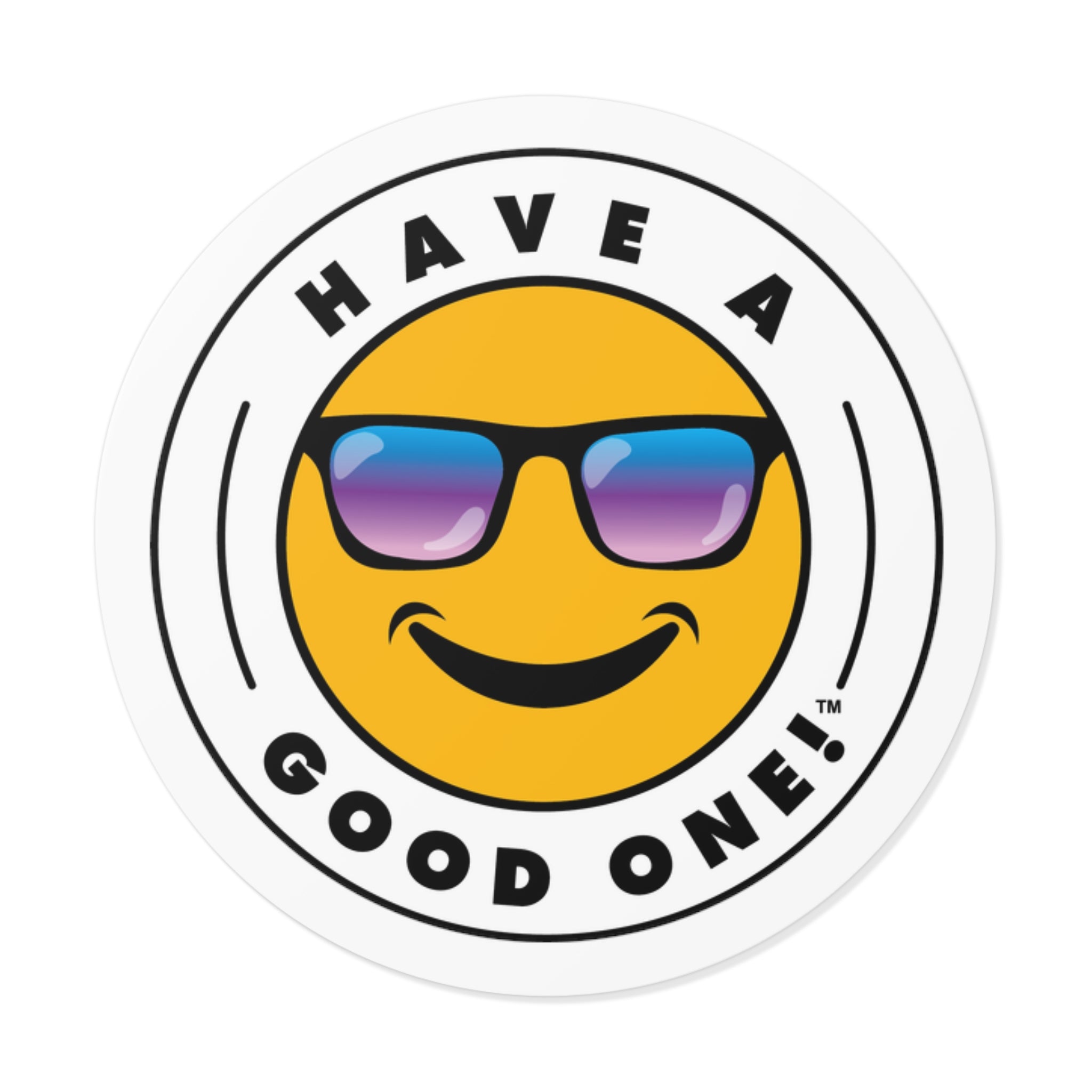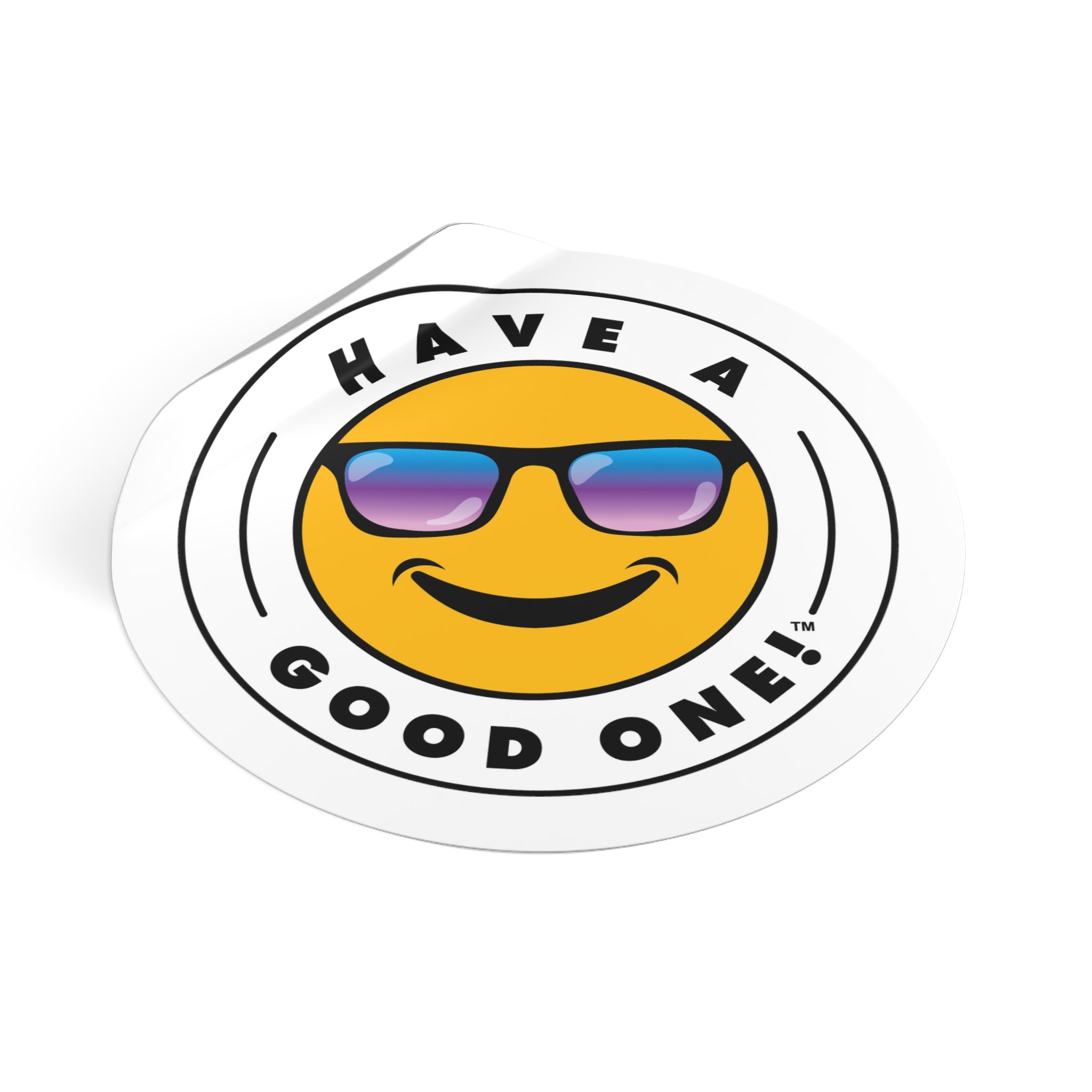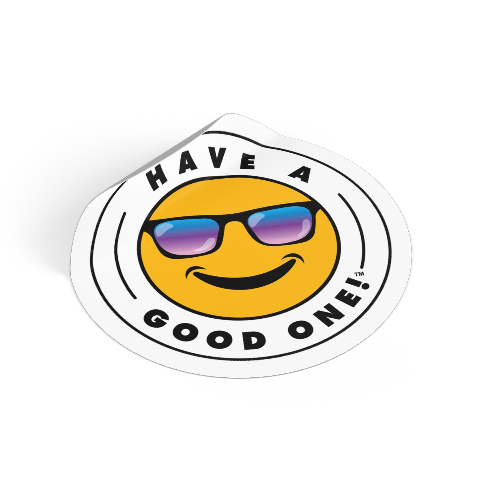 These fun circle stickers are great for adding a touch of personality and good cheer to any surface! These are rated to last over six years due to their high-quality production. The base materials are premium vinyl and vibrant inks. The design layer is covered by a UV resistant laminate. If removal is necessary, the adhesive backing won't leave residue behind. Just use a soft, clean and dry cloth to gently brush off any dust or dirt from center of sticker outward. You can put these cheerful stickers on notebooks, bikes, skateboards, car bumpers, musical instruments, computers, windows, gifts or just about anywhere! They are sure to brighten your day and make you smile however you use them! Share the good vibes with these fun stickers and Have A Good One!