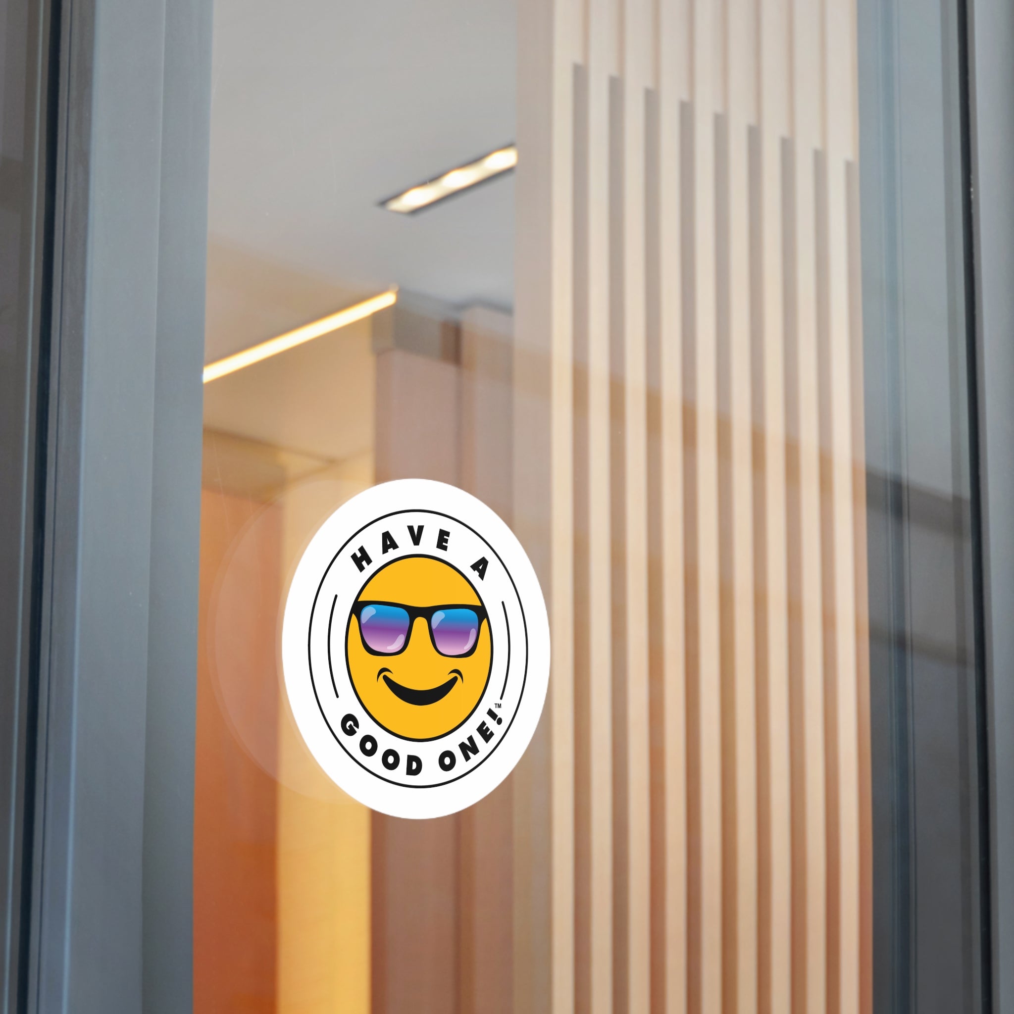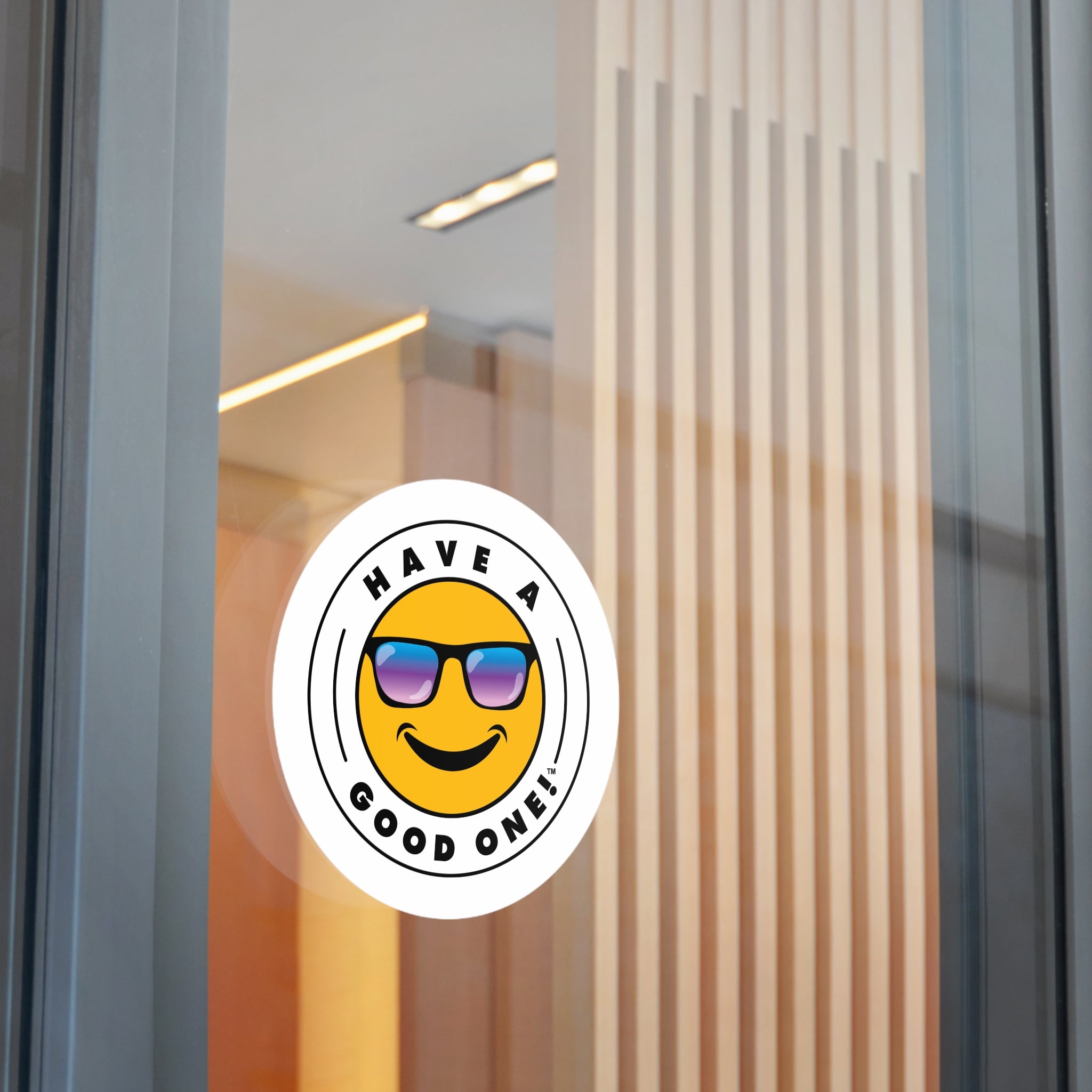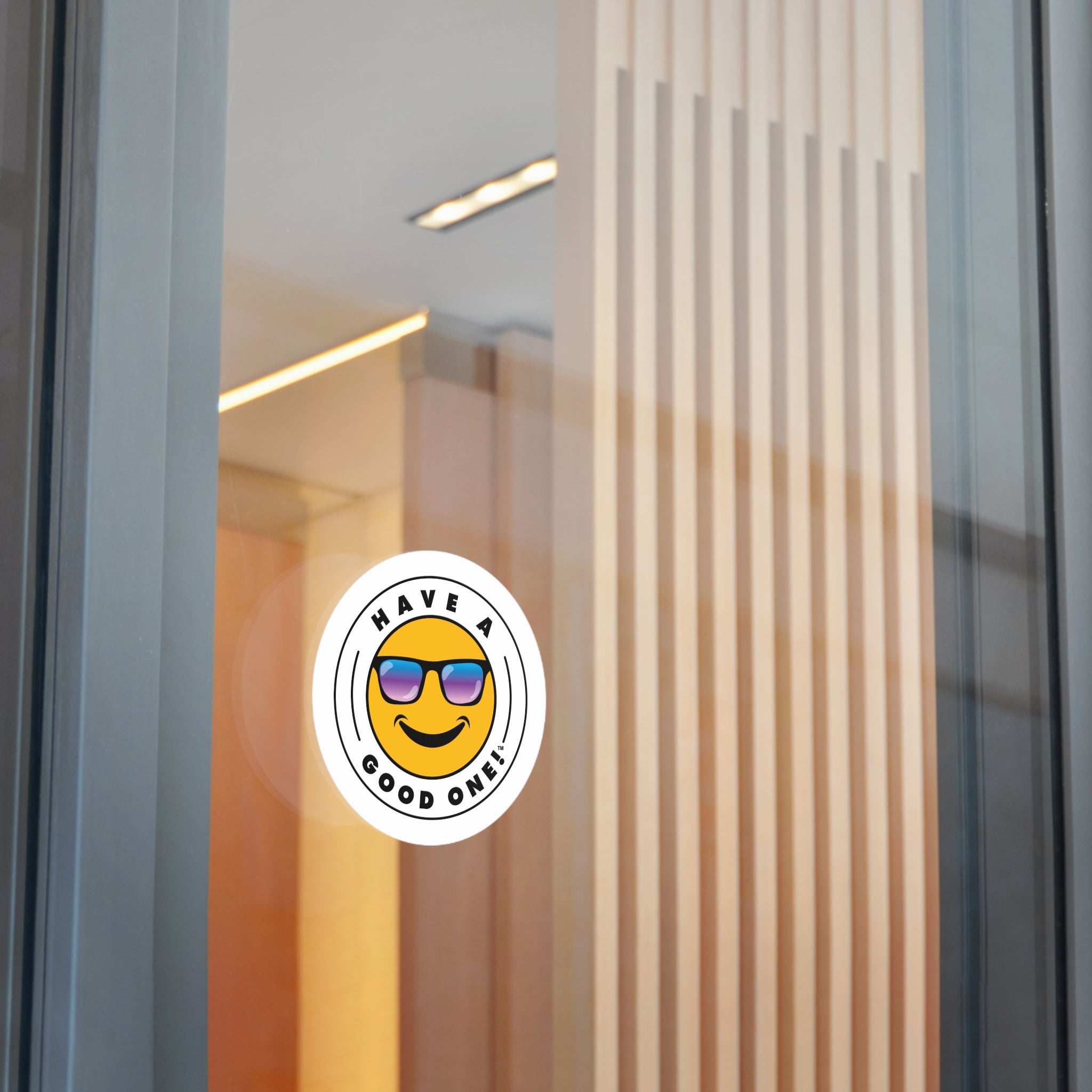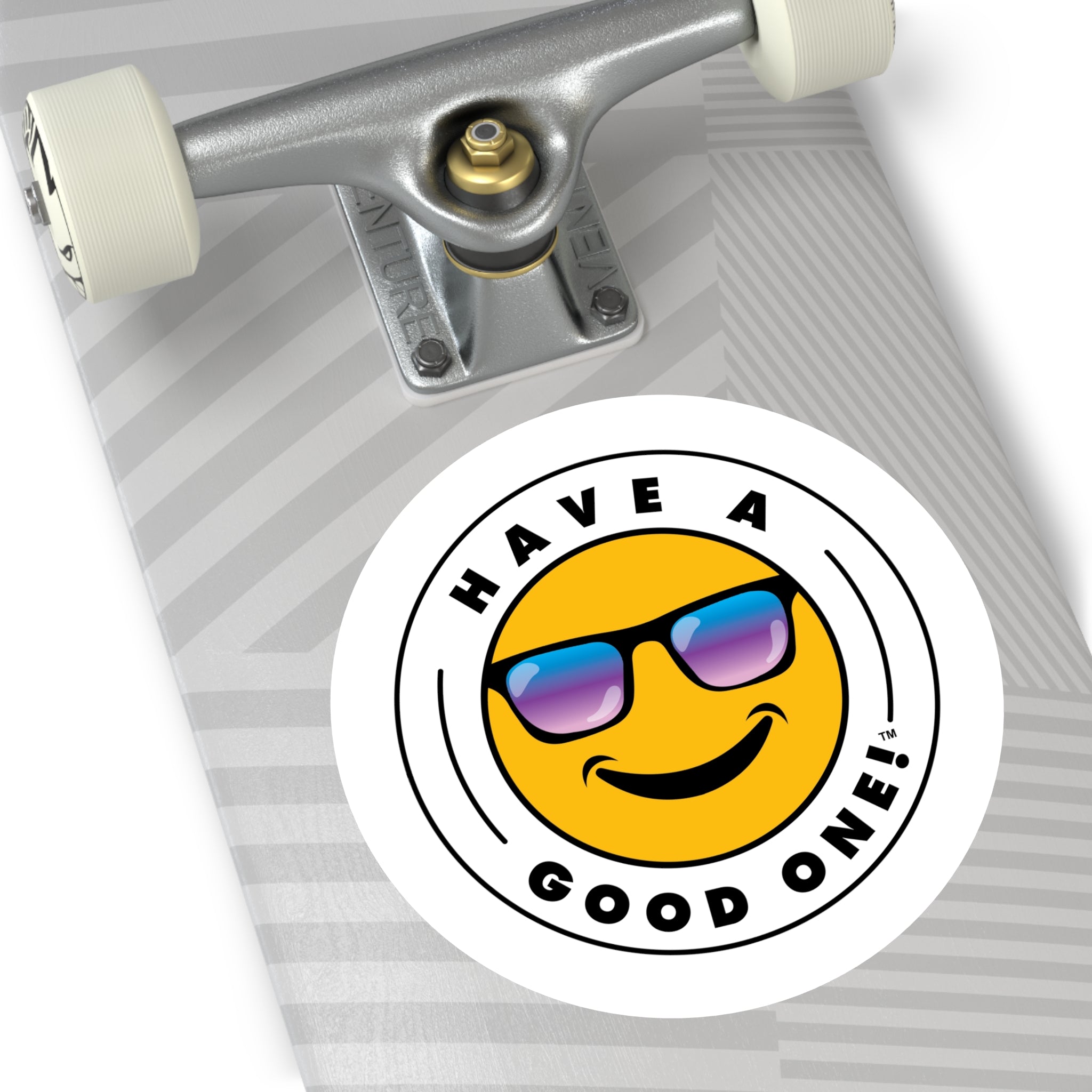 These fun circle stickers are great for adding a touch of personality and good cheer to any surface! These are rated to last over six years due to their high-quality production. The base materials are premium vinyl and vibrant inks. The design layer is covered by a UV resistant laminate. If removal is necessary, the adhesive backing won't leave residue behind. Just use a soft, clean and dry cloth to gently brush off any dust or dirt from center of sticker outward. You can put these cheerful stickers on notebooks, bikes, skateboards, car bumpers, musical instruments, computers, windows, gifts or just about anywhere! They are sure to brighten your day and make you smile however you use them! Share the good vibes with these fun stickers and Have A Good One!