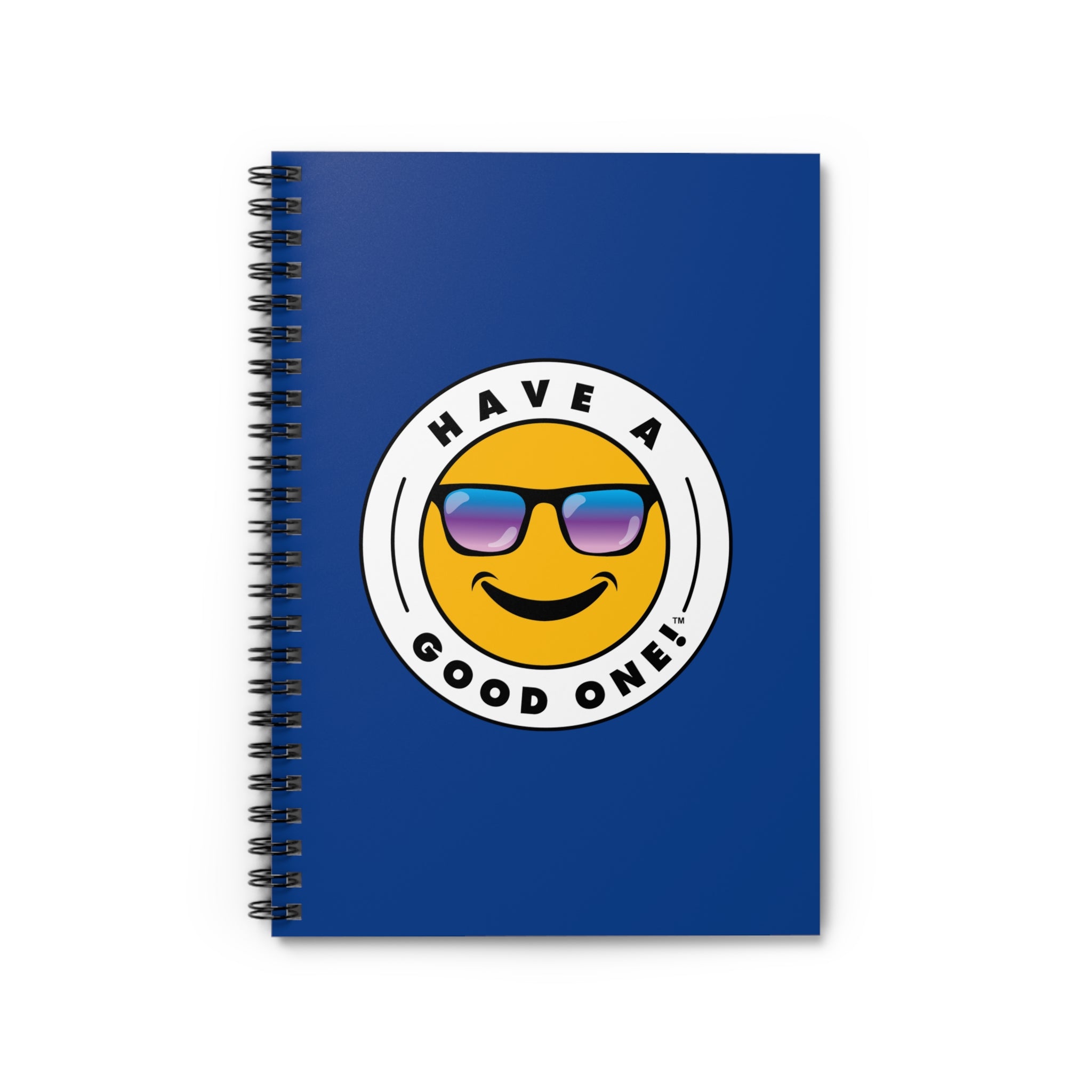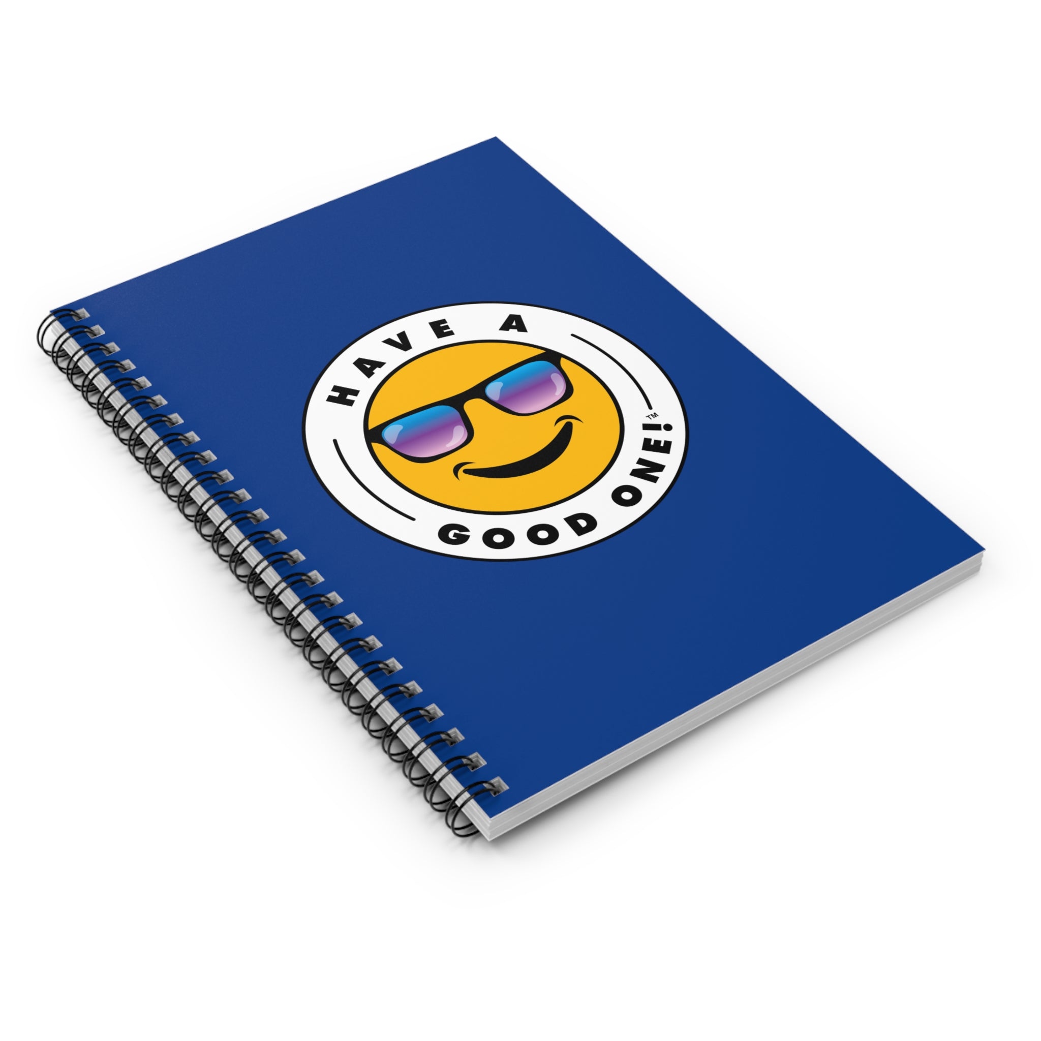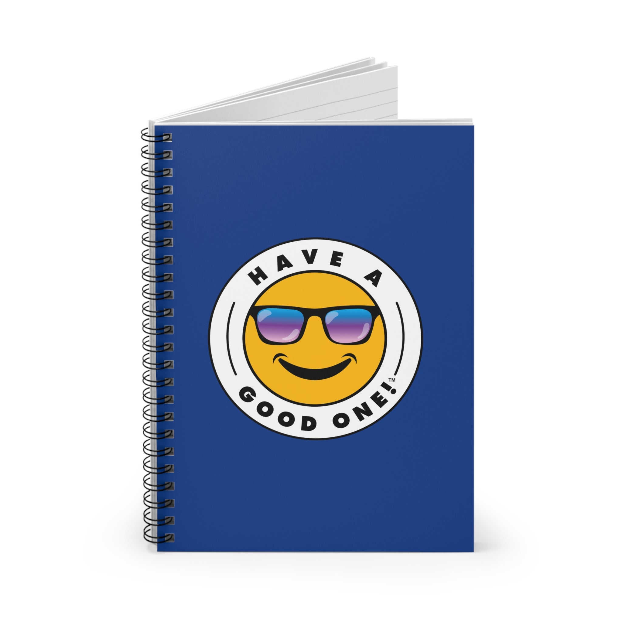 Fun Spiral Lined Notebook - Dark Blue Color With Blue and Purple Have A Good One! Logo