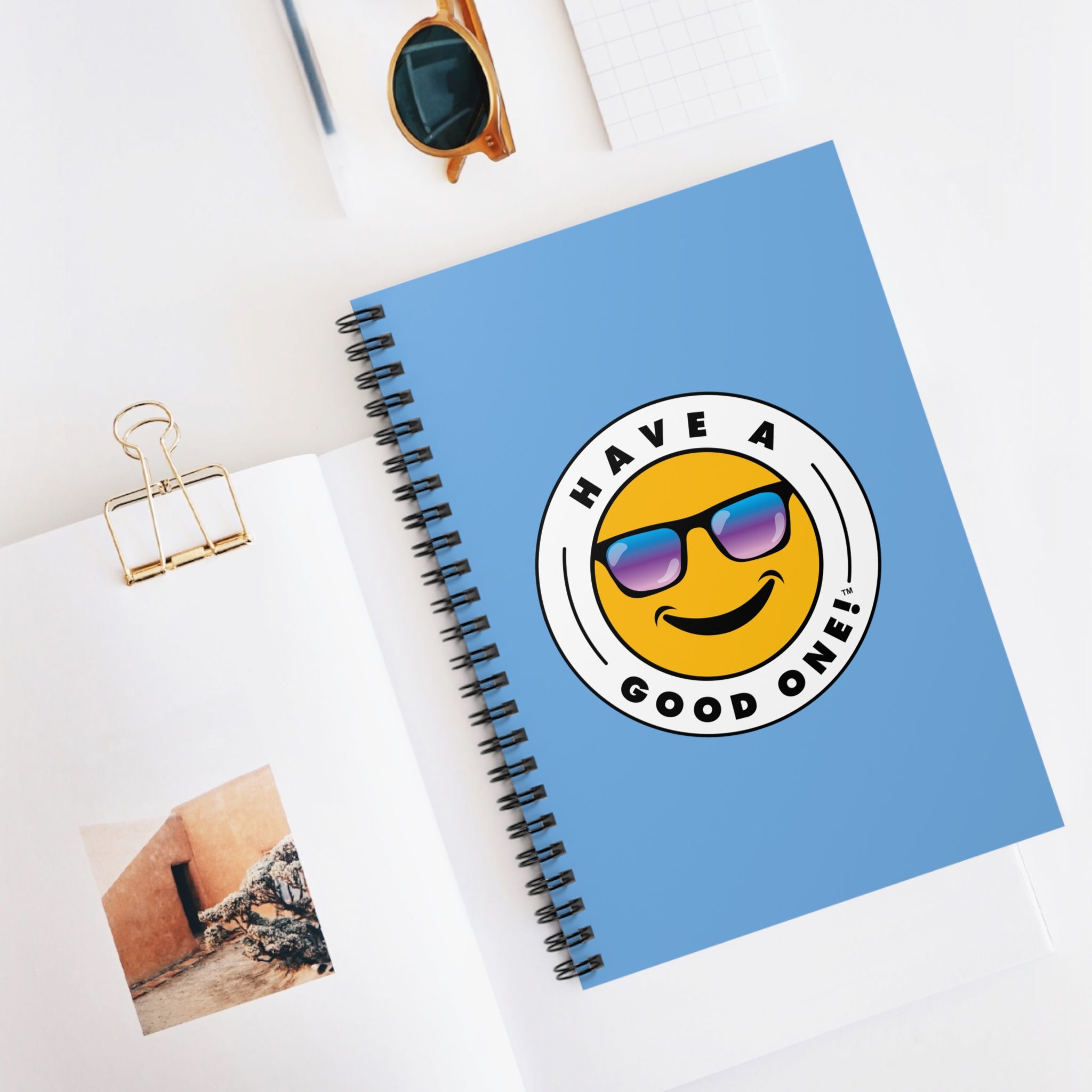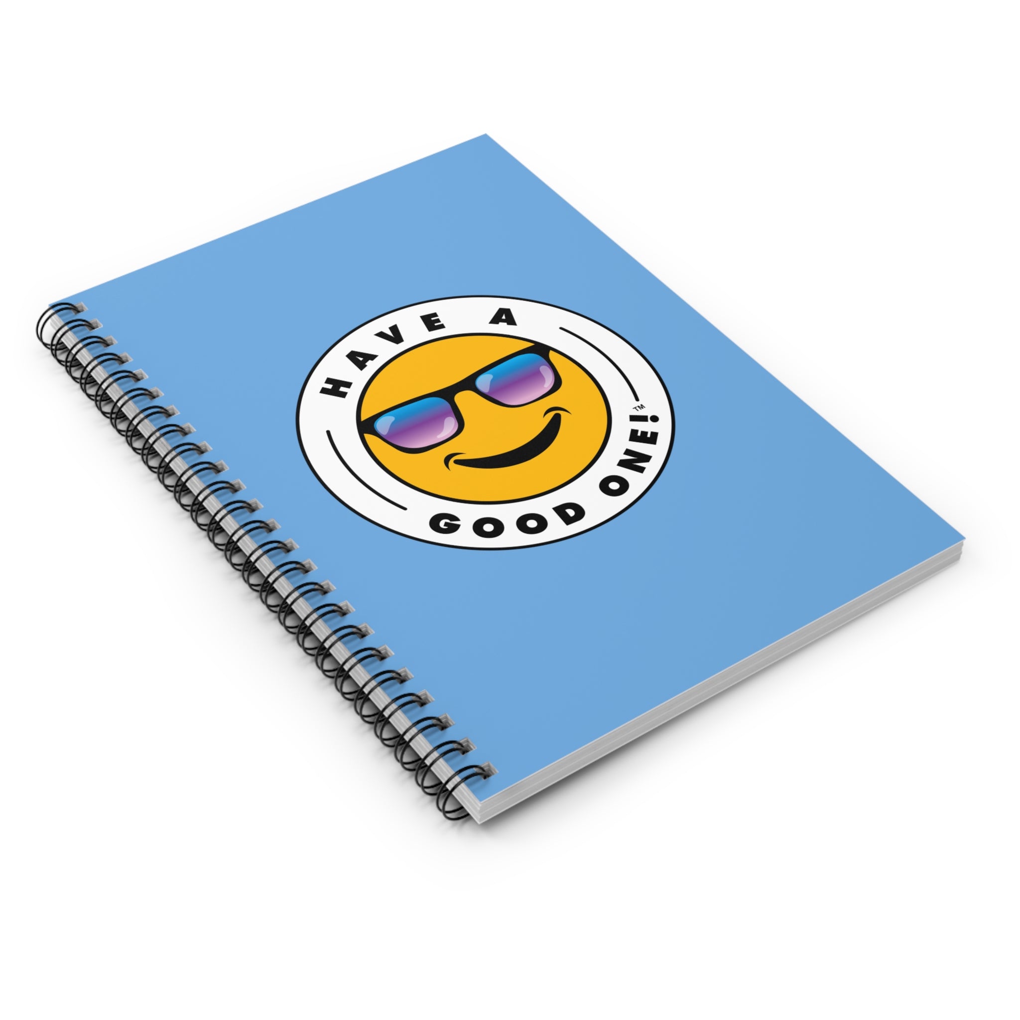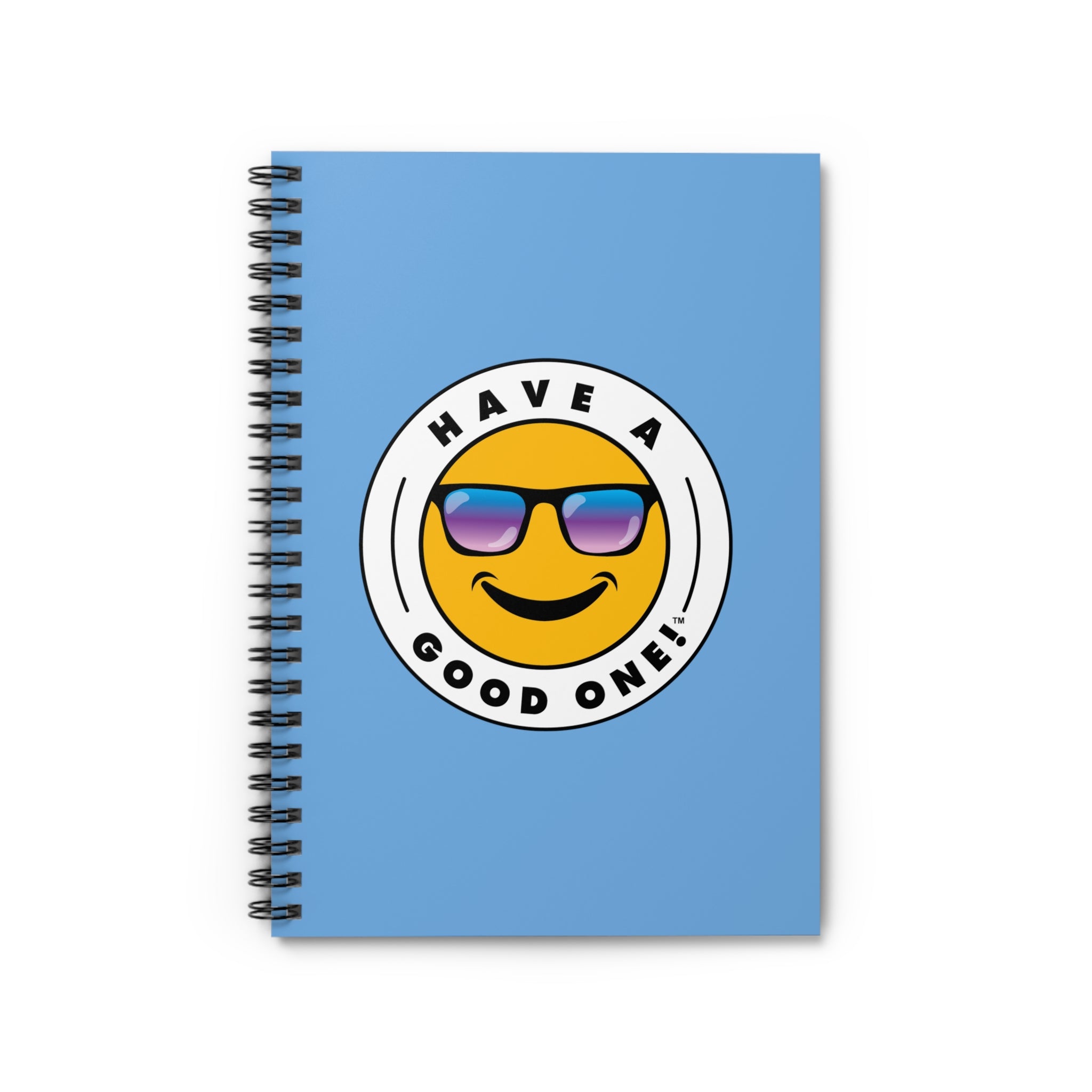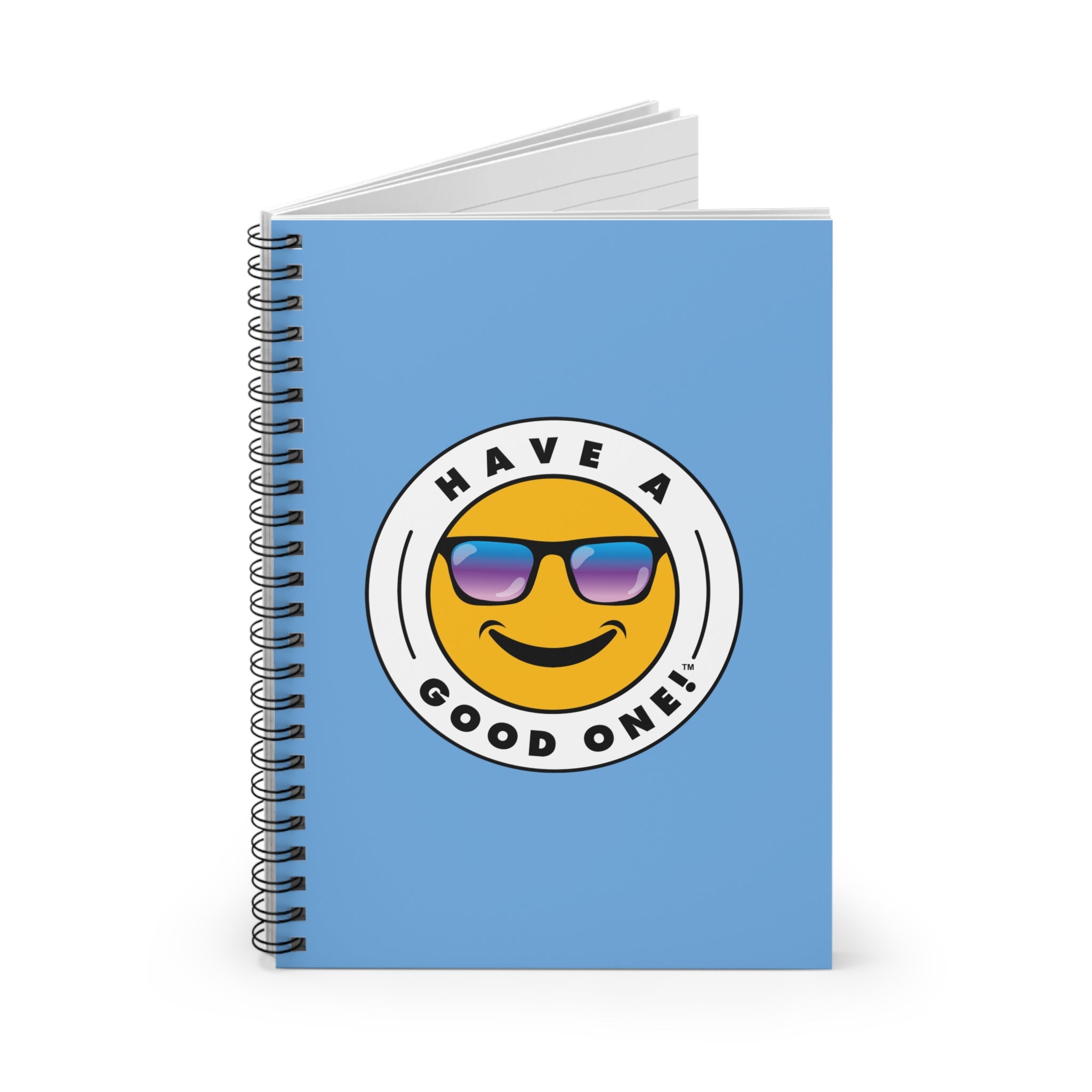 Fun Spiral Lined Notebook - Light Blue Color With Blue and Purple Have A Good One! Logo