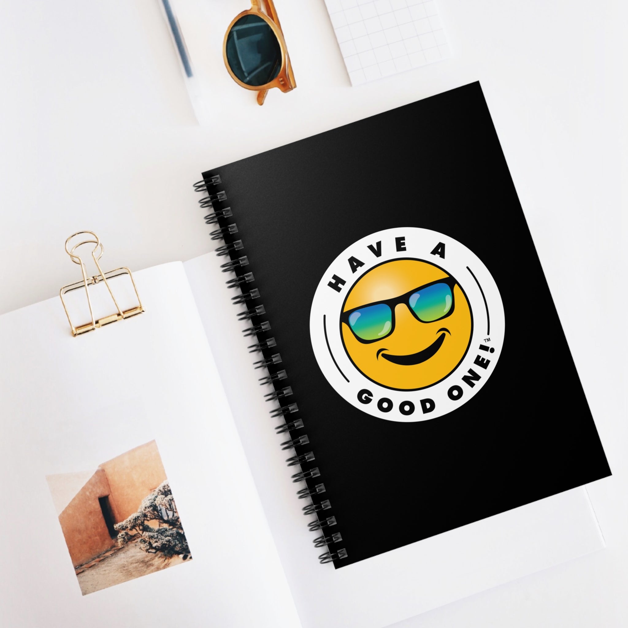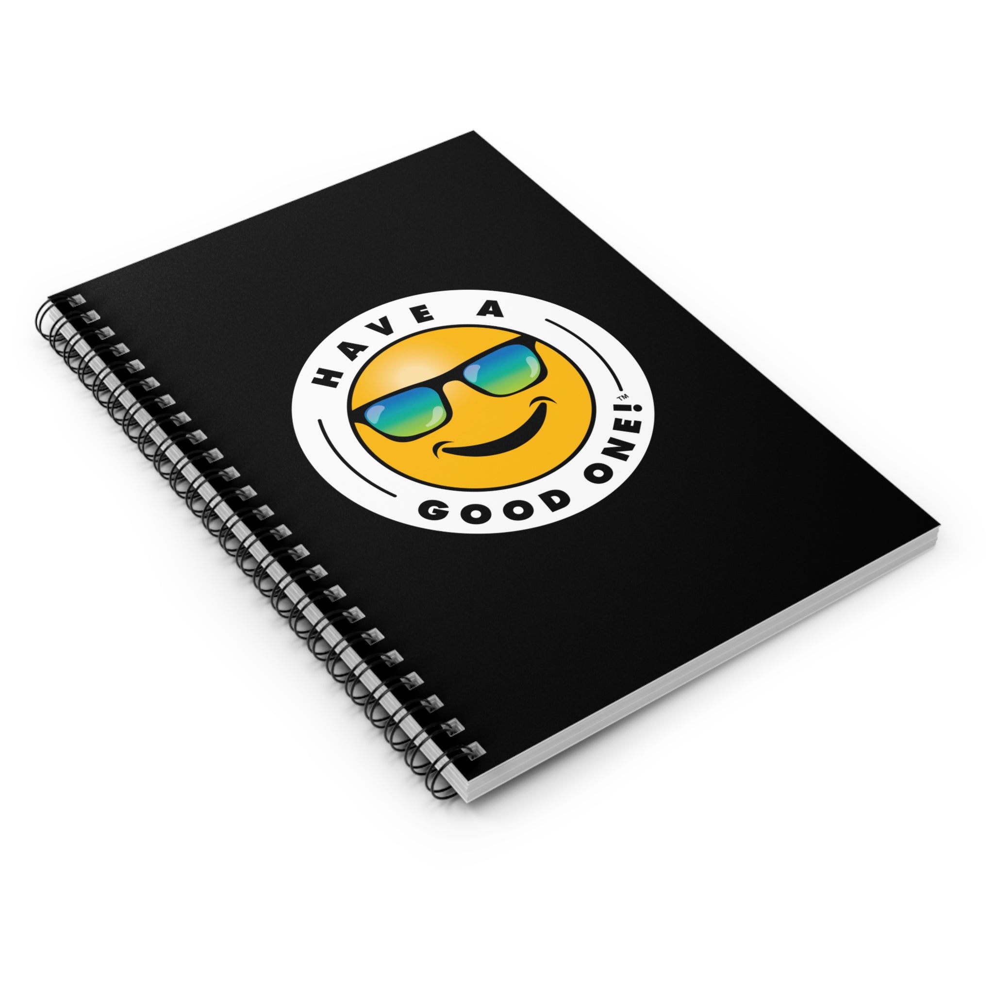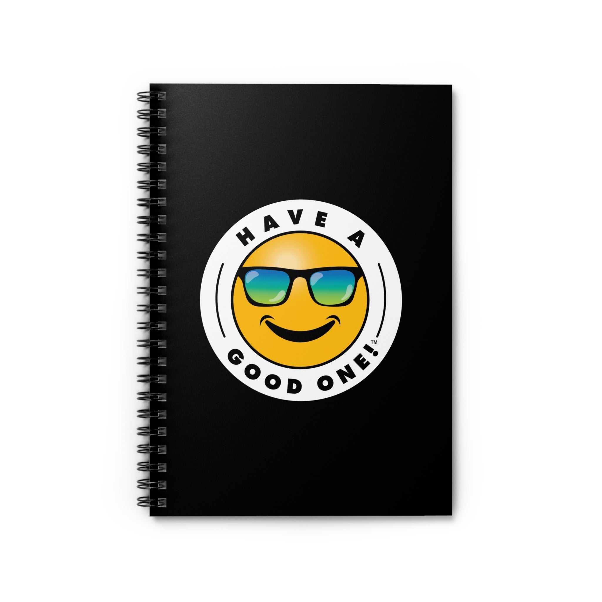 Fun Spiral Lined Notebook - Black Color With Blue and Green Have A Good One! Logo
