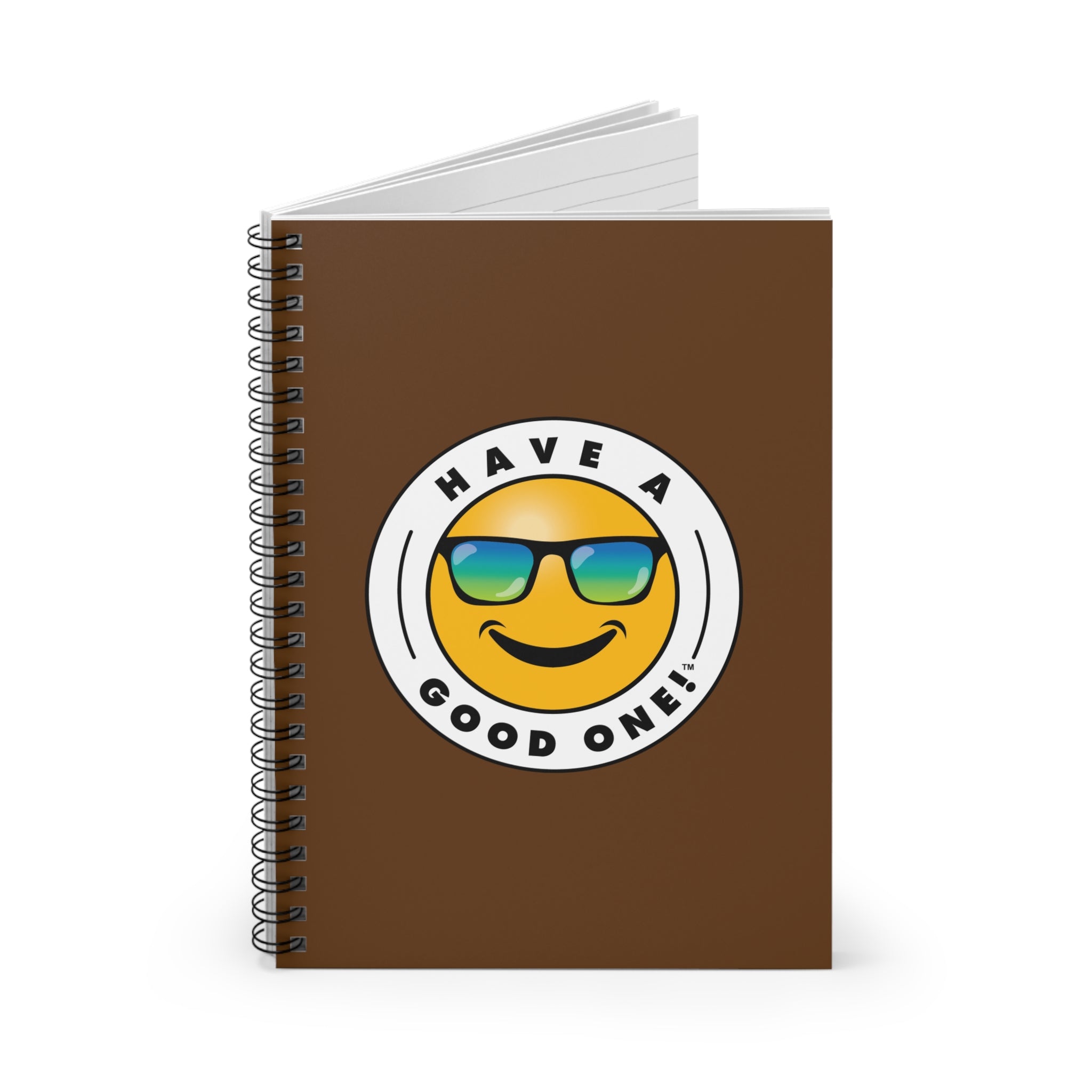 Fun Spiral Lined Notebook - Brown Color With Blue and Green Have A Good One! Logo