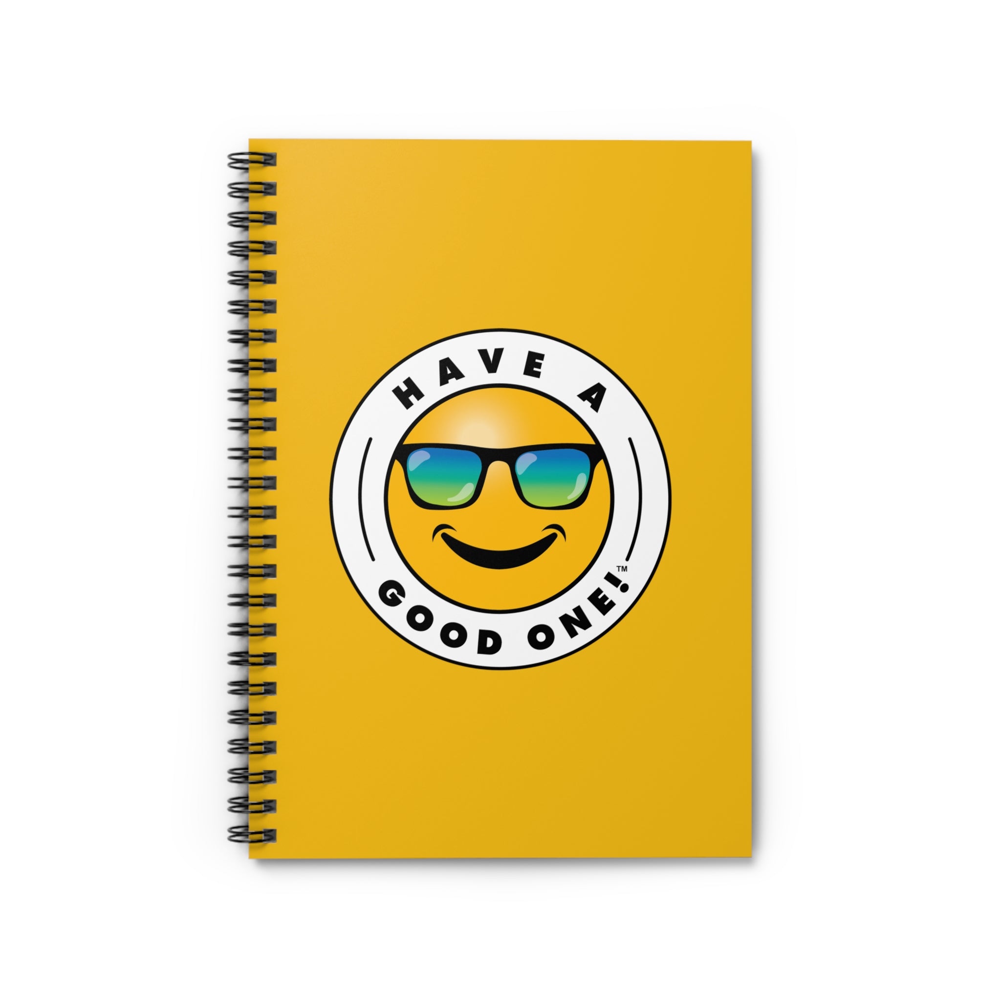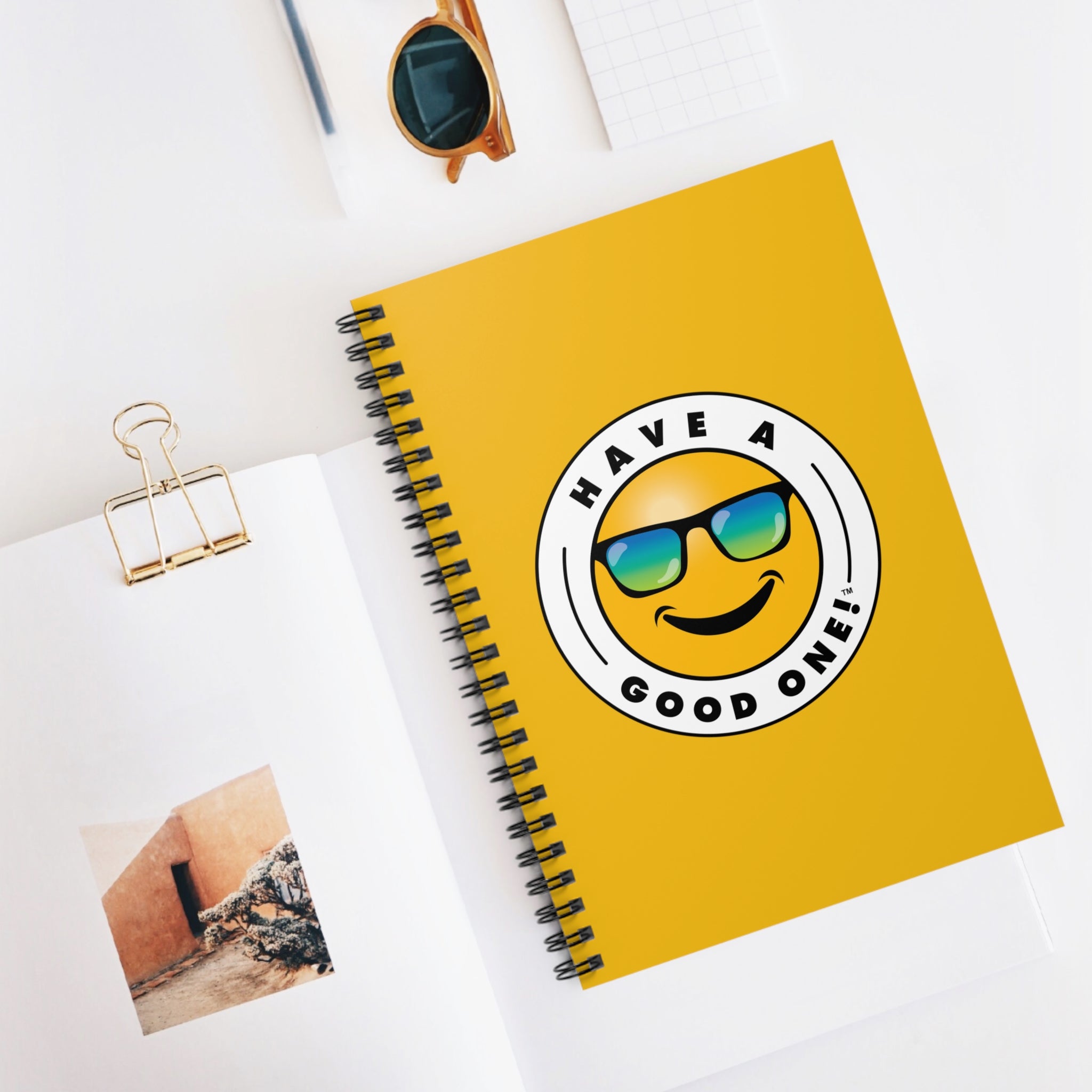 Fun Spiral Lined Notebook - Yellow Color With Blue and Green Have A Good One! Logo