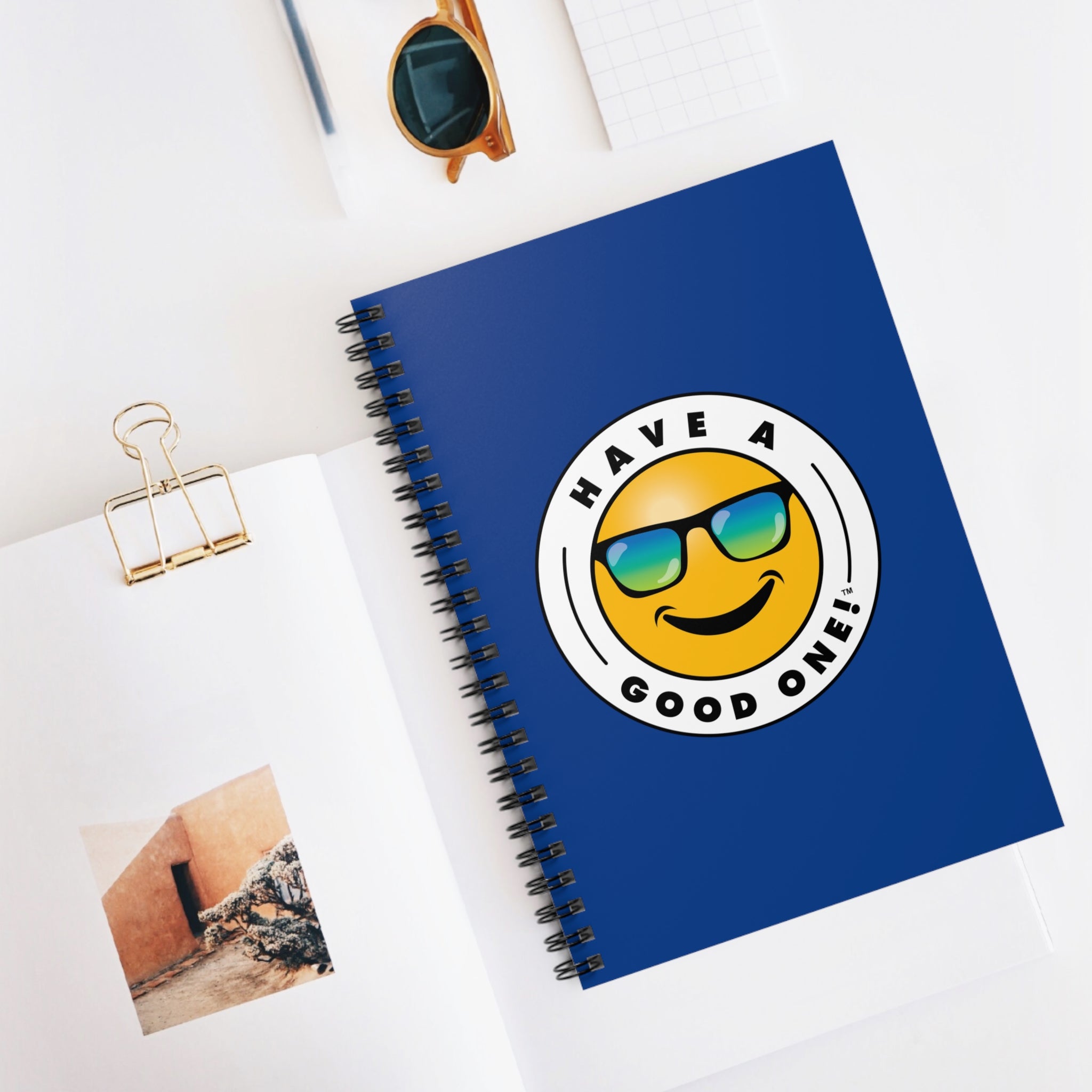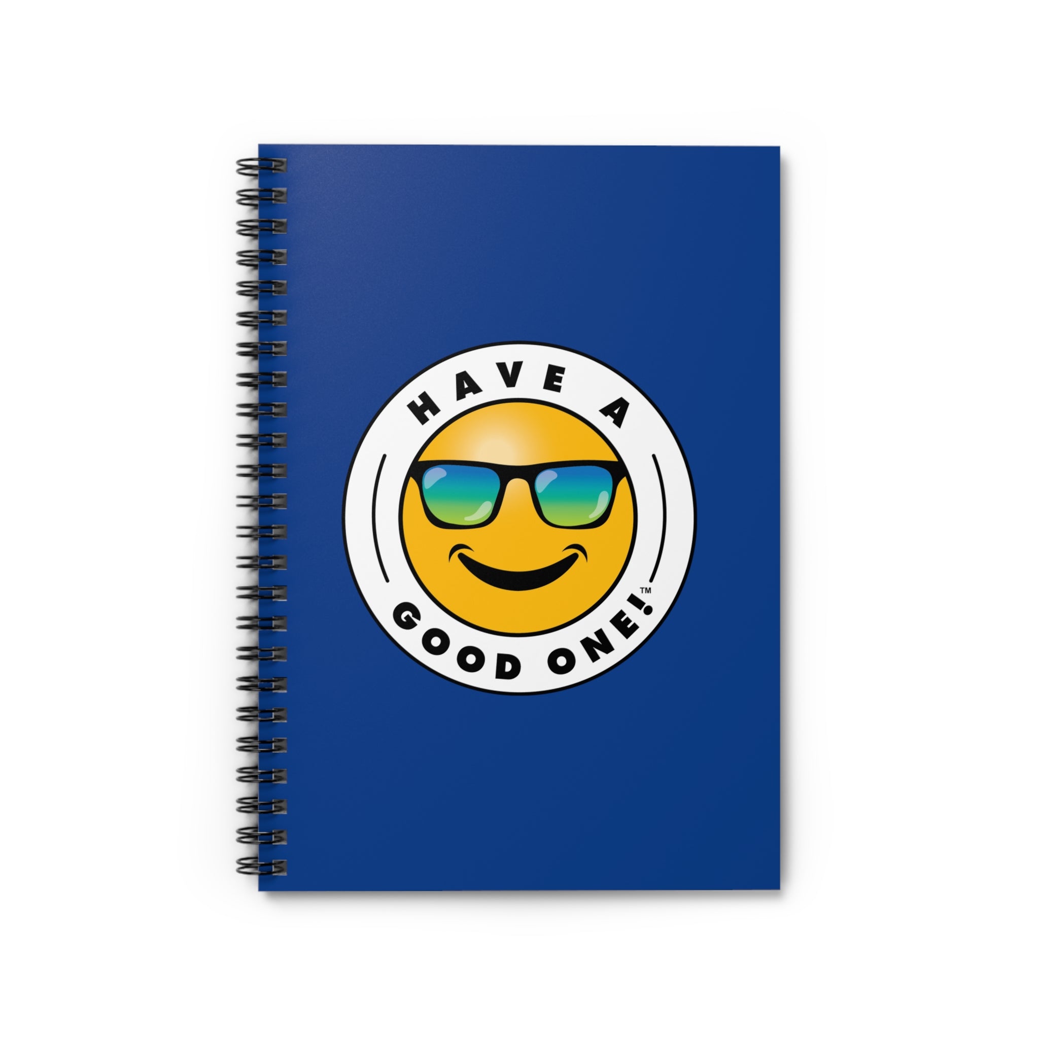 Fun Spiral Lined Notebook - Dark Blue Color With Blue and Green Have A Good One! Logo