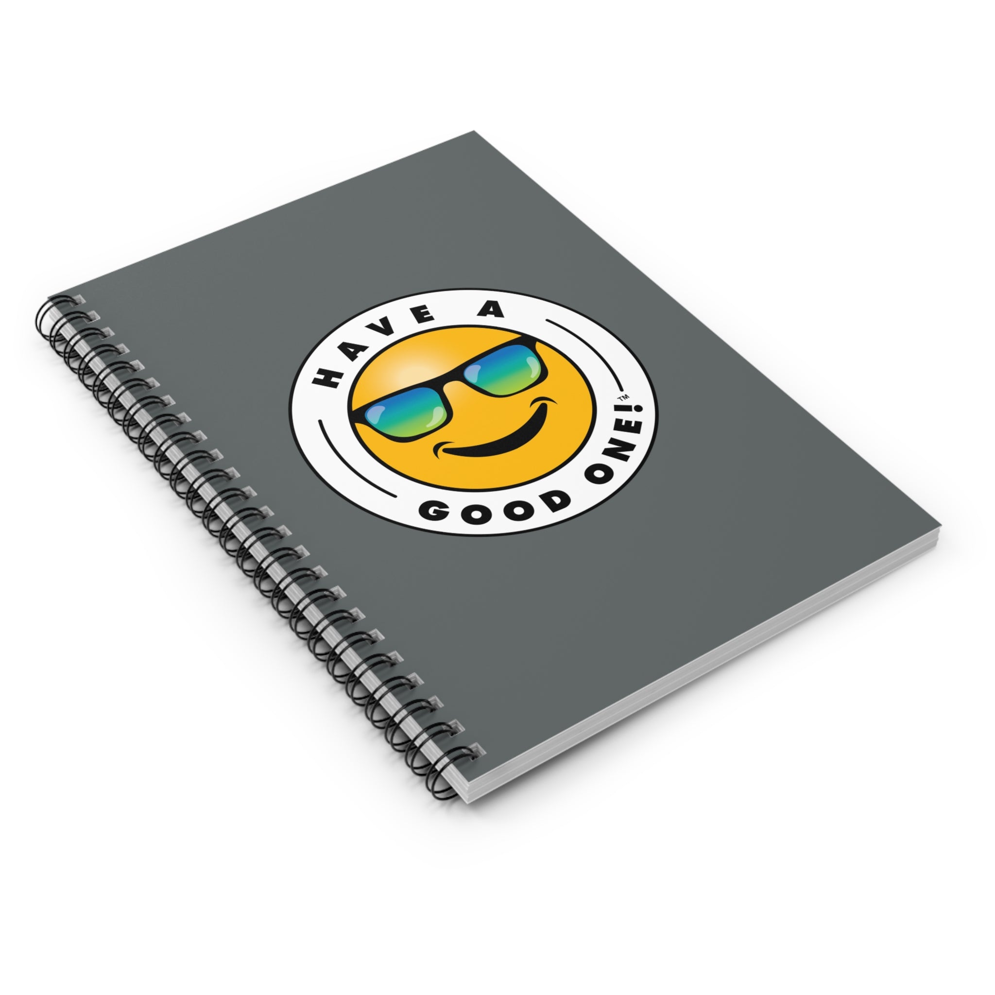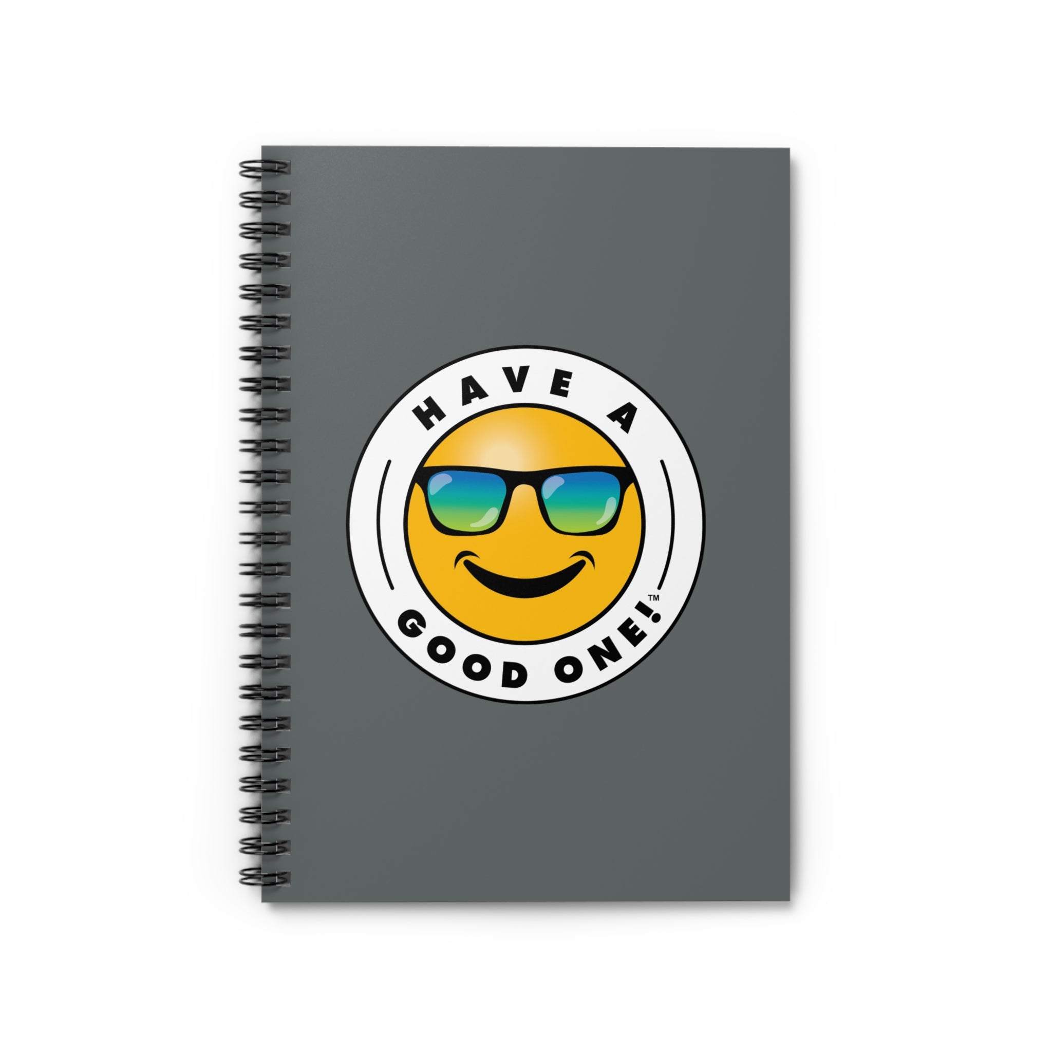 Fun Spiral Lined Notebook - Dark Grey Color With Blue and Green Have A Good One! Logo