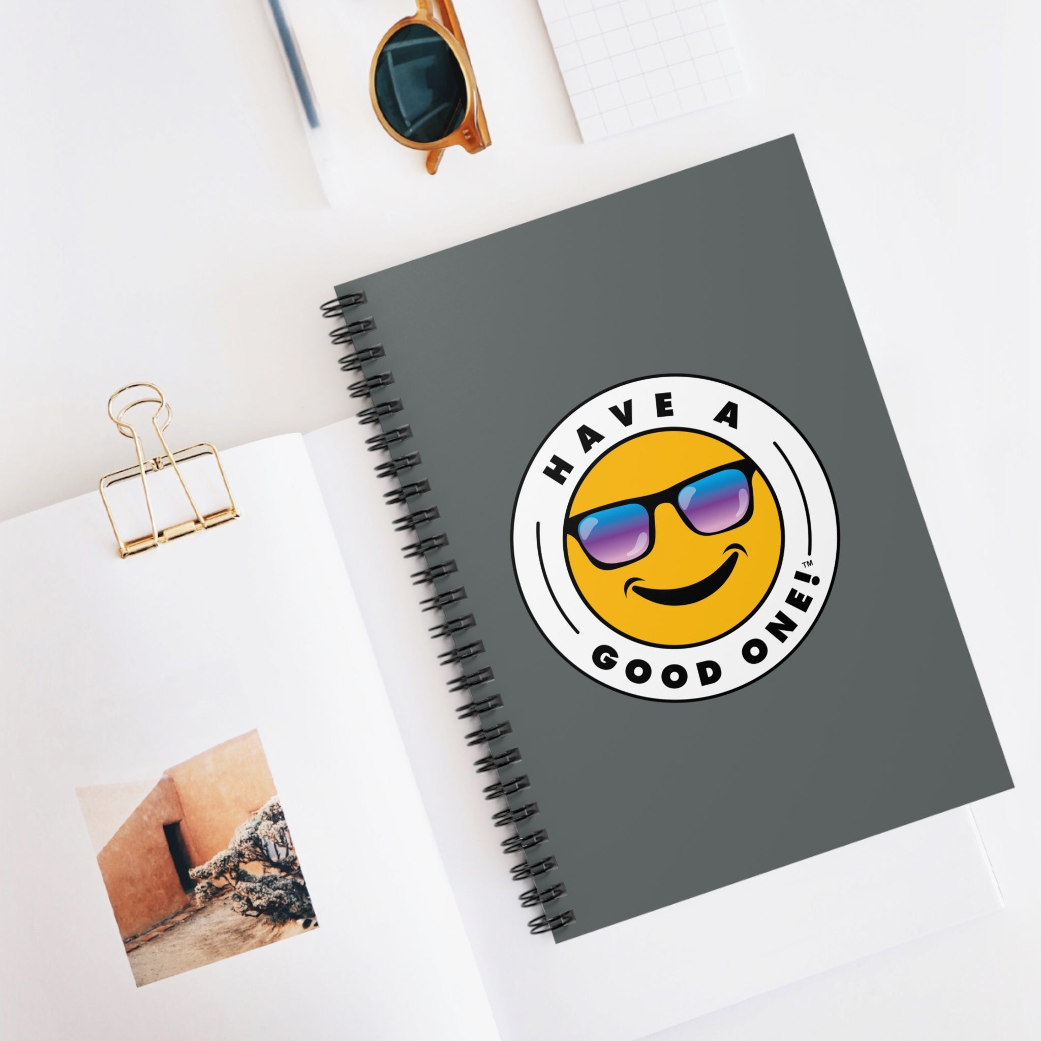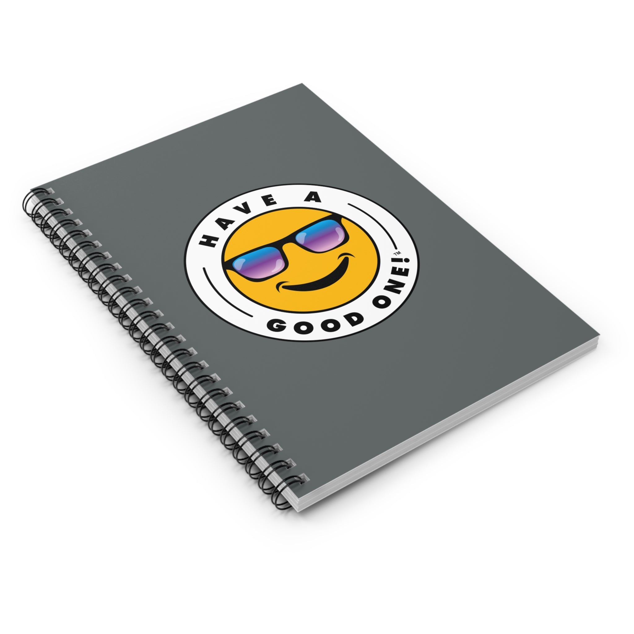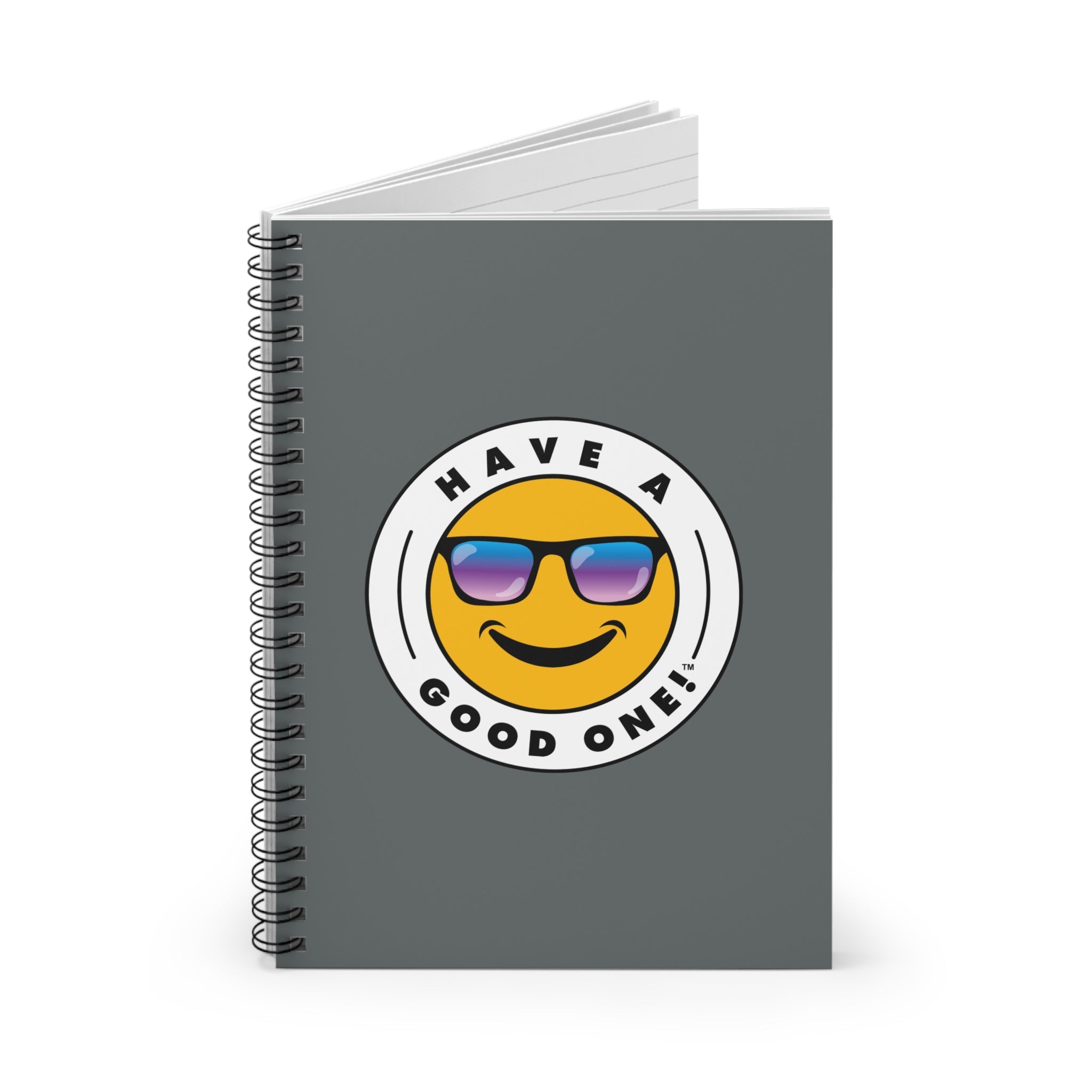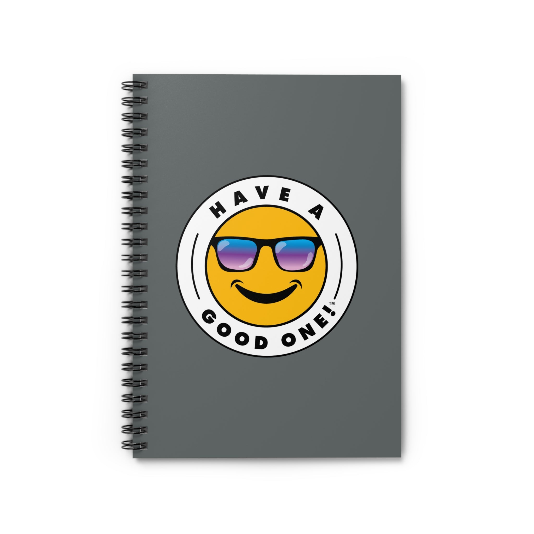Fun Spiral Lined Notebook - Dark Grey Color With Blue and Purple Have A Good One! Logo