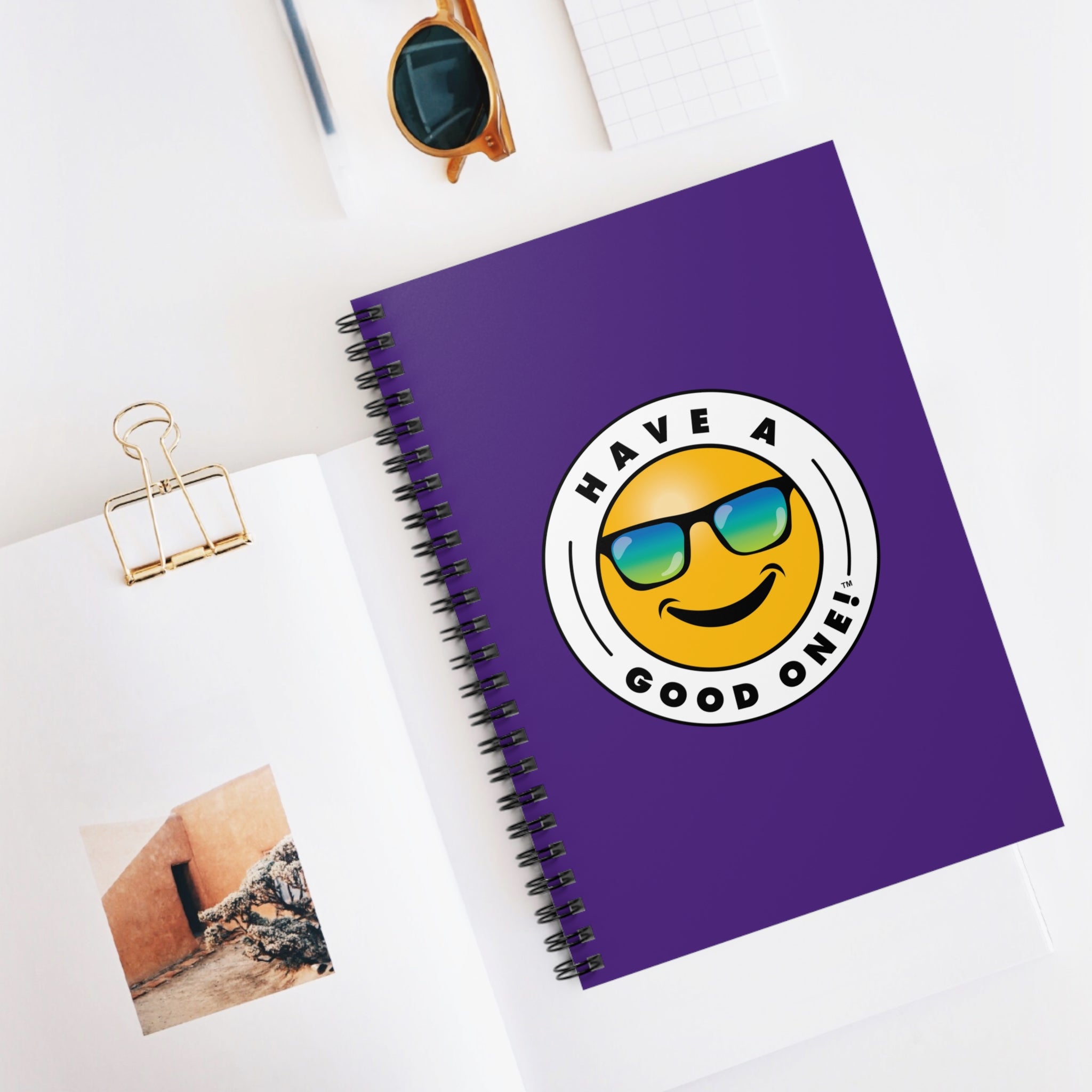Fun Spiral Lined Notebook - Purple Color With Blue and Green Have A Good One! Logo