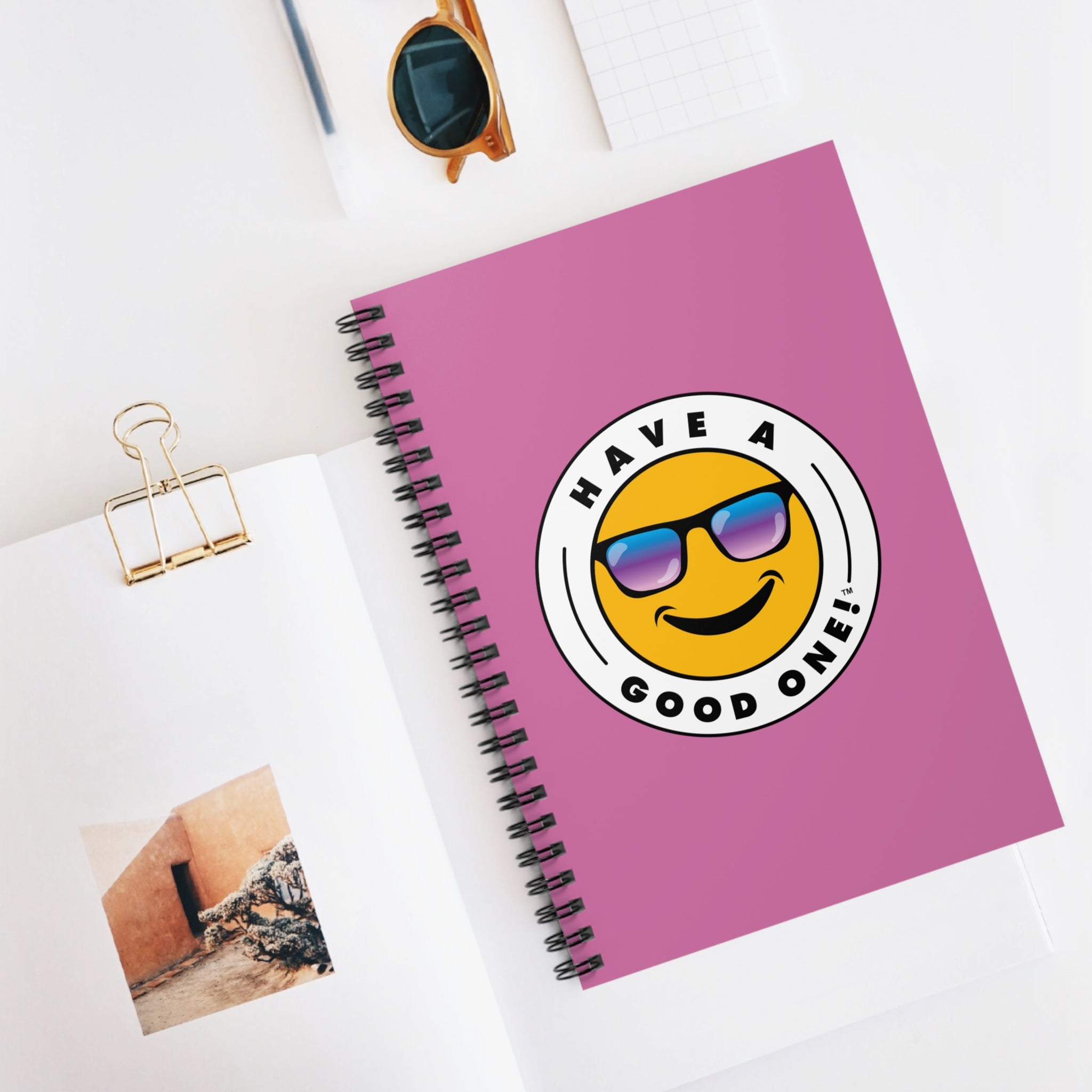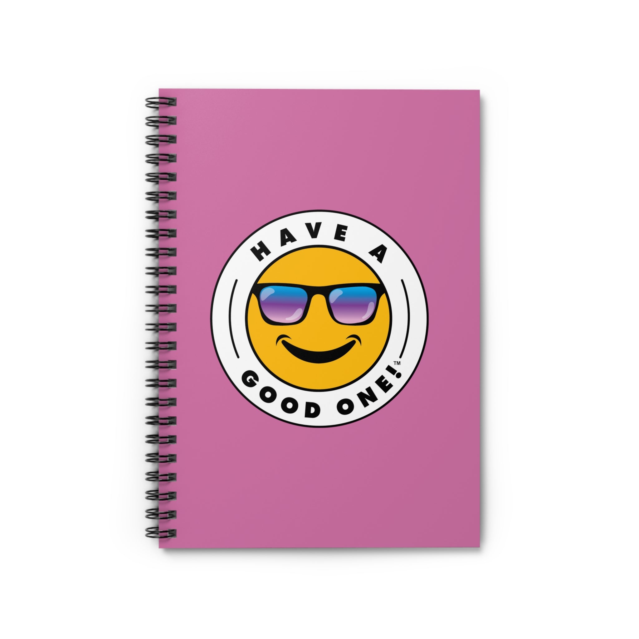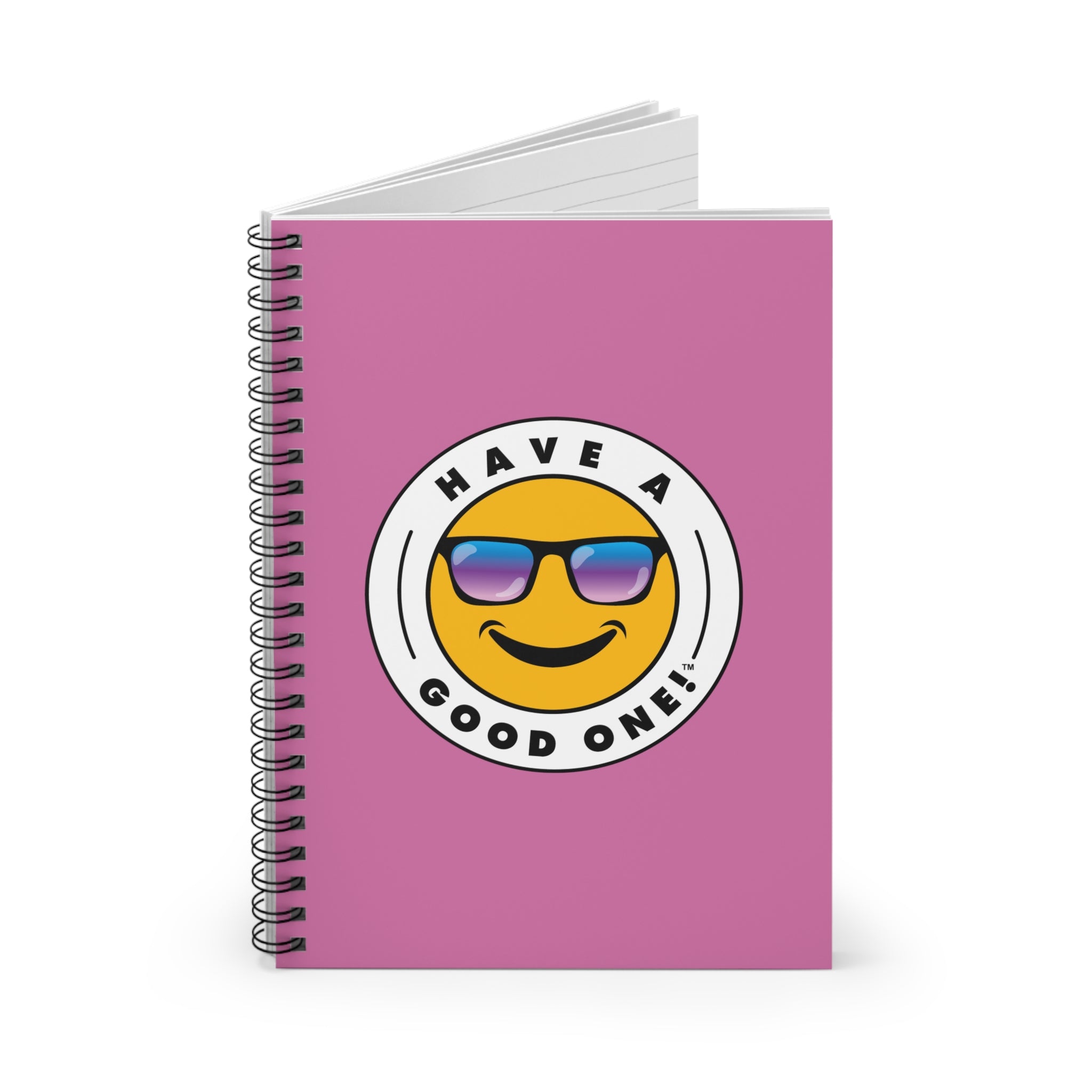 Fun Spiral Lined Notebook - Light Pink Color With Blue and Purple Have A Good One! Logo
