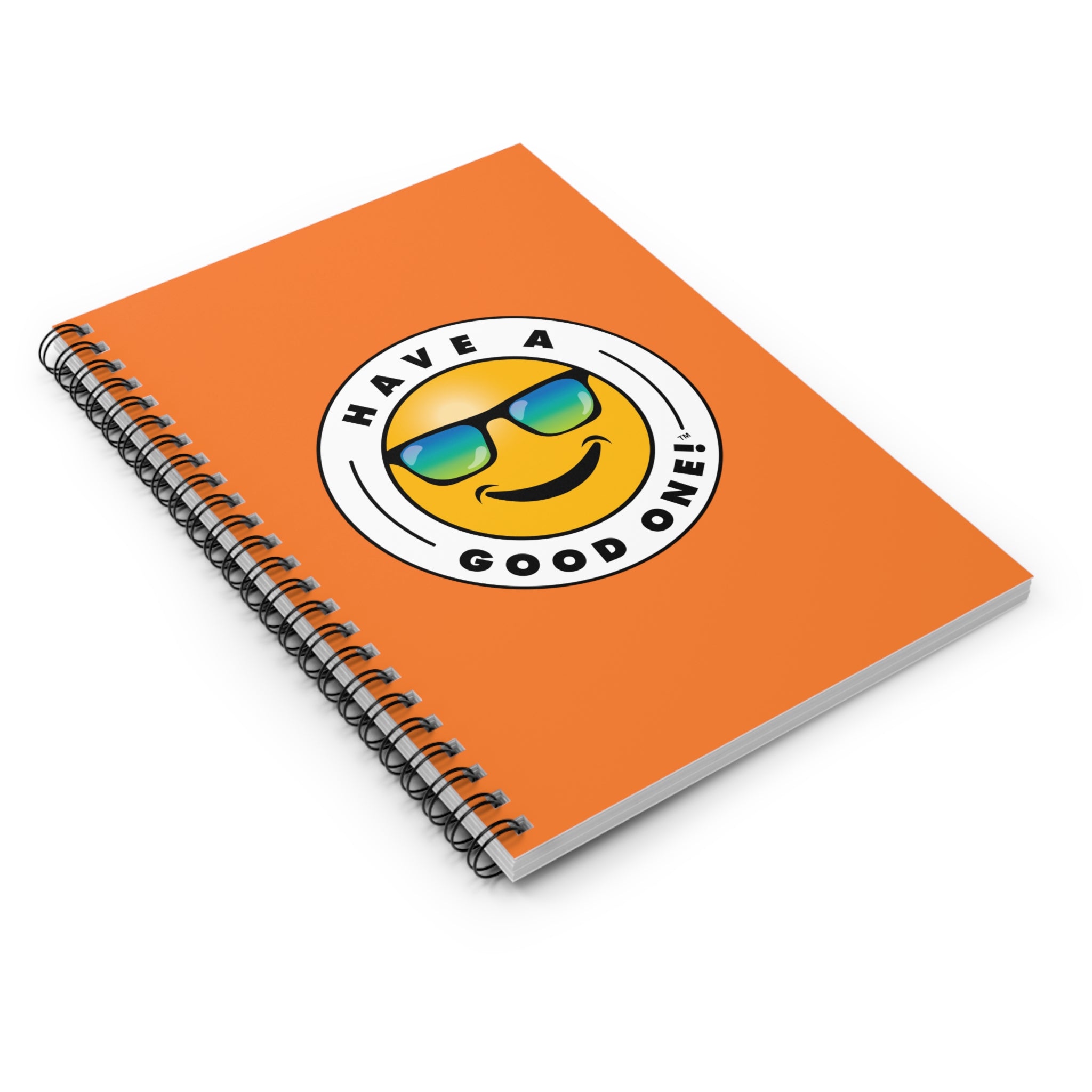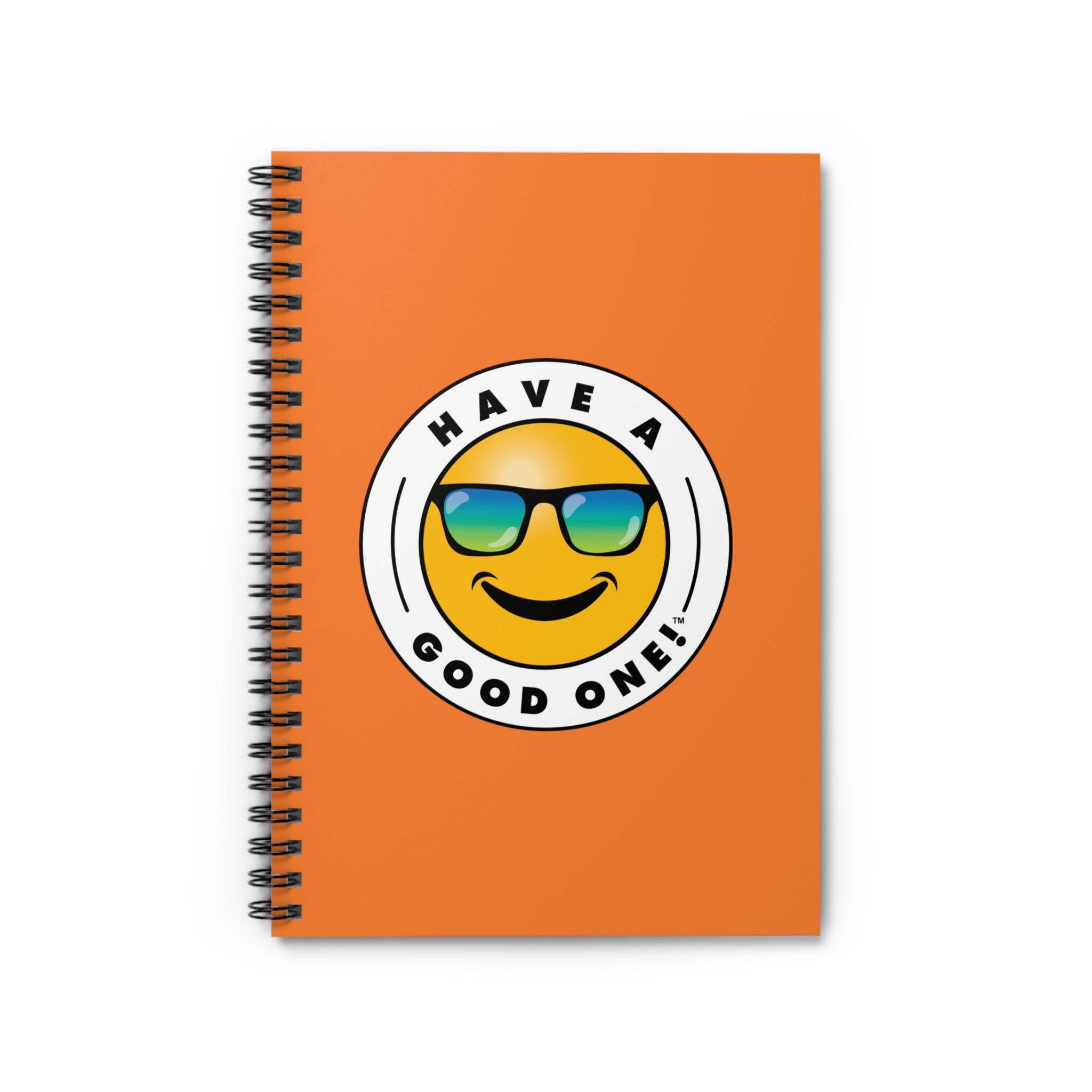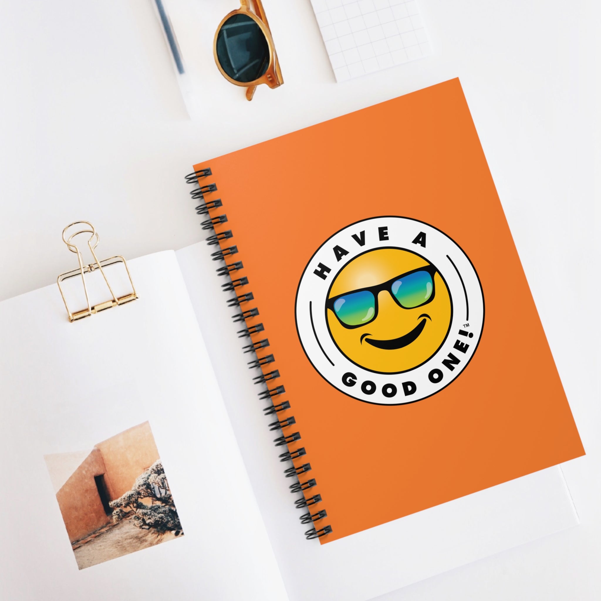 Fun Spiral Lined Notebook - Orange Color With Blue and Green Have A Good One! Logo
