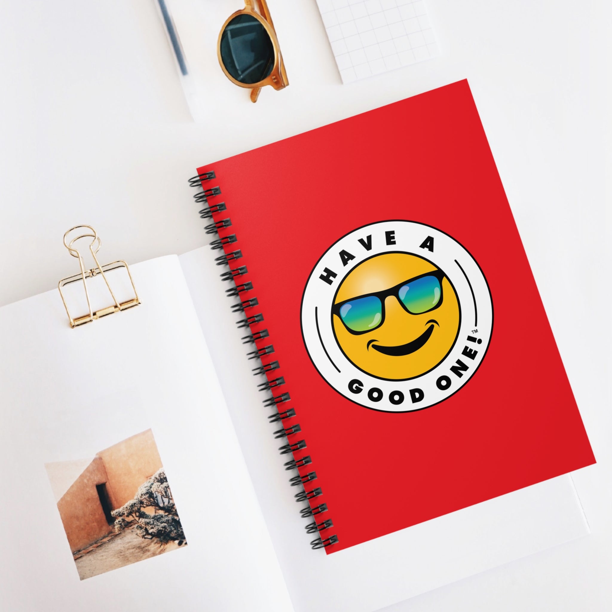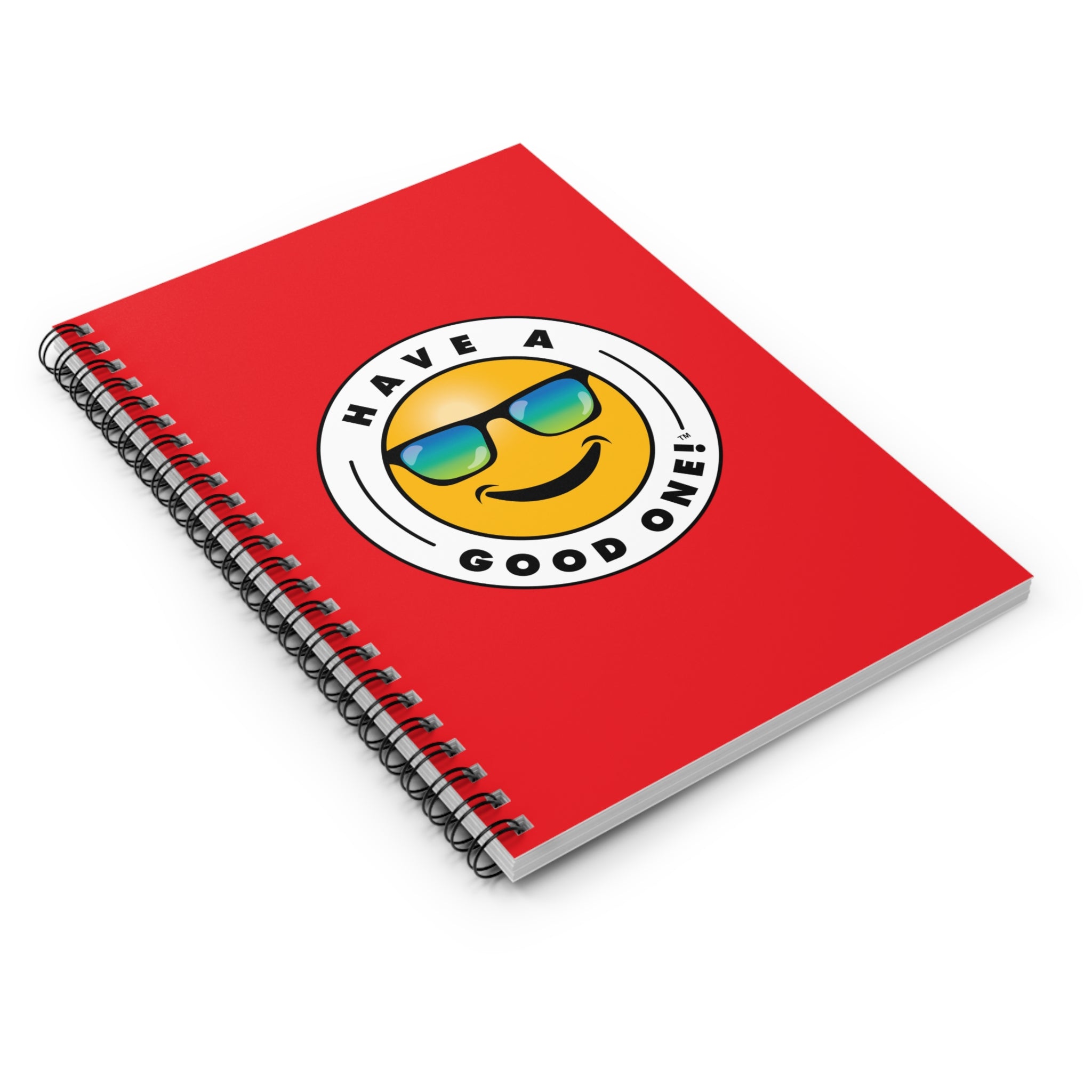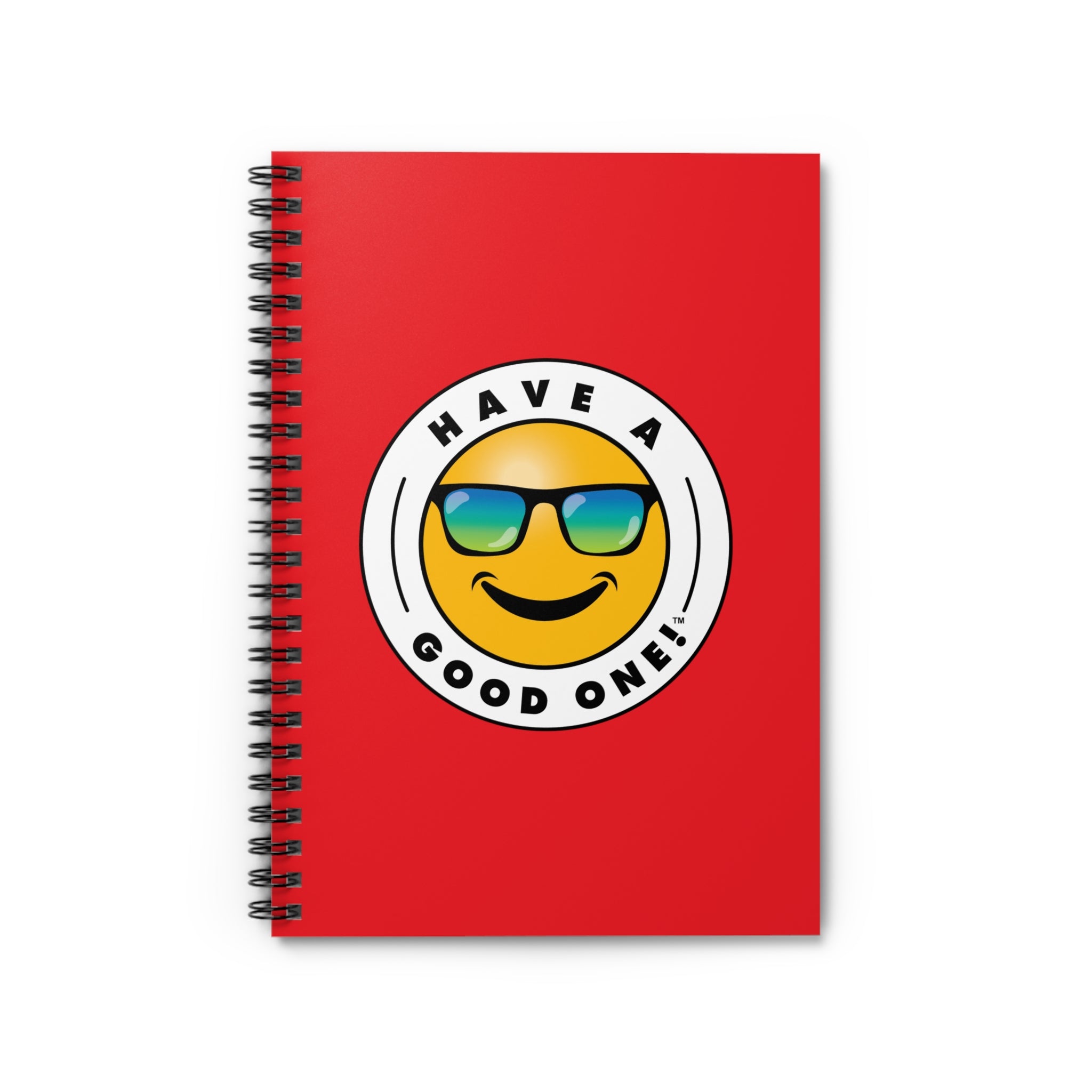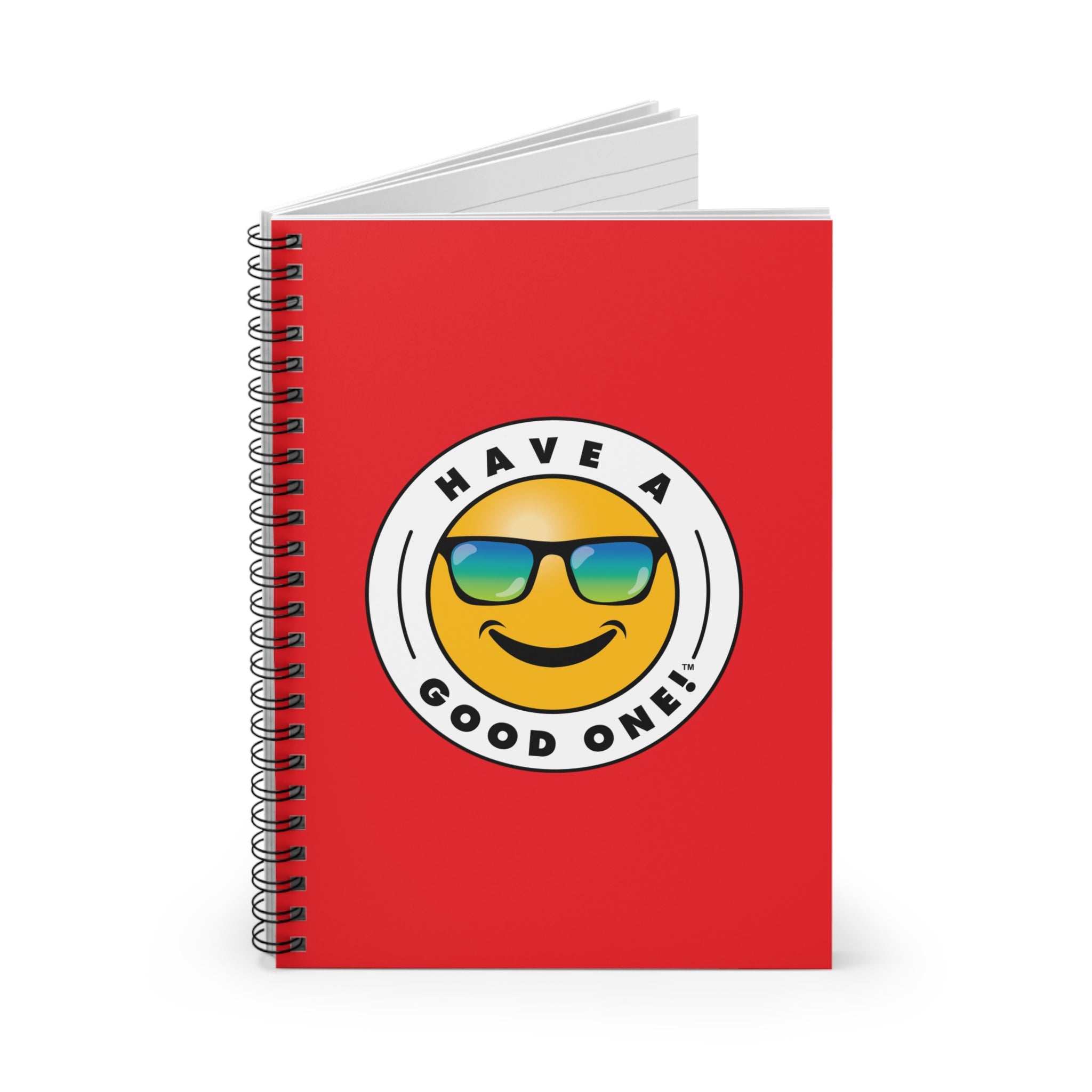 Fun Spiral Lined Notebook - Red Color With Blue and Green Have A Good One! Logo