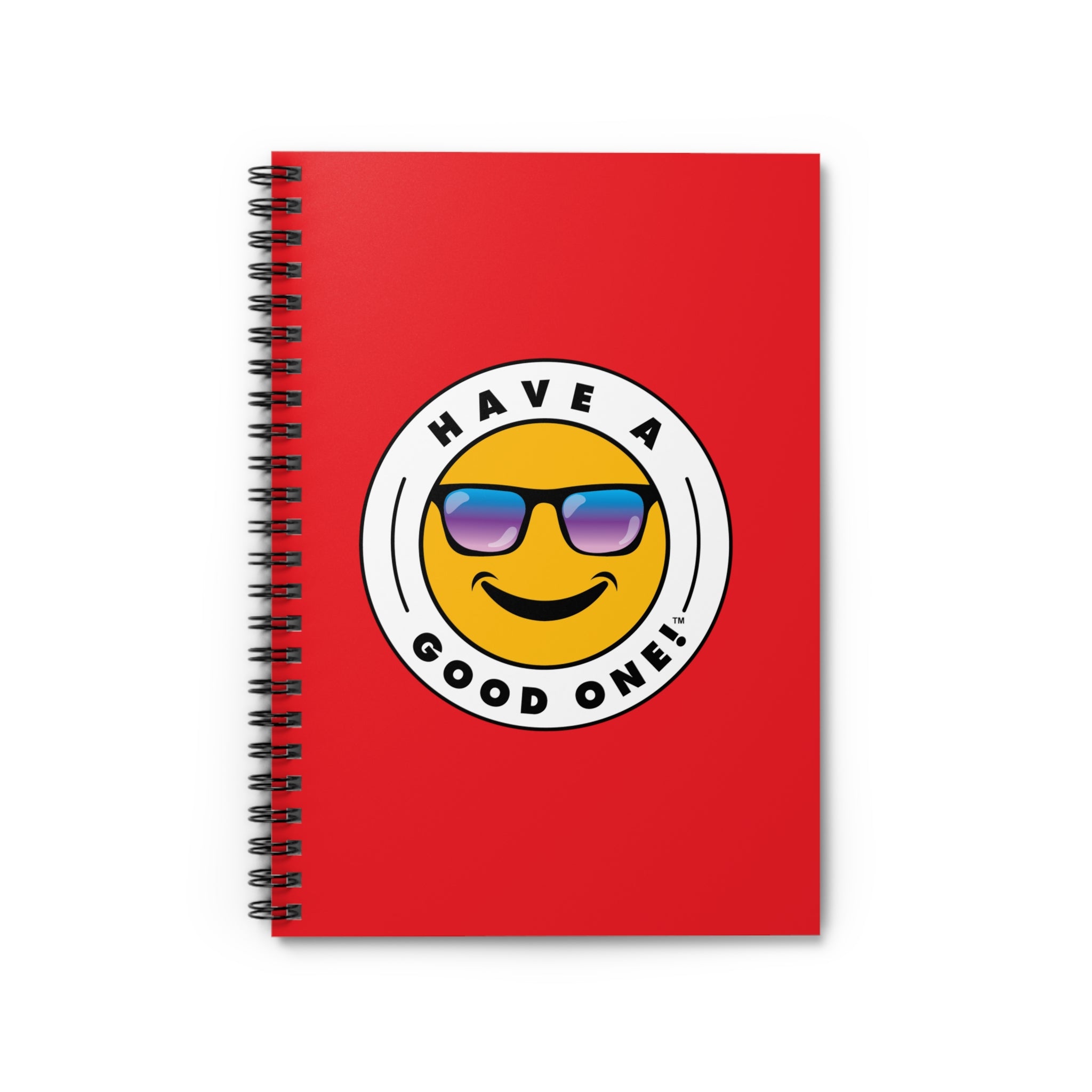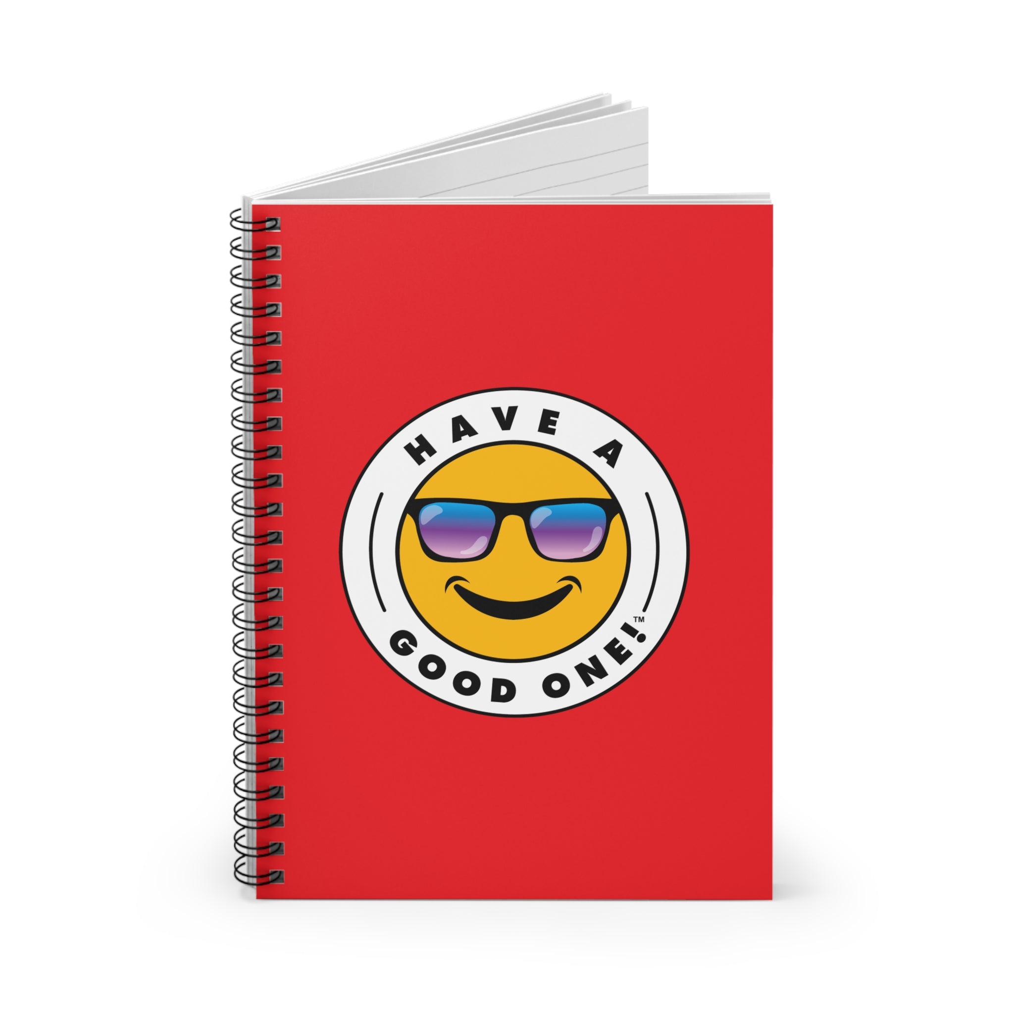 Fun Spiral Lined Notebook - Red Color With Blue and Purple Have A Good One! Logo