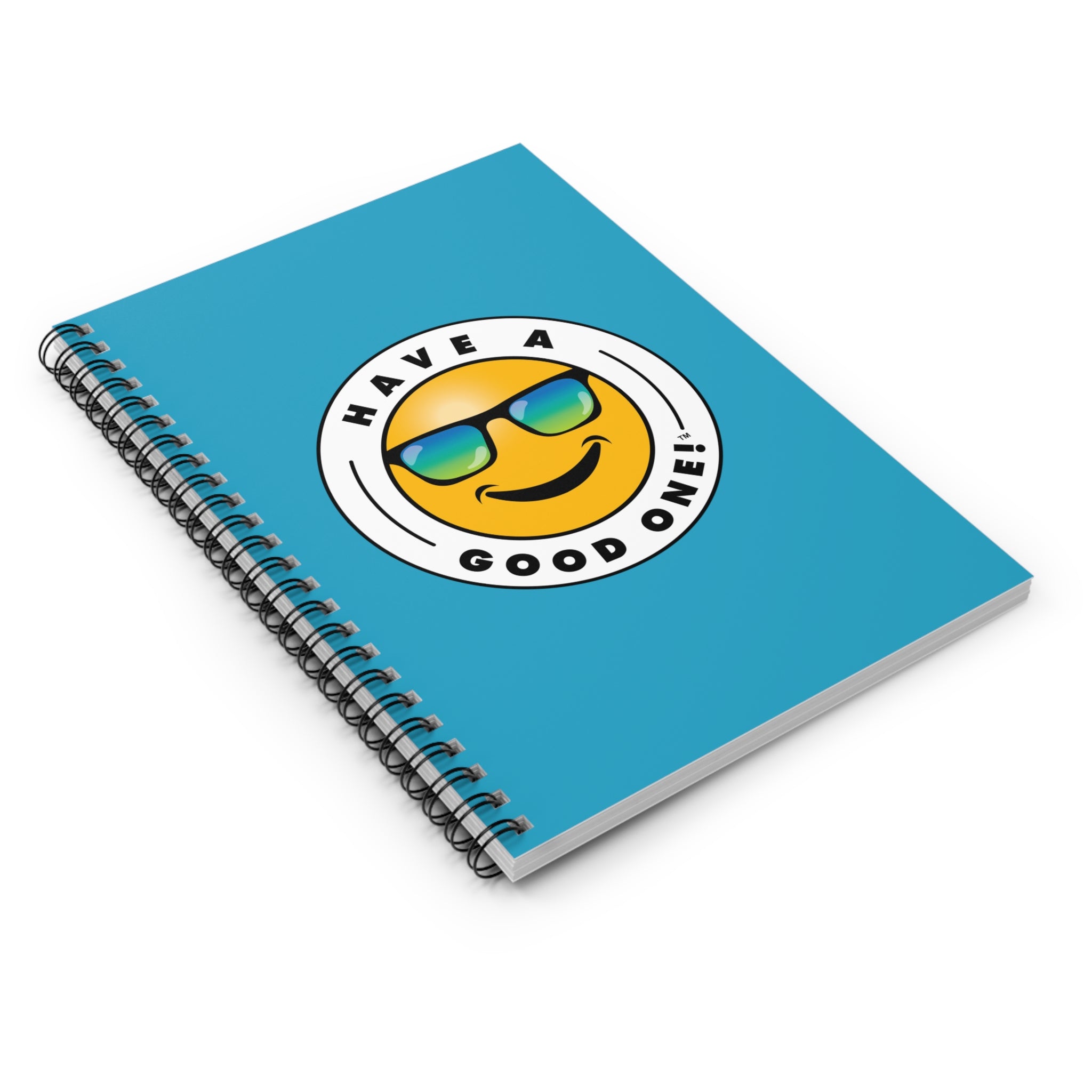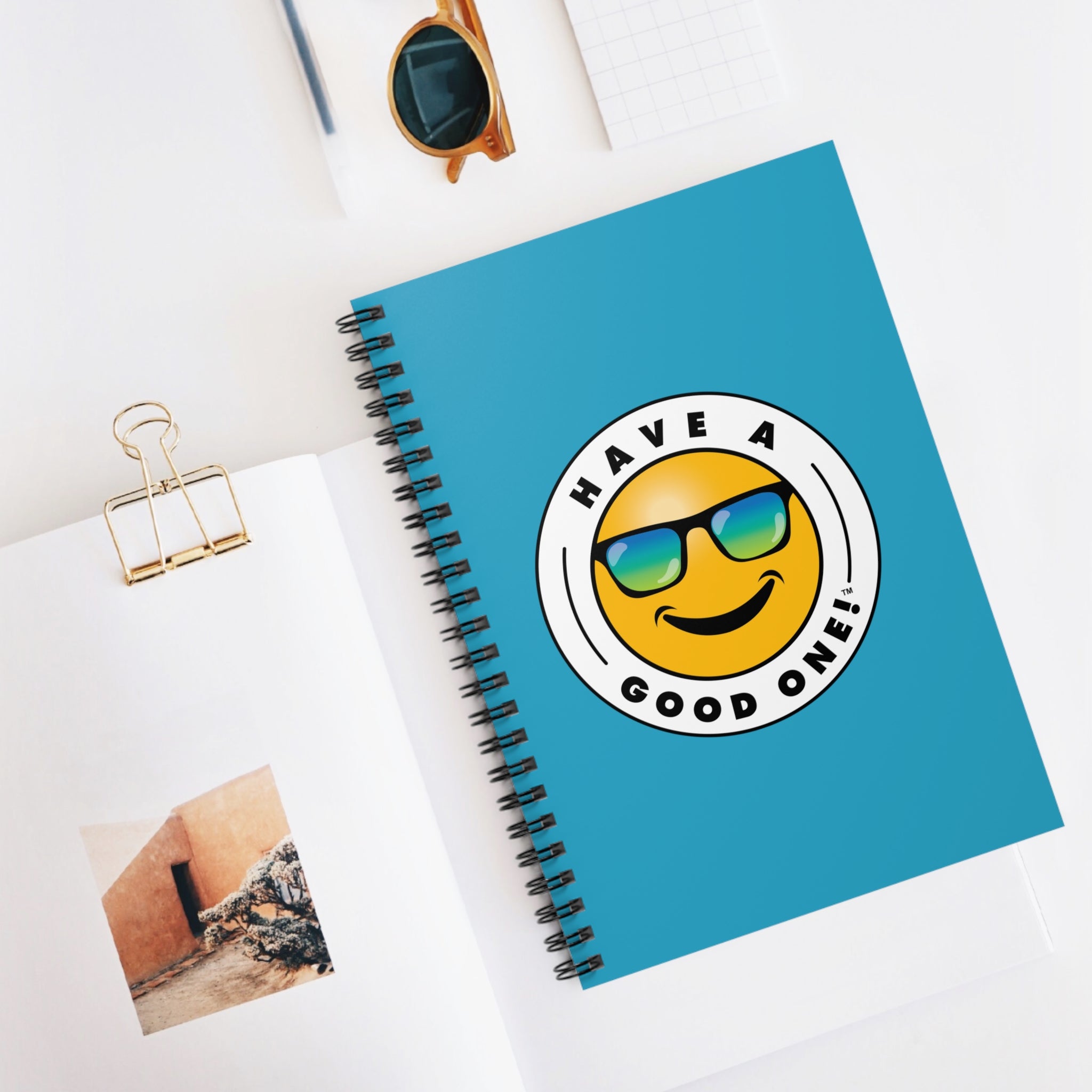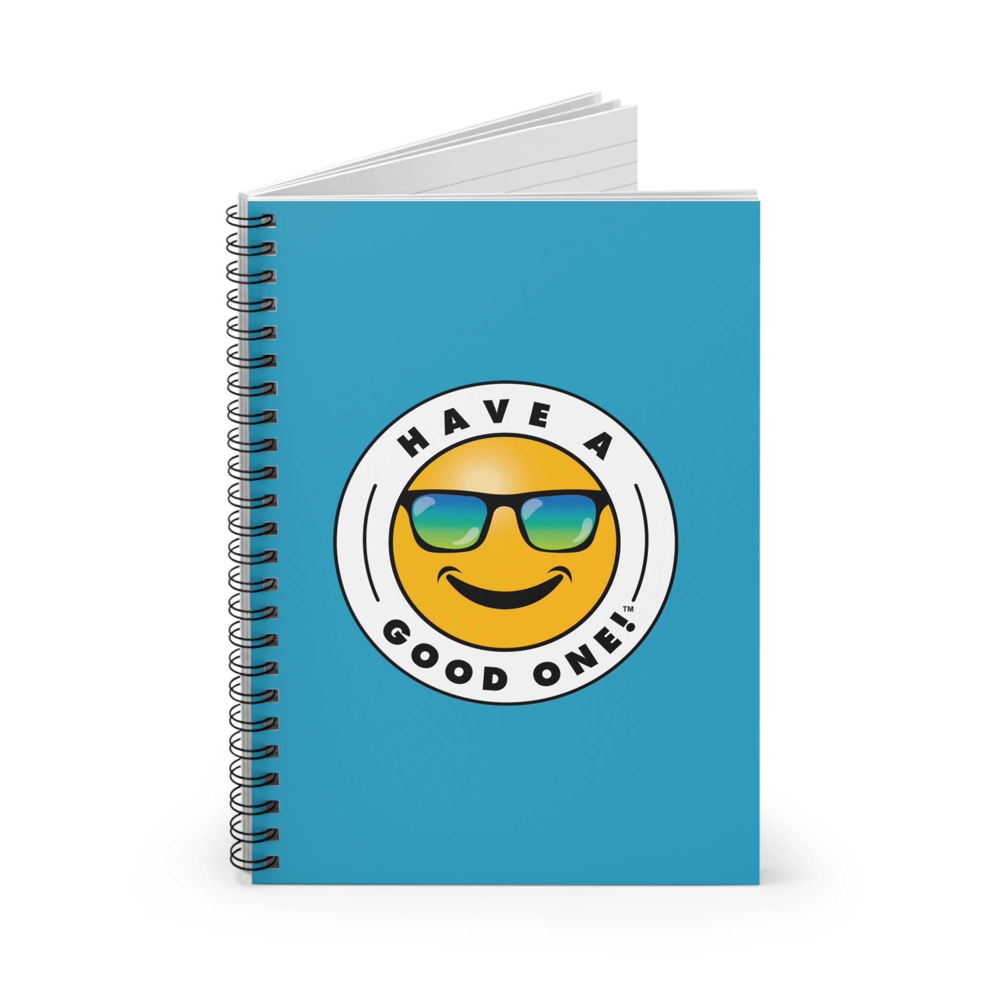 Fun Spiral Lined Notebook - Turquoise Color With Blue and Green Have A Good One! Logo
