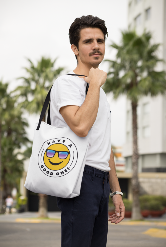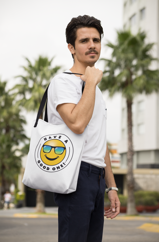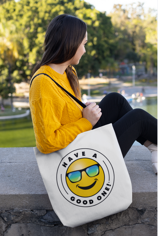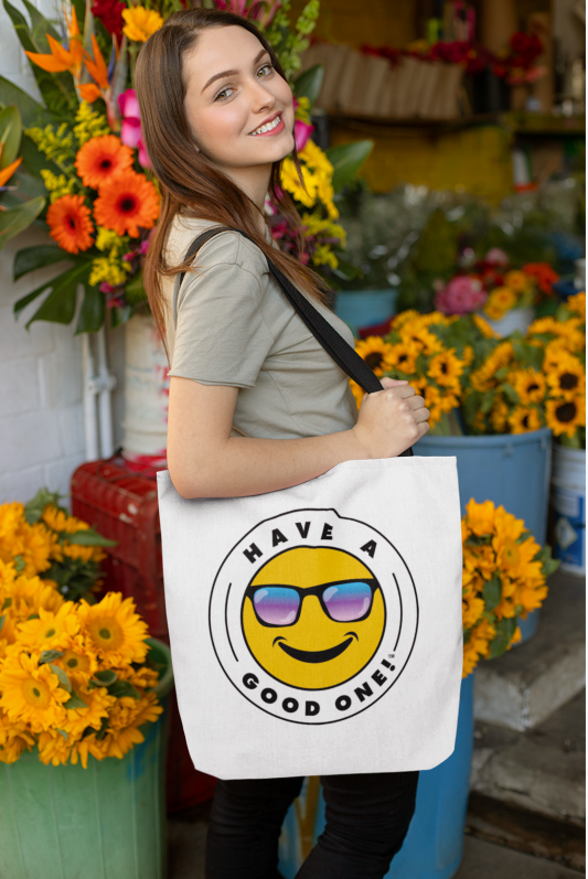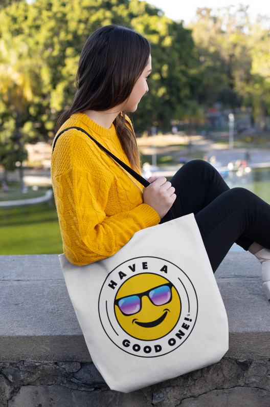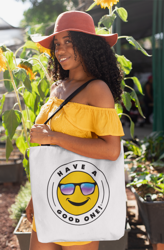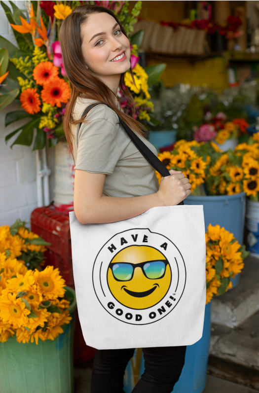 Grab N' Go Tote Bag - White With Blue Green Have A Good One! Logo
