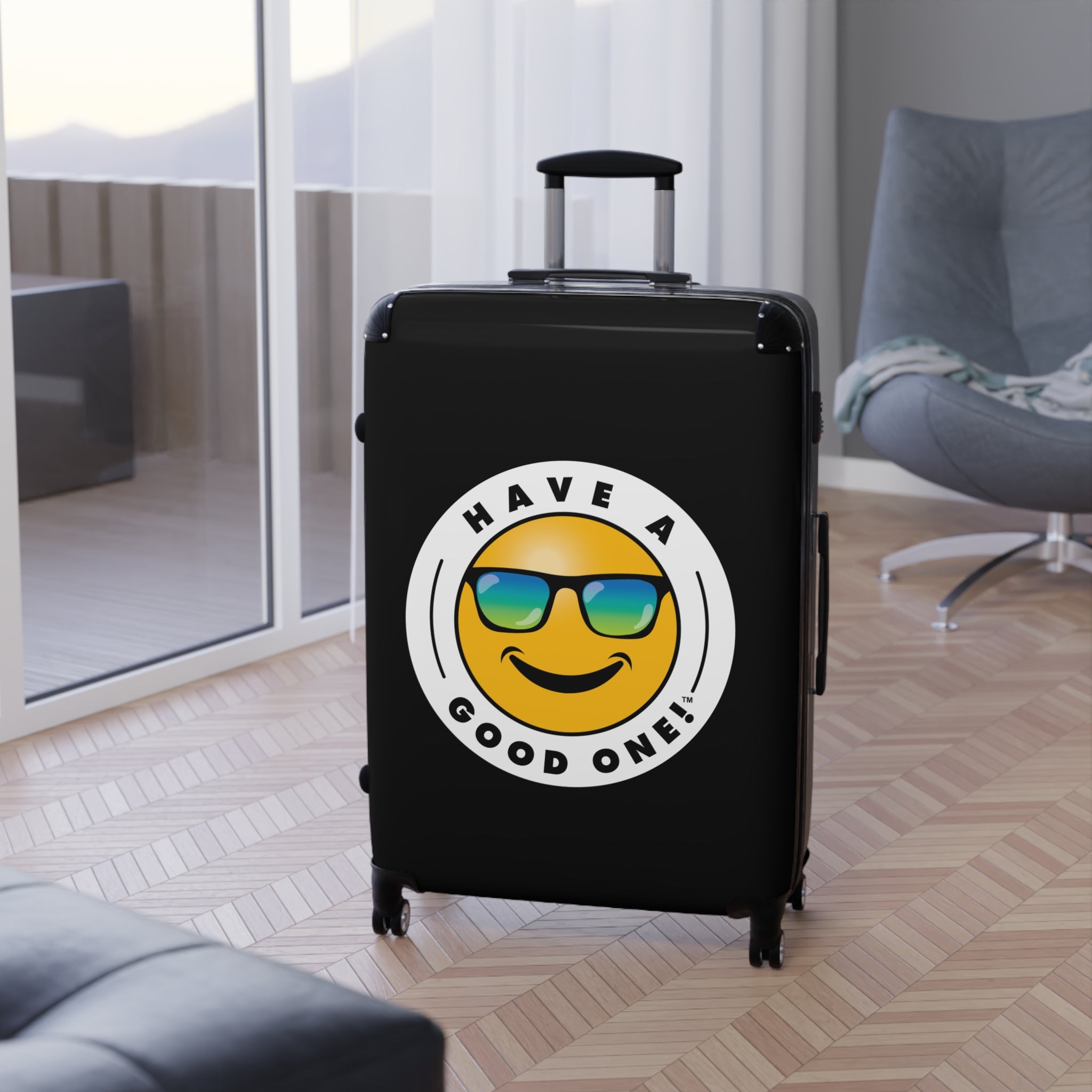Grab N’ Go Have A Good One! Suitcases - Black Color With Blue Green Have A Good One! Logo