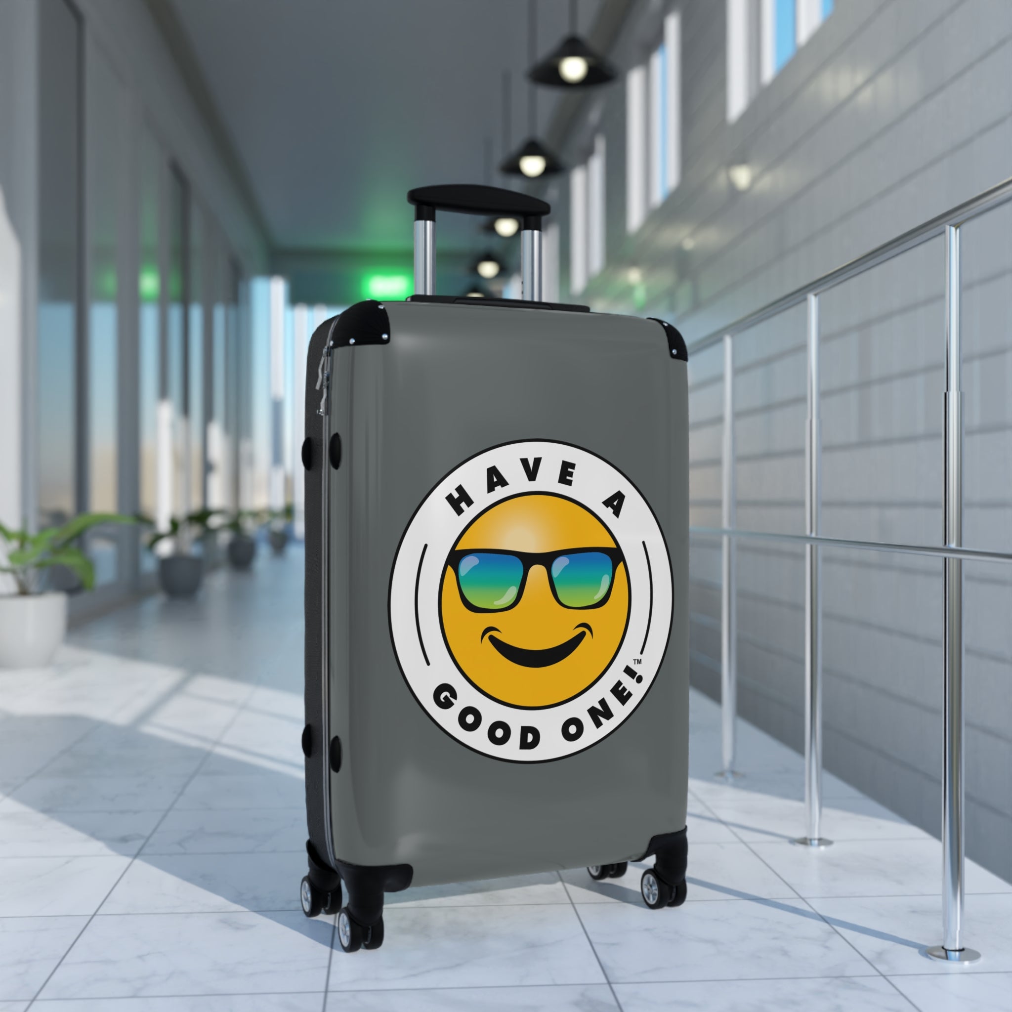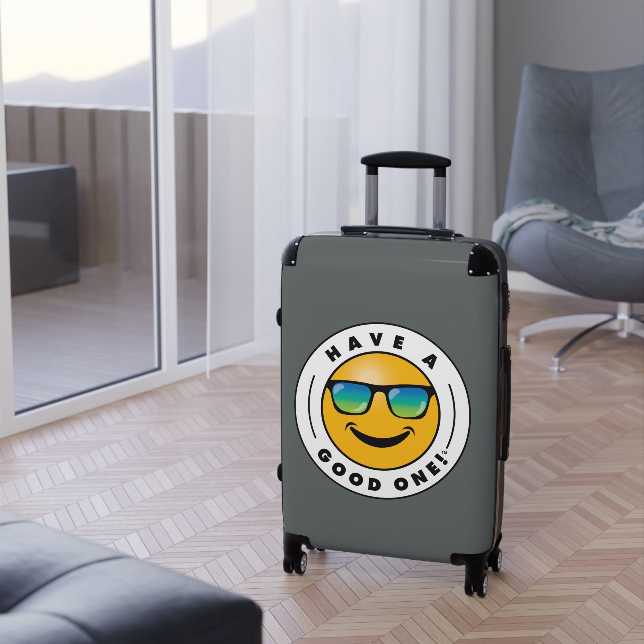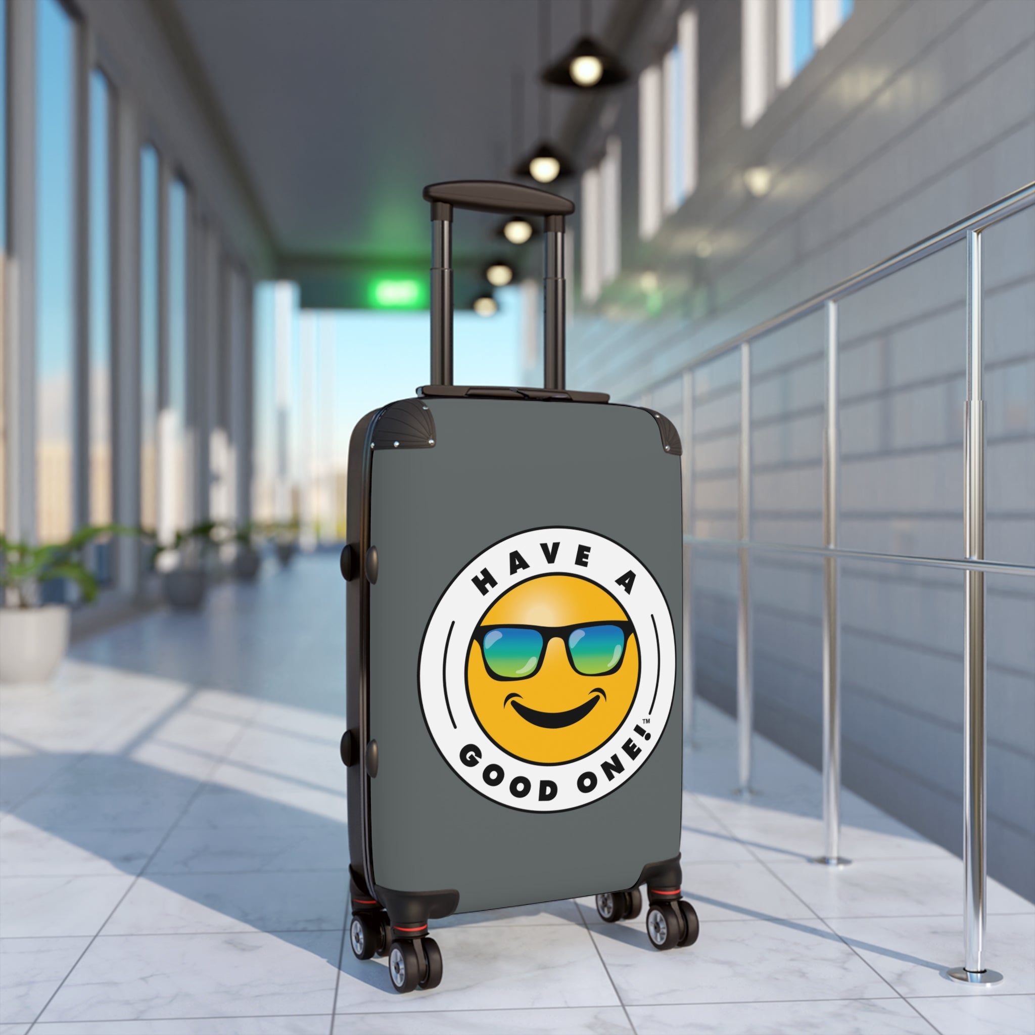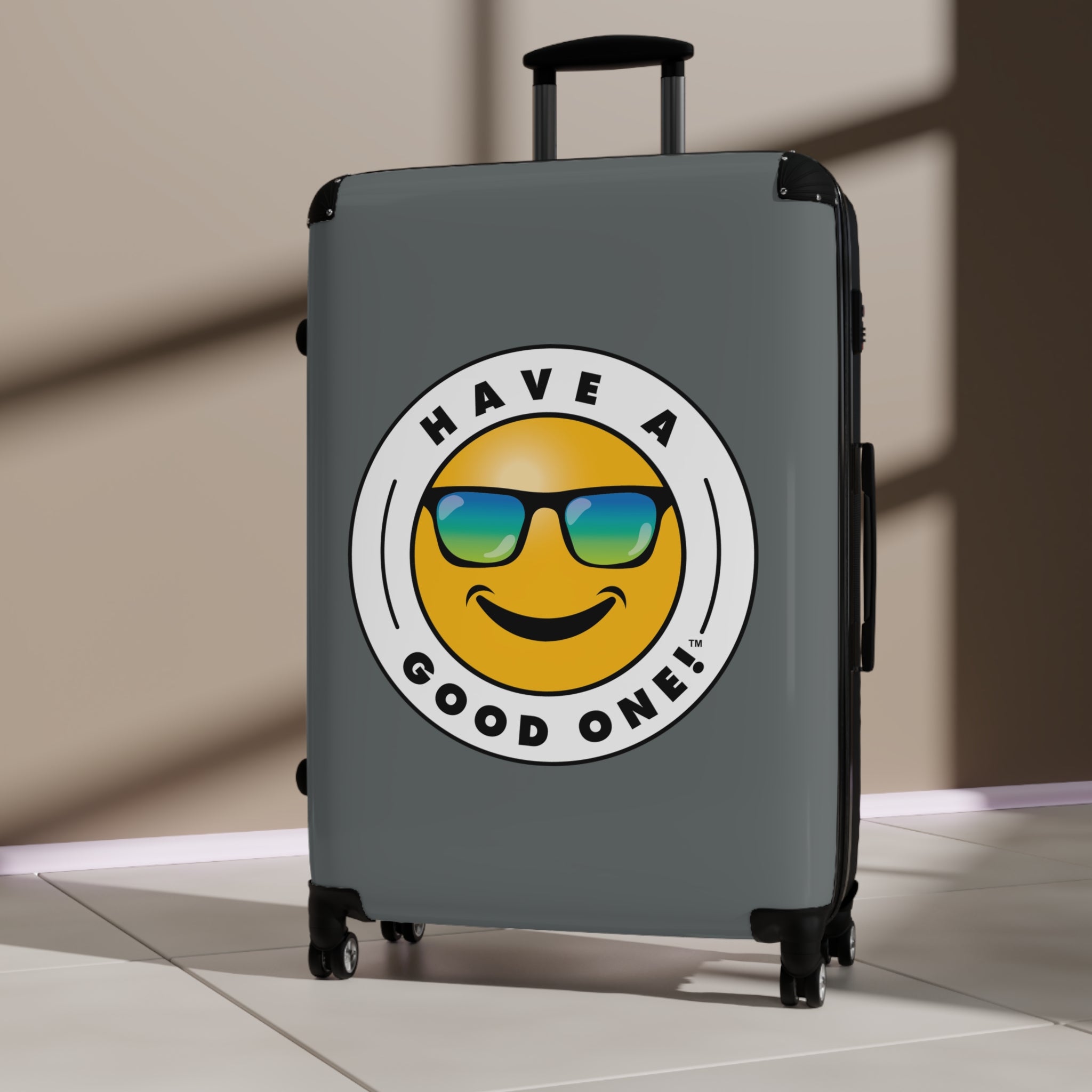 Grab N’ Go Have A Good One! Suitcases - Dark Grey Color With Blue Green Have A Good One! Logo