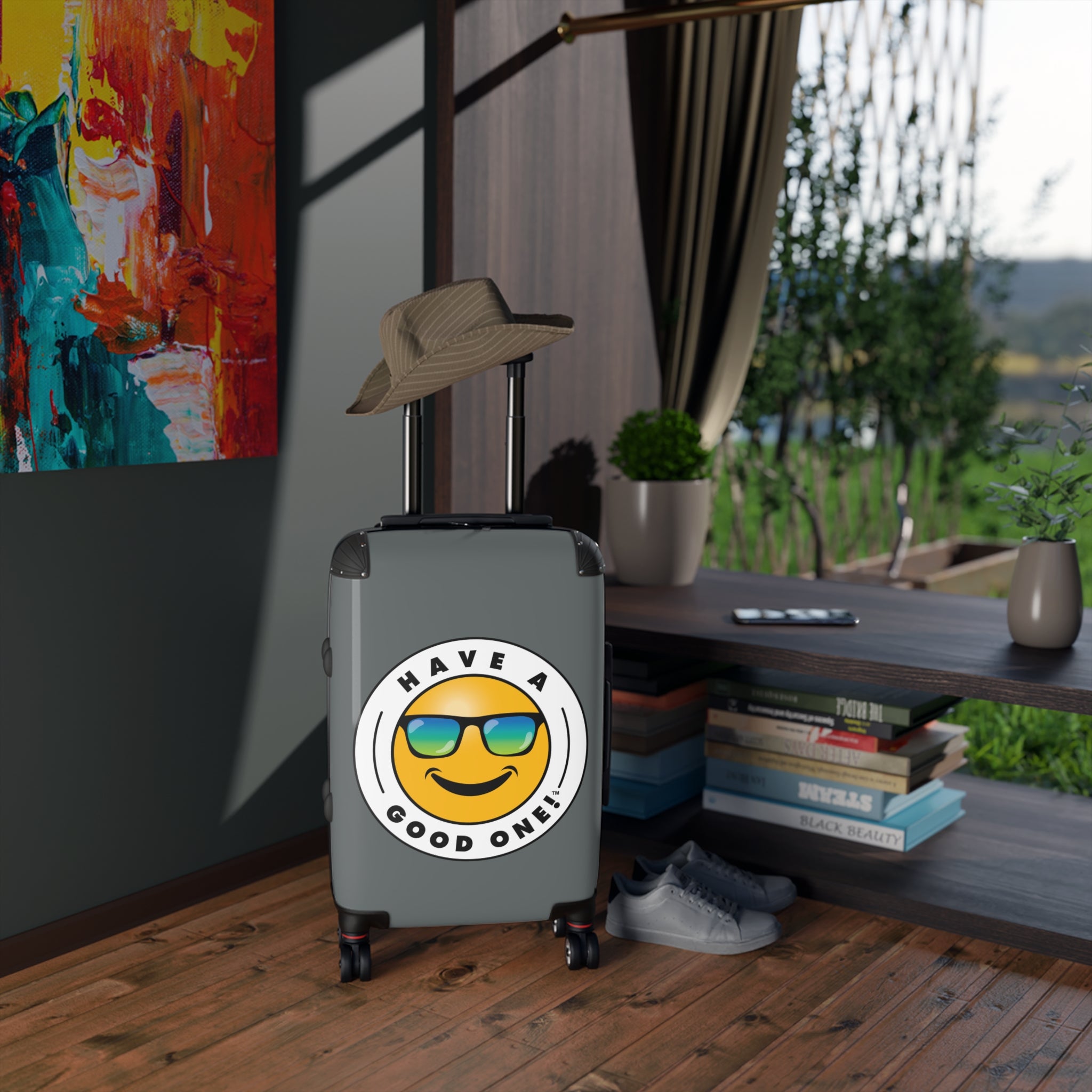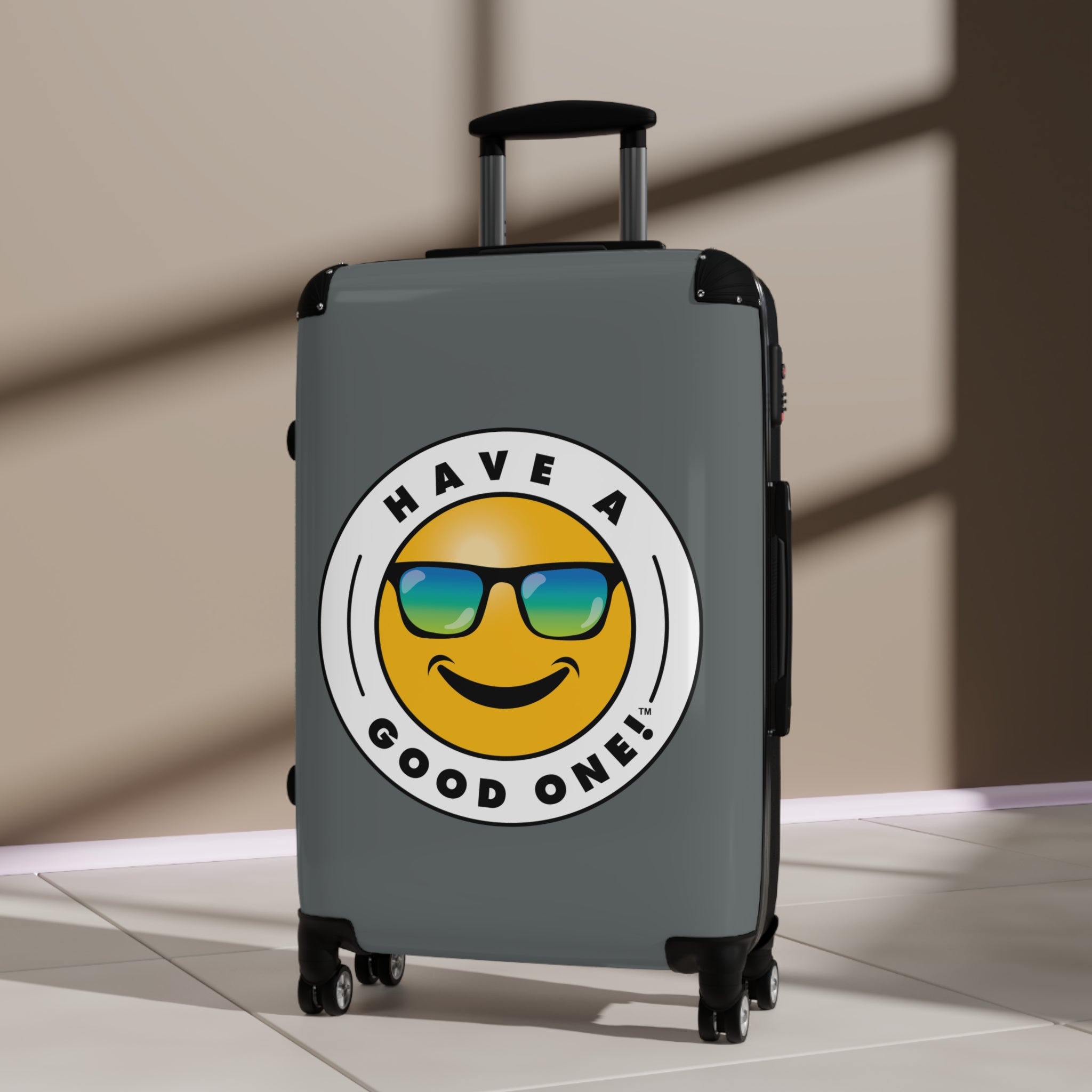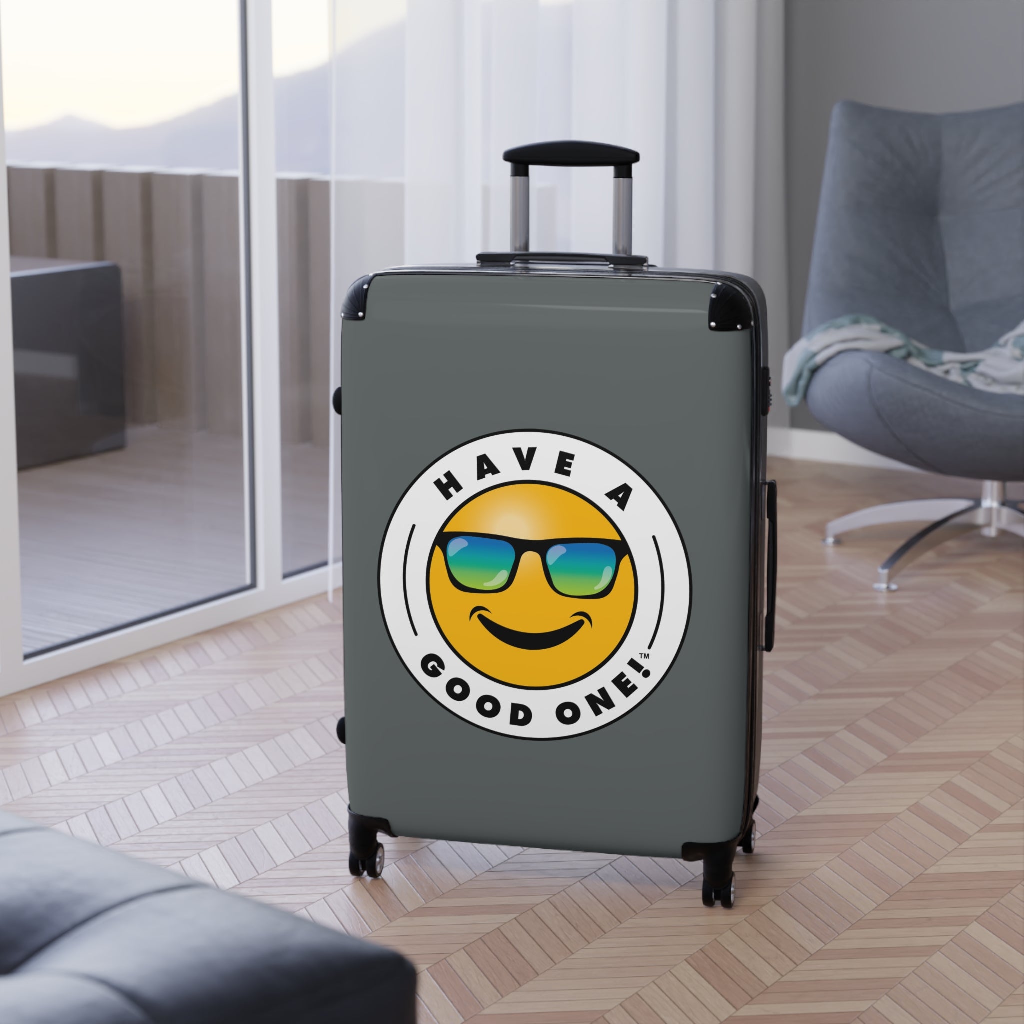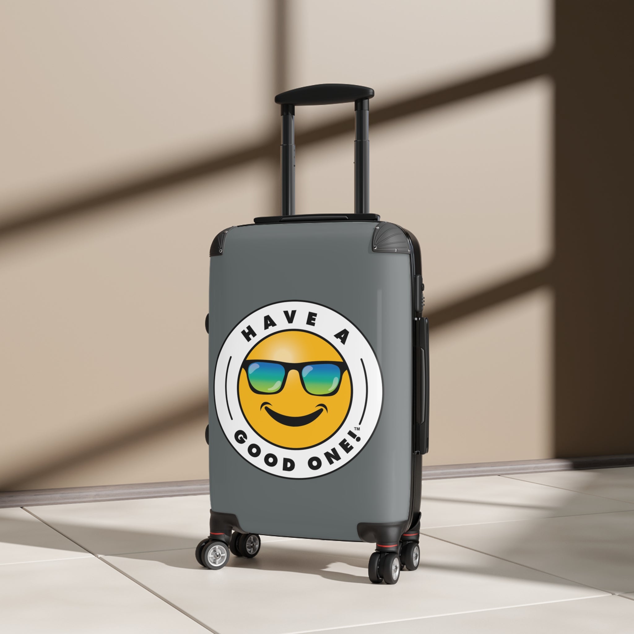 Grab N’ Go Have A Good One! Suitcases - Dark Grey Color With Blue Green Have A Good One! Logo