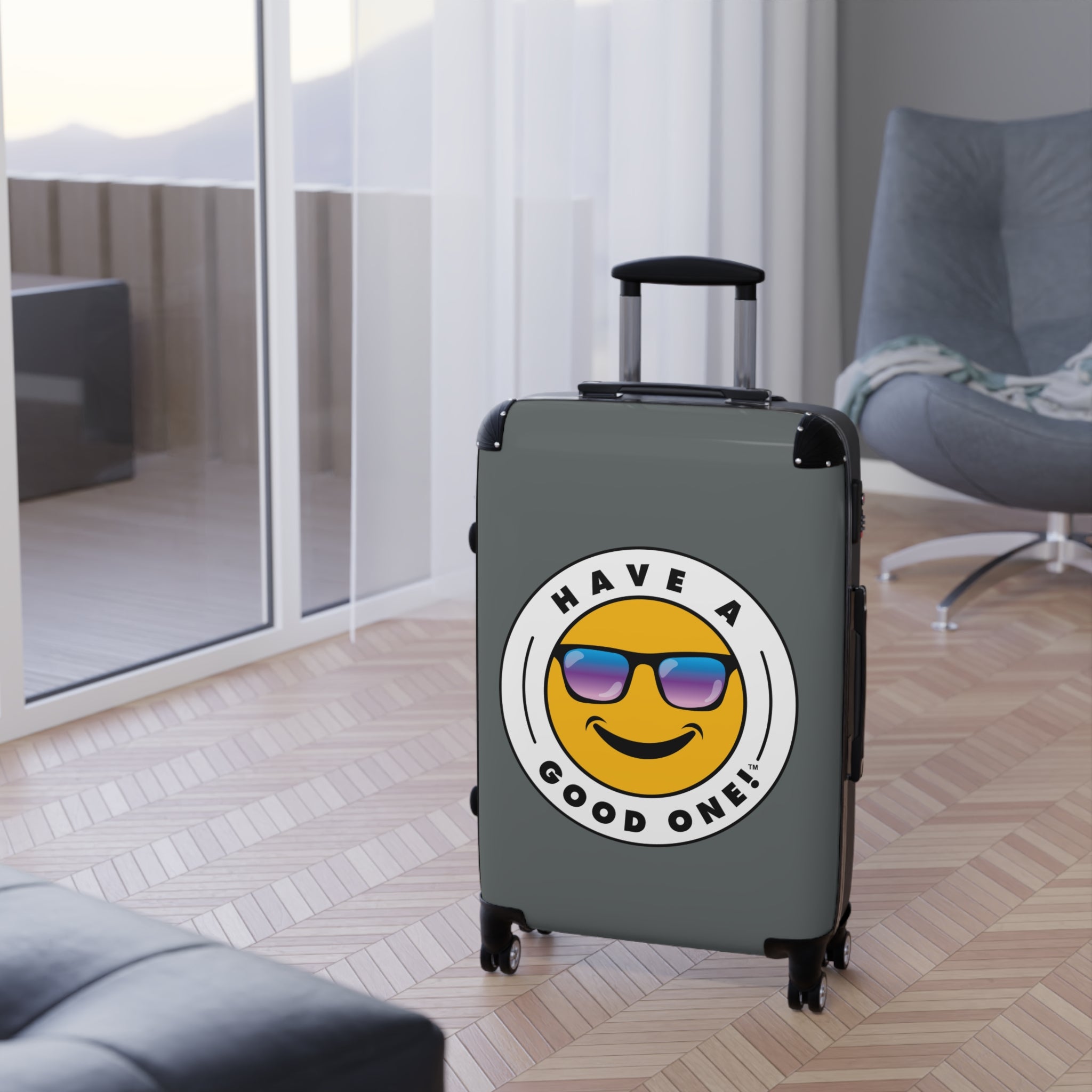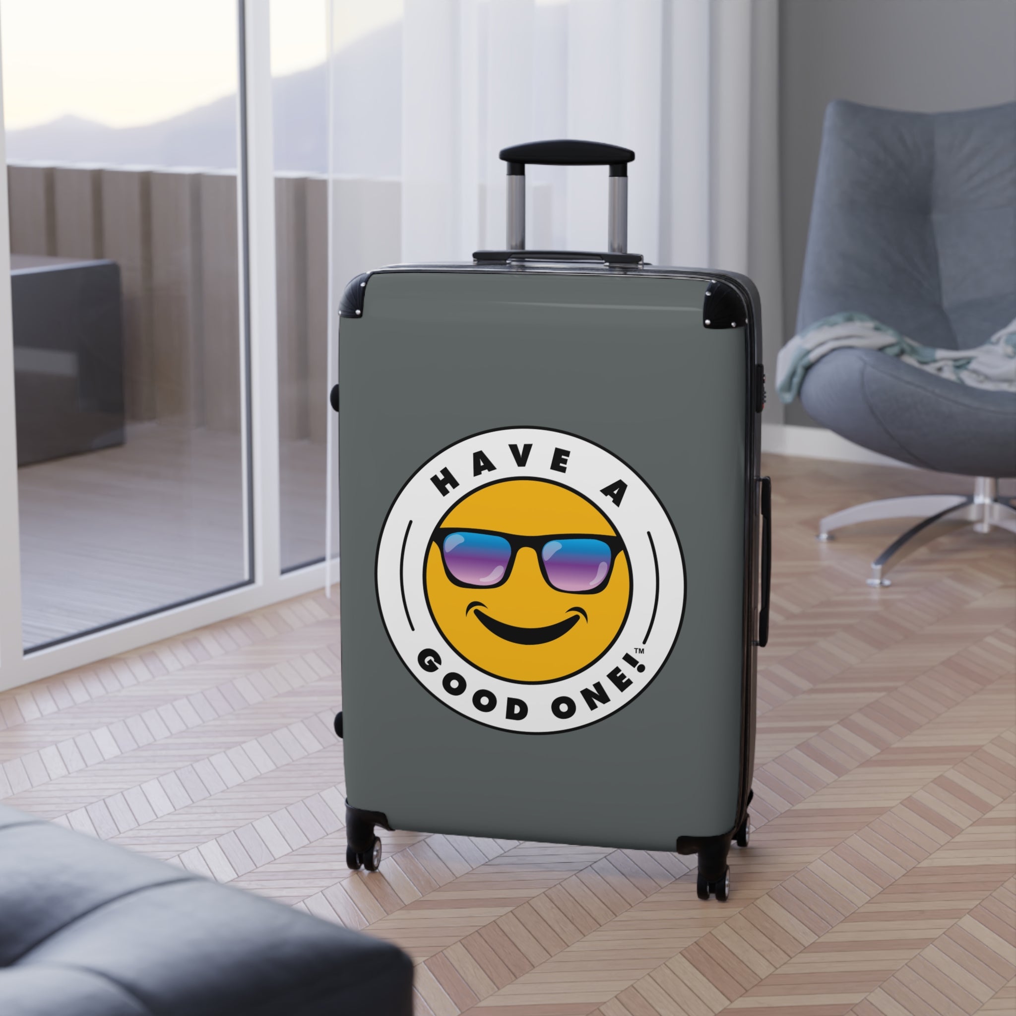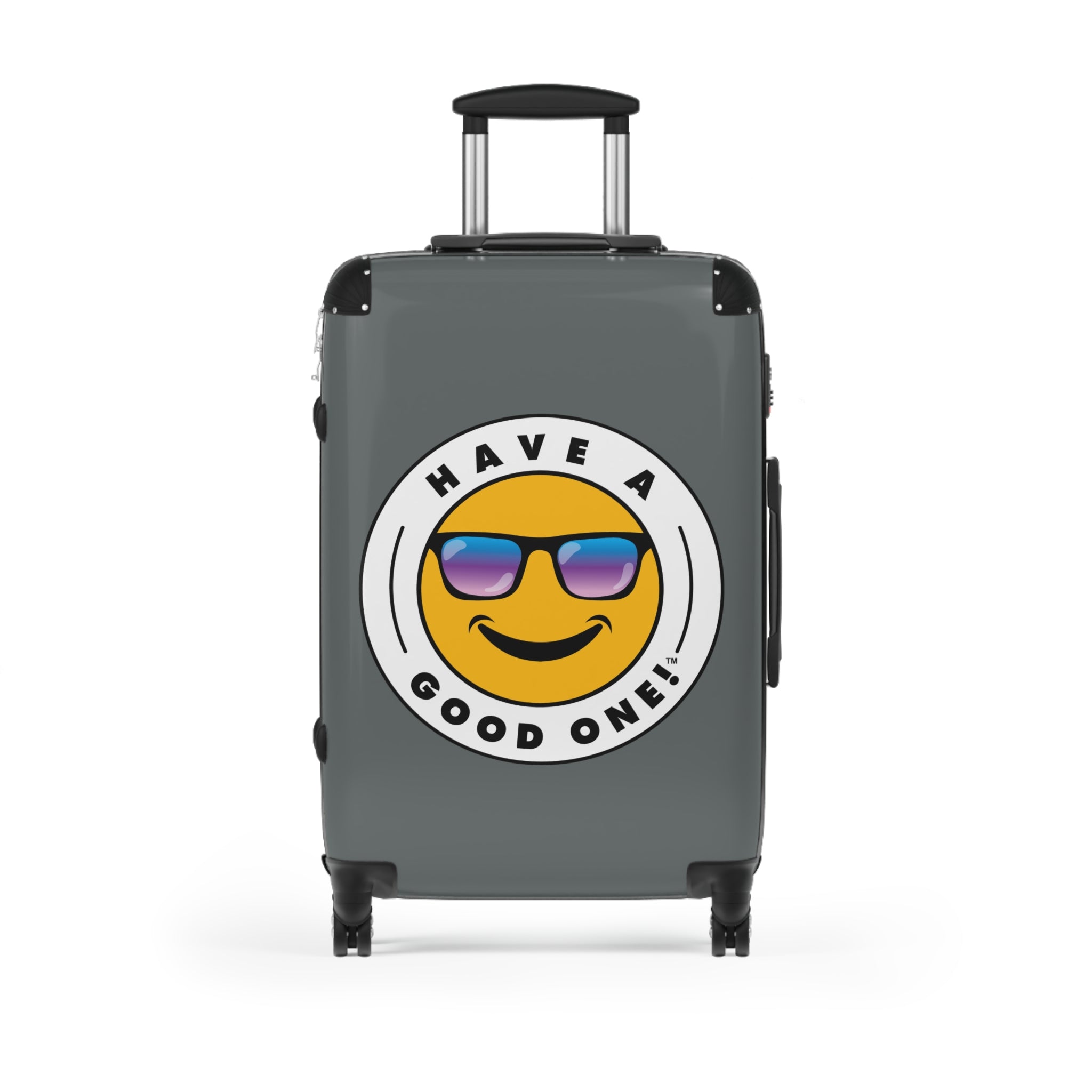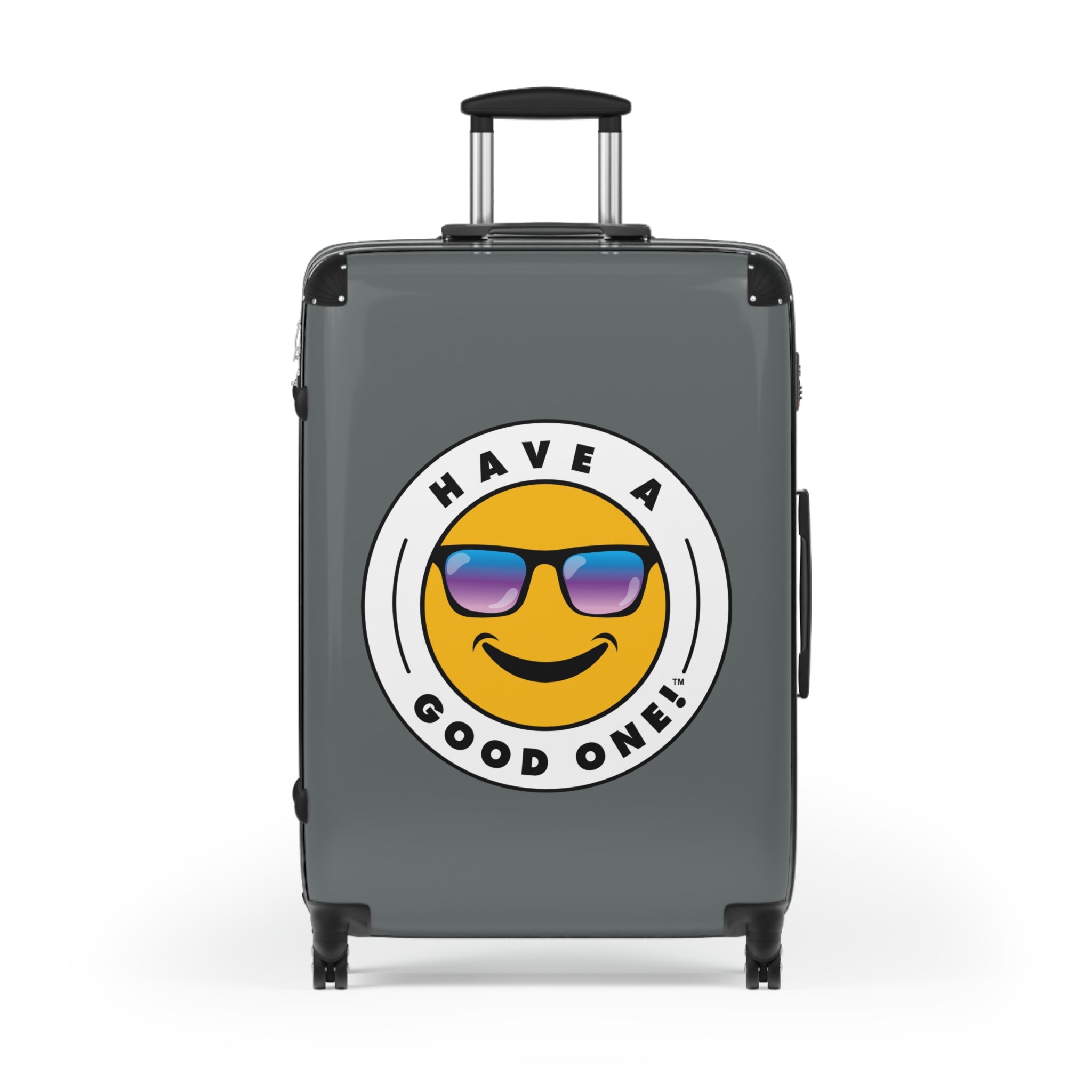 Grab N’ Go Have A Good One! Suitcases - Dark Grey Color With Blue Purple Have A Good One! Logo