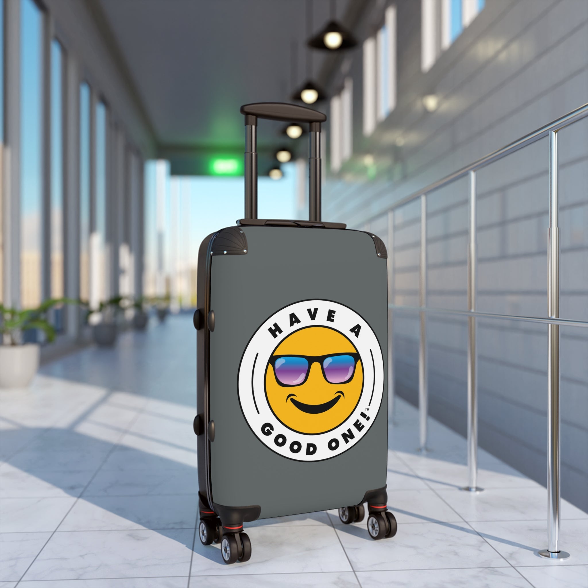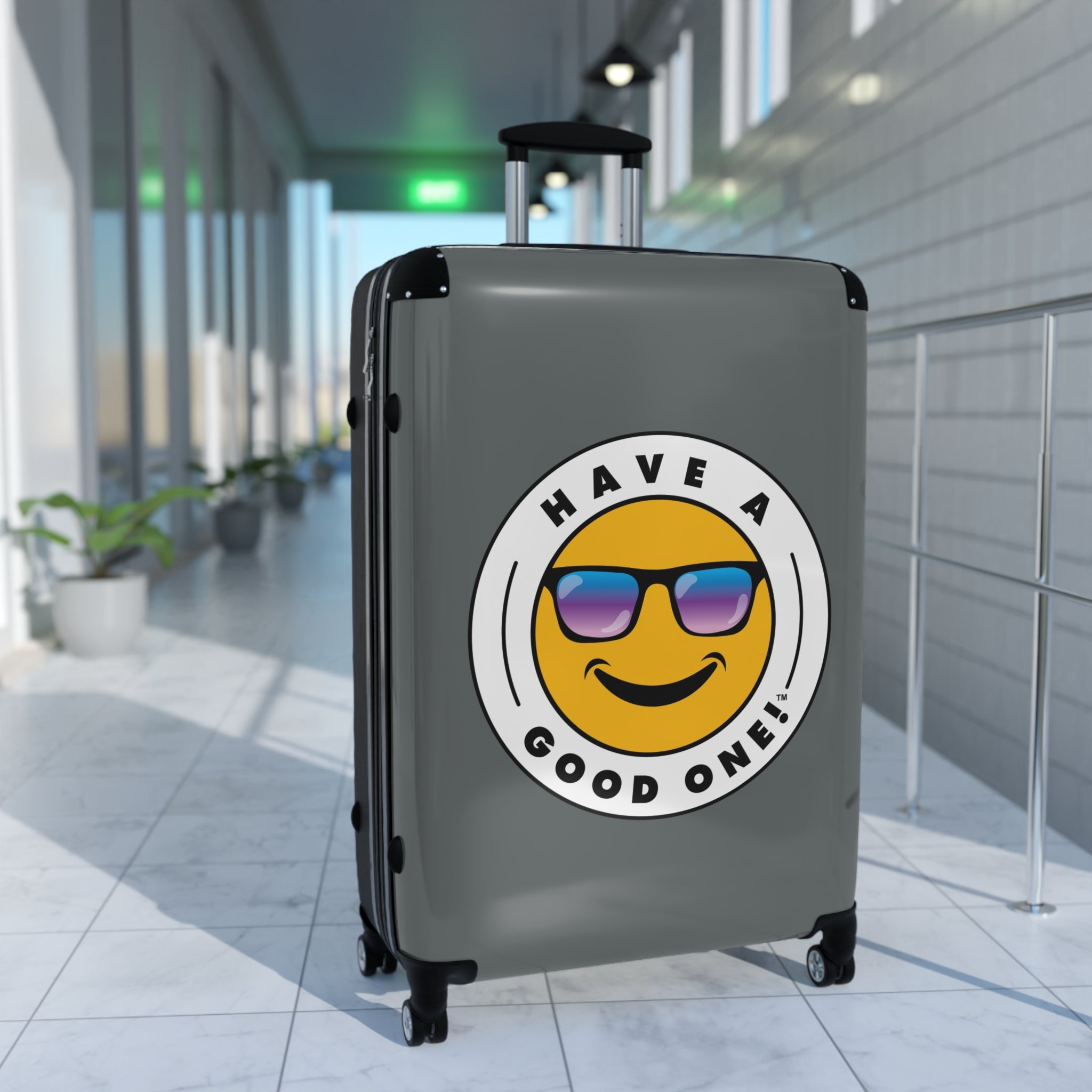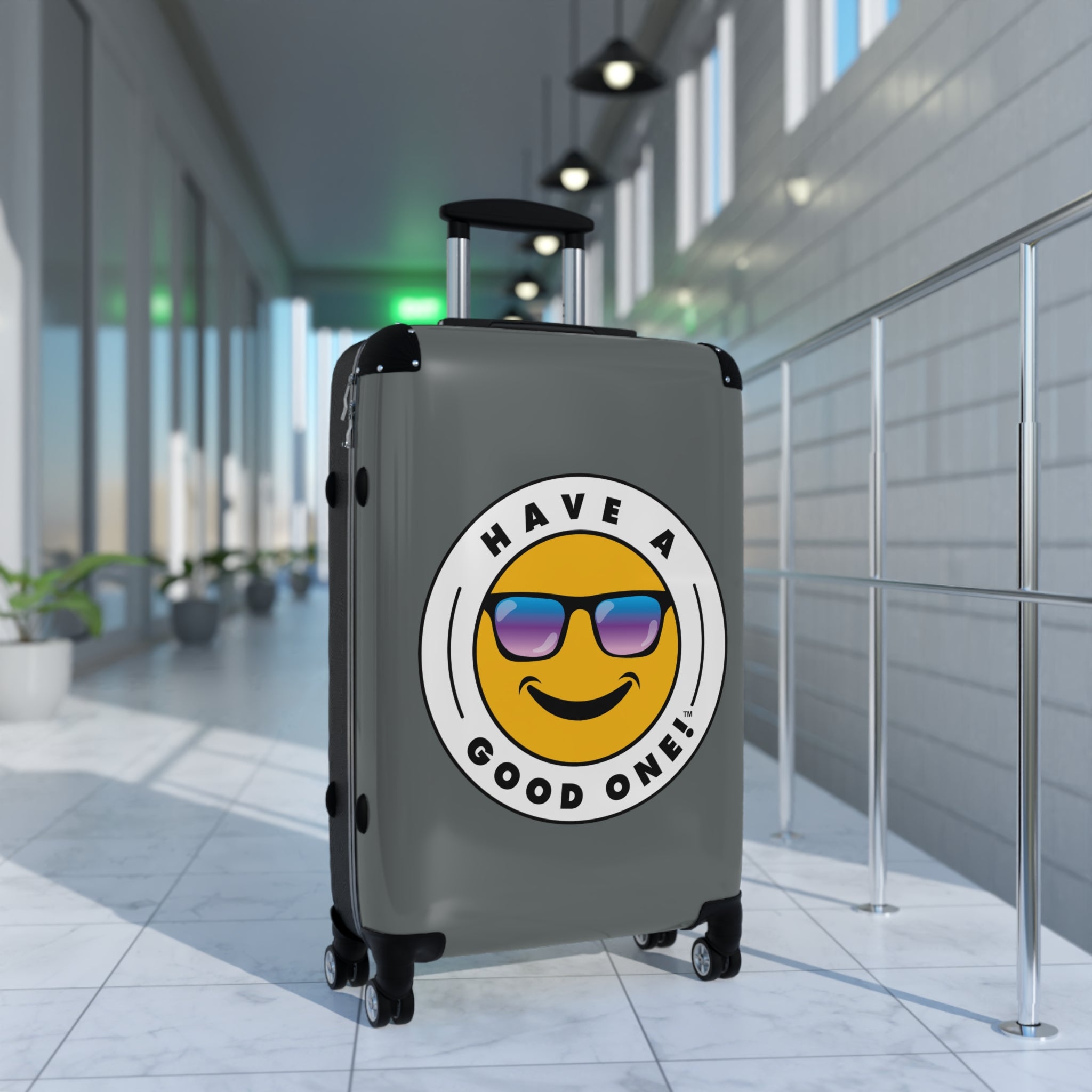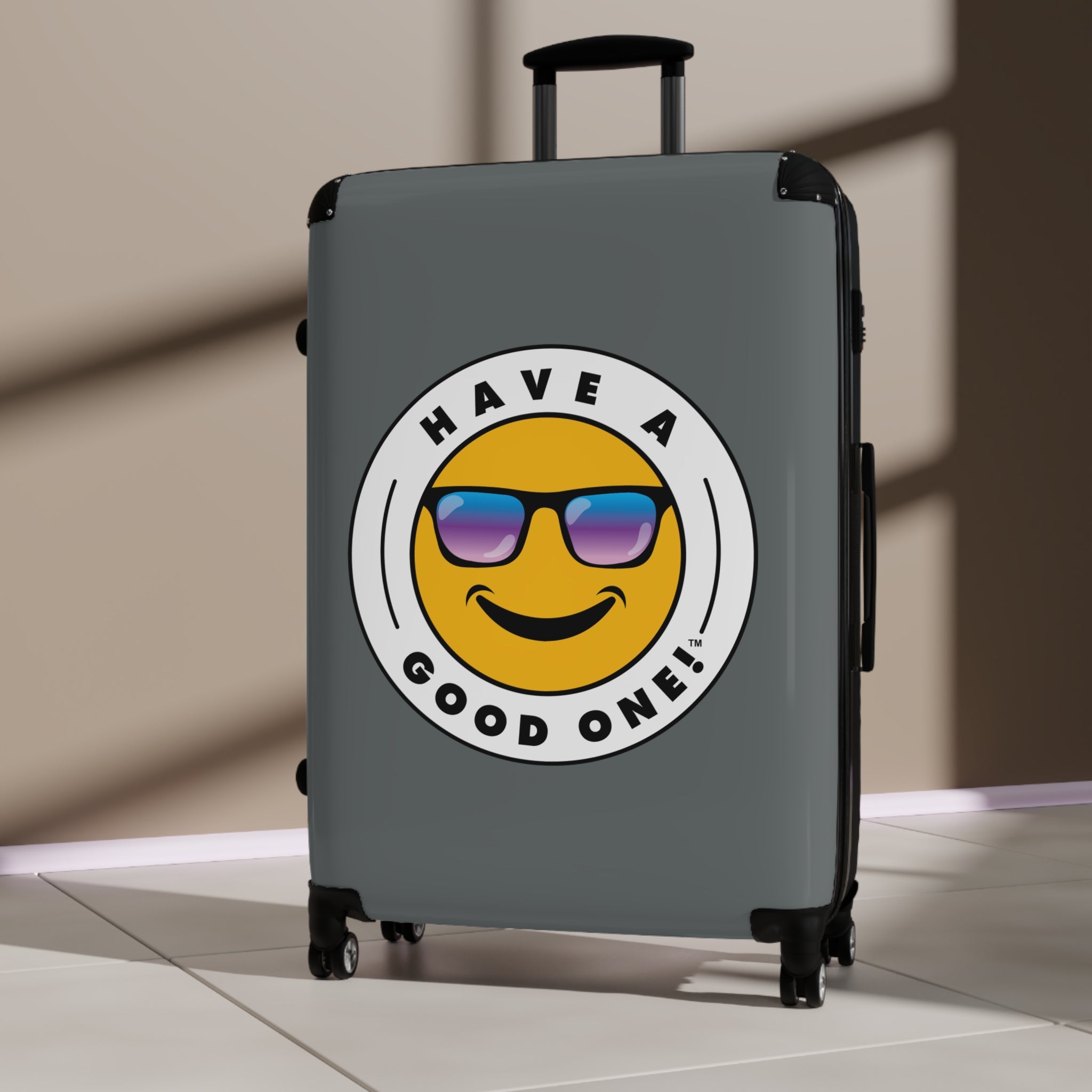 Grab N’ Go Have A Good One! Suitcases - Dark Grey Color With Blue Purple Have A Good One! Logo