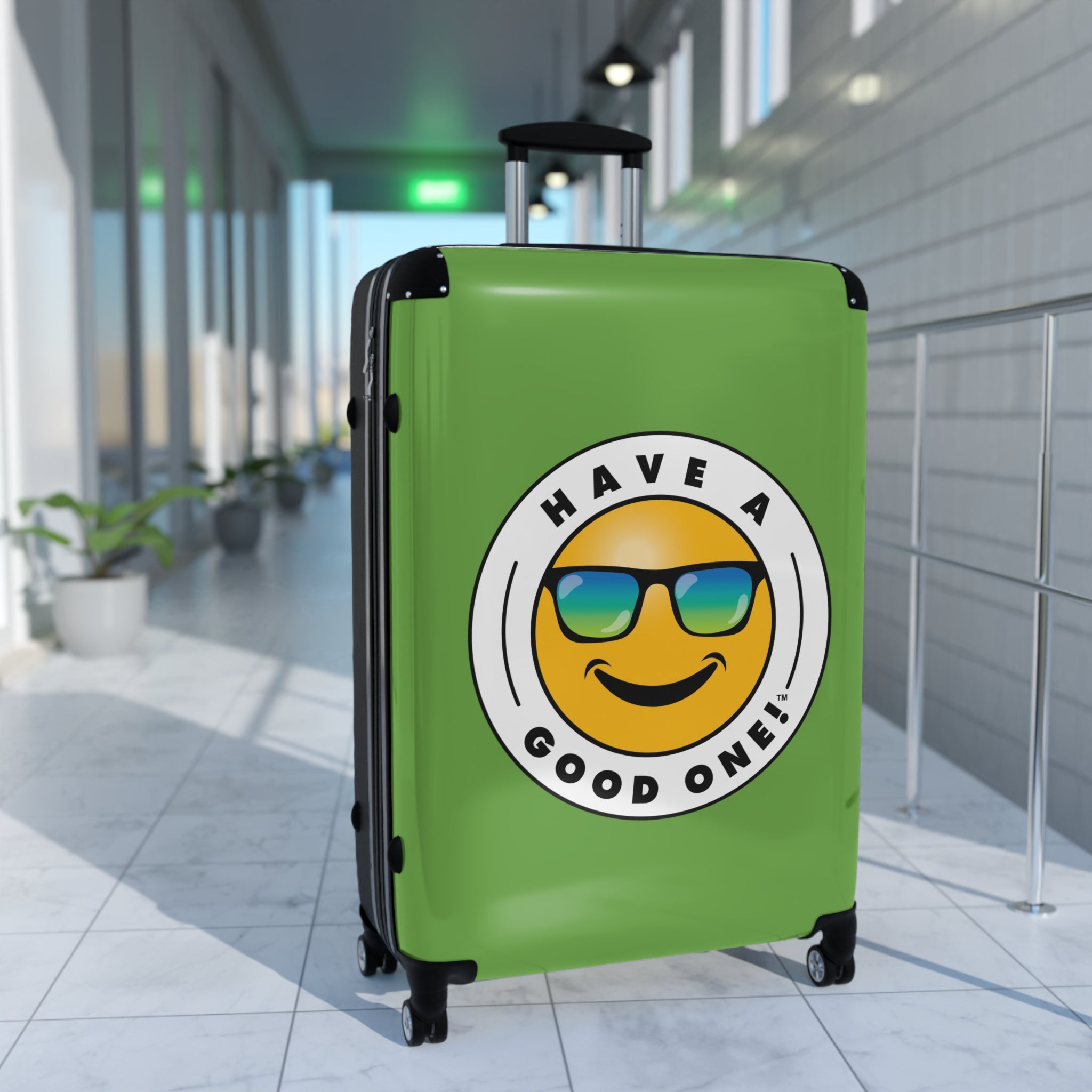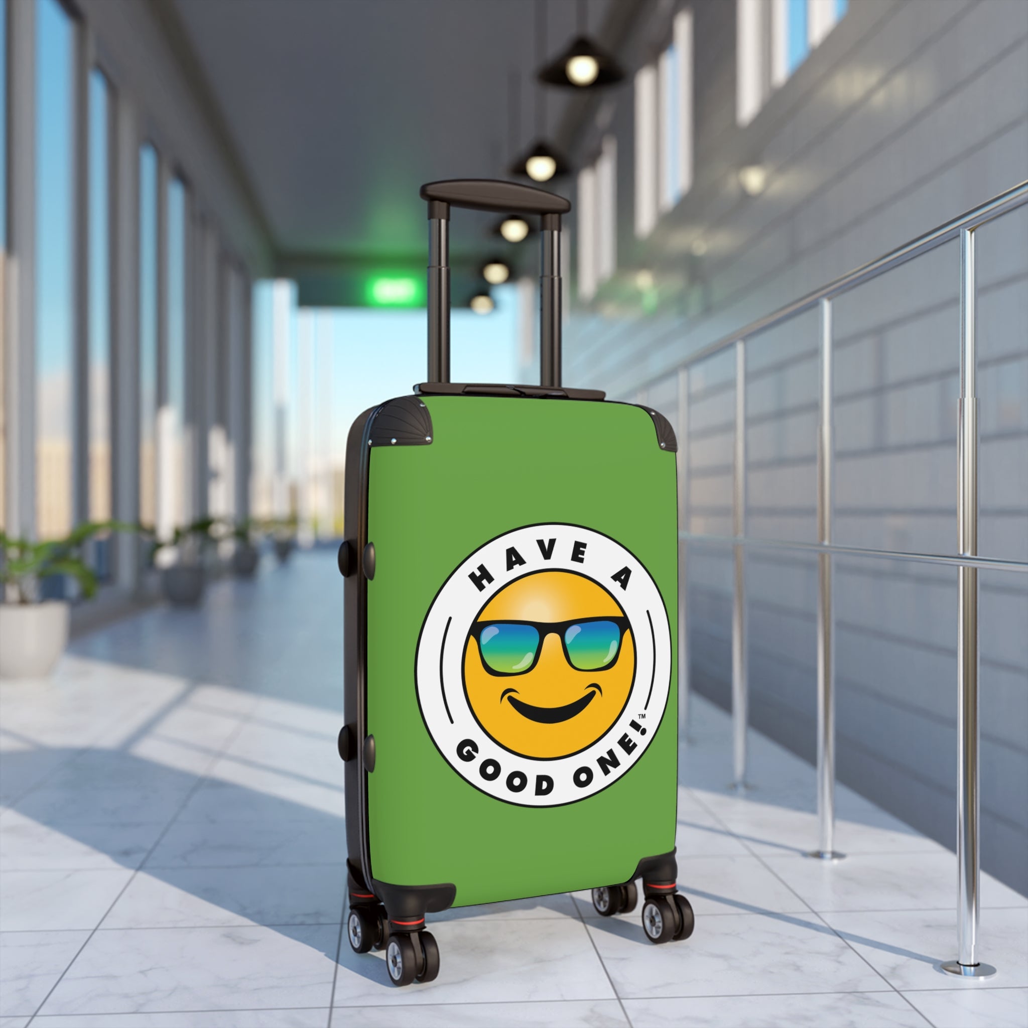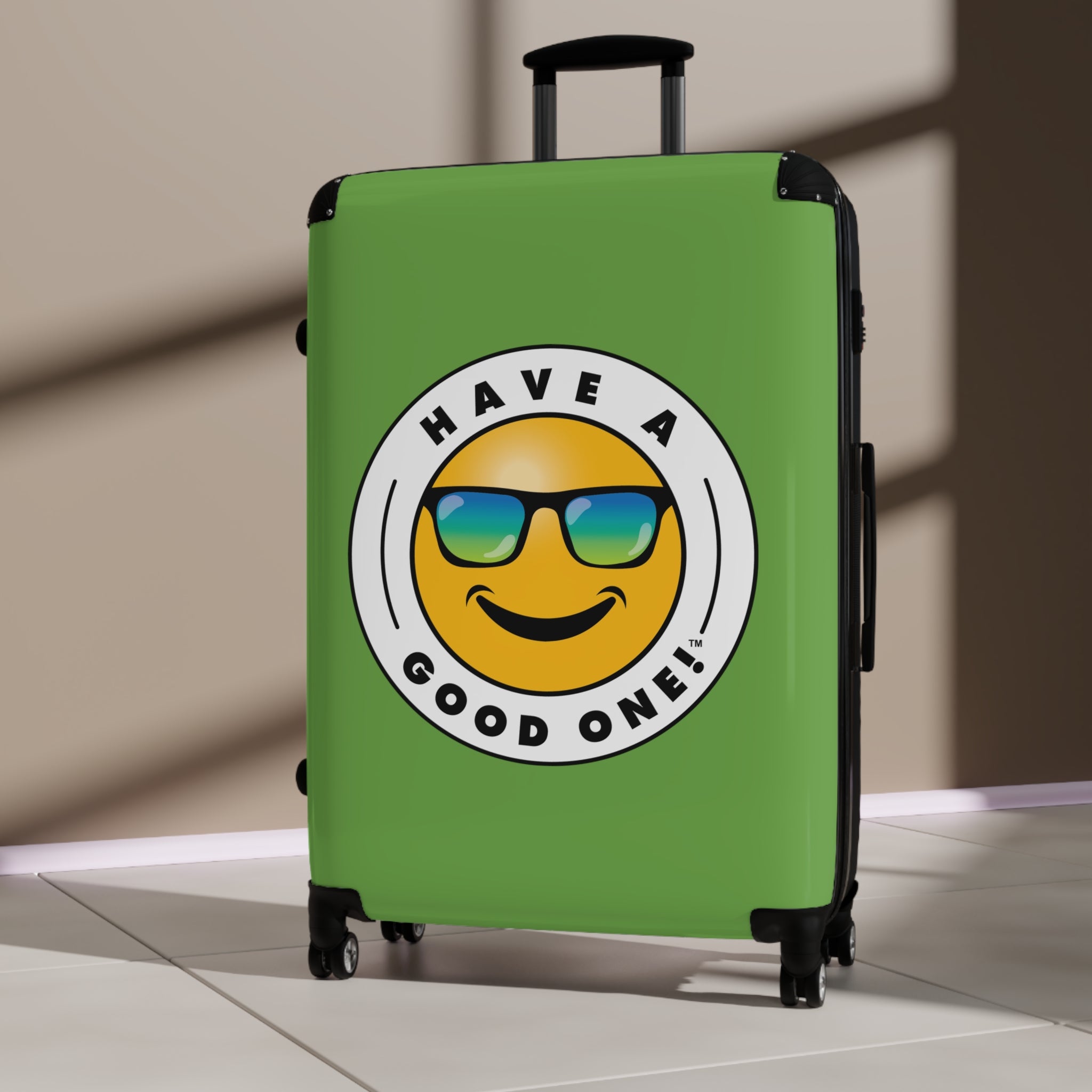 Grab N’ Go Have A Good One! Suitcases - Green Color With Blue Green Have A Good One! Logo