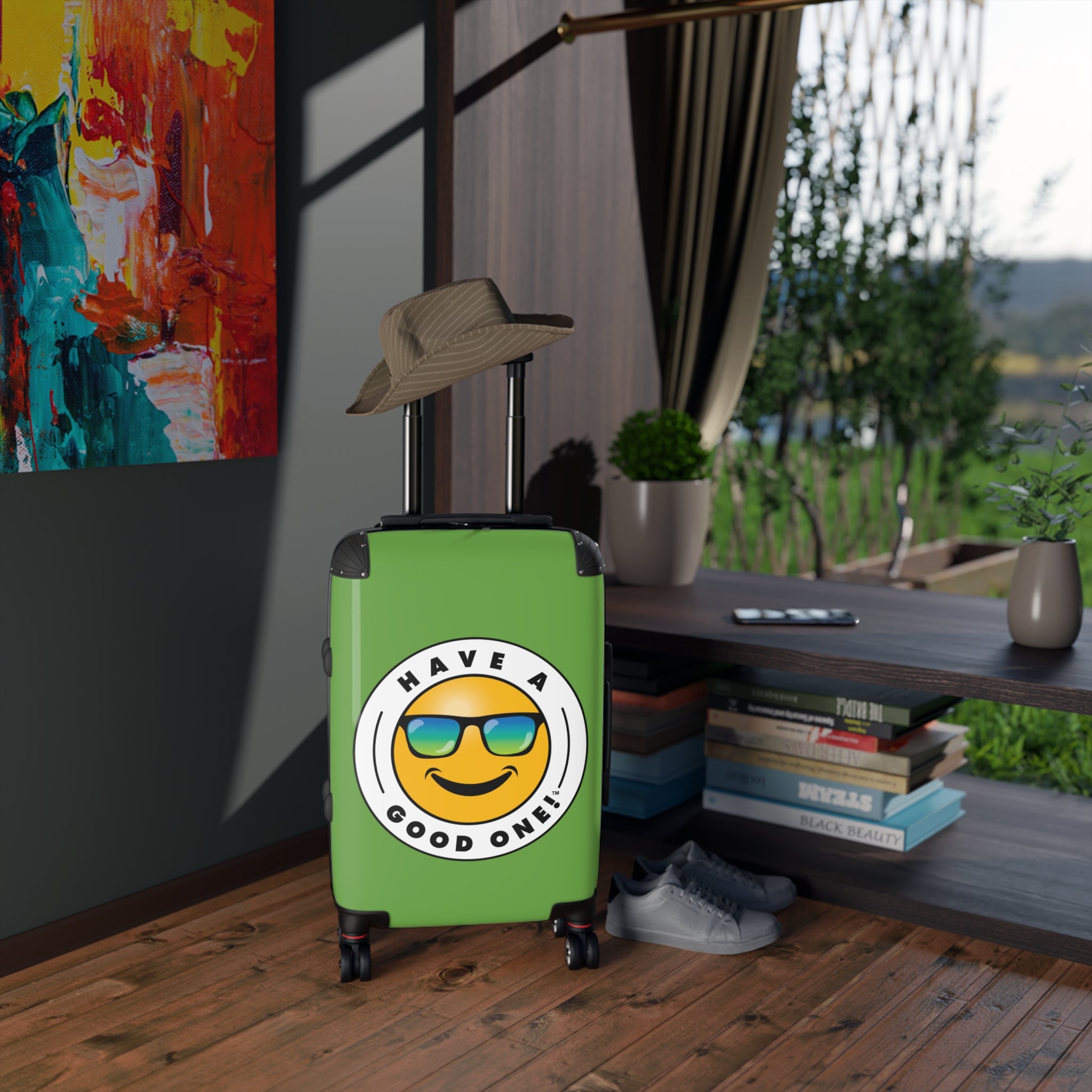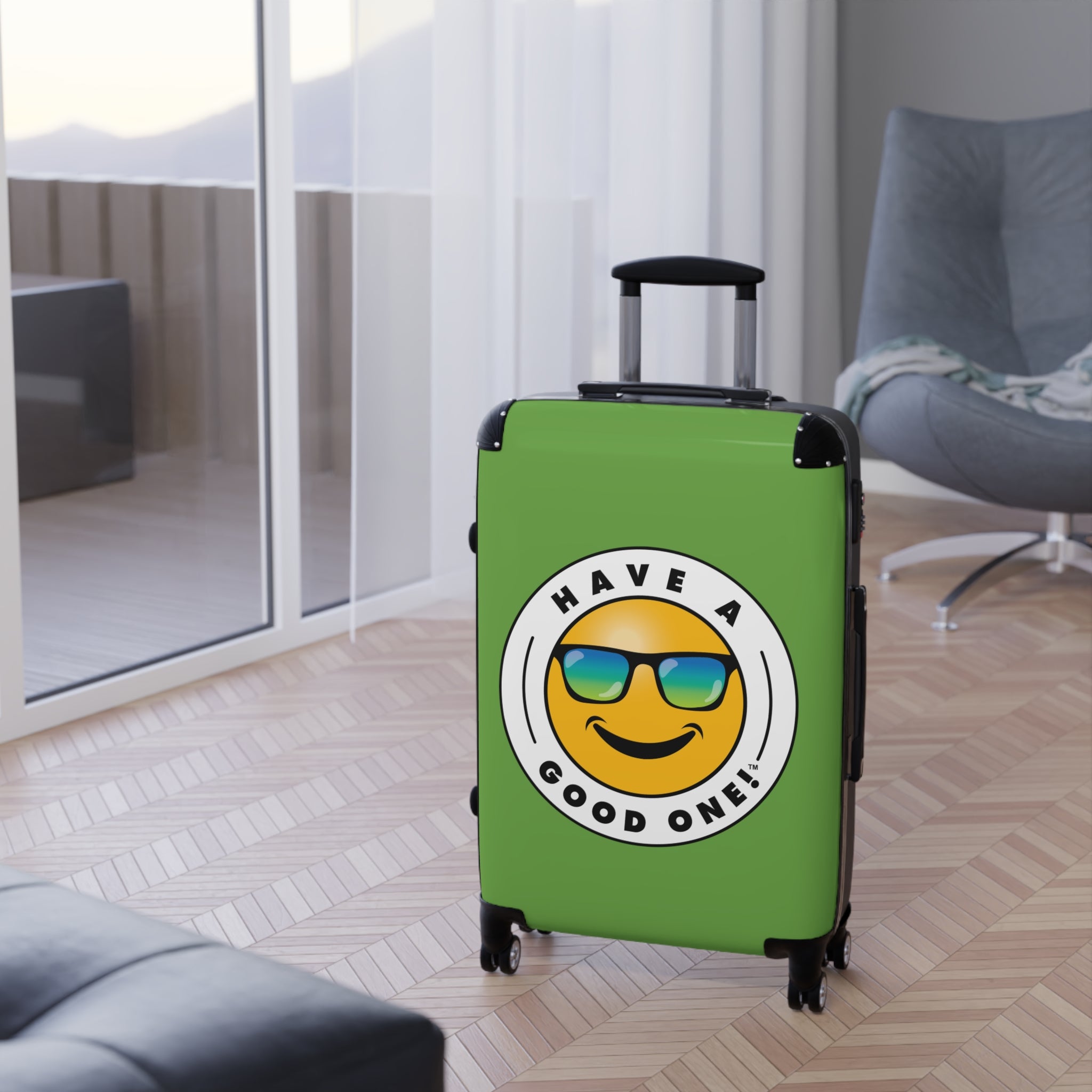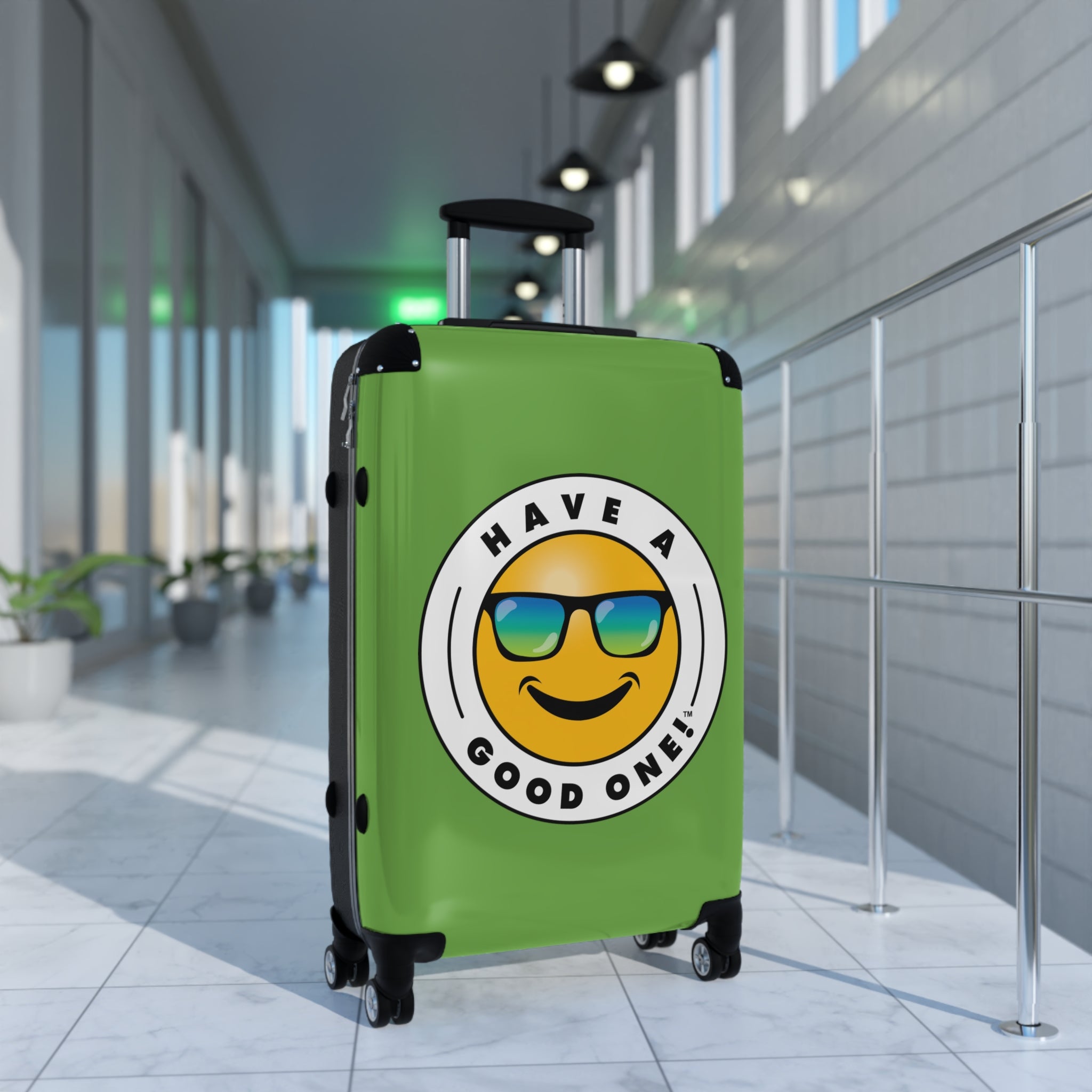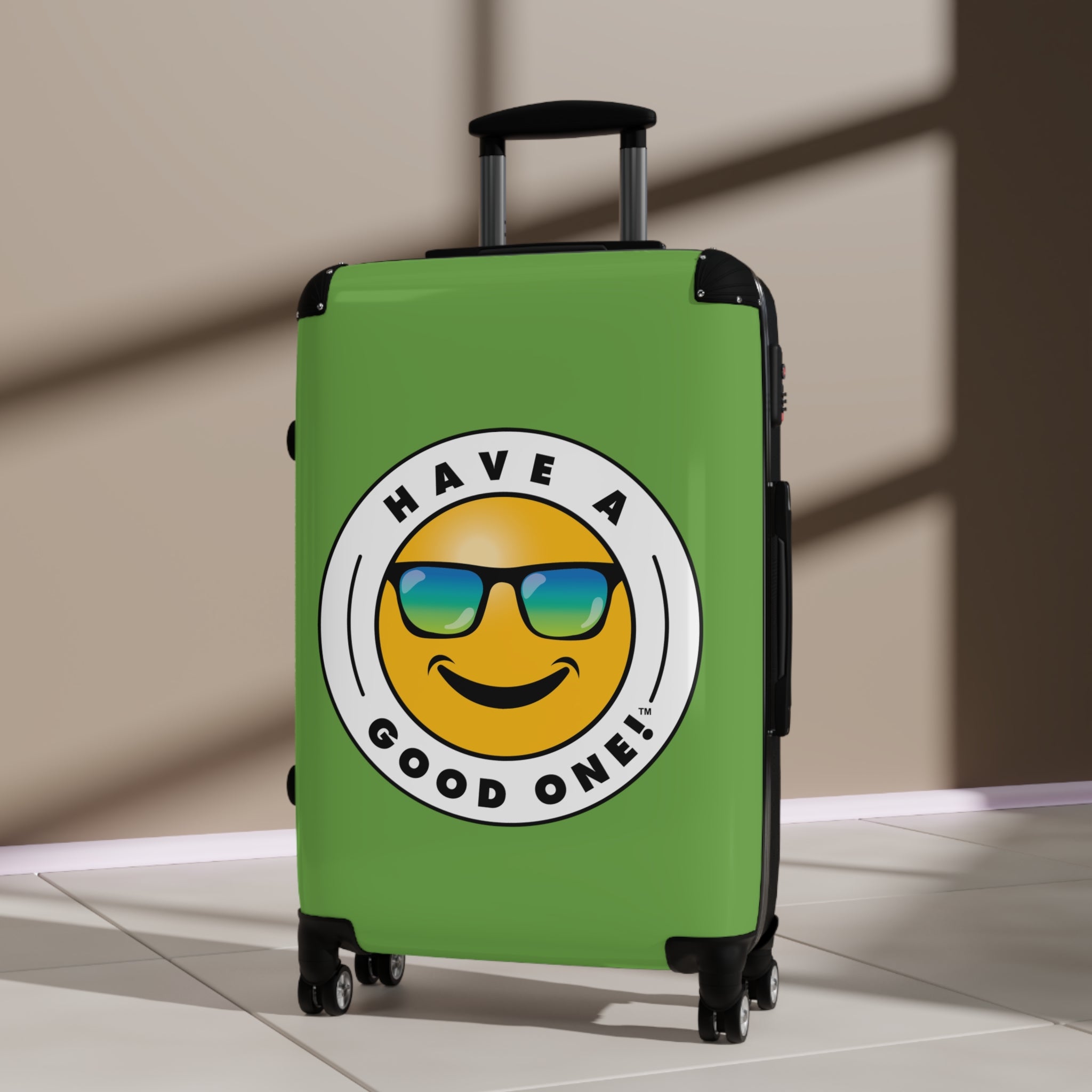 Grab N’ Go Have A Good One! Suitcases - Green Color With Blue Green Have A Good One! Logo
