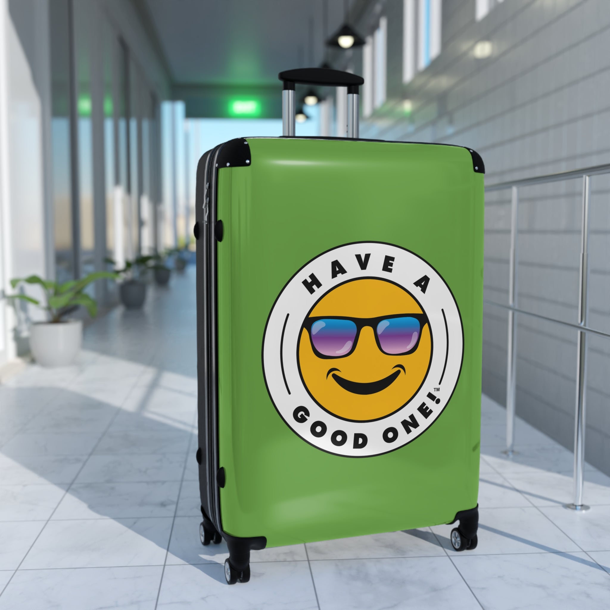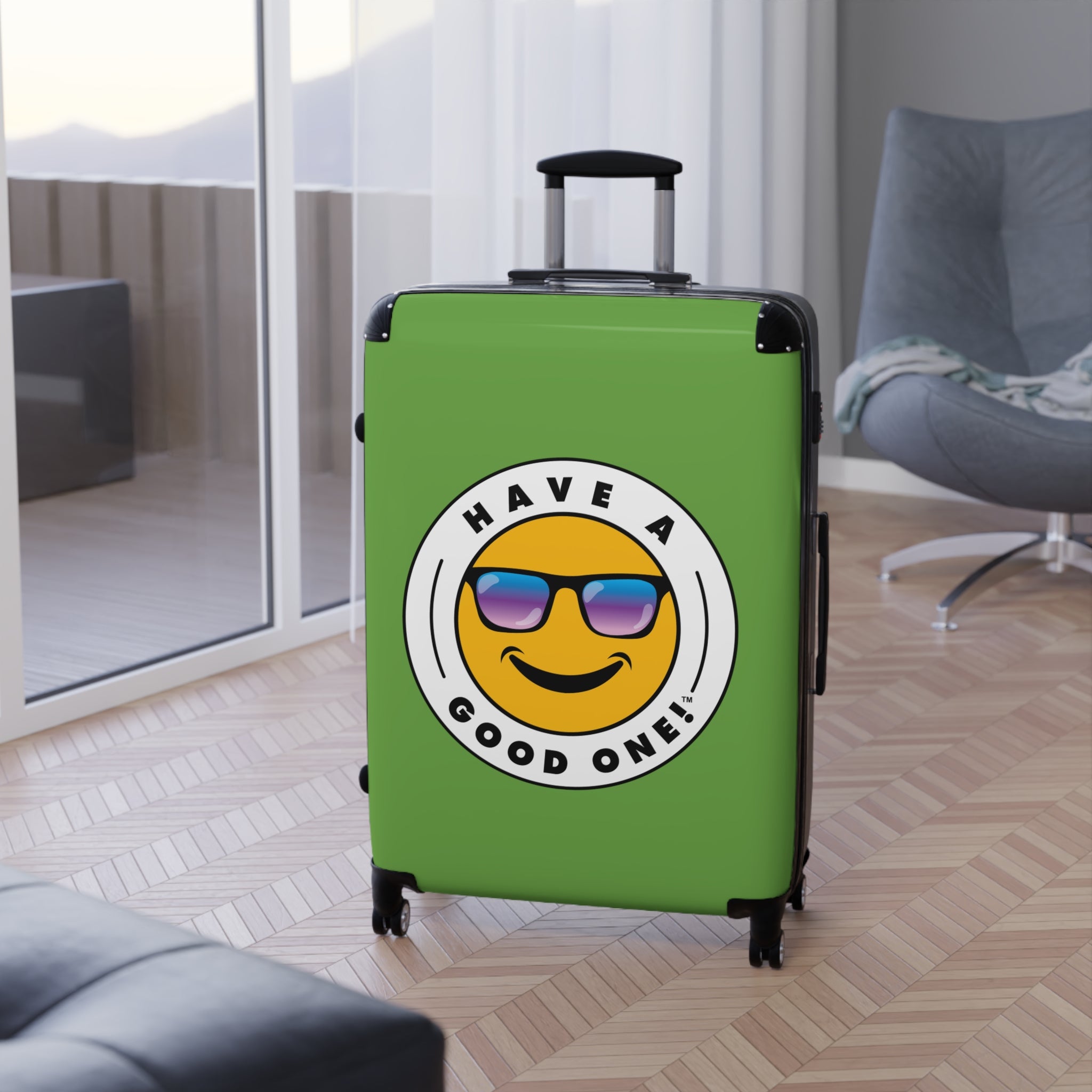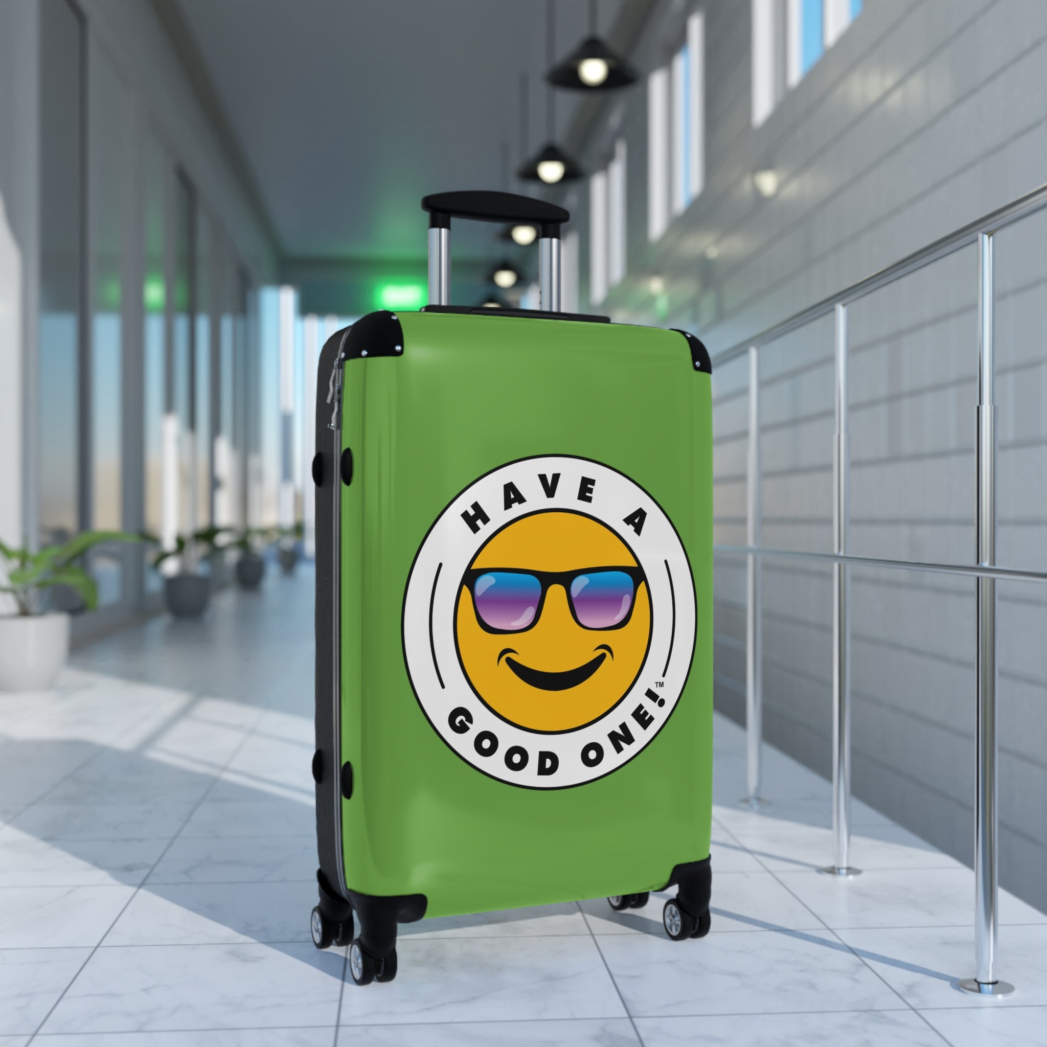 Grab N’ Go Have A Good One! Suitcases - Green Color With Blue Purple Have A Good One! Logo