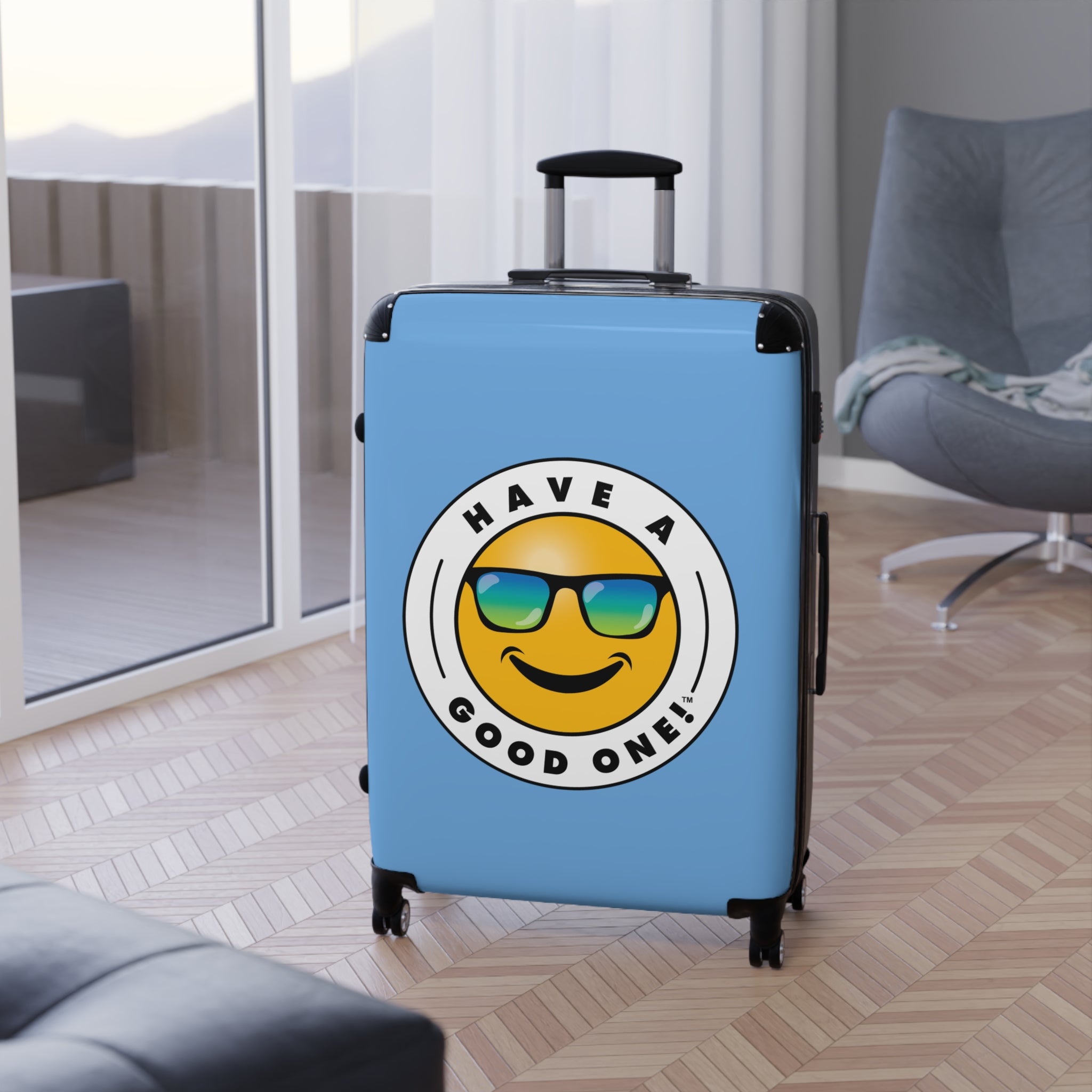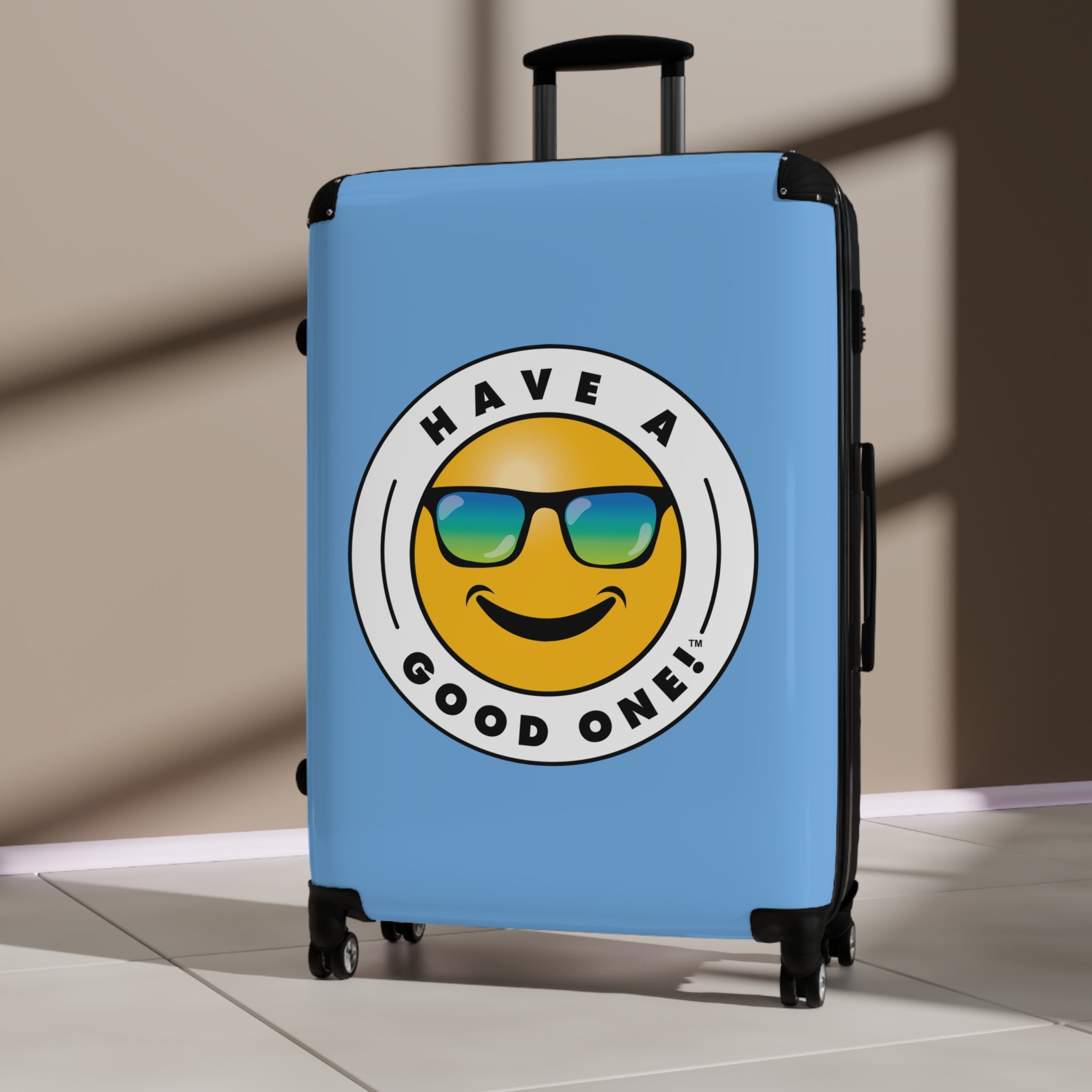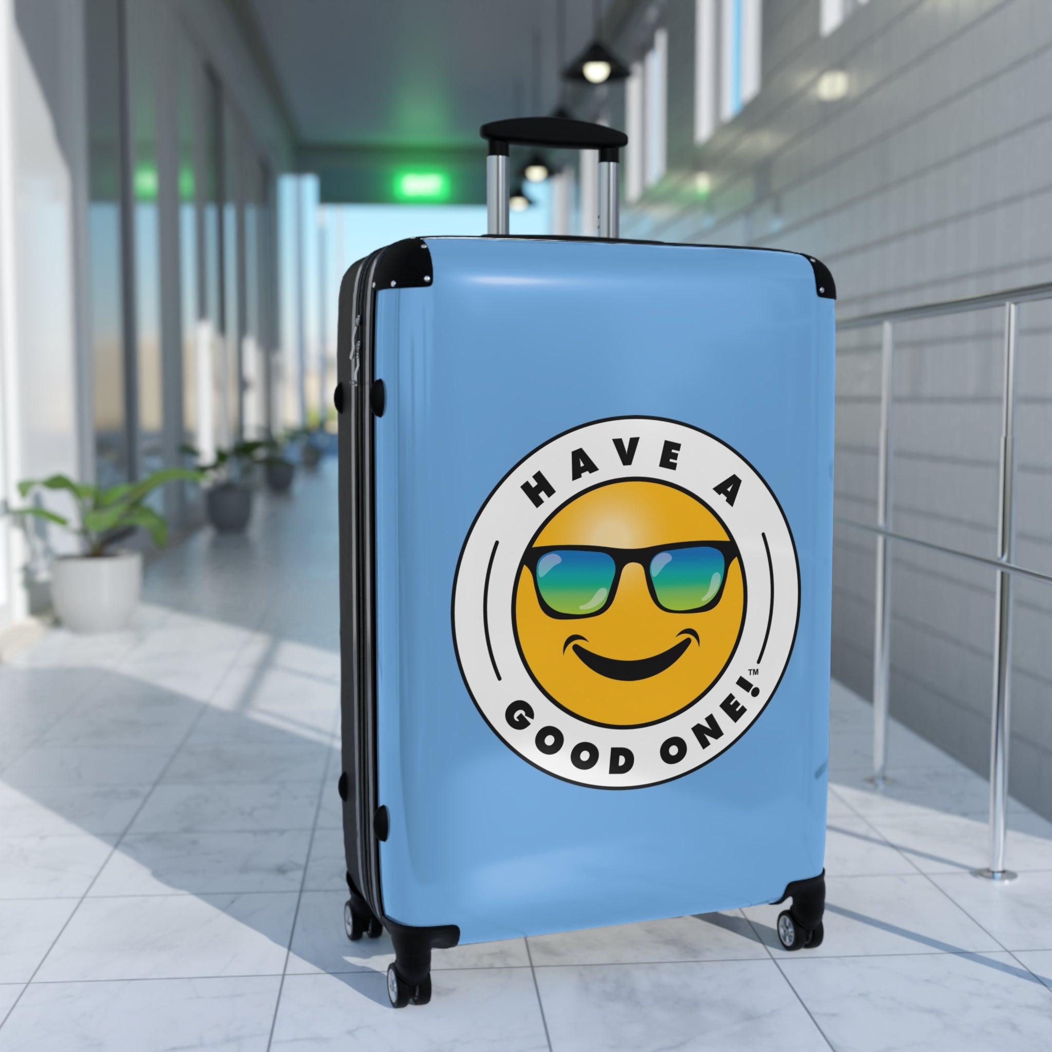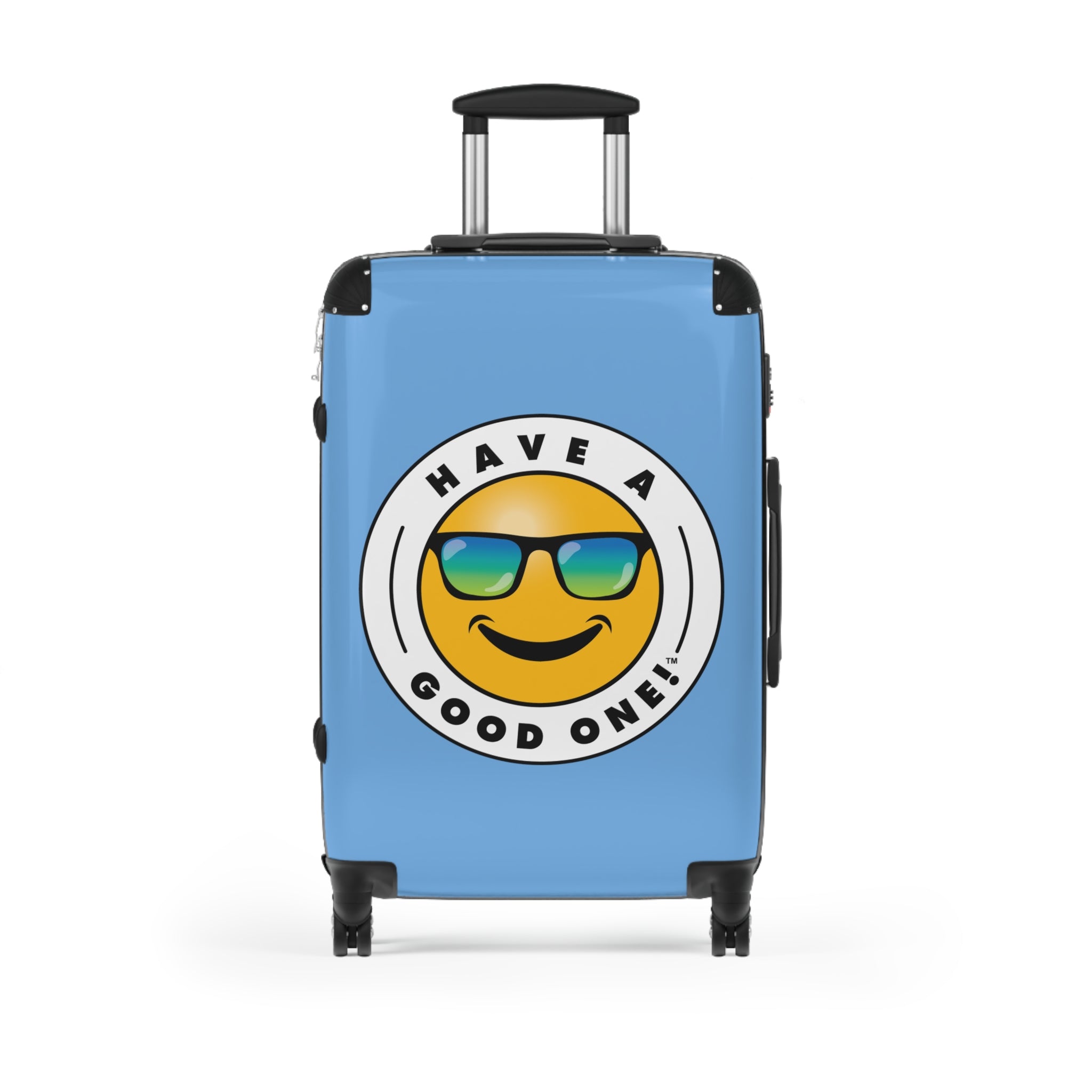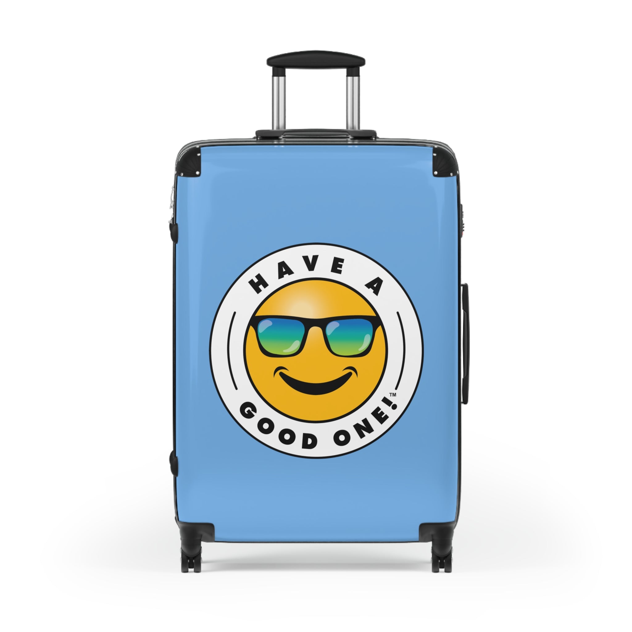 Grab N’ Go Have A Good One! Suitcases - Light Blue Color With Blue Green Have A Good One! Logo